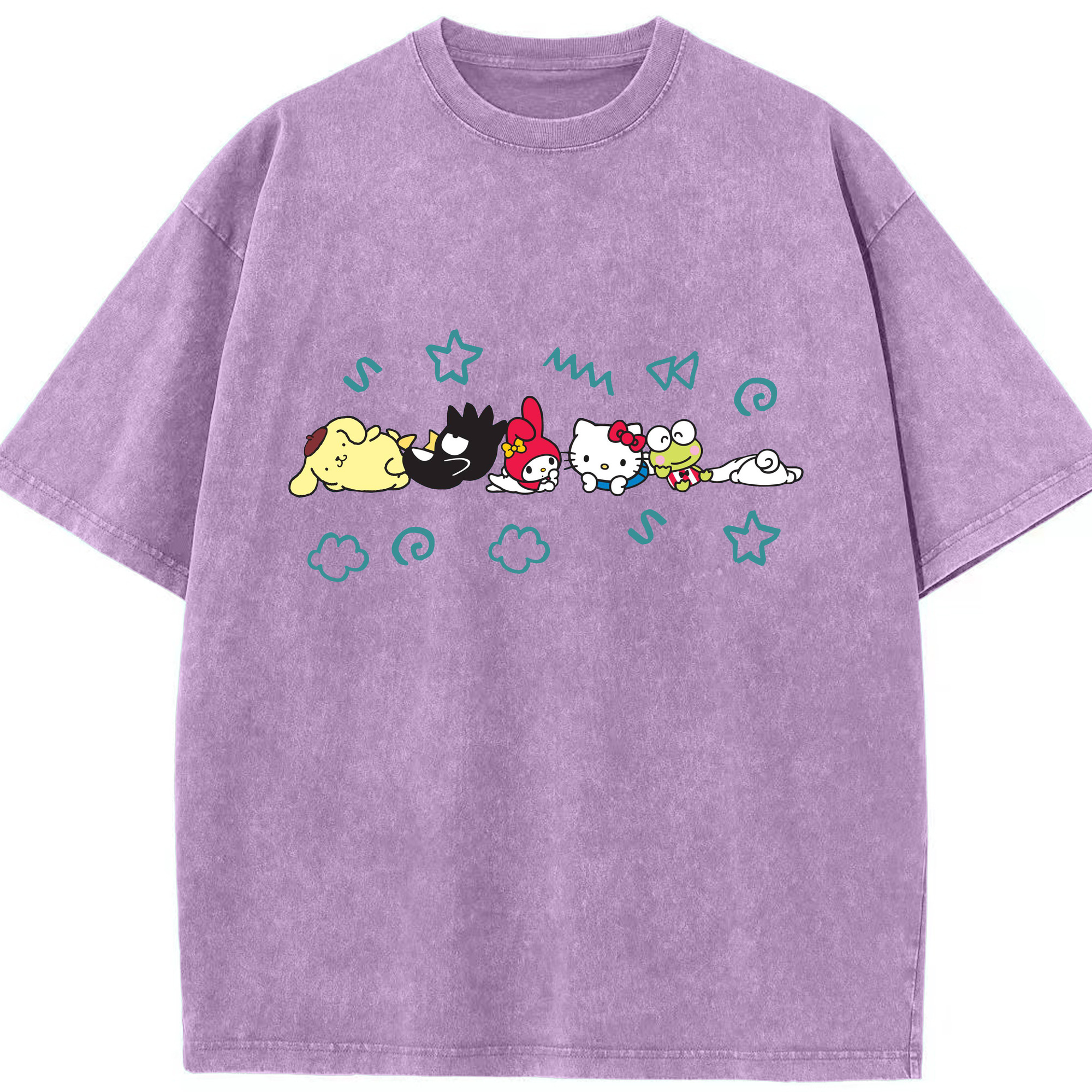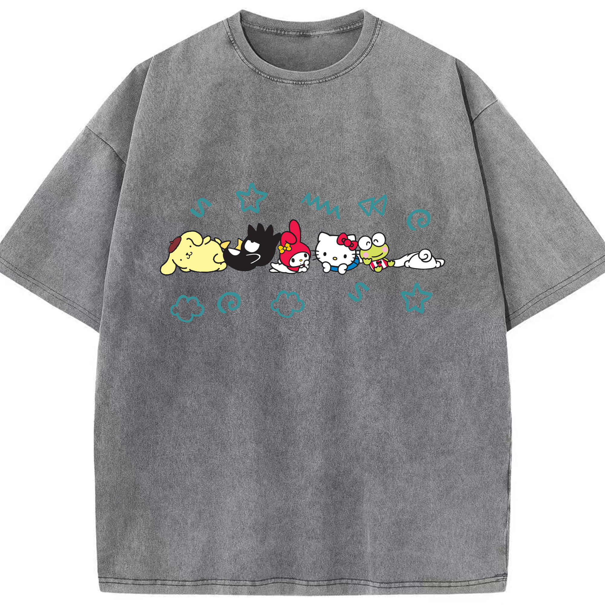 おもしろサンリオ - 綿100% ヴィンテージ風 半袖Tシャツ ・ 背面プリント ・ 柔らか肌触り ・ 通気性 快適 ・ スポーツ カジュアル 外出用