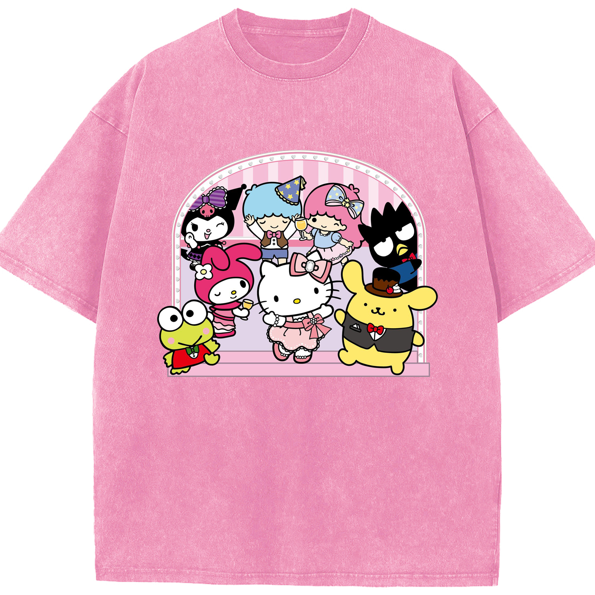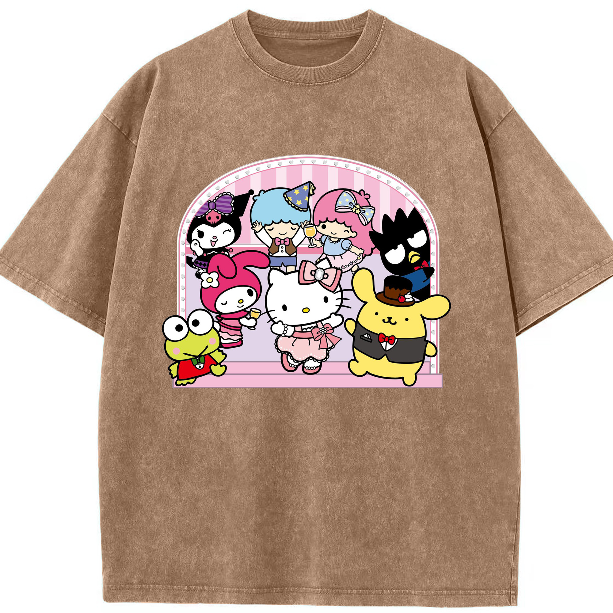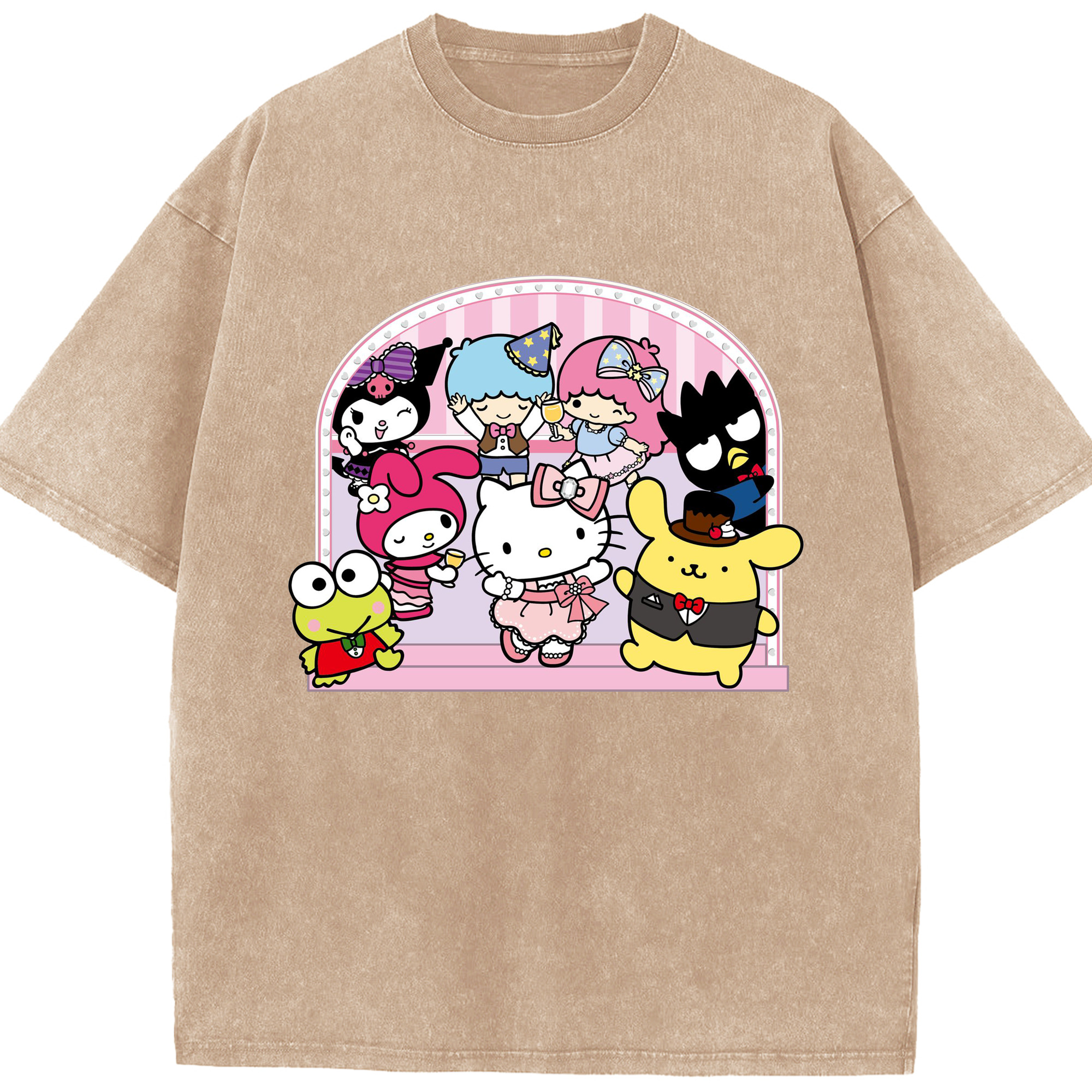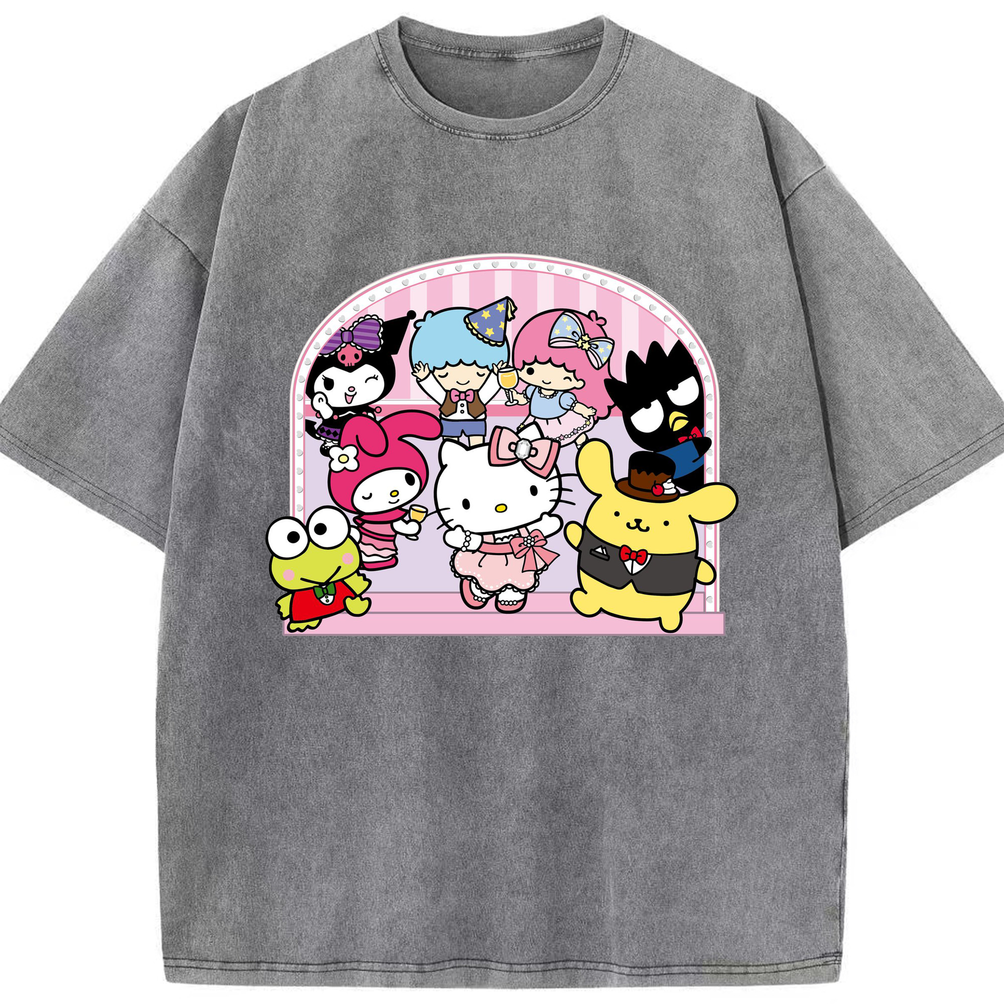サンリオ - 綿100% ヴィンテージ風 半袖Tシャツ ・ フロントプリント ・ 柔らか肌触り ・ 通気性 快適 ・ スポーツ カジュアル 外出用