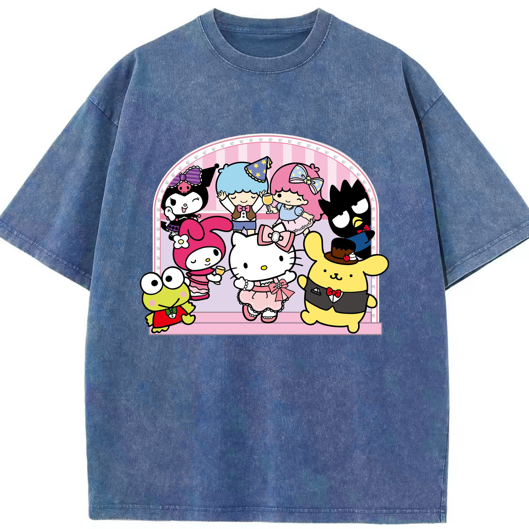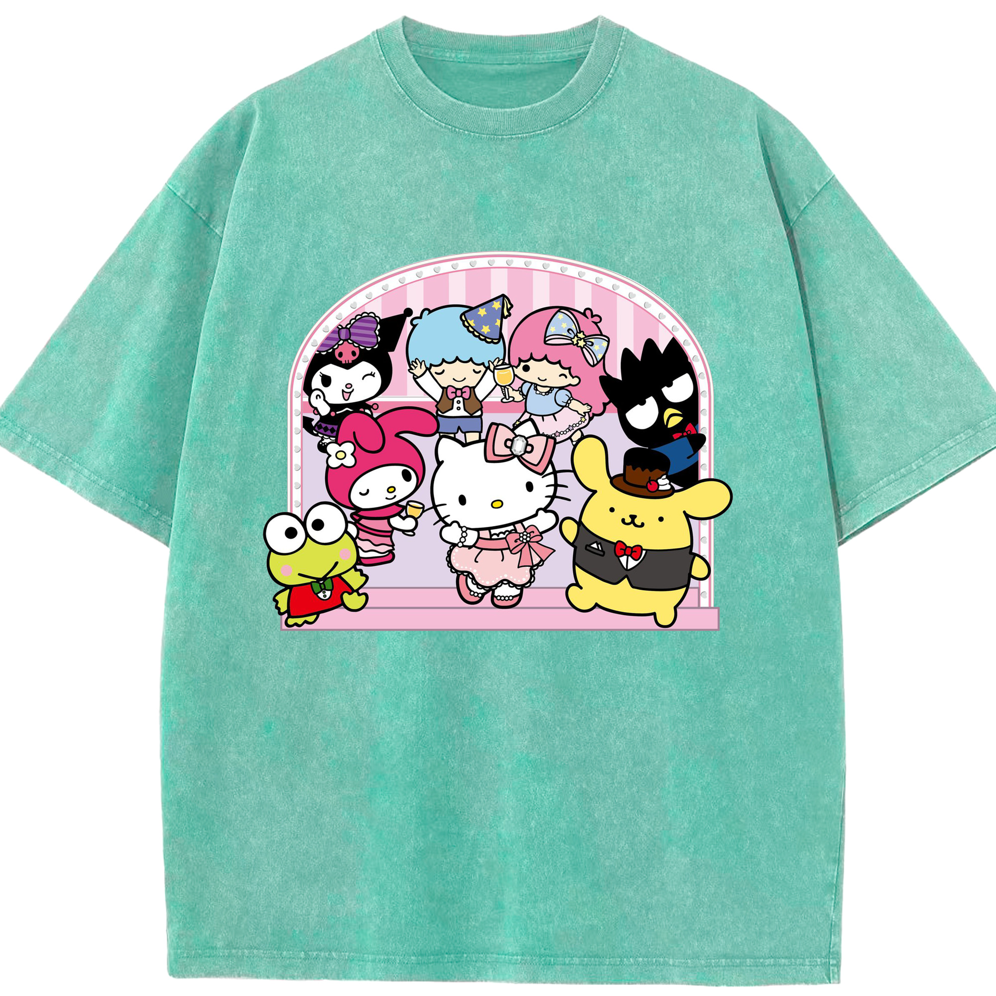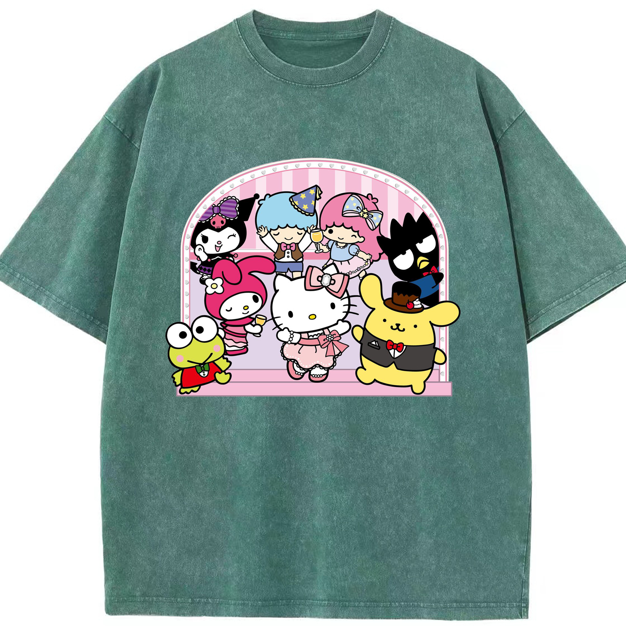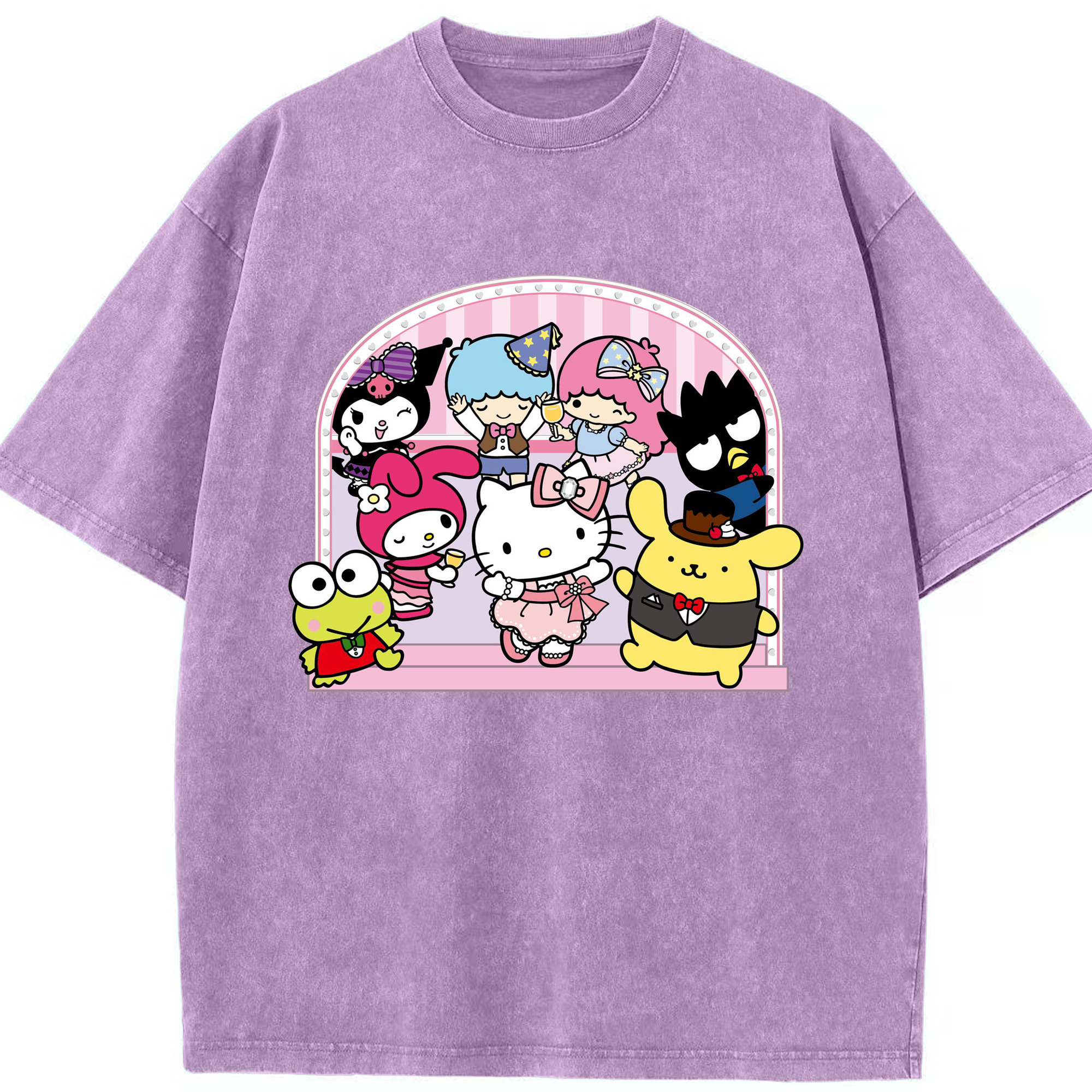 サンリオ - 綿100% ヴィンテージ風 半袖Tシャツ ・ フロントプリント ・ 柔らか肌触り ・ 通気性 快適 ・ スポーツ カジュアル 外出用