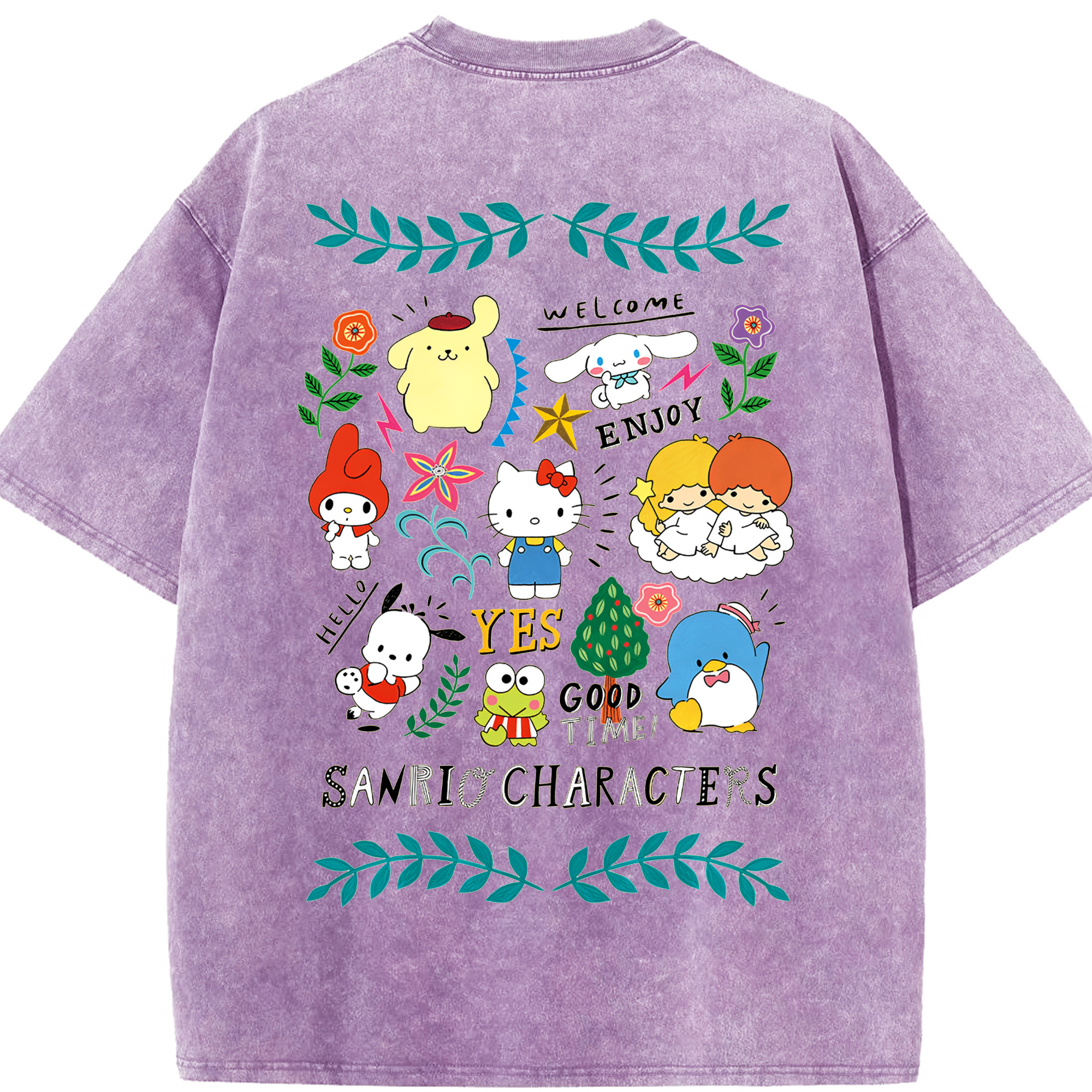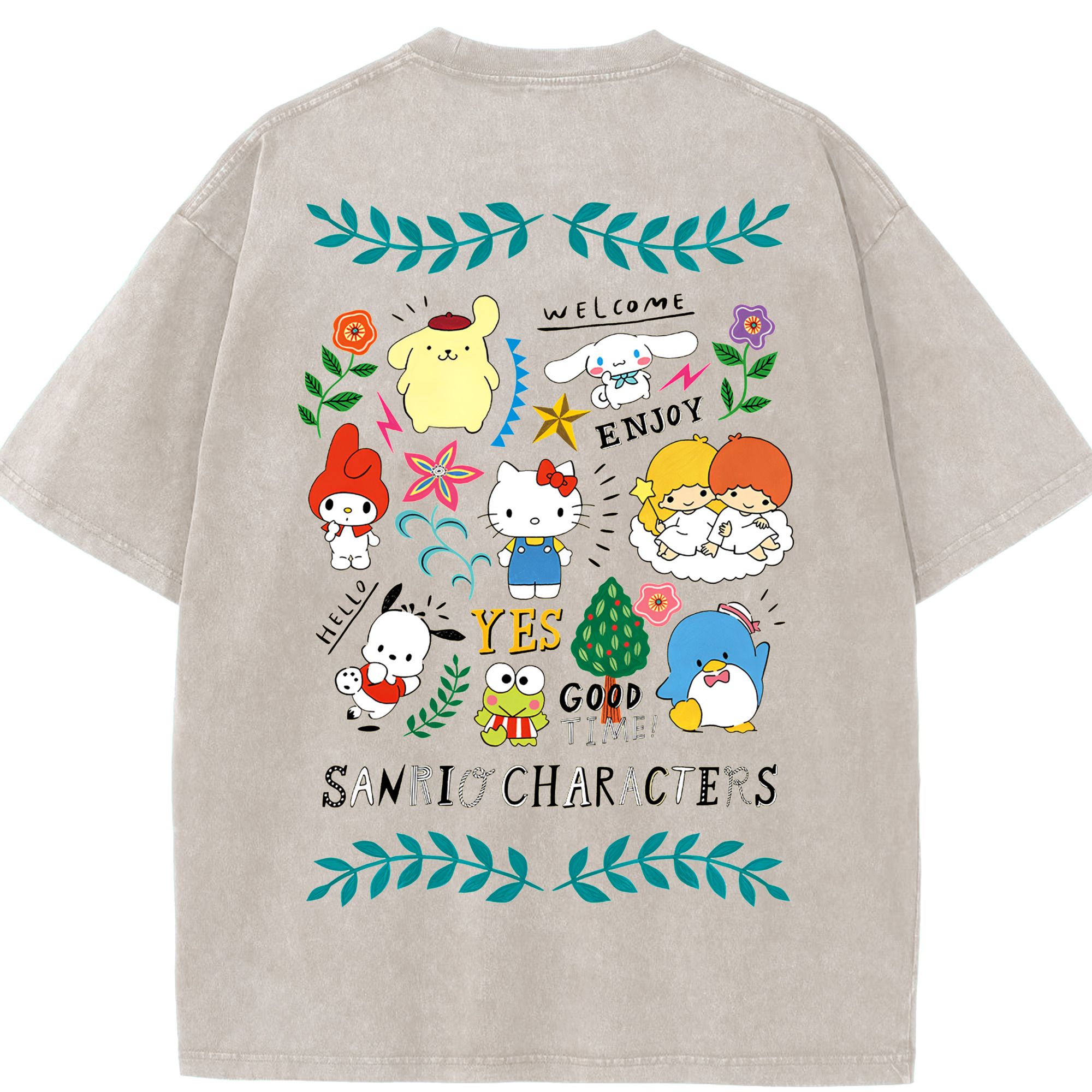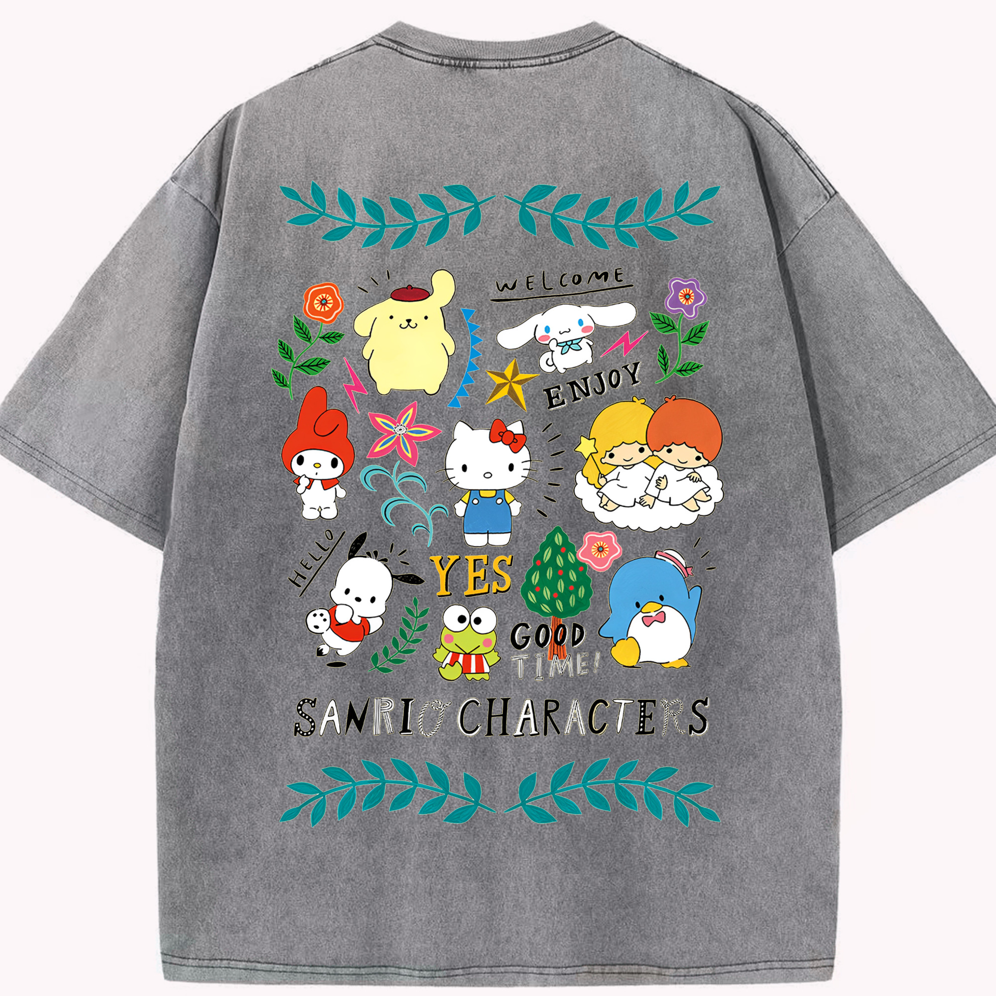 卒業シーズン×サンリオ - 綿100% ヴィンテージ風 半袖Tシャツ ・ 背面プリント ・ 柔らか肌触り ・ 通気性 快適 ・ スポーツ カジュアル 外出用