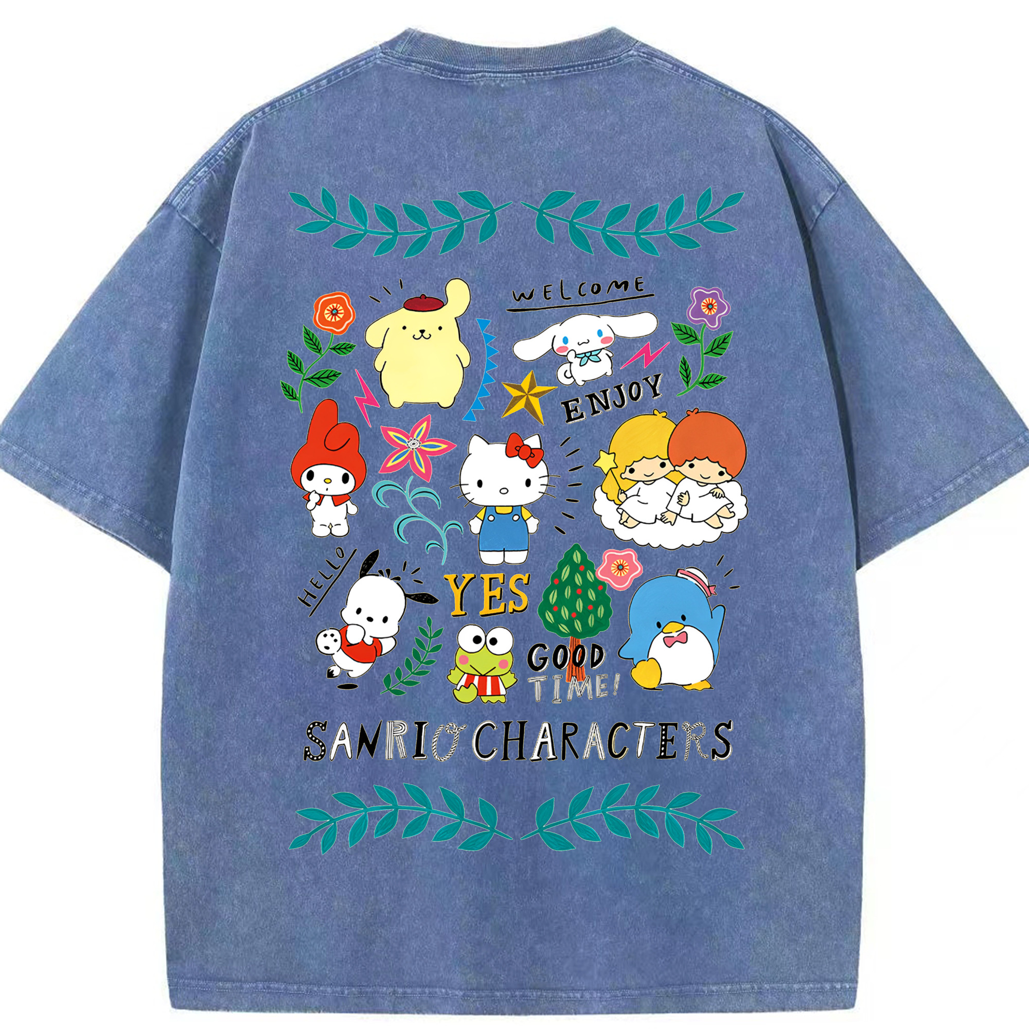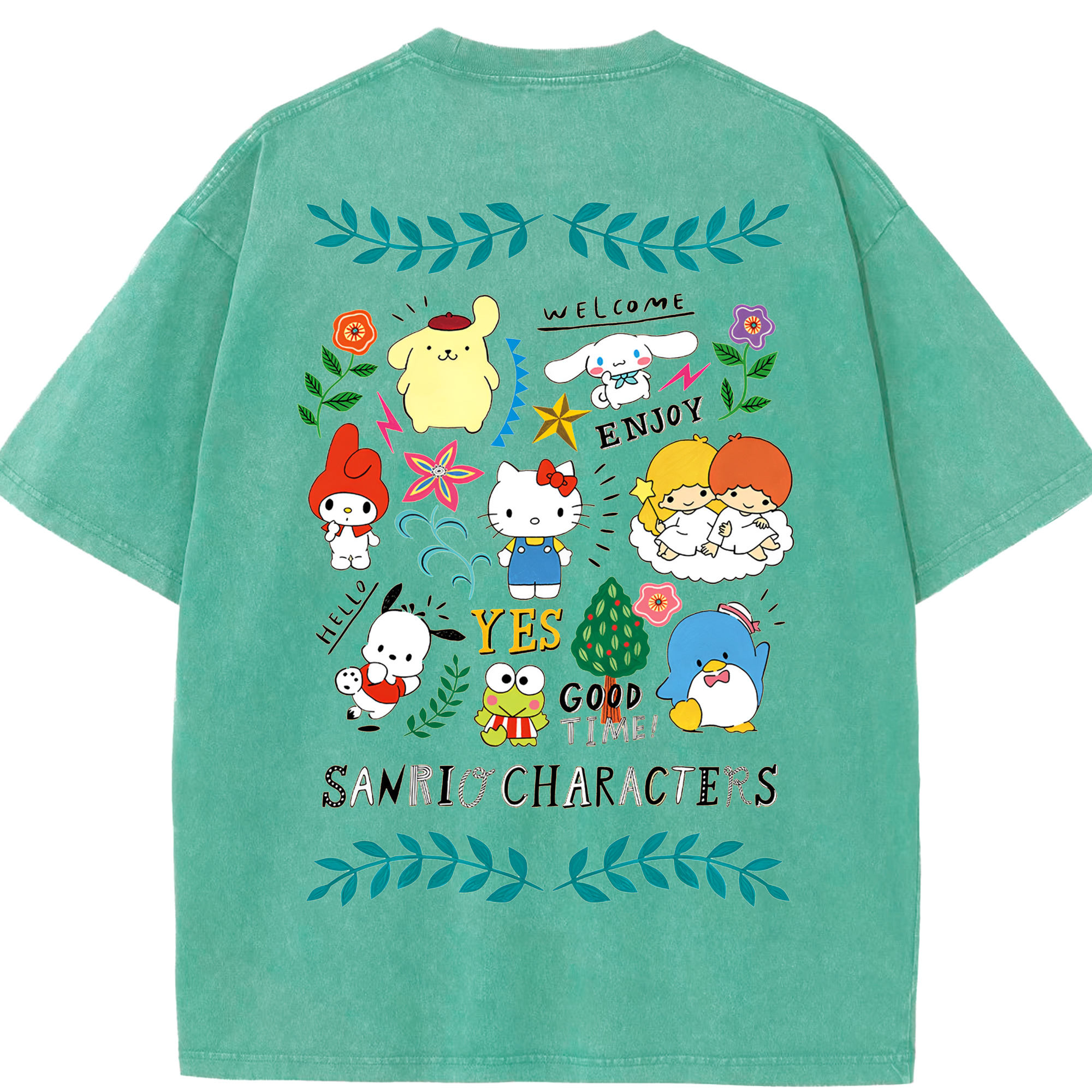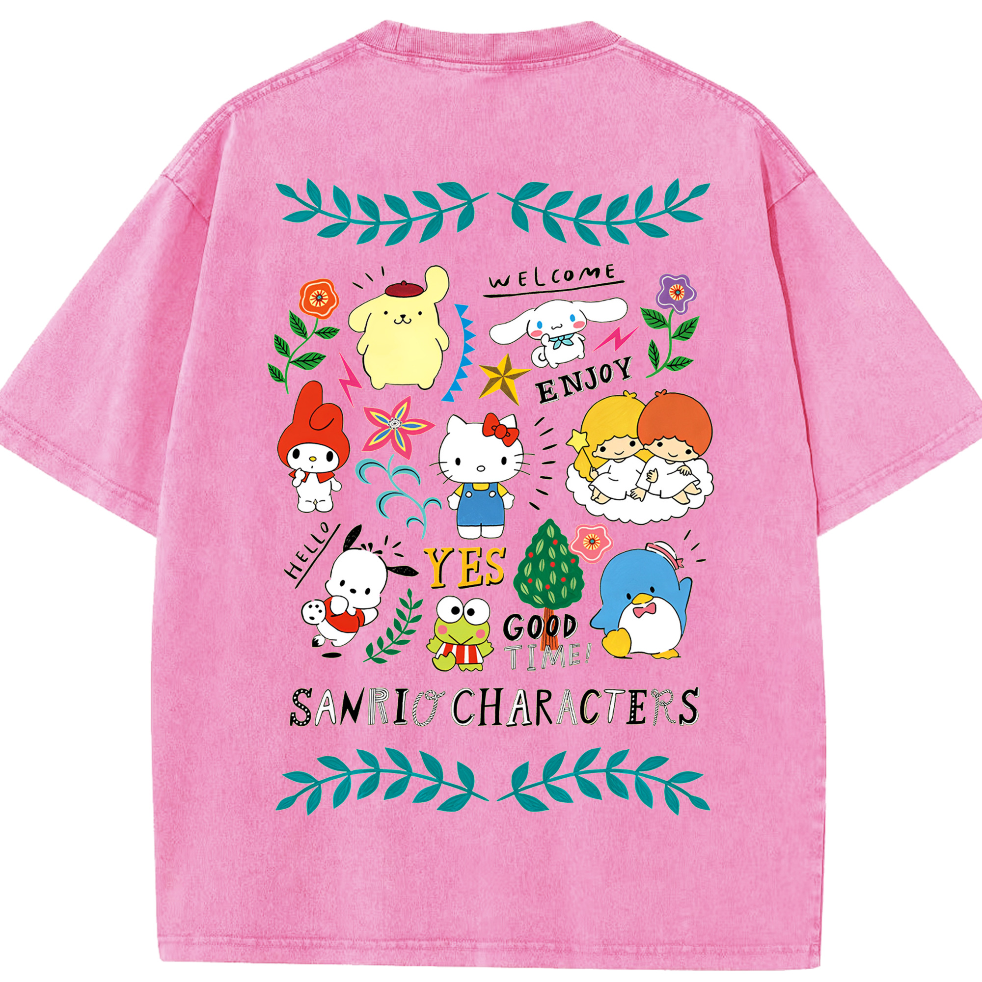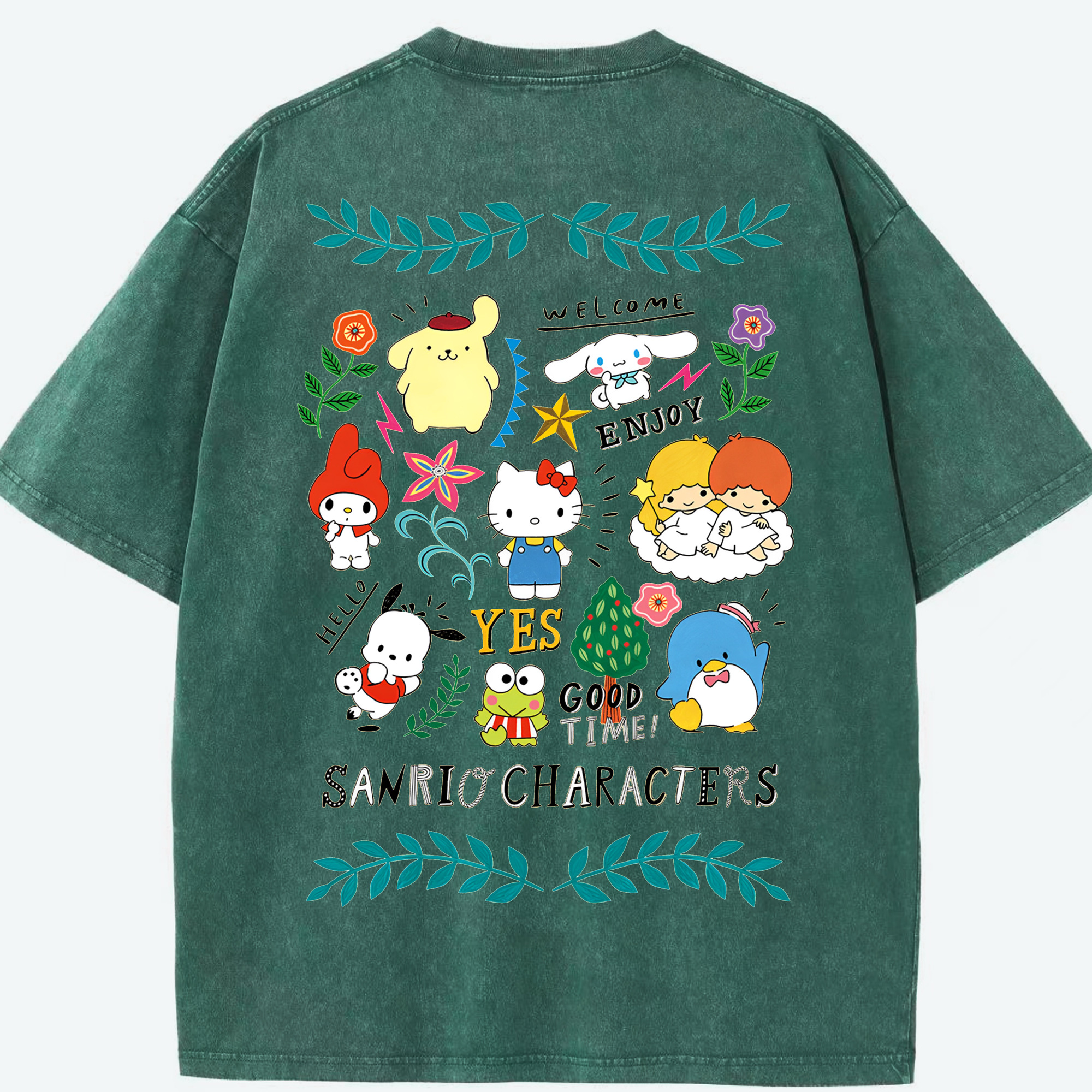 卒業シーズン×サンリオ - 綿100% ヴィンテージ風 半袖Tシャツ ・ 背面プリント ・ 柔らか肌触り ・ 通気性 快適 ・ スポーツ カジュアル 外出用