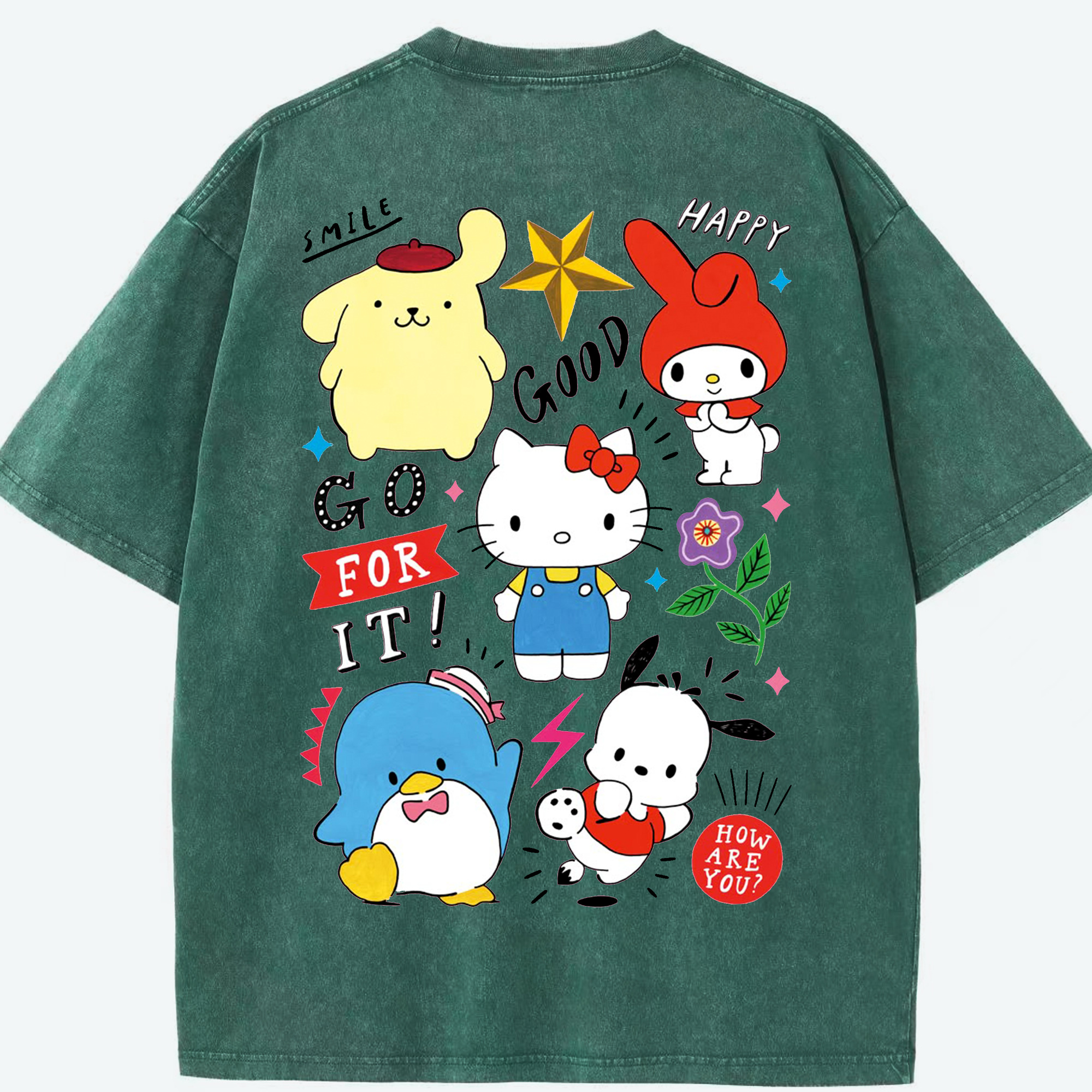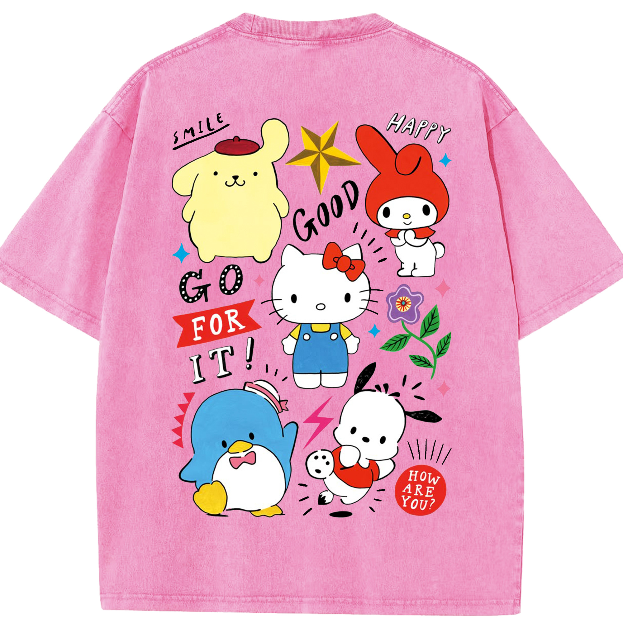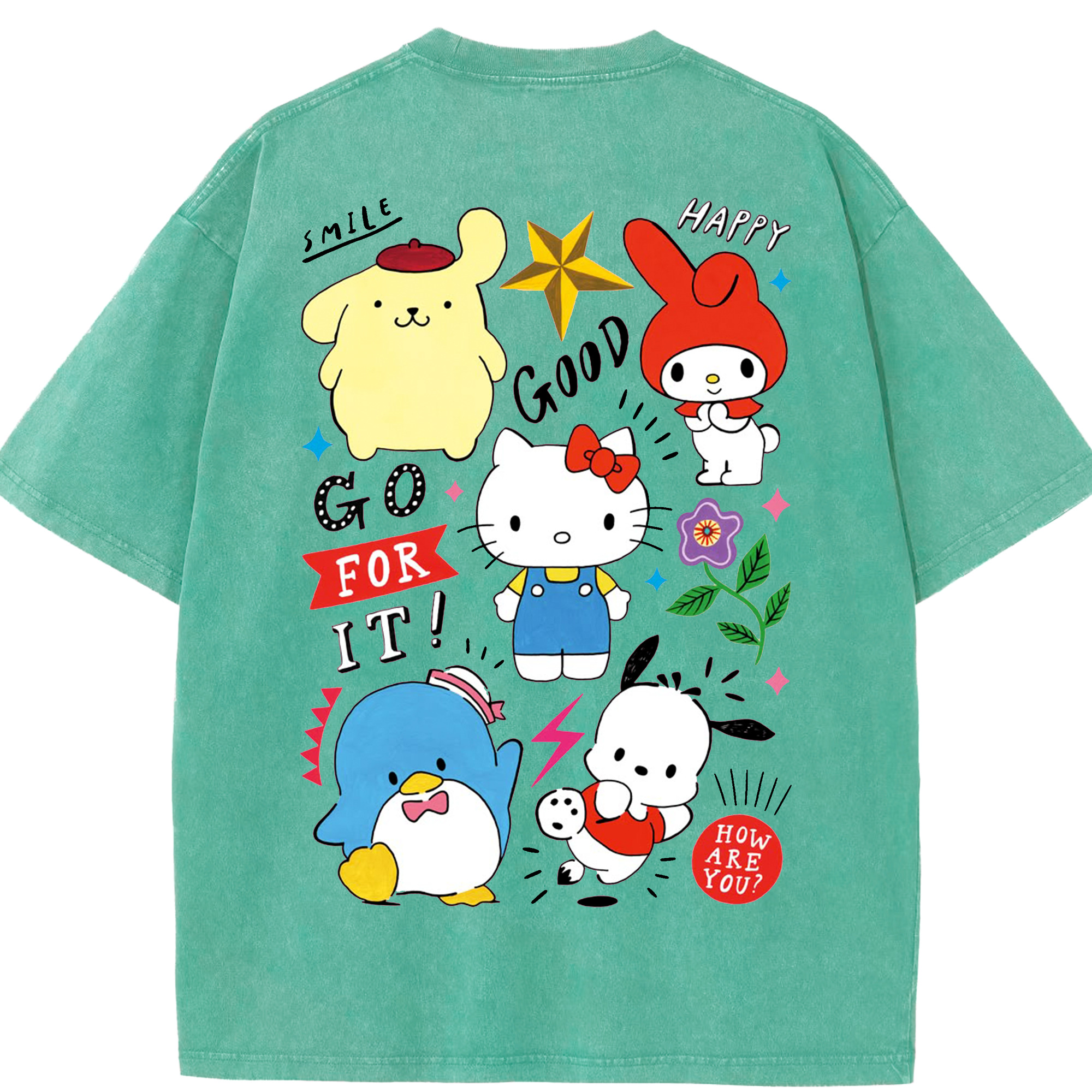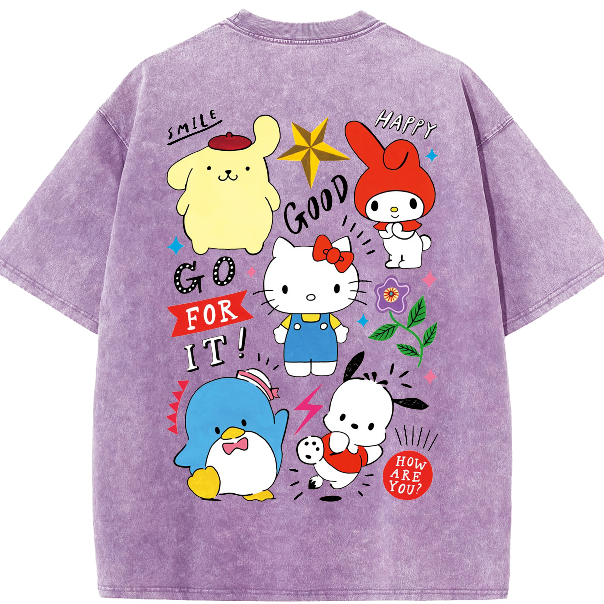 おもしろサンリオ - 綿100% ヴィンテージ風 半袖Tシャツ ・ フロントプリント ・ 柔らか肌触り ・ 通気性 快適 ・ スポーツ カジュアル 外出用