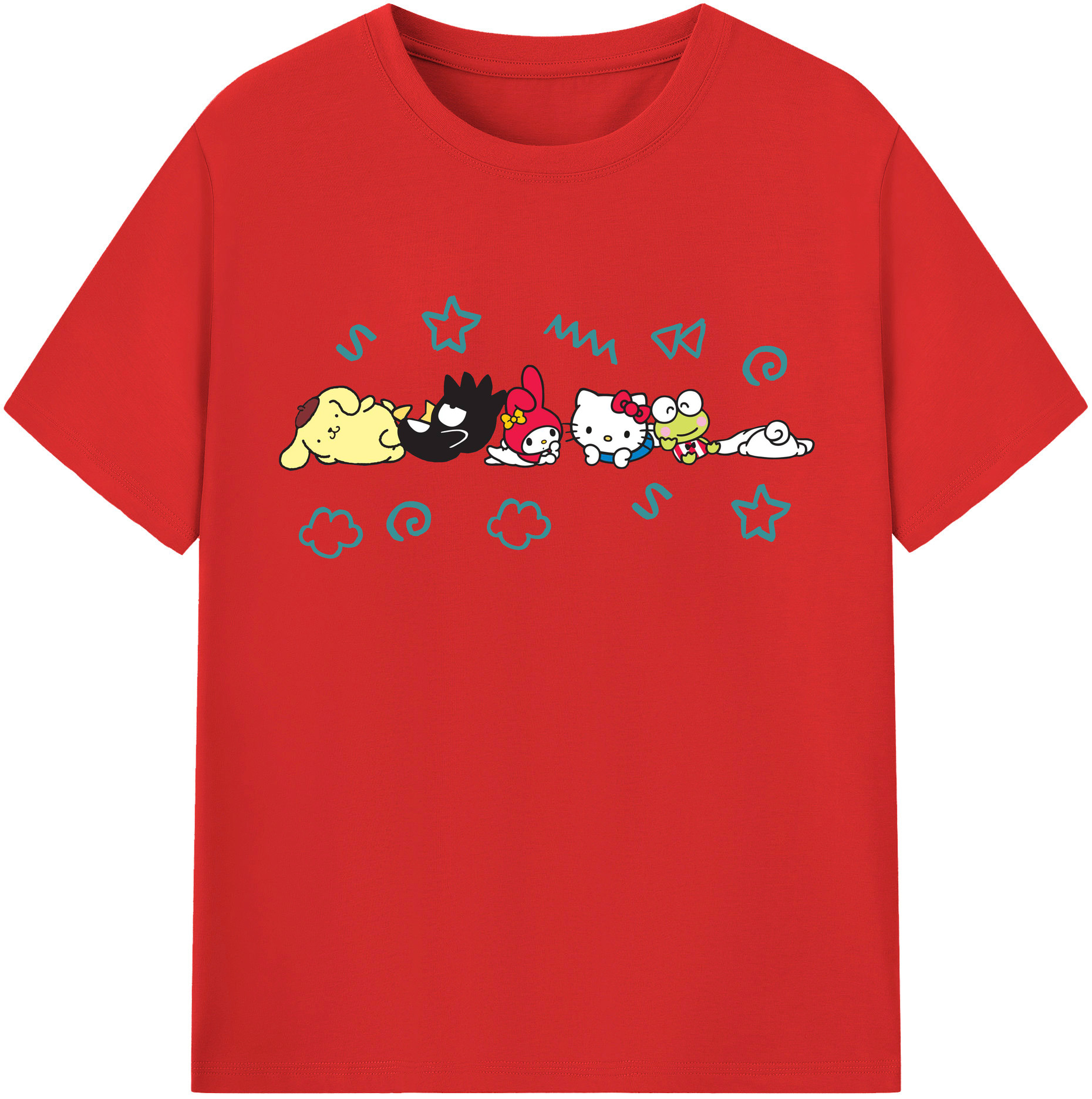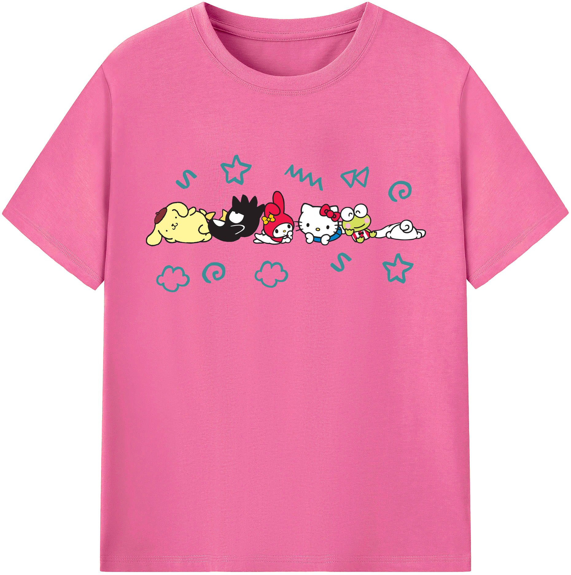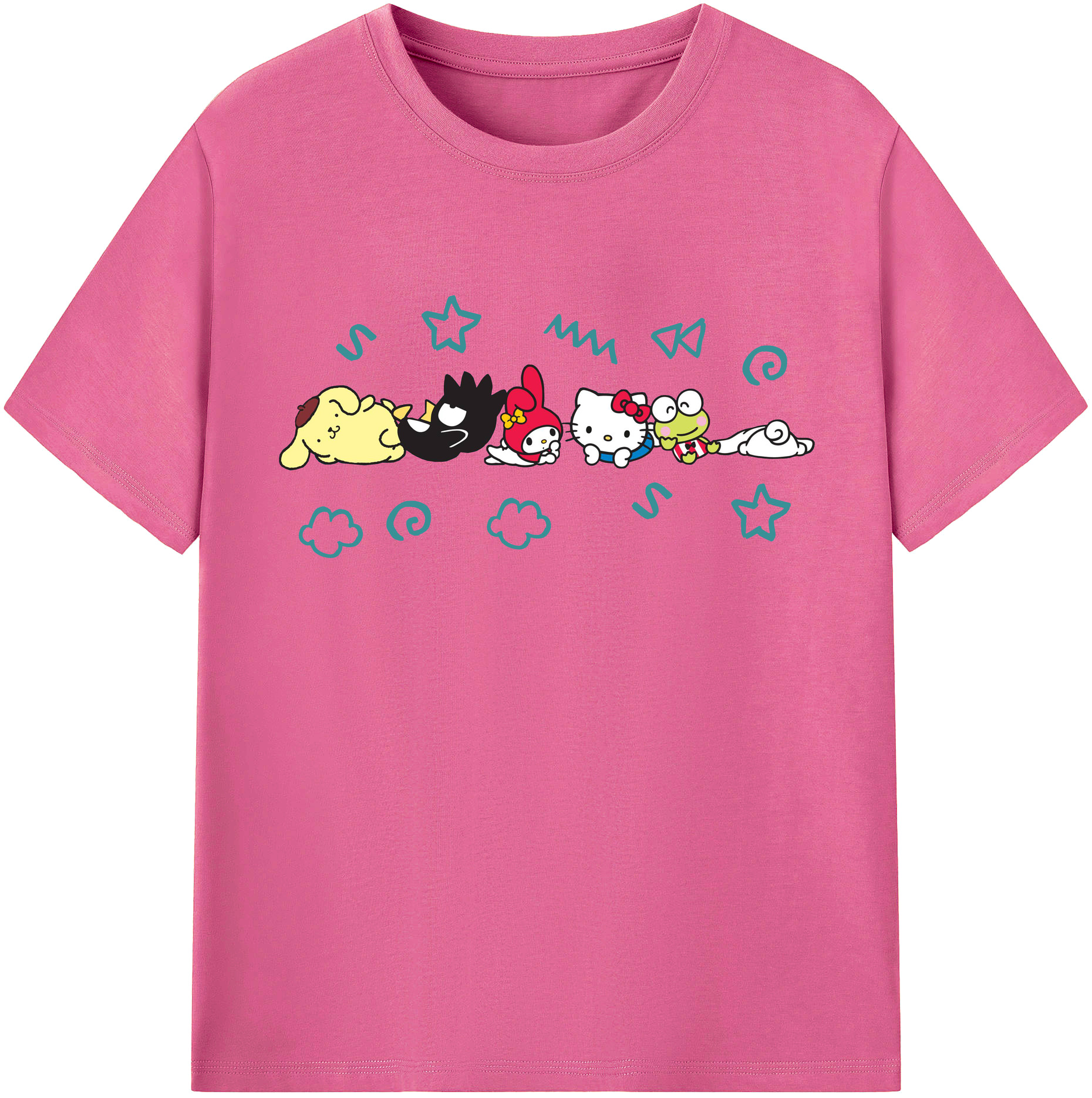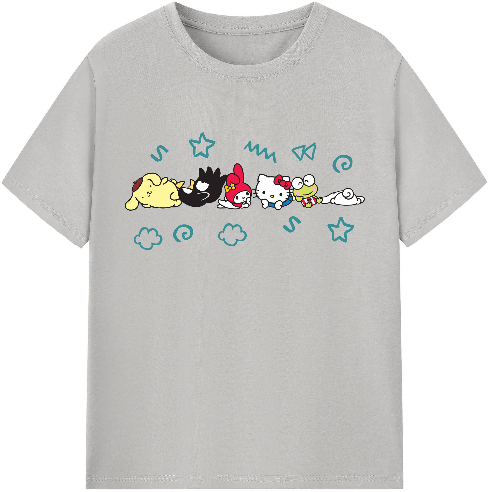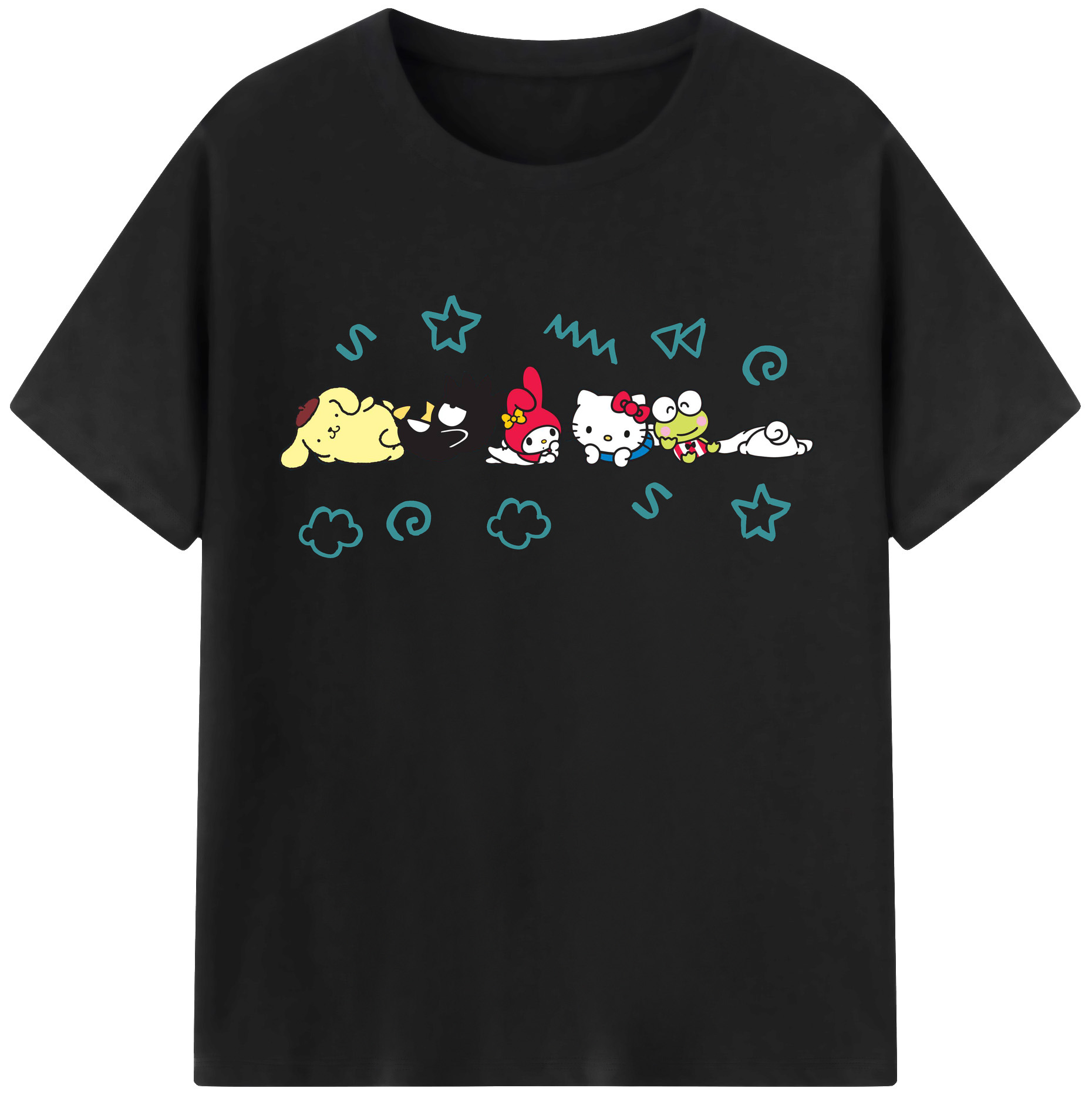 おもしろサンリオ - レディースカジュアルプリントTシャツ ・ 綿100% ・ クルーネック ・ フロントプリント ・ 柔らかく快適 ・ フィットネス カジュアル 旅行用