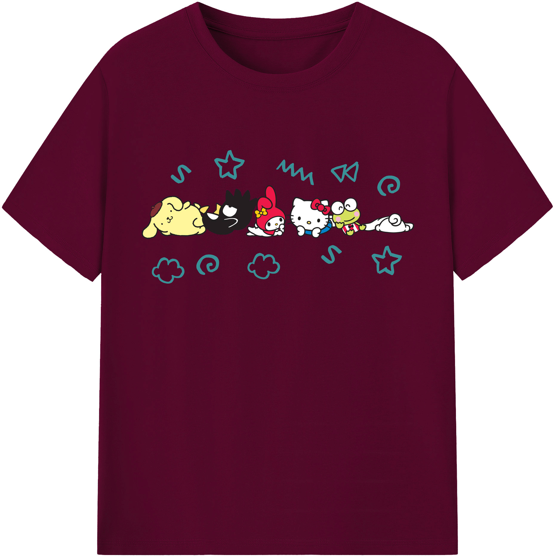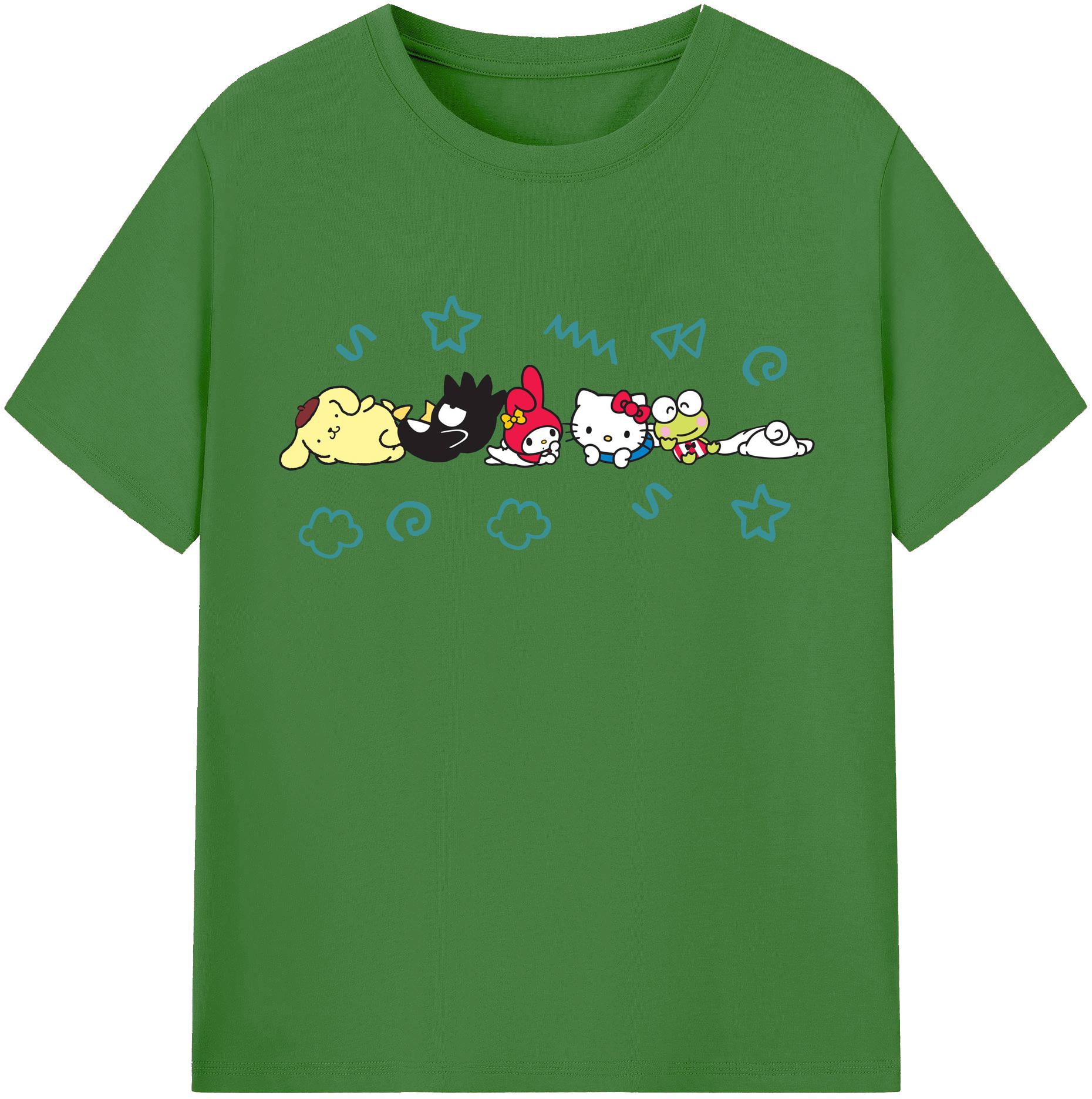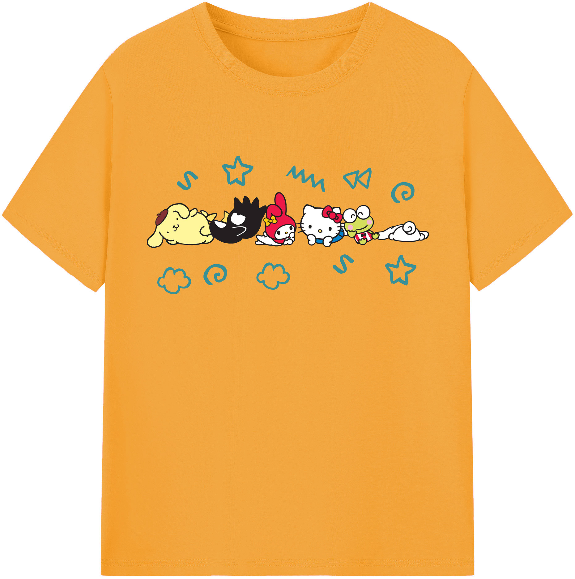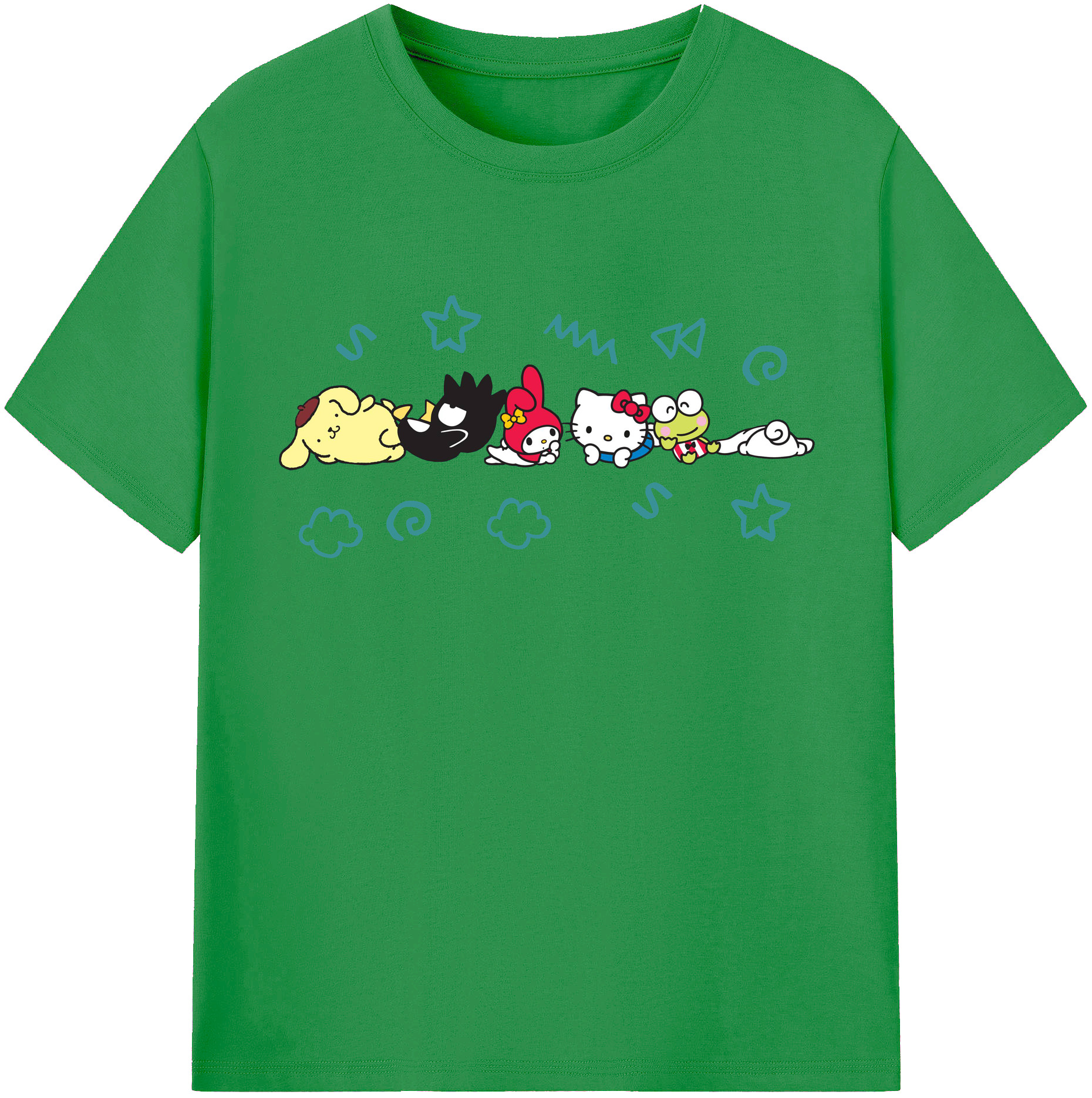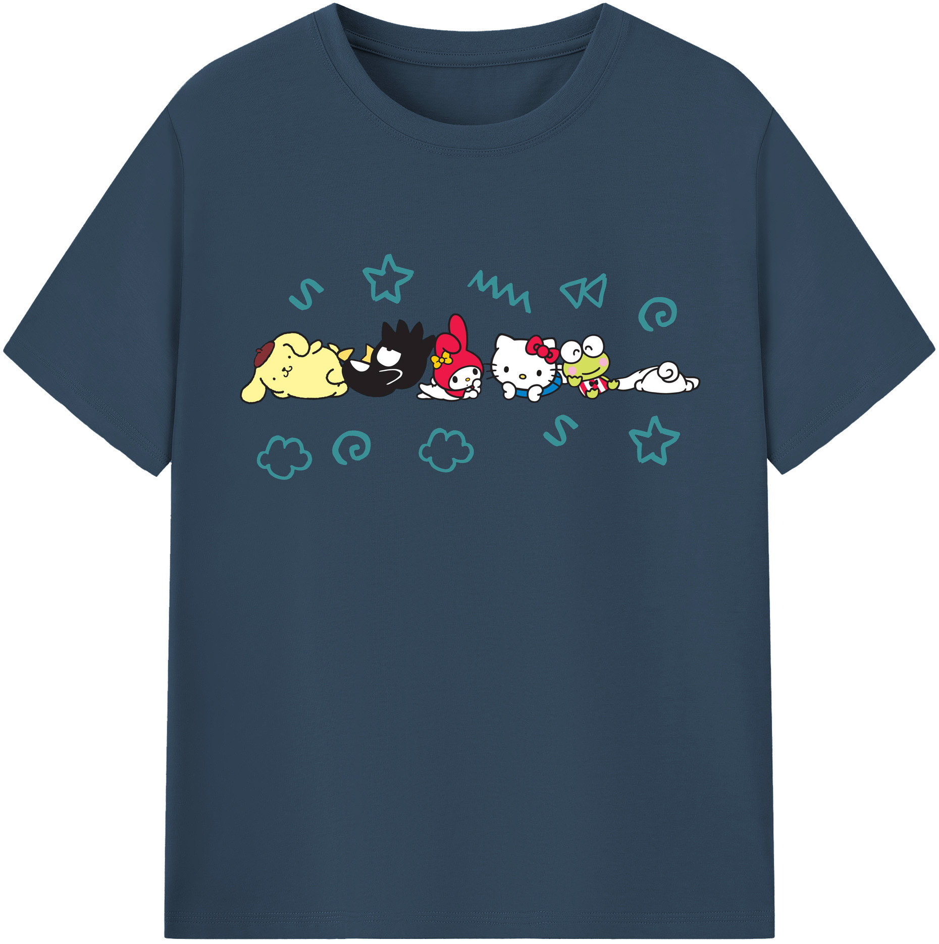 おもしろサンリオ - レディースカジュアルプリントTシャツ ・ 綿100% ・ クルーネック ・ フロントプリント ・ 柔らかく快適 ・ フィットネス カジュアル 旅行用