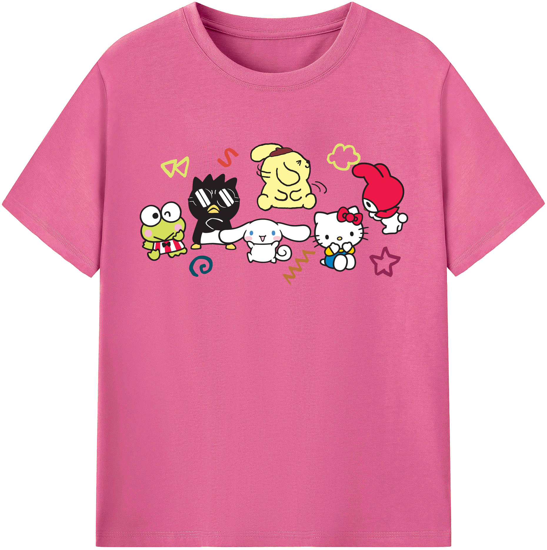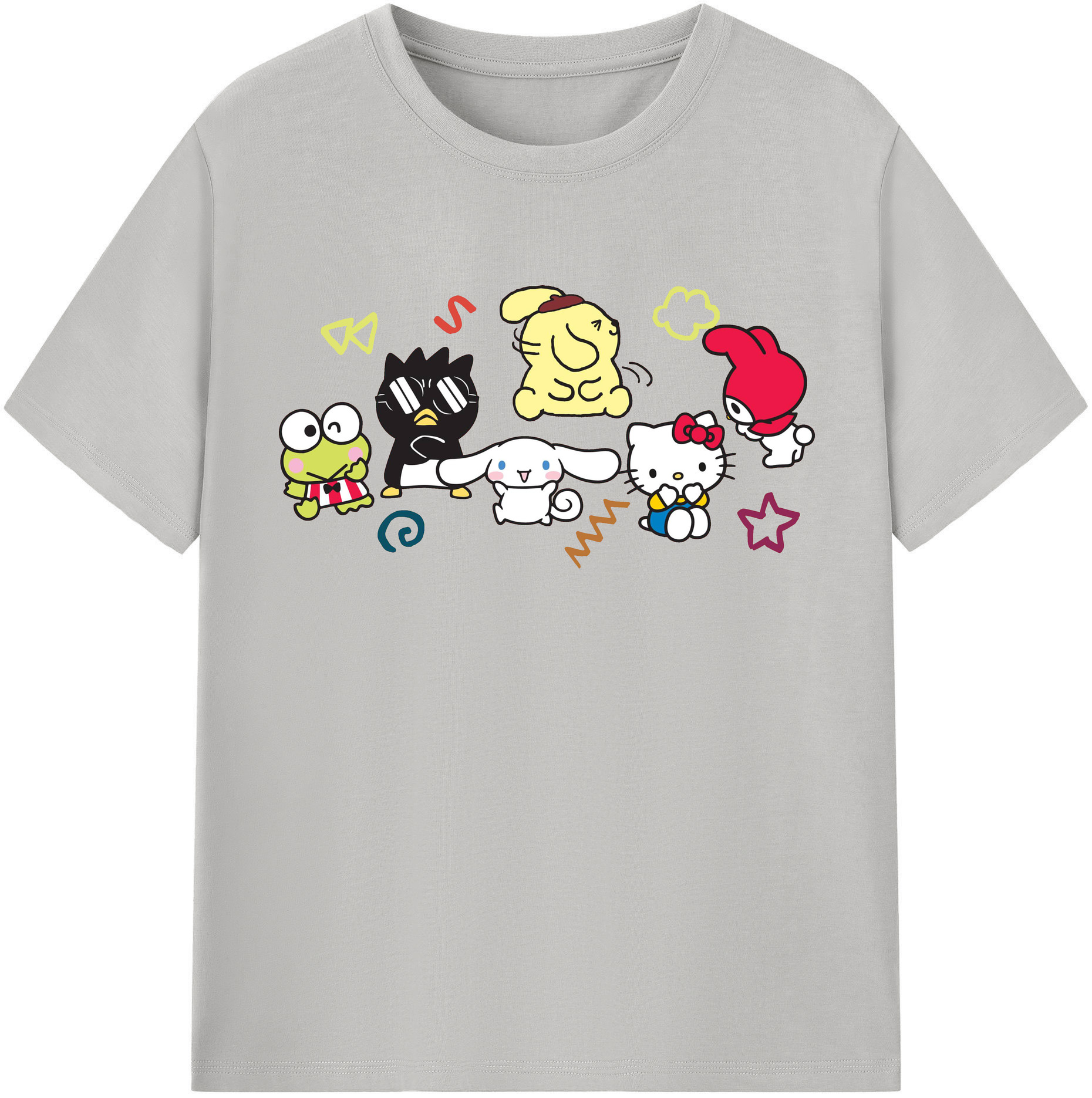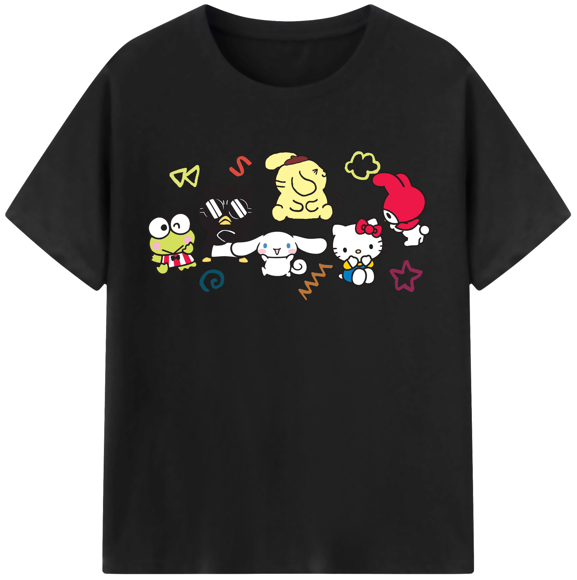 おもしろサンリオ - レディースカジュアルプリントTシャツ ・ 綿100% ・ クルーネック ・ フロントプリント ・ 柔らかく快適 ・ フィットネス カジュアル 旅行用