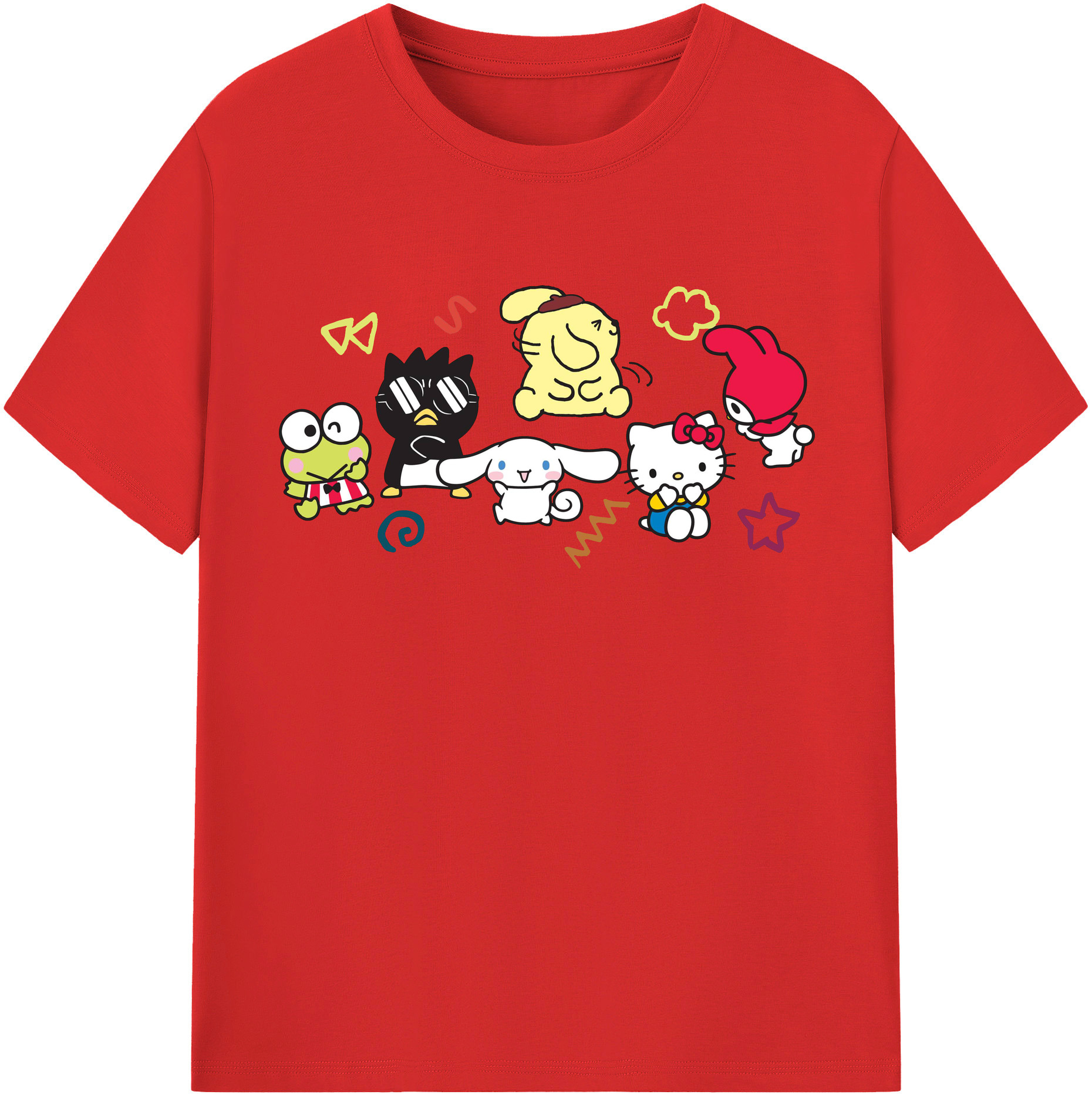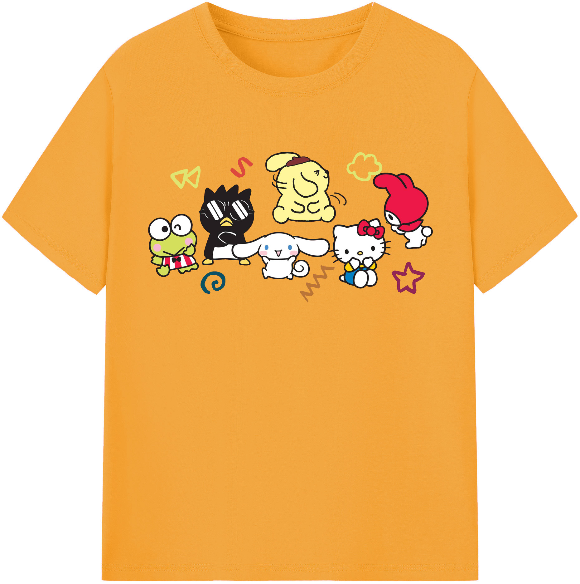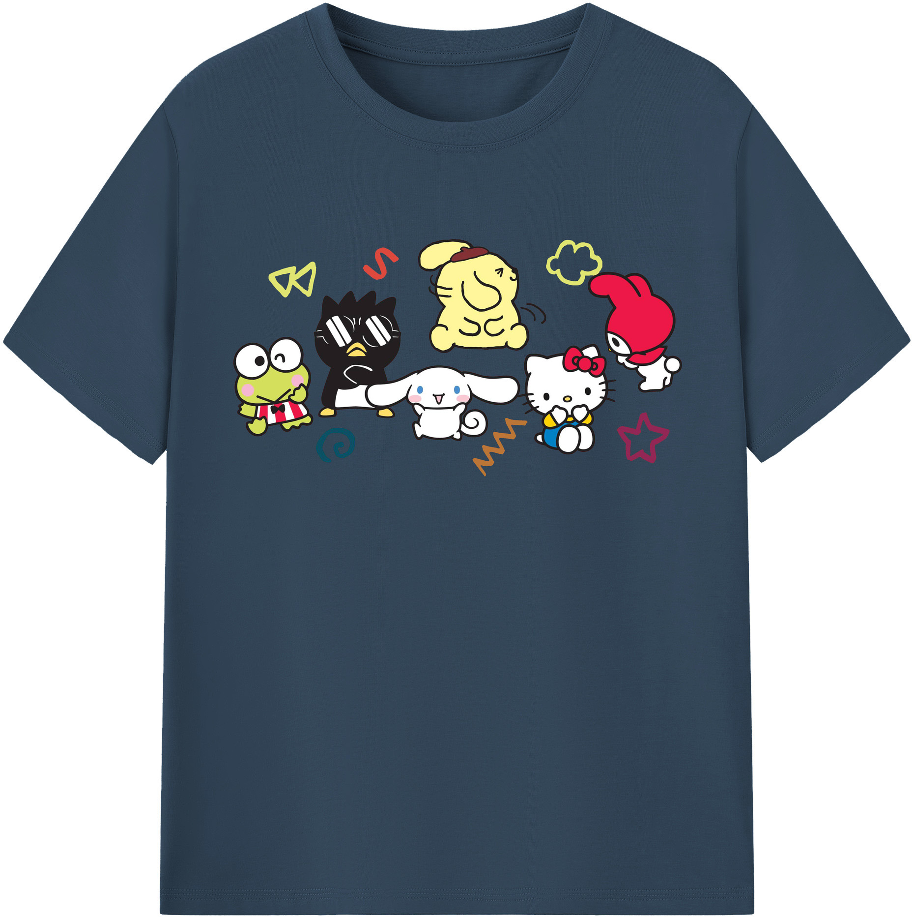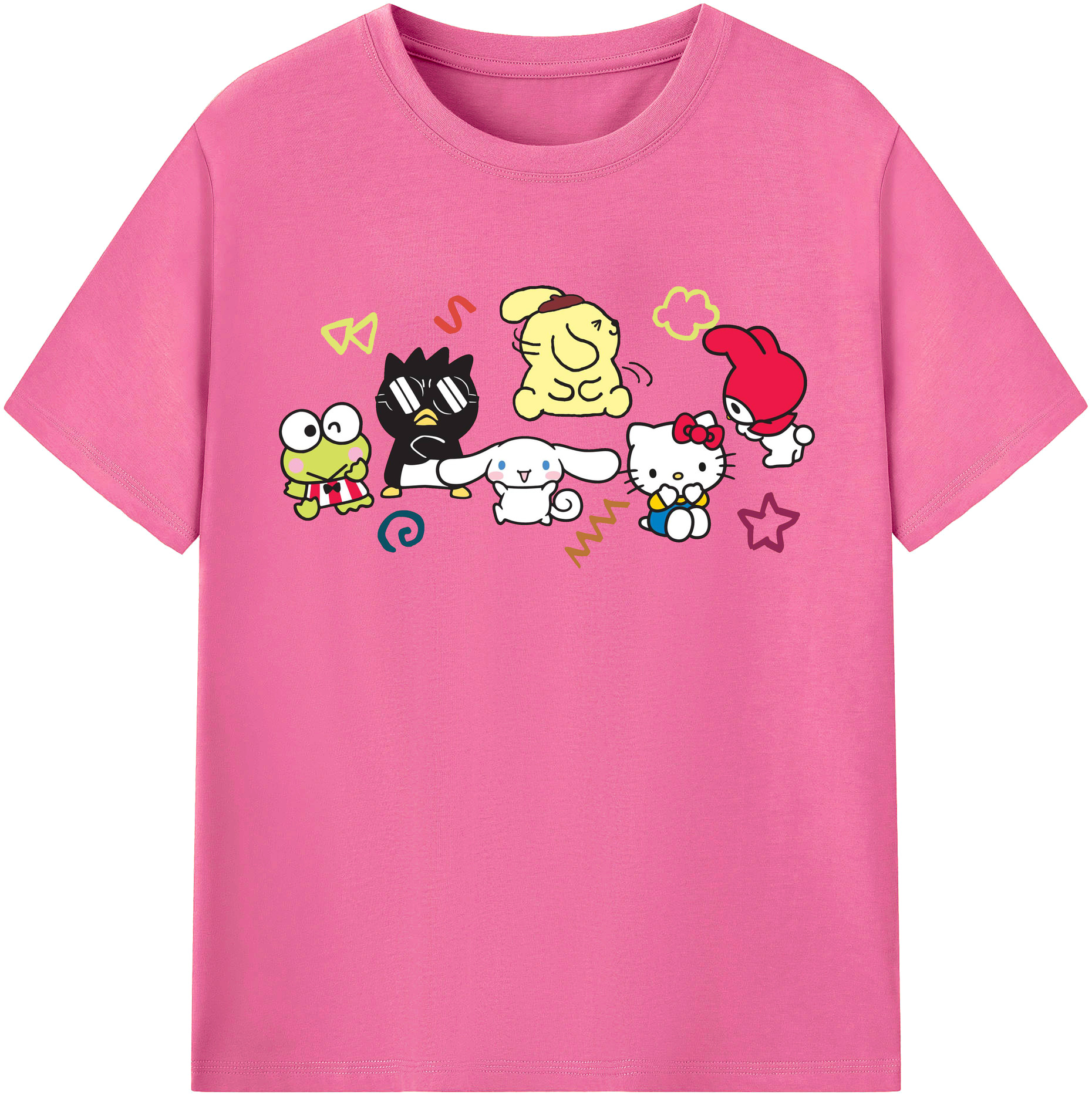 おもしろサンリオ - レディースカジュアルプリントTシャツ ・ 綿100% ・ クルーネック ・ フロントプリント ・ 柔らかく快適 ・ フィットネス カジュアル 旅行用