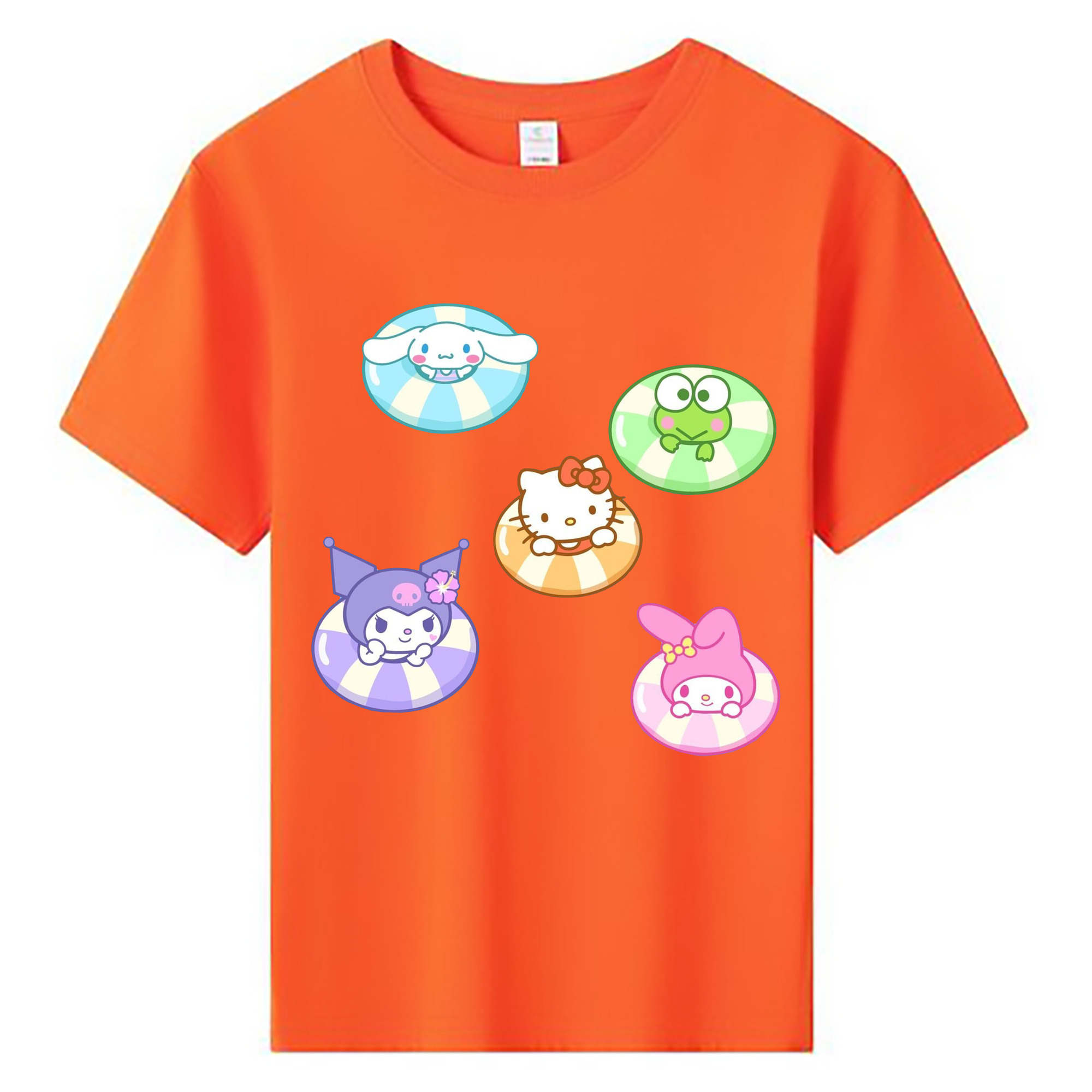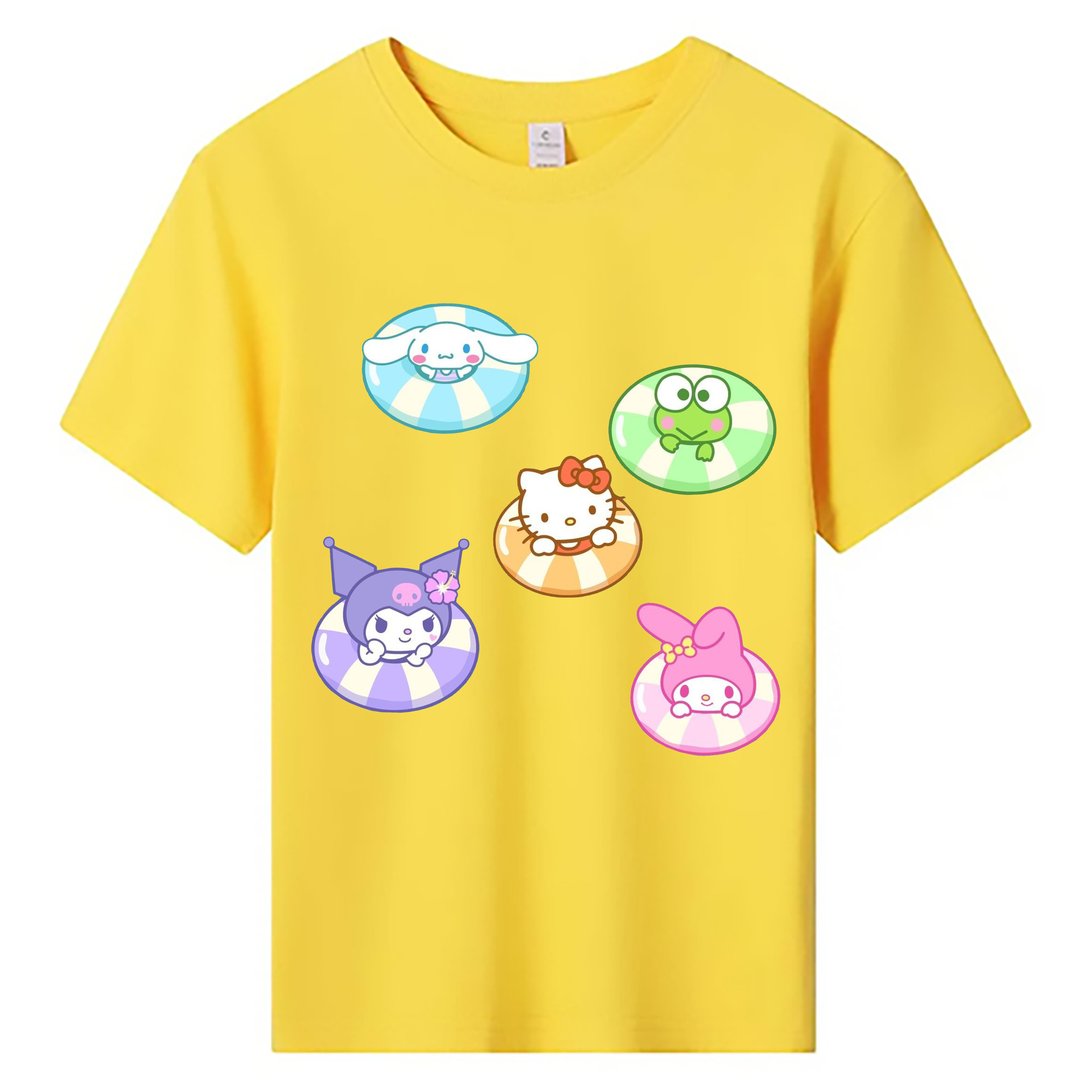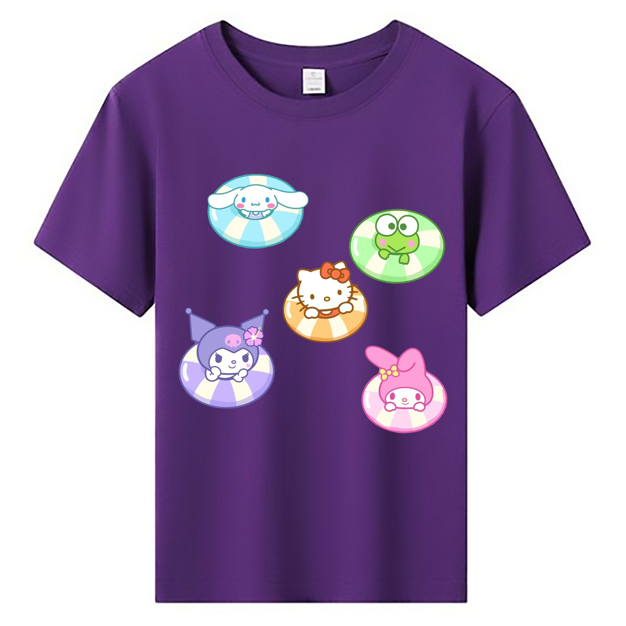 サンリオファミリー - 綿100% キッズTシャツ ・ フロントプリント ・ 快適 通気性 ・ スポーツ カジュアル 散歩用