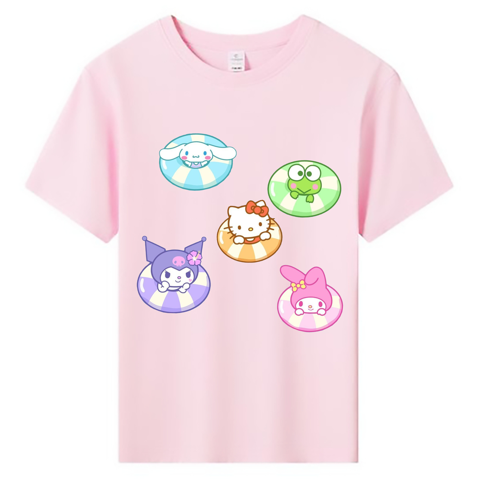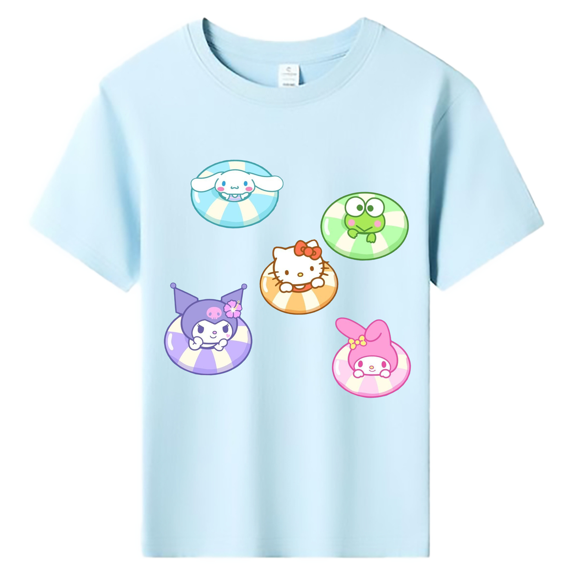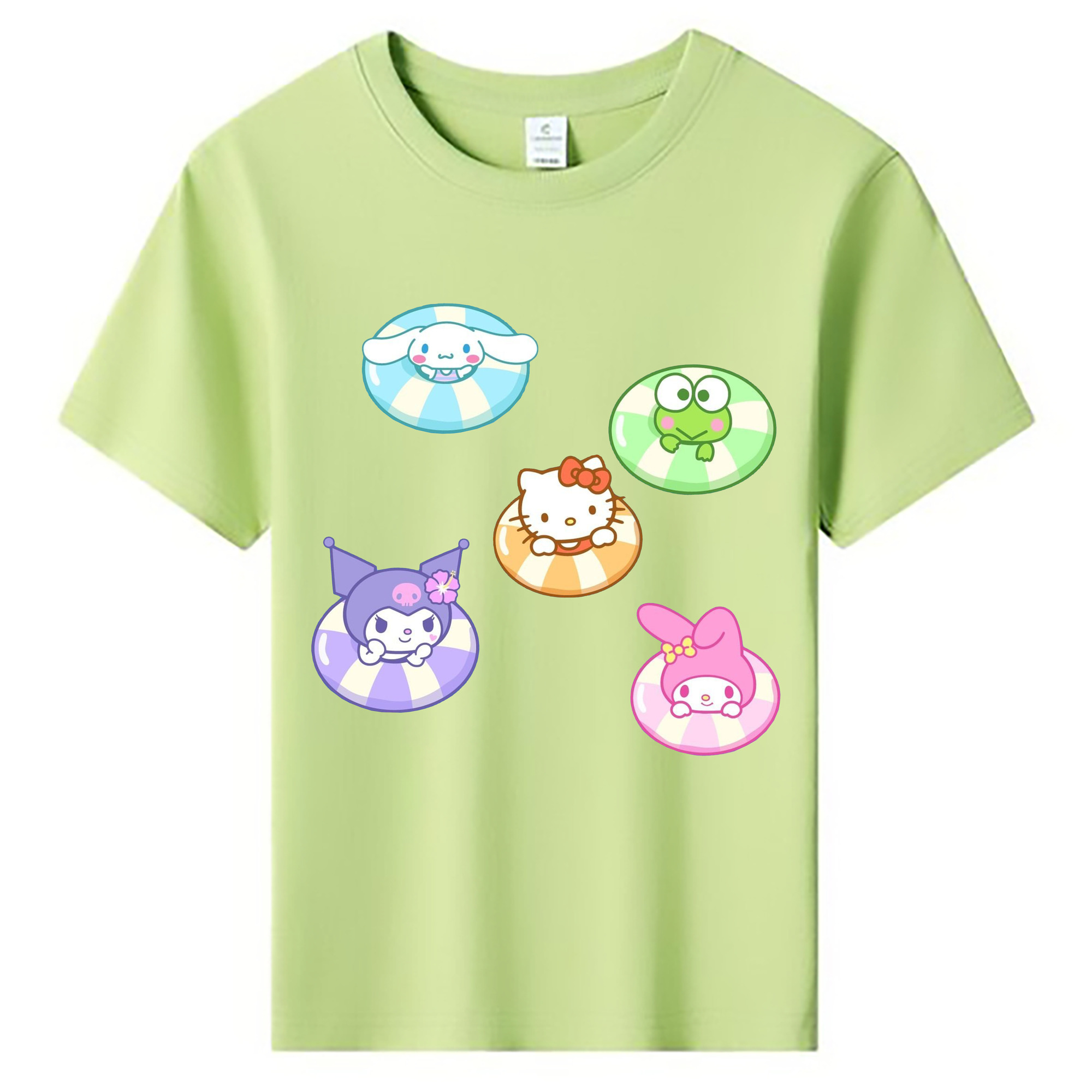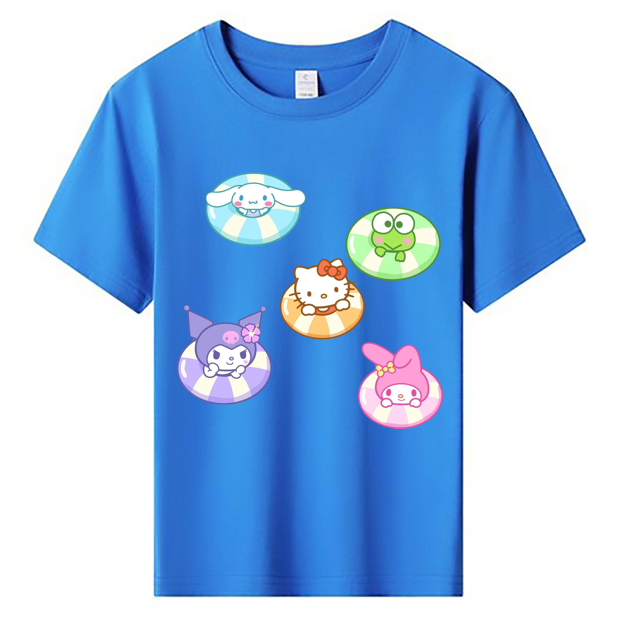 サンリオファミリー - 綿100% キッズTシャツ ・ フロントプリント ・ 快適 通気性 ・ スポーツ カジュアル 散歩用
