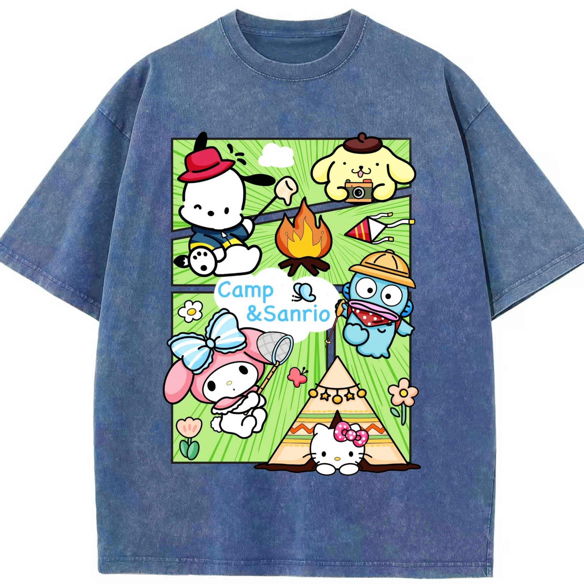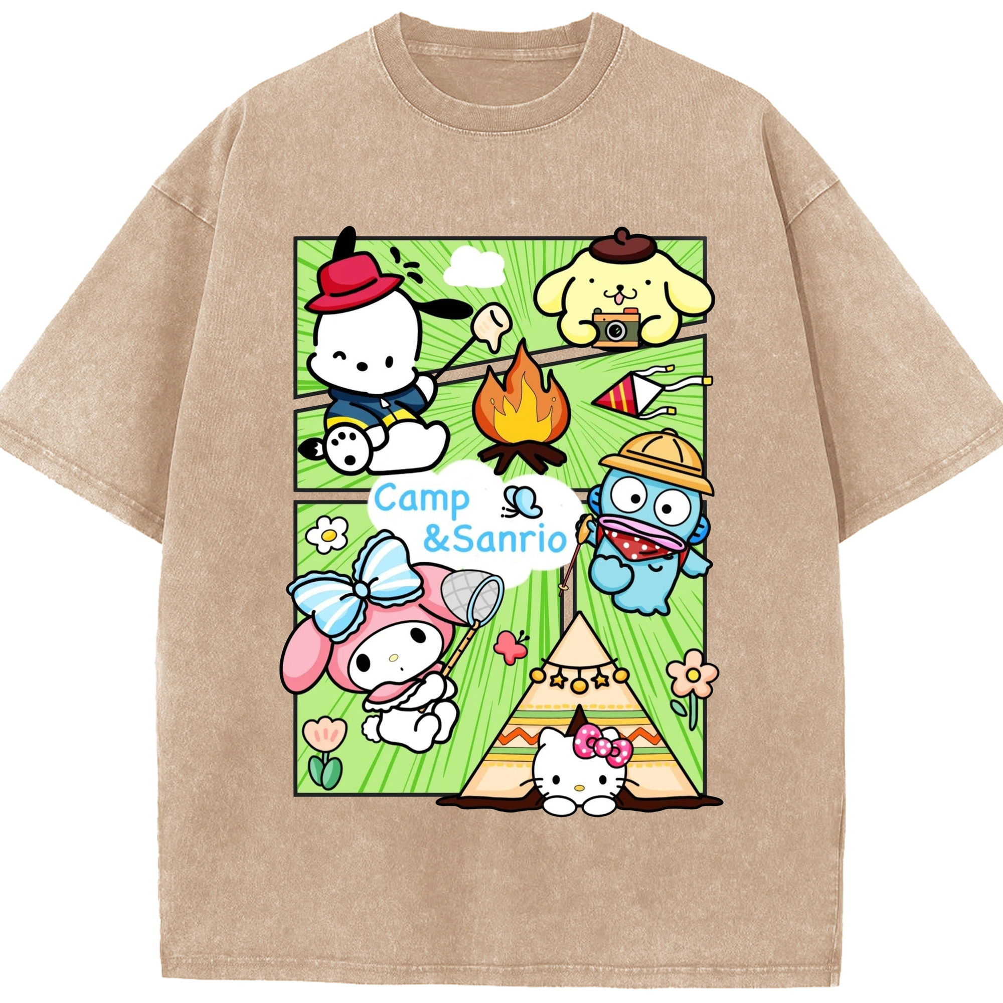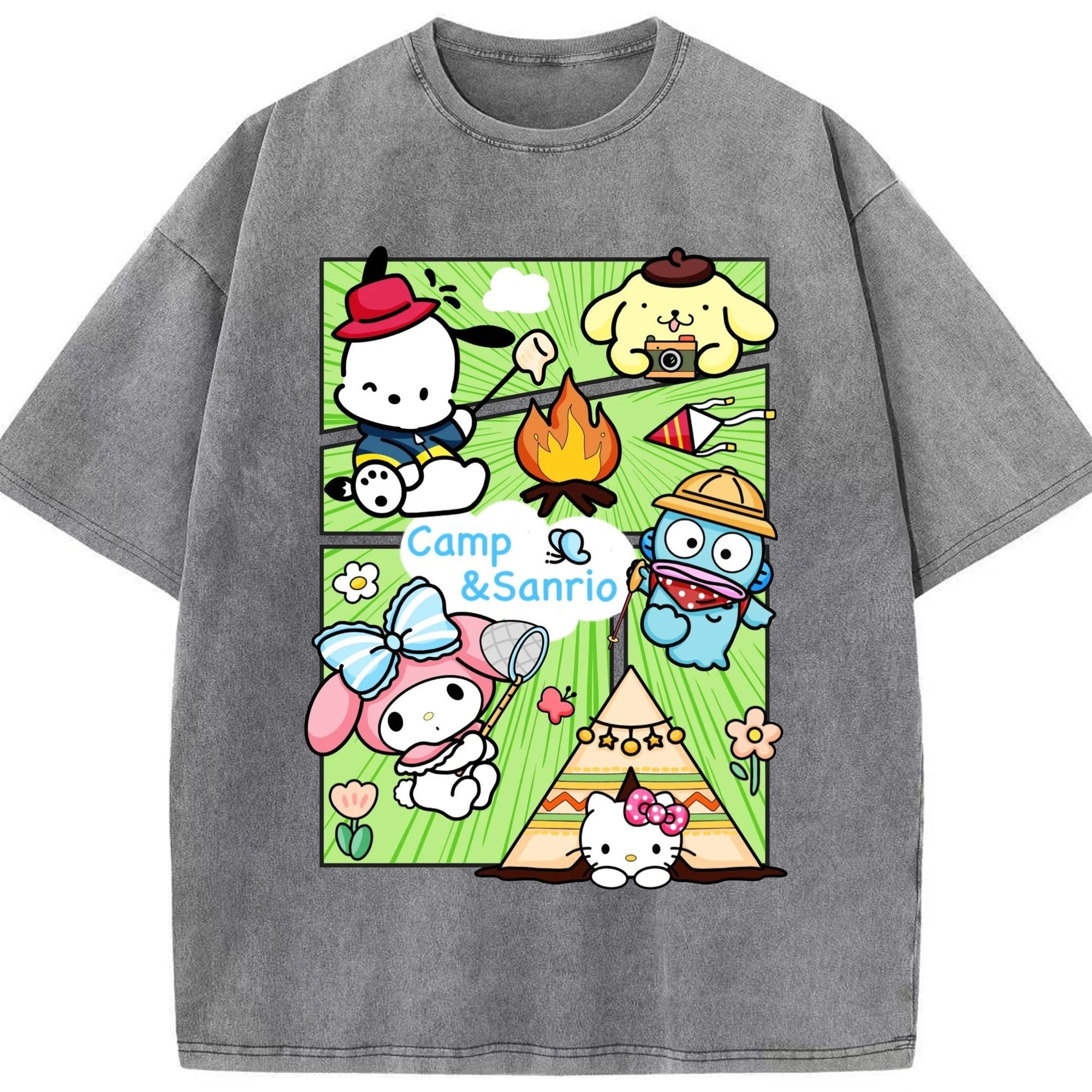 おもしろサンリオ - 綿100% ヴィンテージ風 半袖Tシャツ ・ 背面プリント ・ 柔らか肌触り ・ 通気性 快適 ・ スポーツ カジュアル 外出用