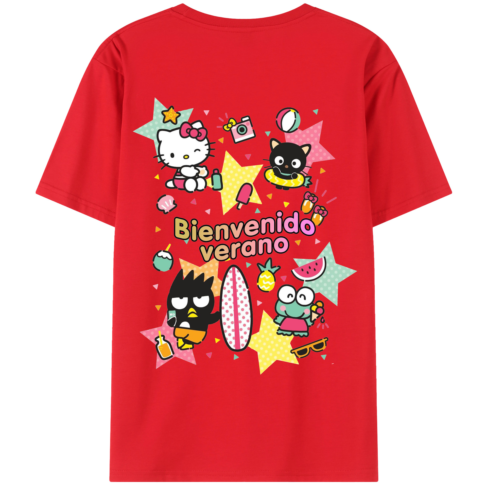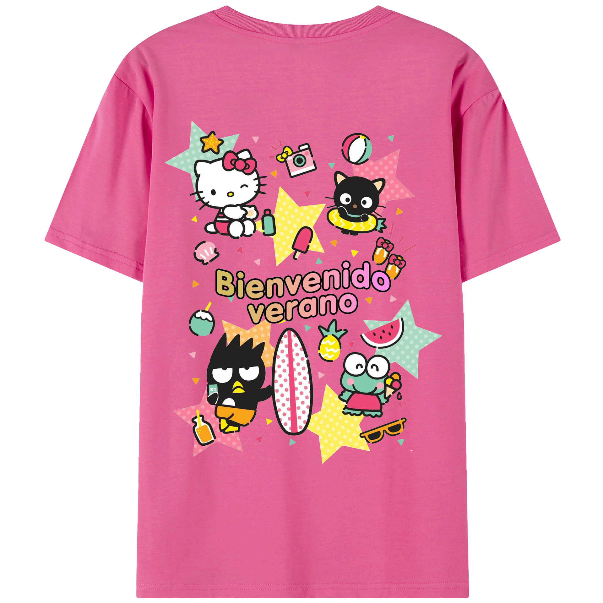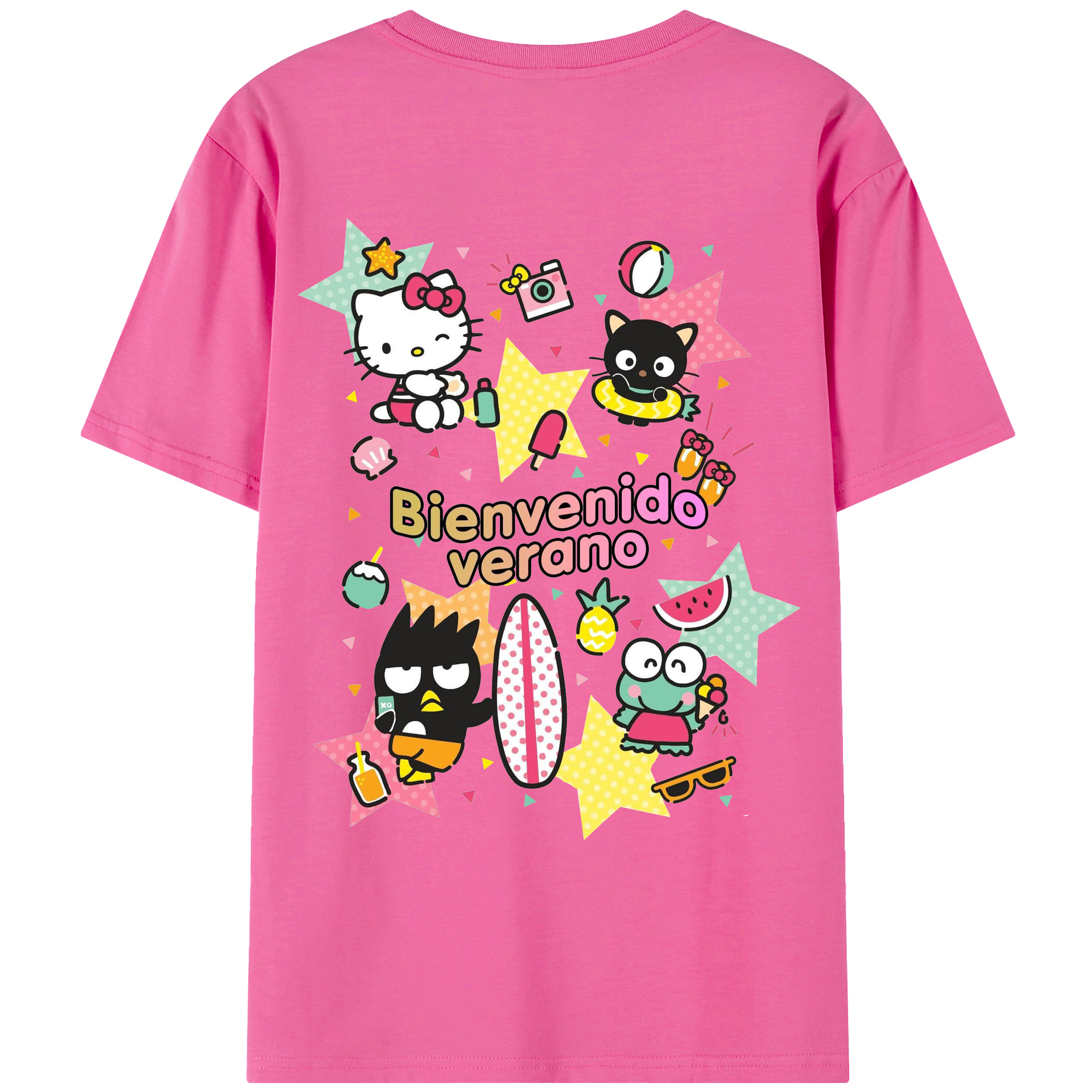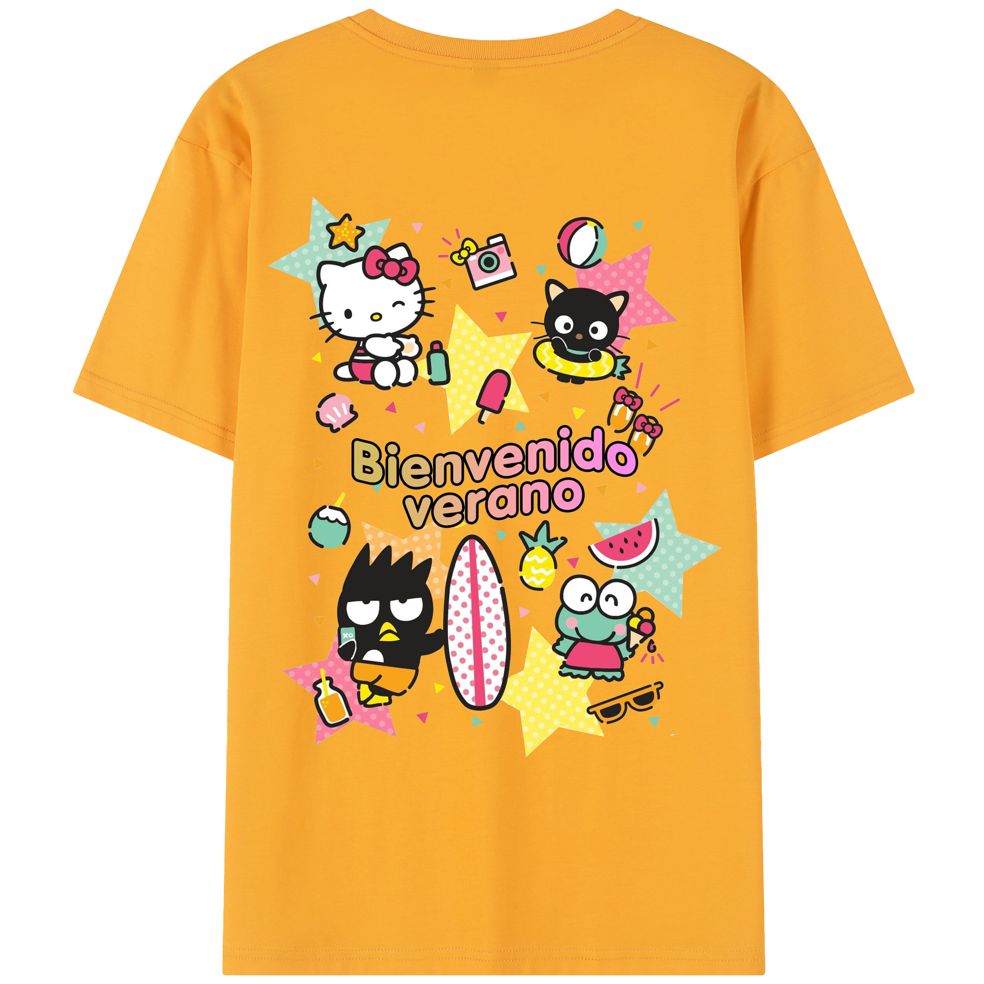 おもしろサンリオ - レディース半袖Tシャツ ・ 綿100% ・ バックプリント ・ 強化クルーネック ・ 二重折り袖口 ・ 快適 通気性 ・ フィットネス カジュアル 旅行用