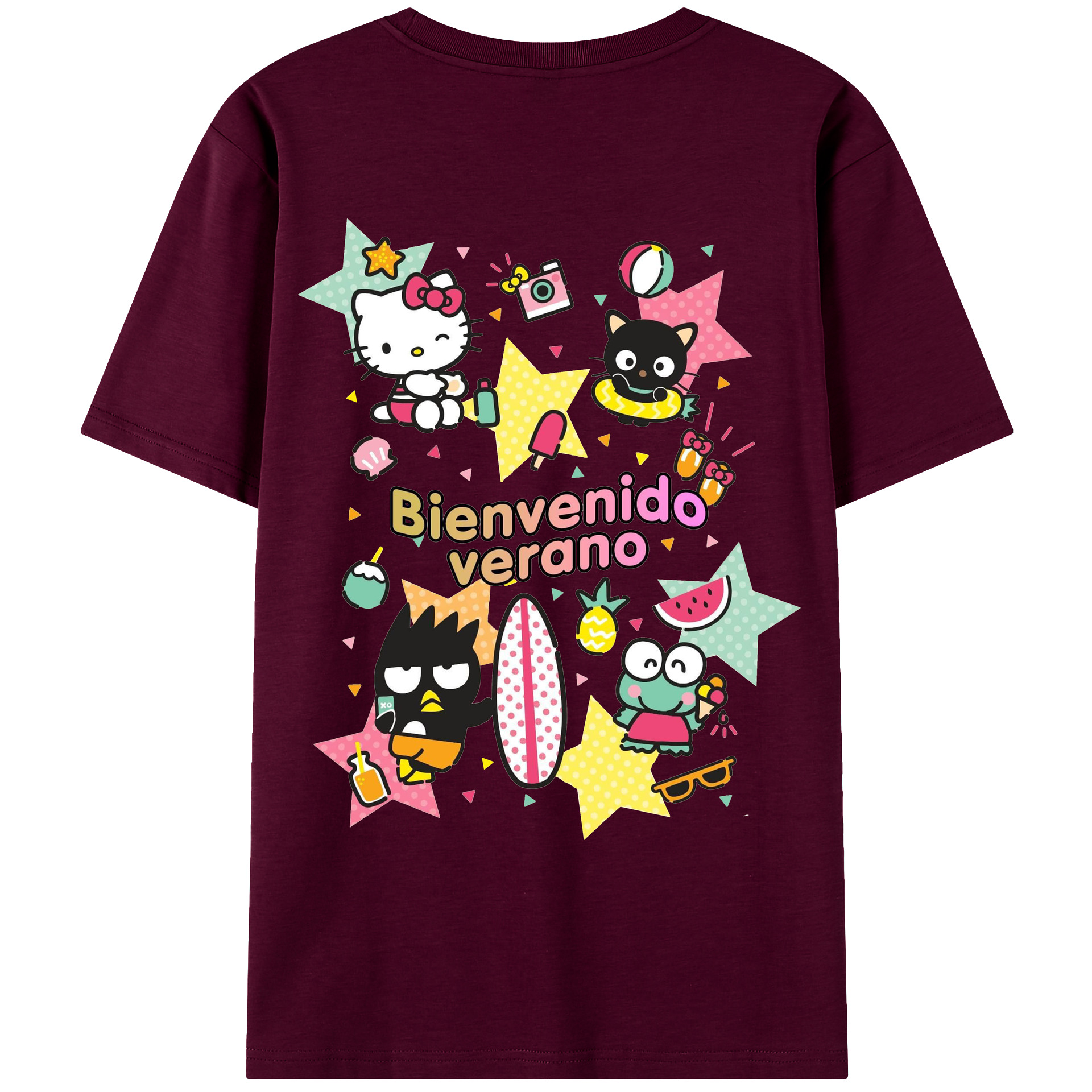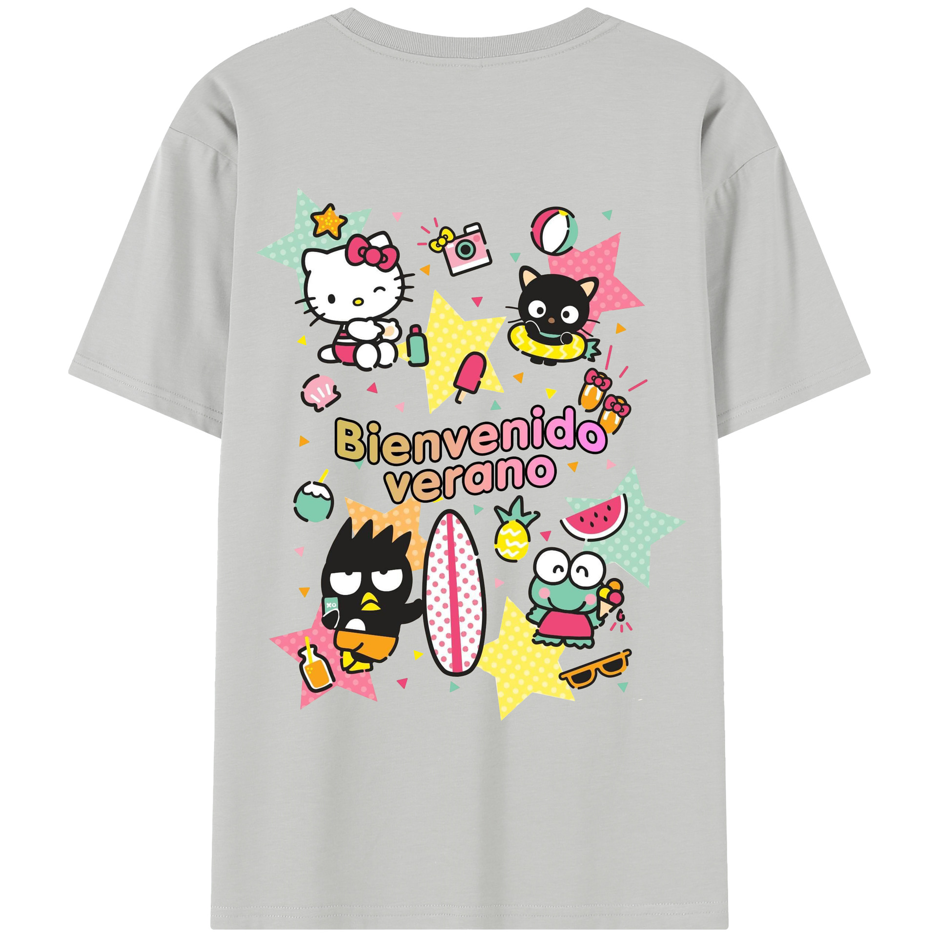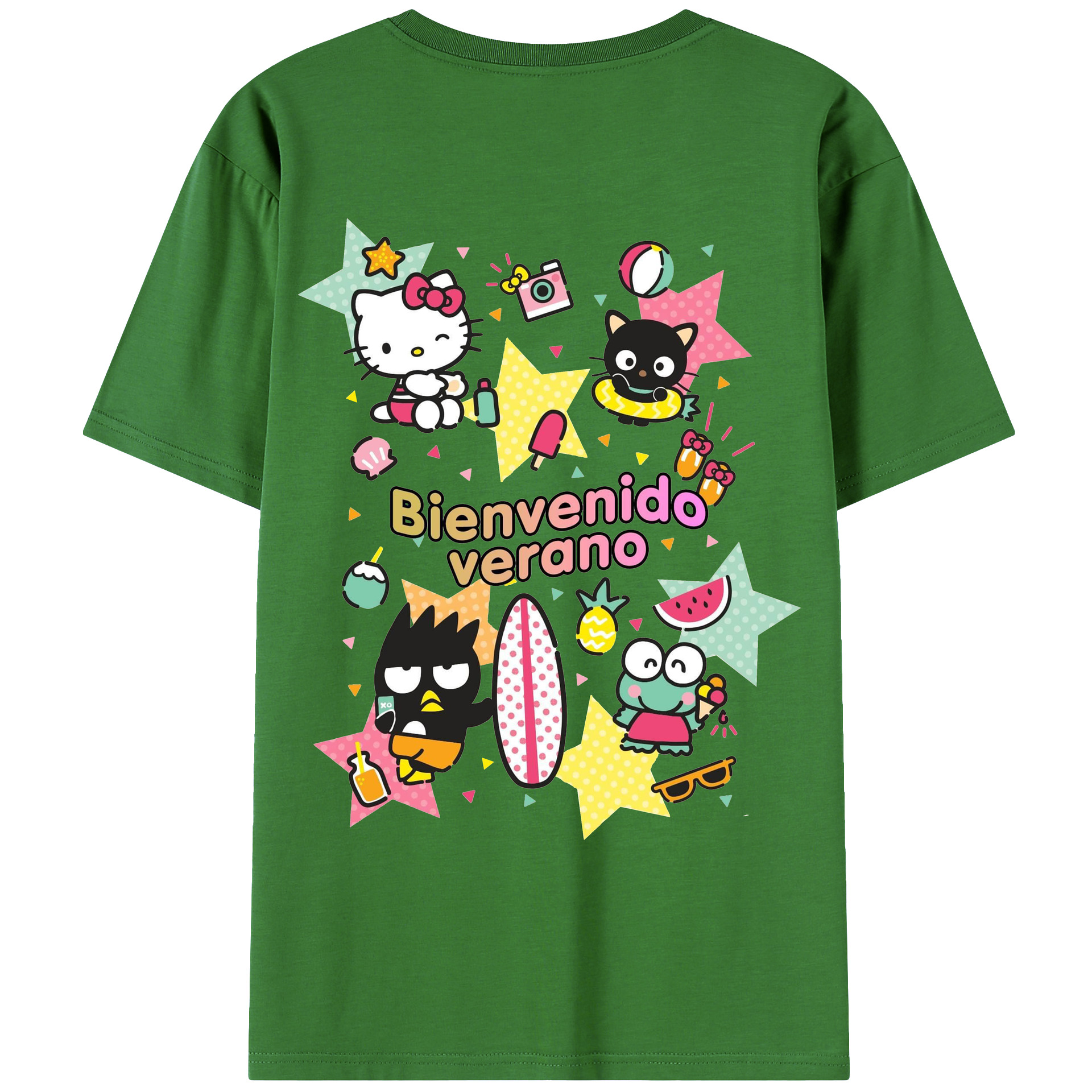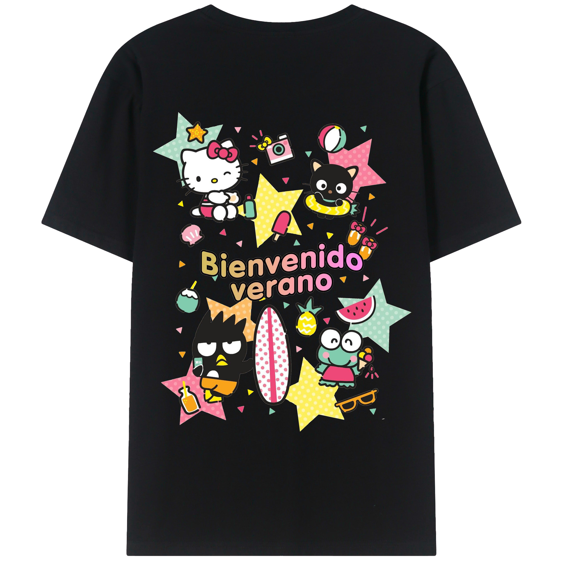 おもしろサンリオ - レディース半袖Tシャツ ・ 綿100% ・ バックプリント ・ 強化クルーネック ・ 二重折り袖口 ・ 快適 通気性 ・ フィットネス カジュアル 旅行用