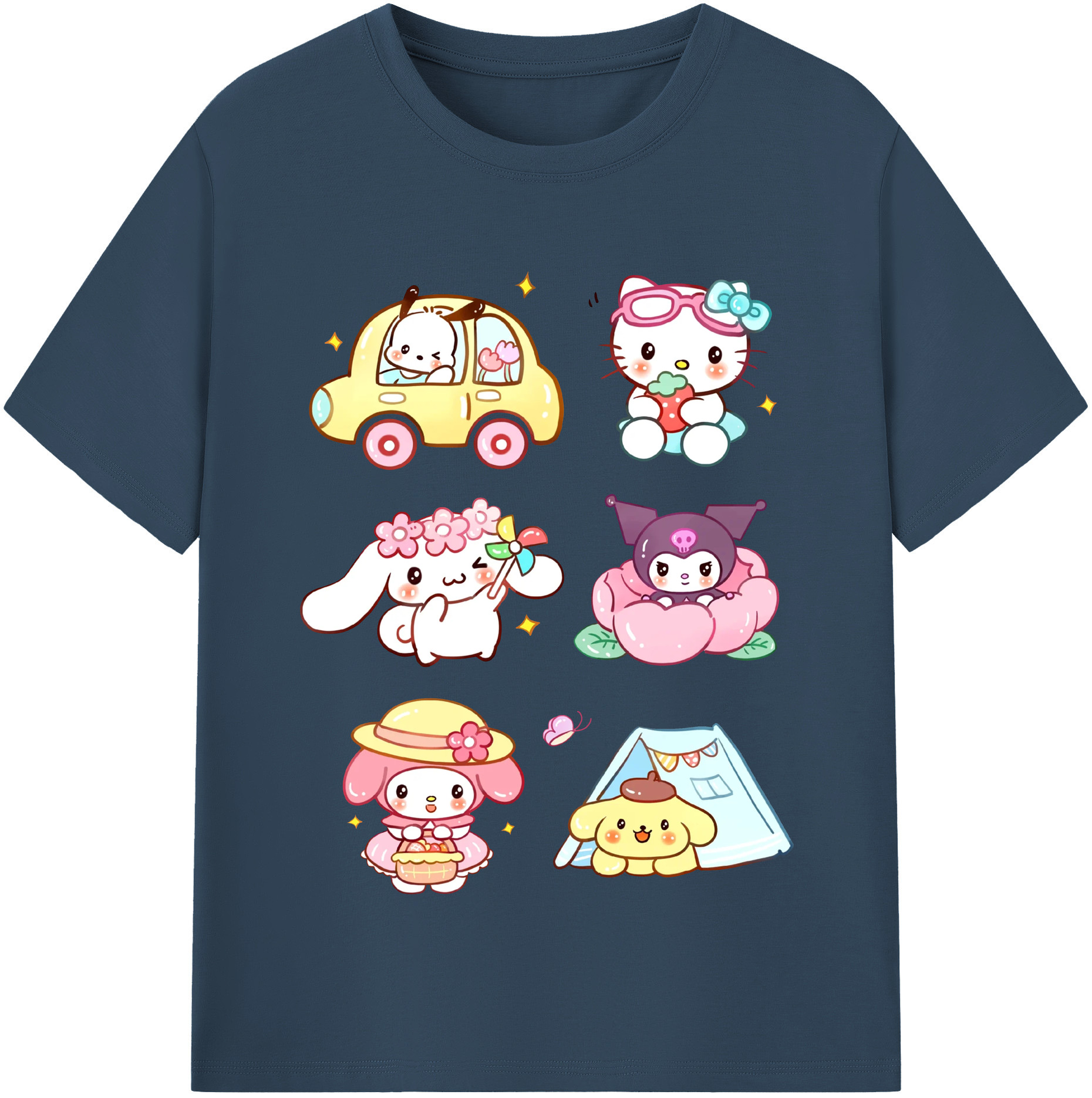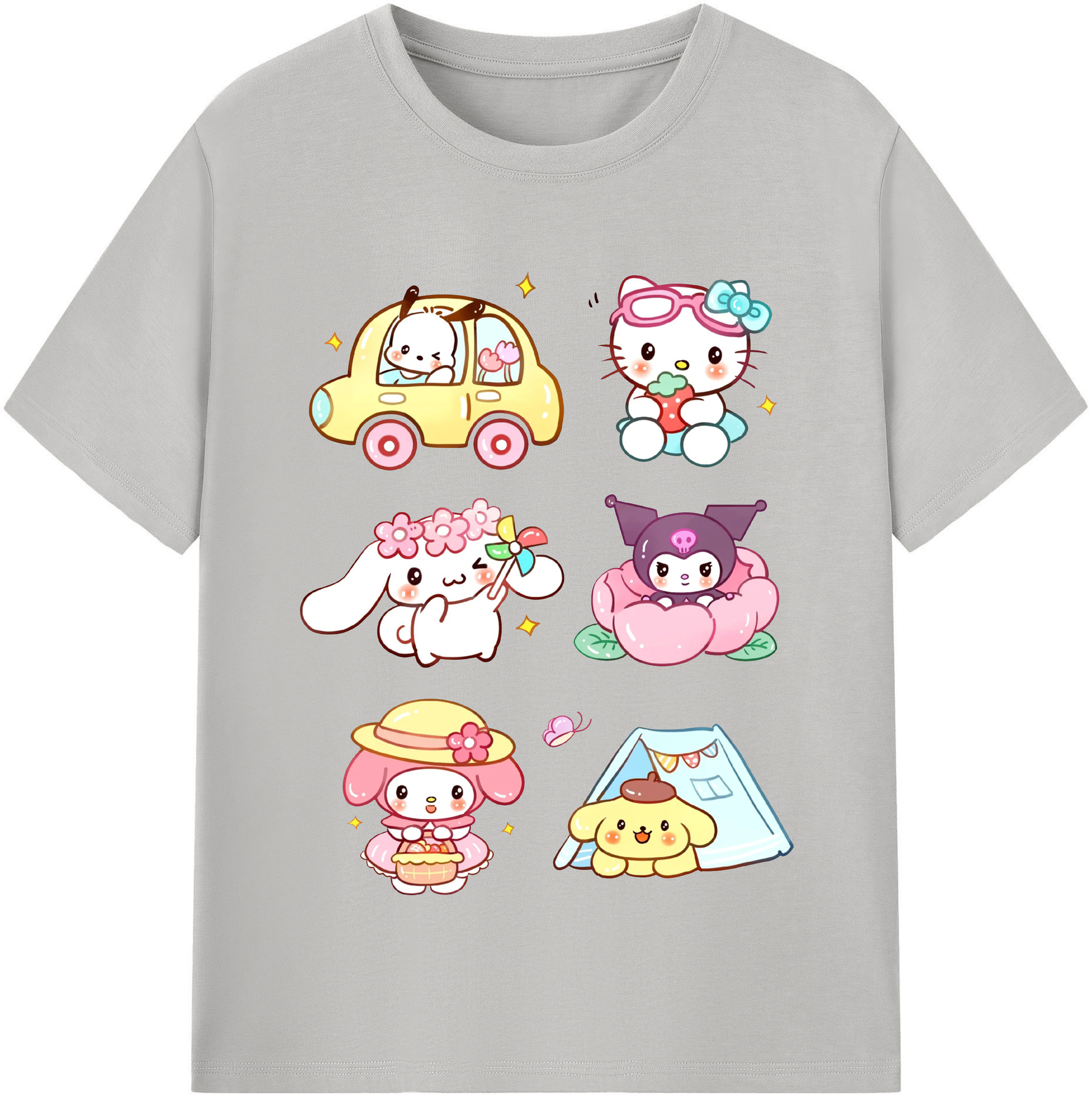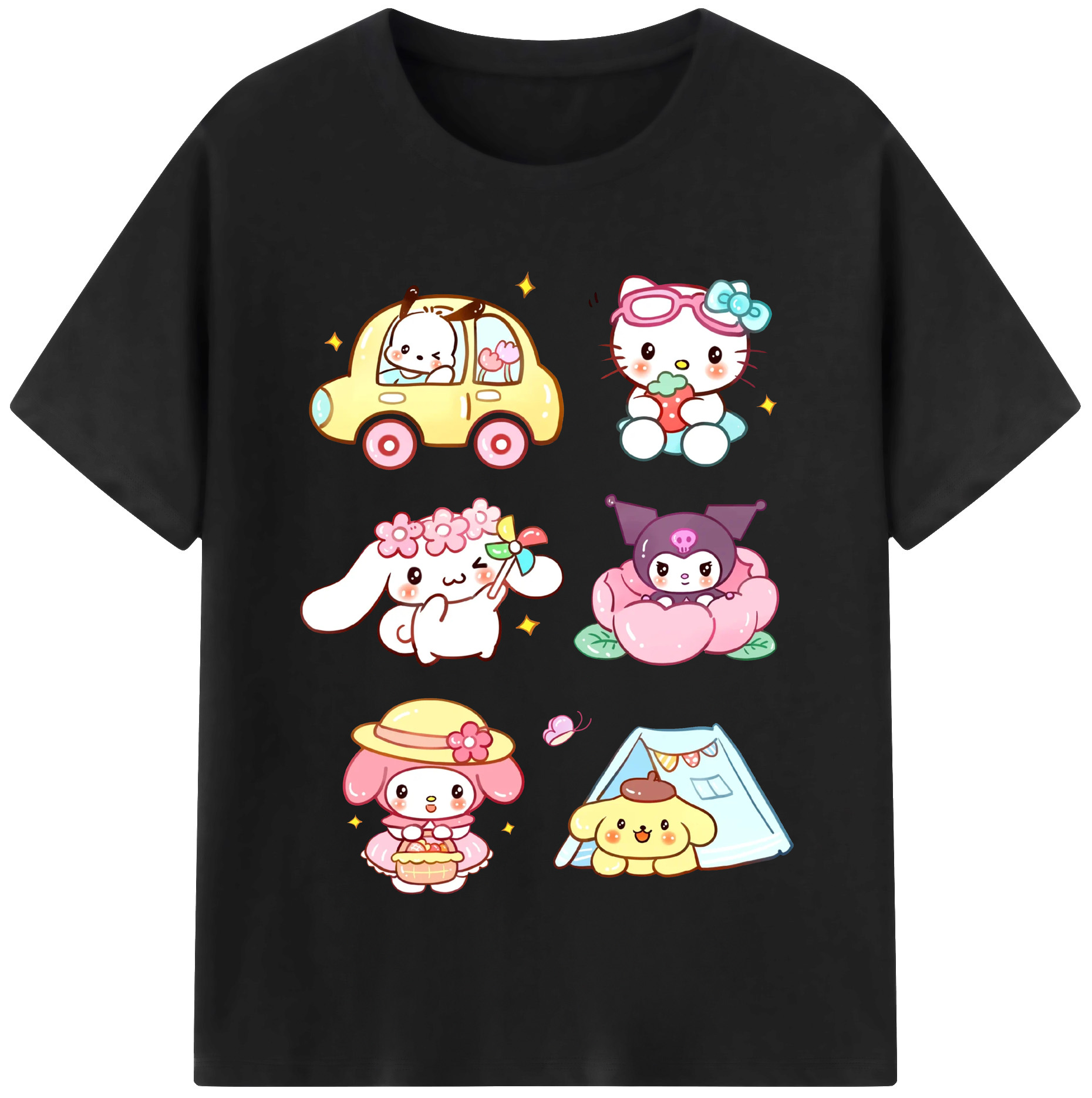 おもしろサンリオ - レディースカジュアルプリントTシャツ ・ 綿100% ・ クルーネック ・ フロントプリント ・ 柔らかく快適 ・ フィットネス カジュアル 旅行用