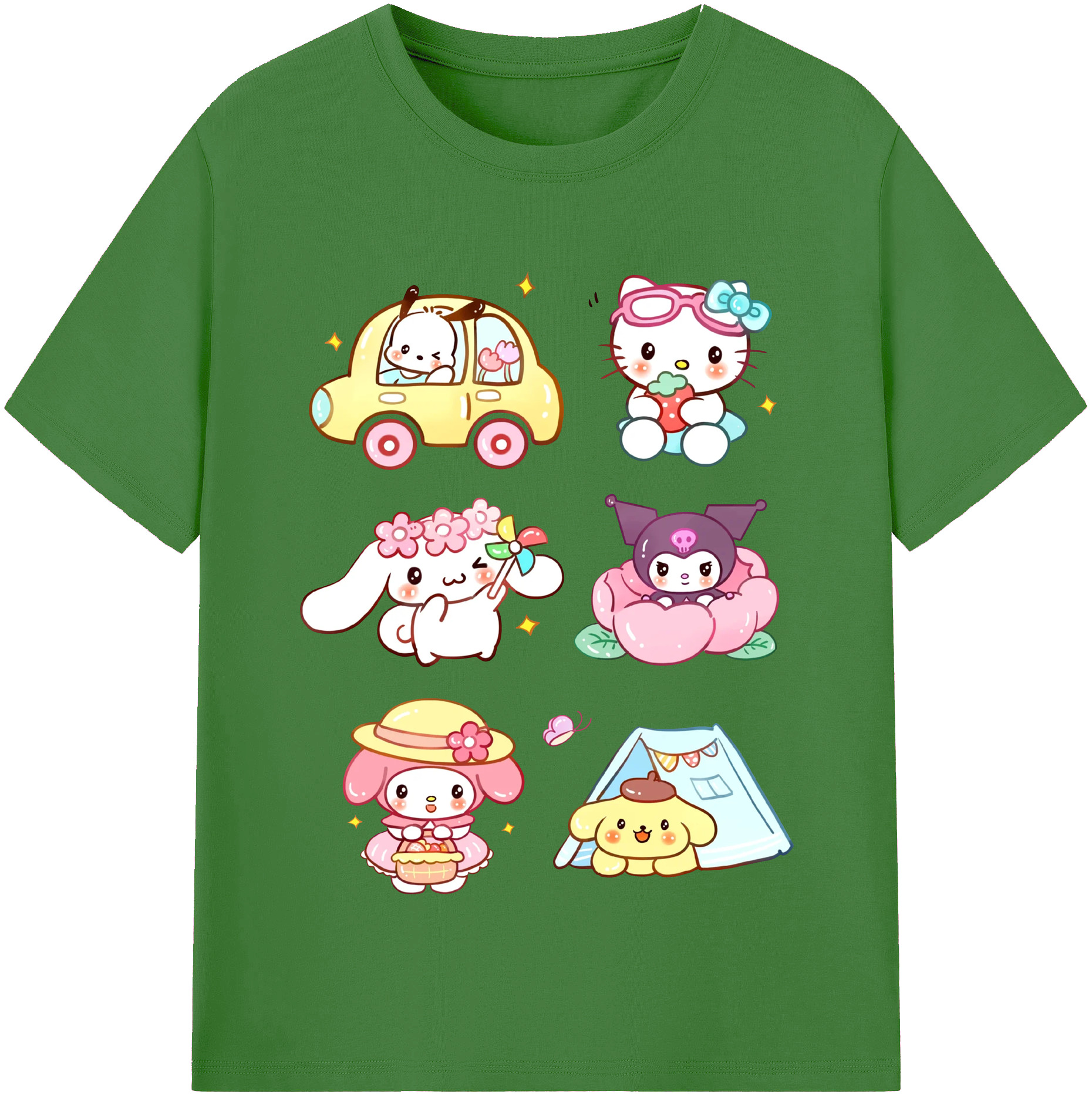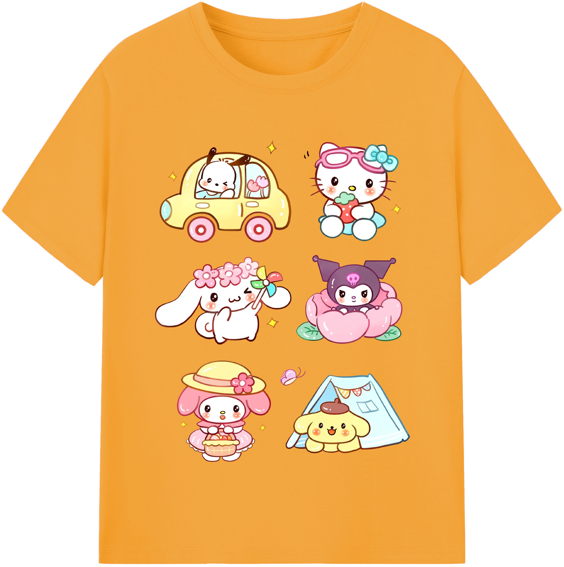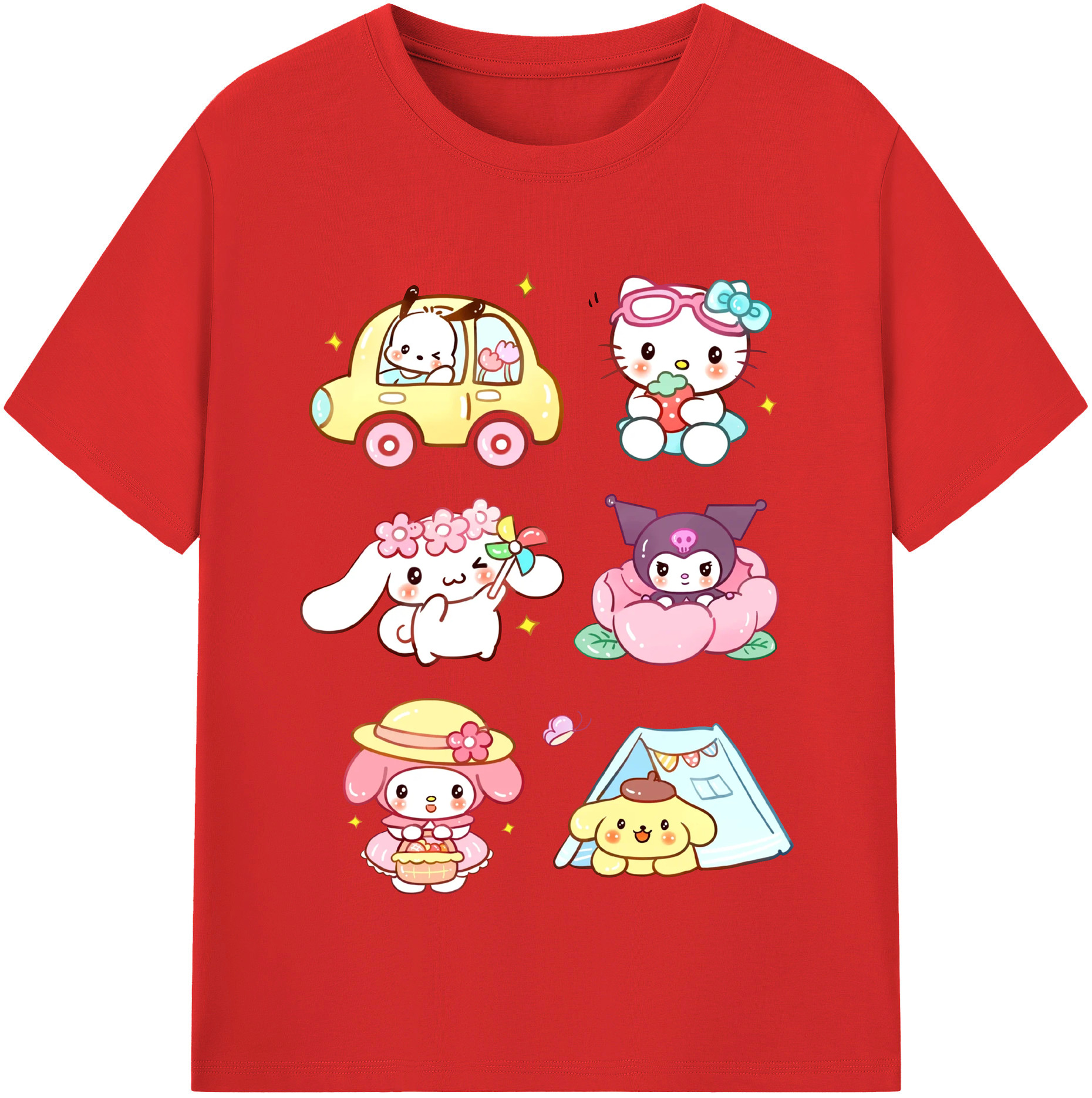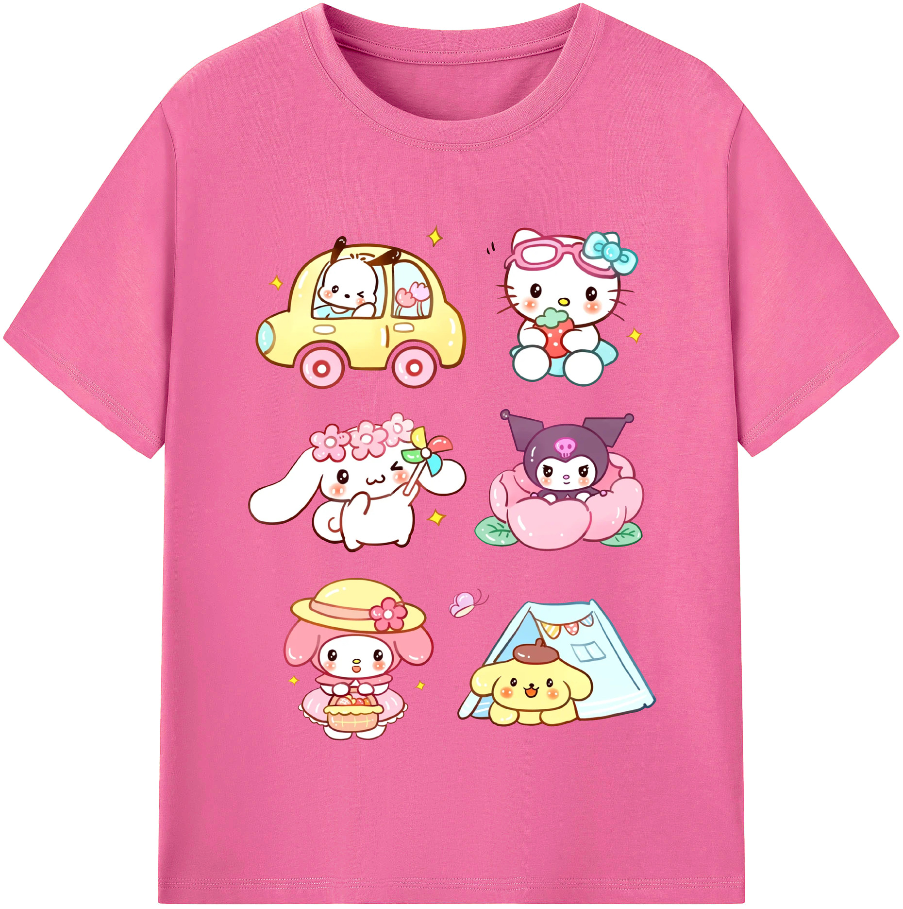 おもしろサンリオ - レディースカジュアルプリントTシャツ ・ 綿100% ・ クルーネック ・ フロントプリント ・ 柔らかく快適 ・ フィットネス カジュアル 旅行用