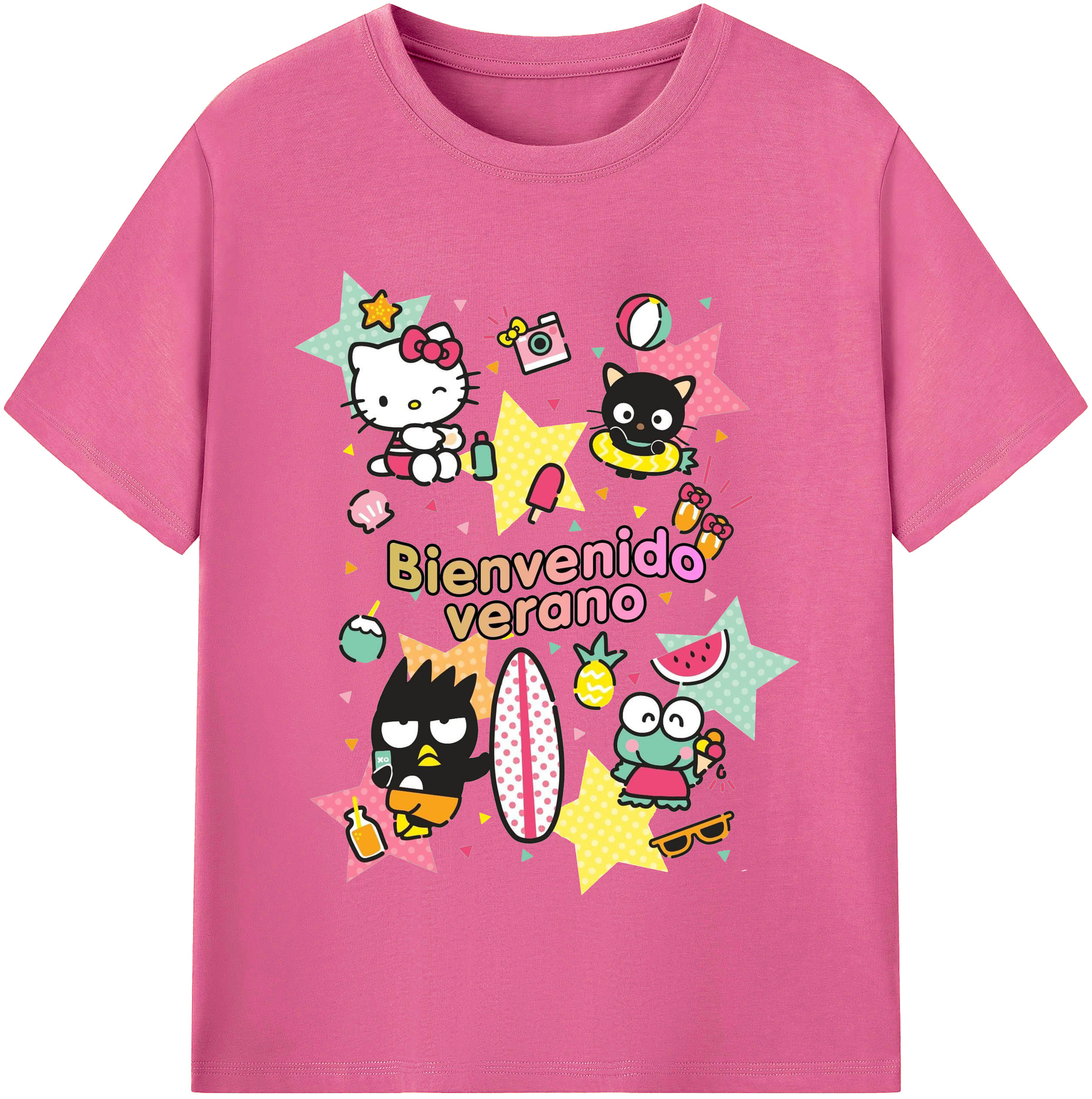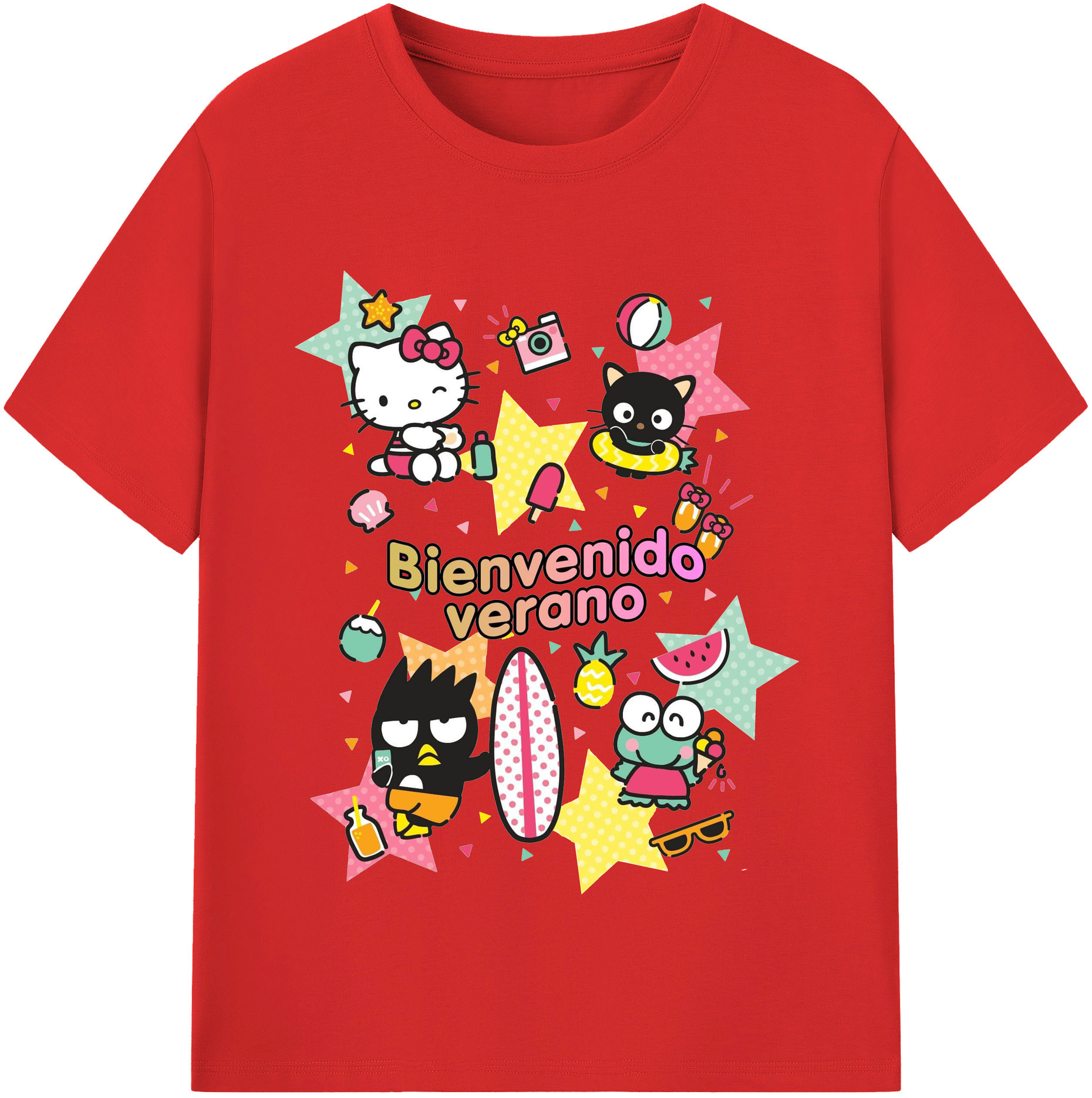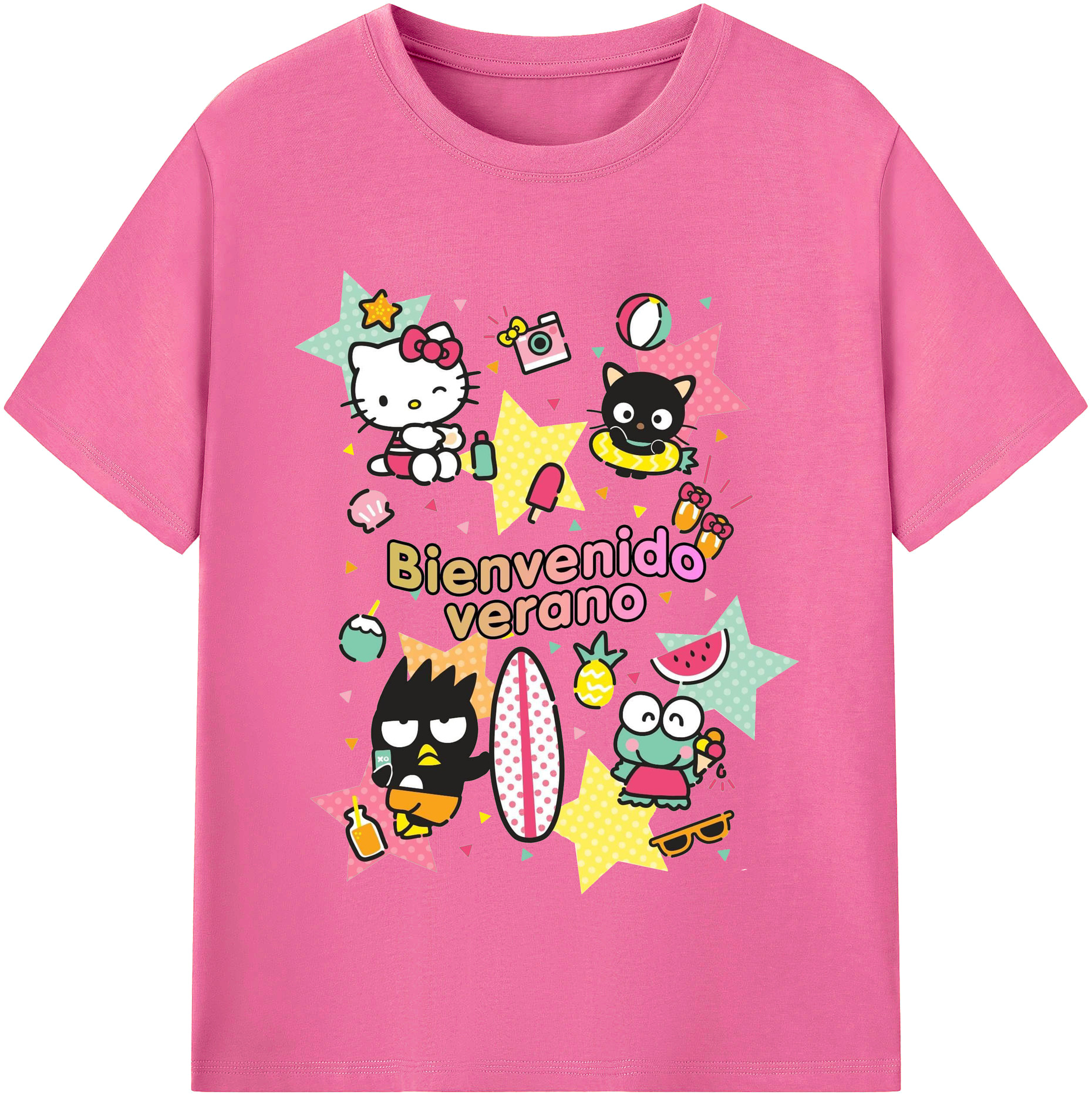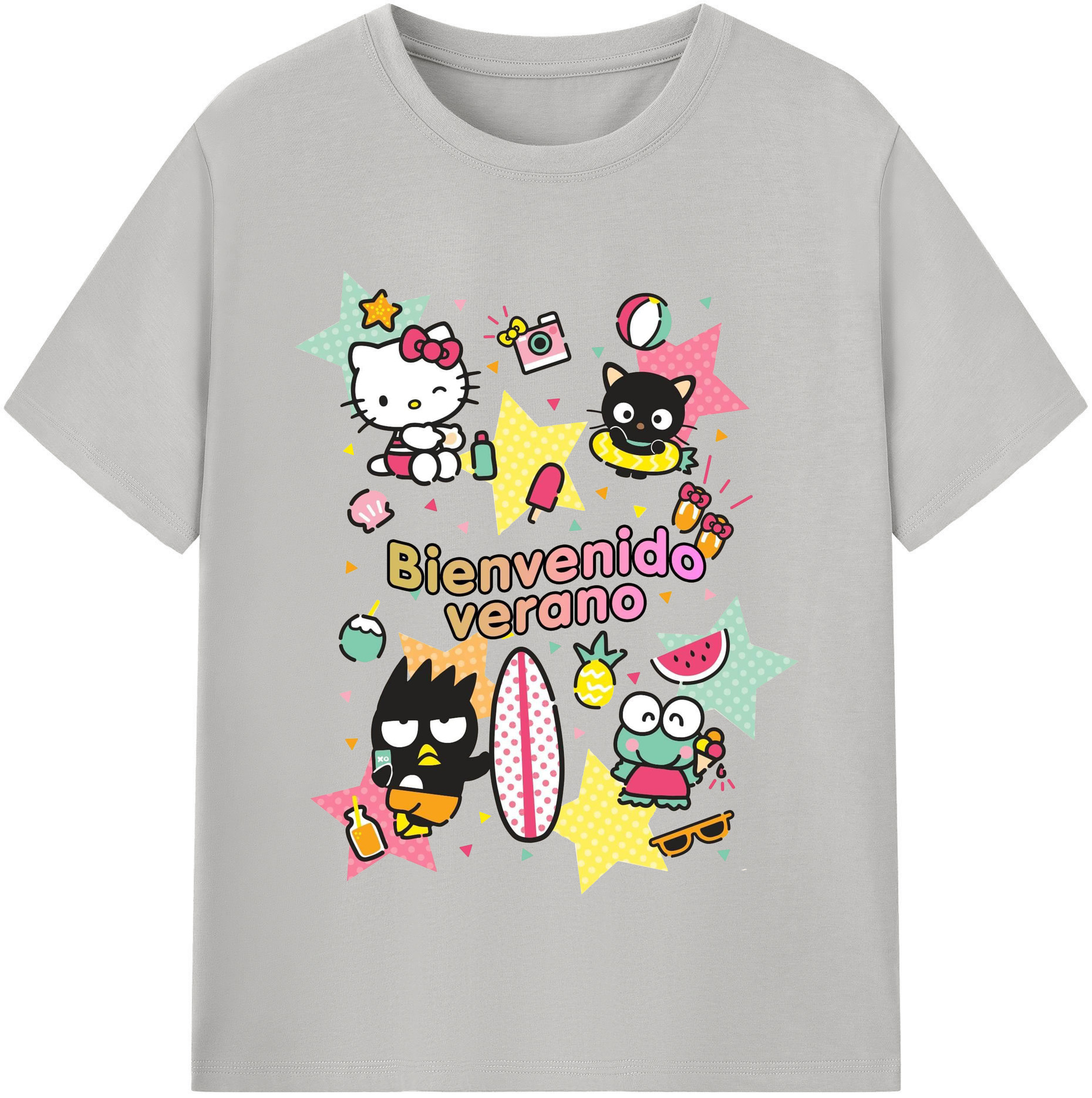 おもしろサンリオ - レディースカジュアルプリントTシャツ ・ 綿100% ・ クルーネック ・ フロントプリント ・ 柔らかく快適 ・ フィットネス カジュアル 旅行用
