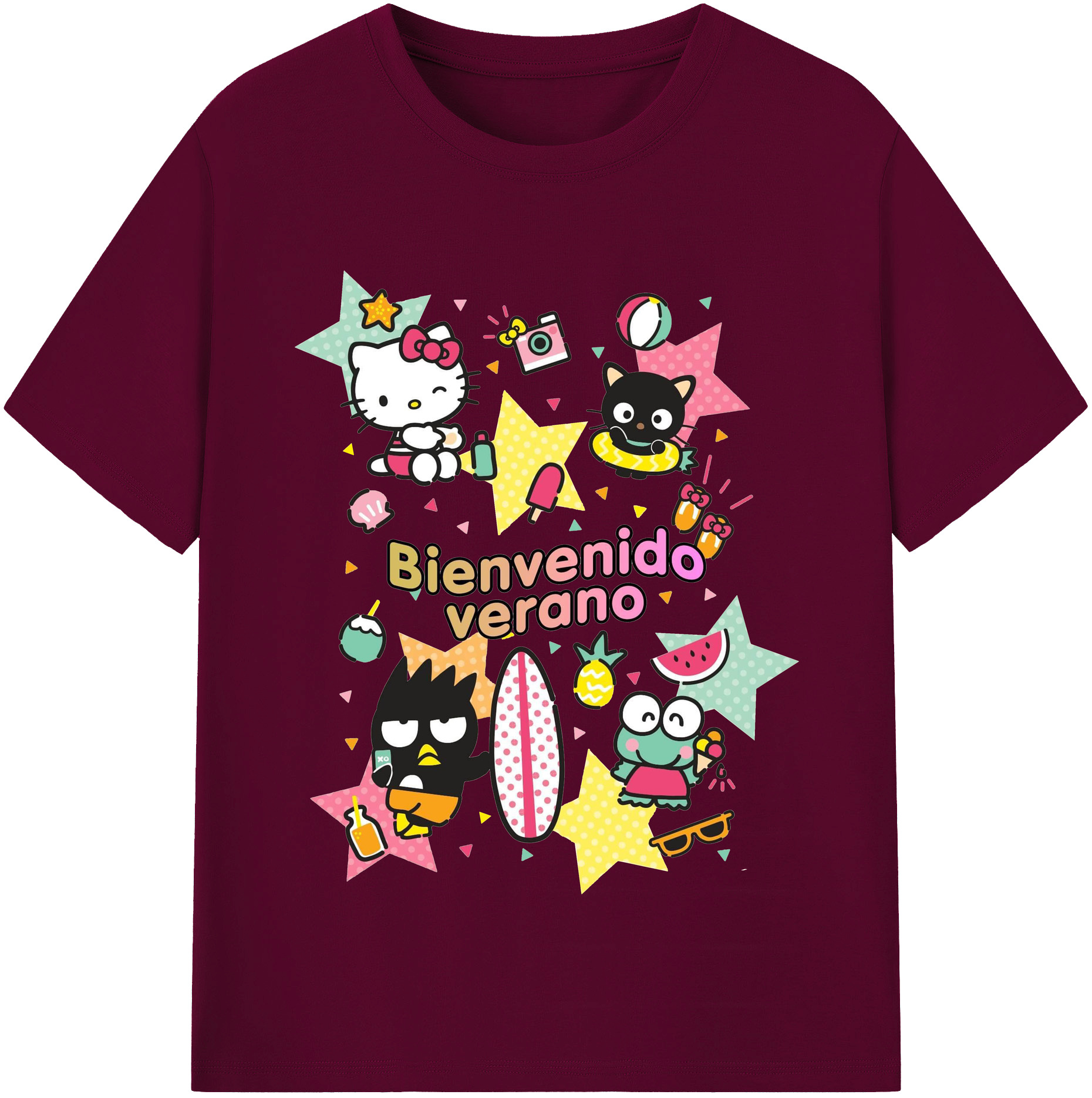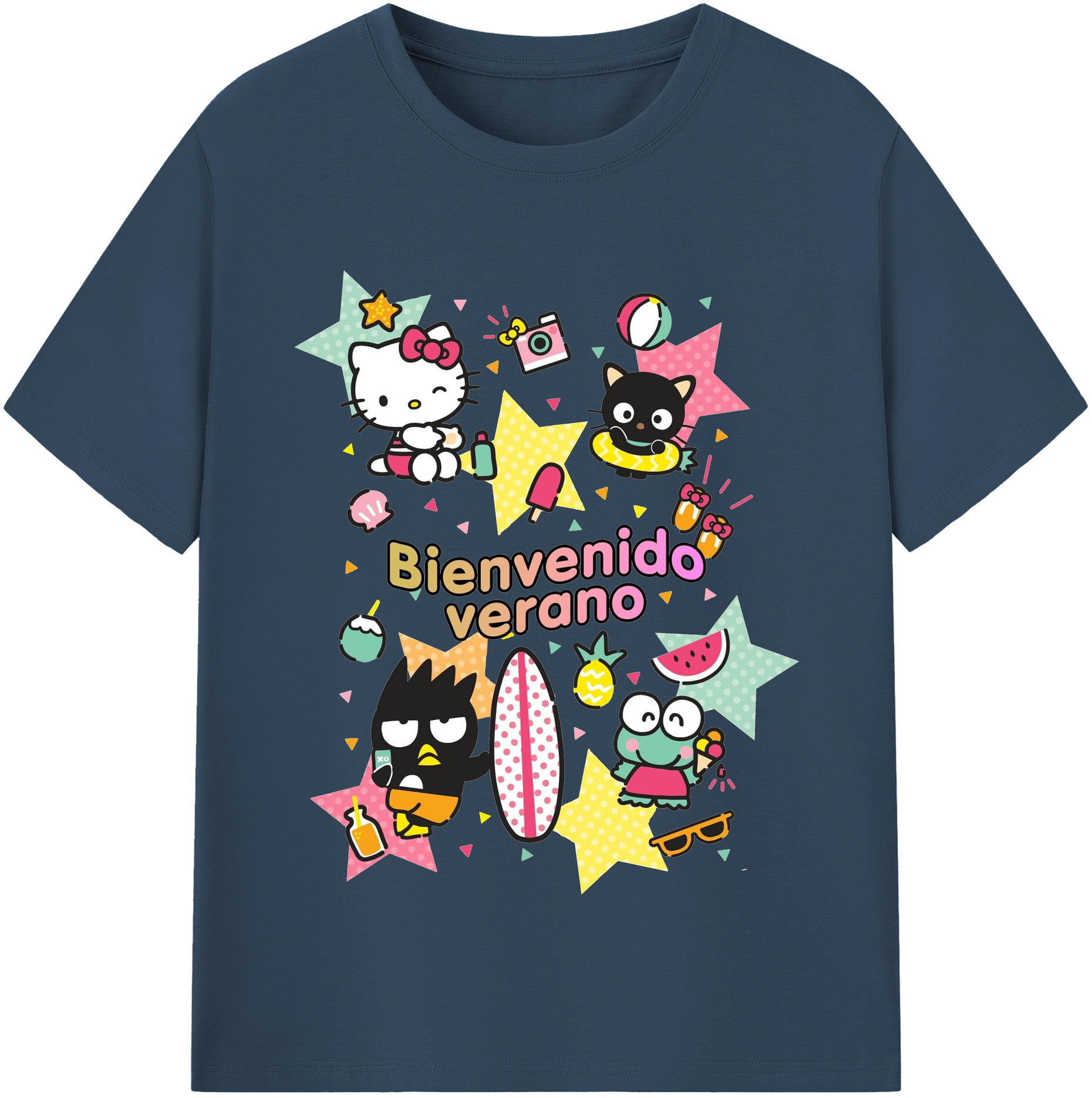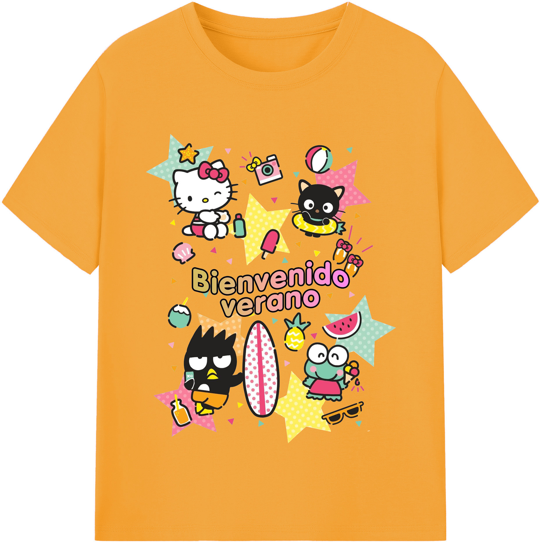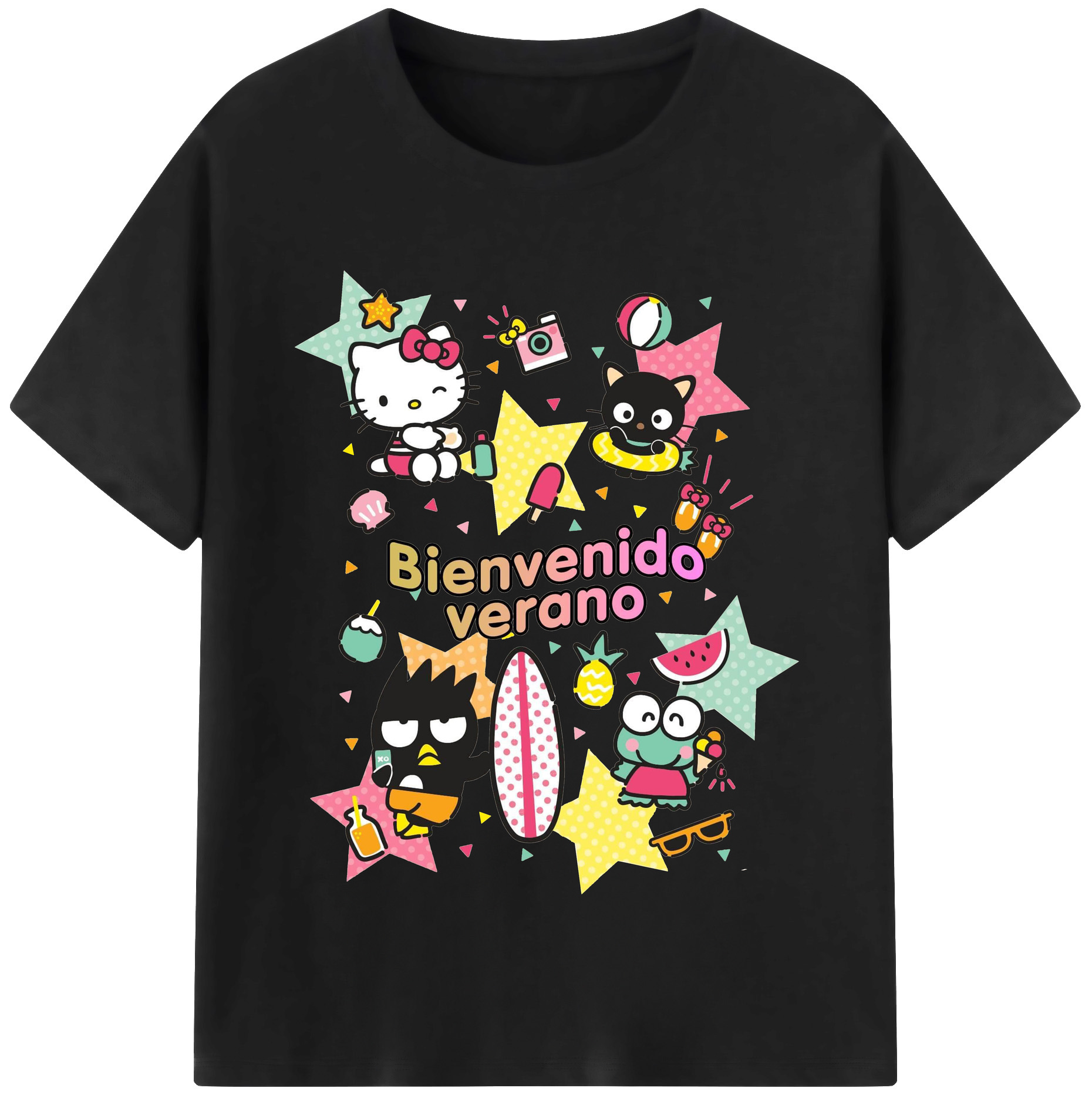 おもしろサンリオ - レディースカジュアルプリントTシャツ ・ 綿100% ・ クルーネック ・ フロントプリント ・ 柔らかく快適 ・ フィットネス カジュアル 旅行用