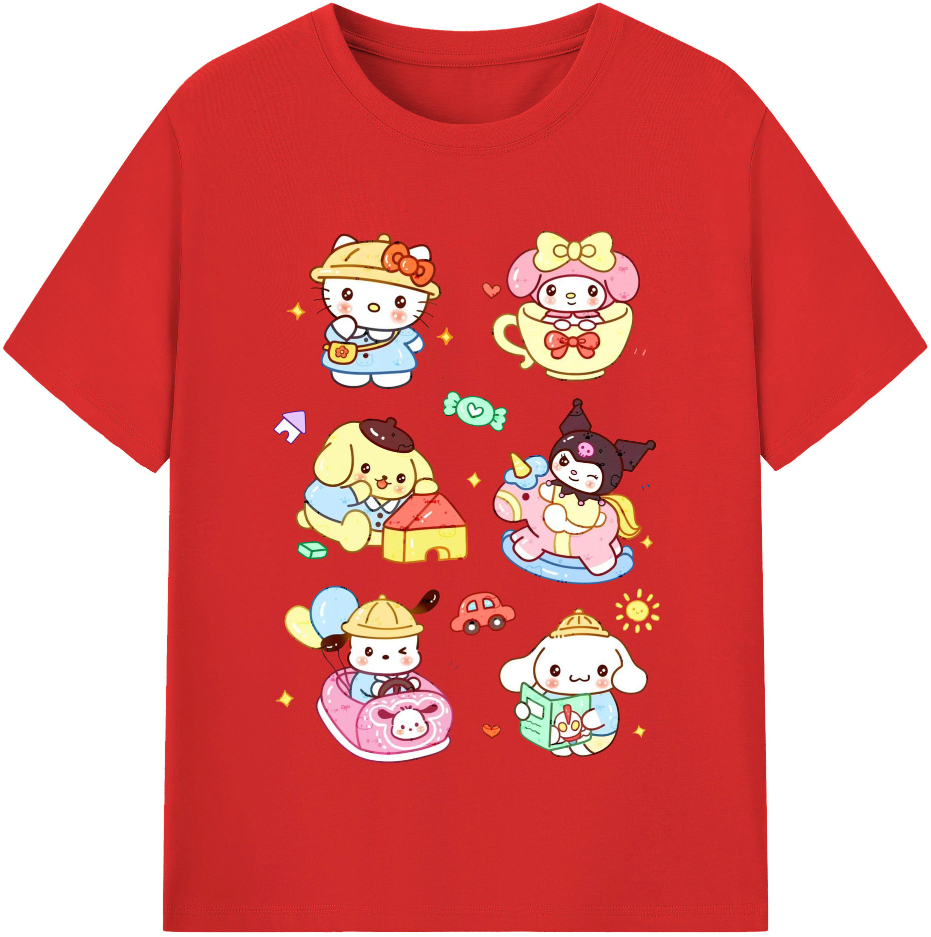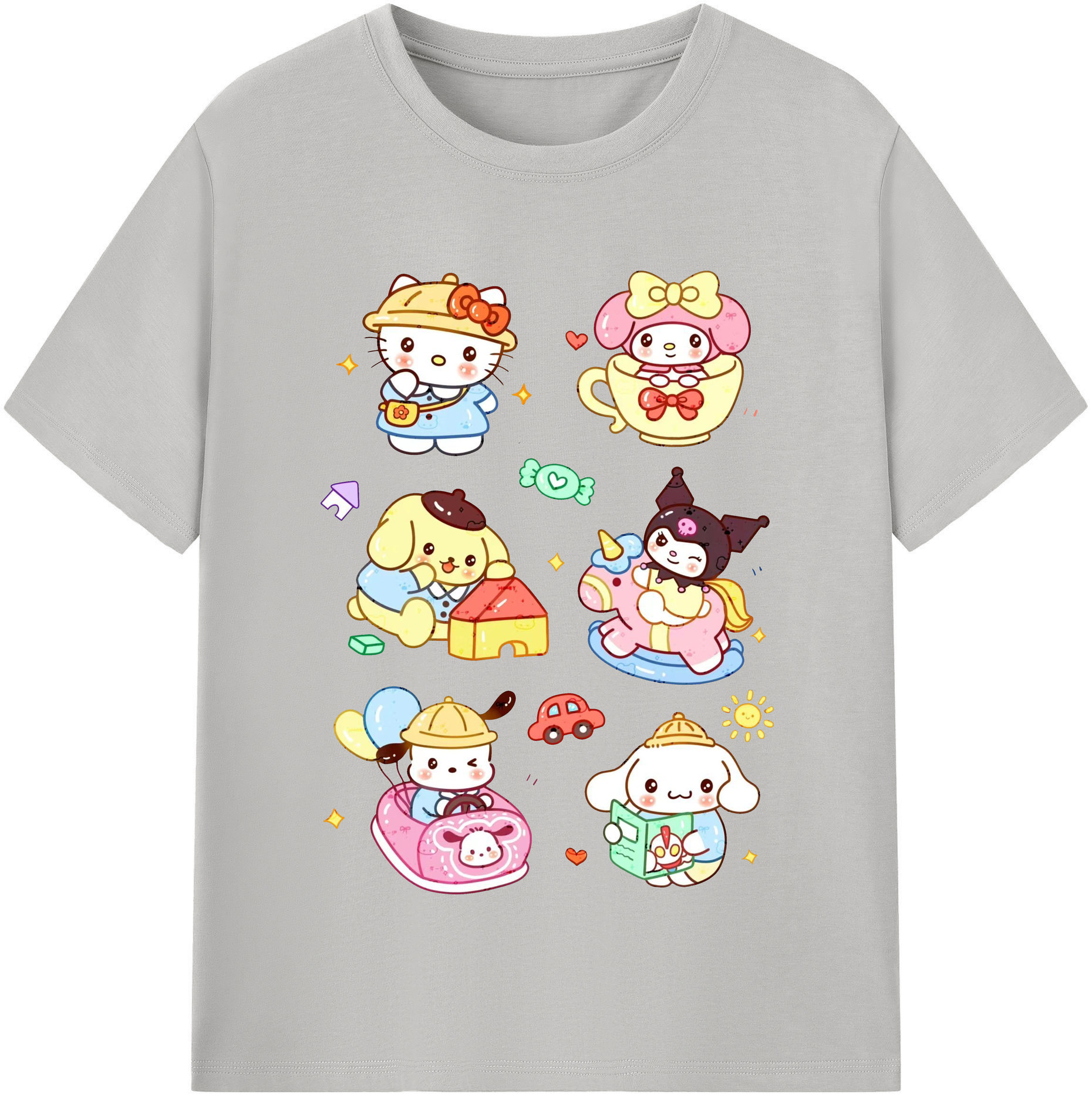 おもしろサンリオ - レディースカジュアルプリントTシャツ ・ 綿100% ・ クルーネック ・ フロントプリント ・ 柔らかく快適 ・ フィットネス カジュアル 旅行用