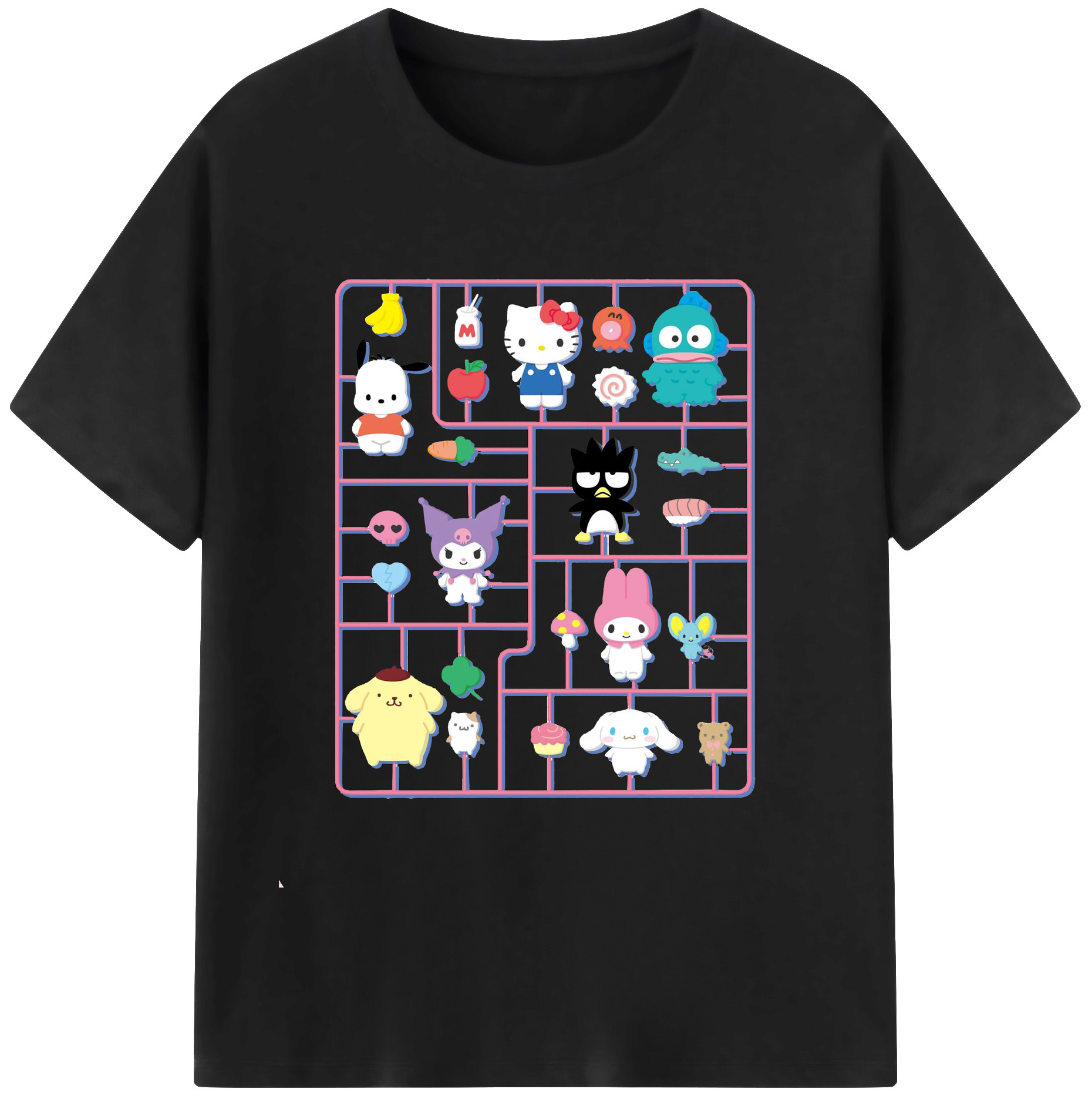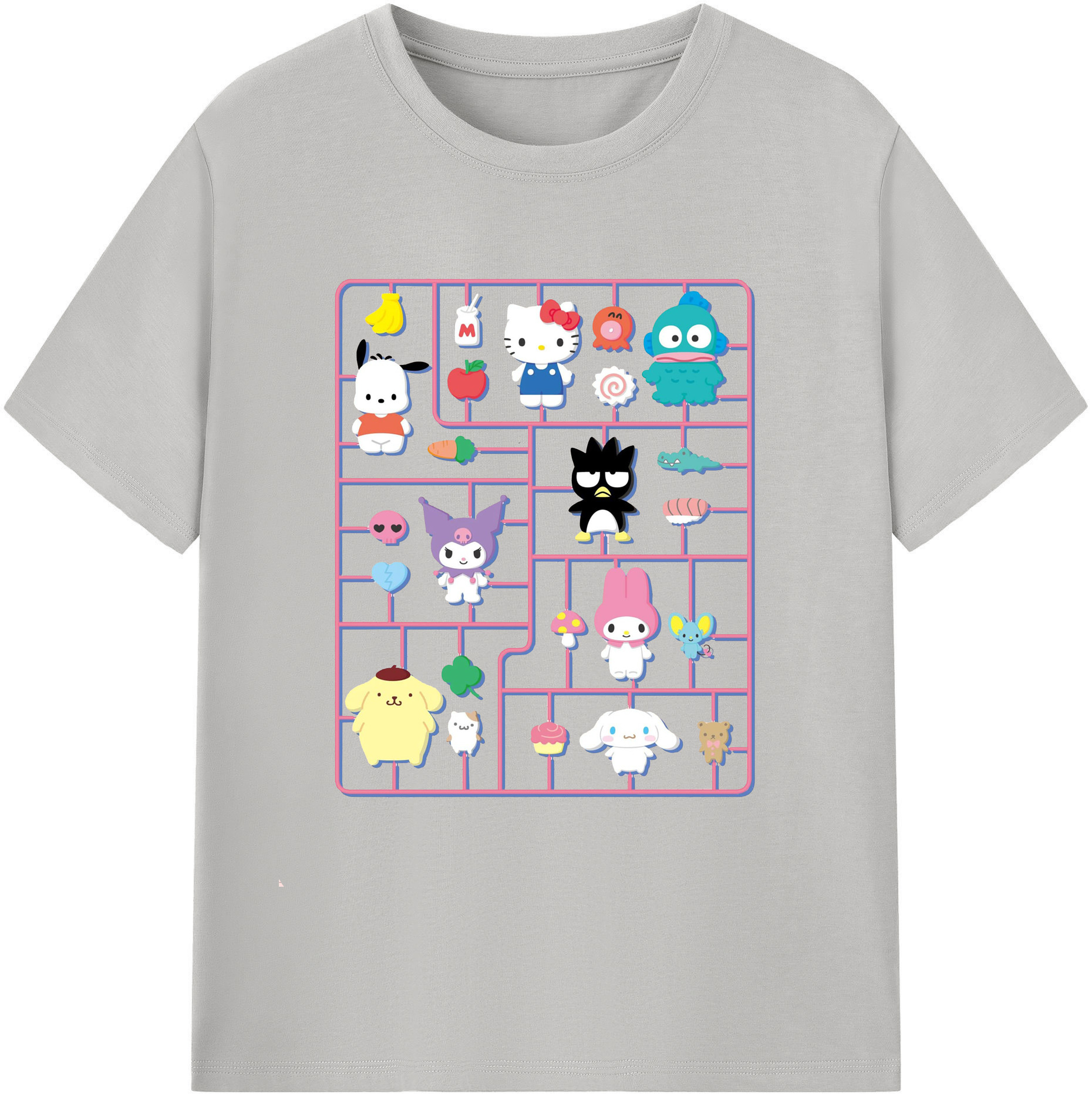 おもしろサンリオ - レディースカジュアルプリントTシャツ ・ 綿100% ・ クルーネック ・ フロントプリント ・ 柔らかく快適 ・ フィットネス カジュアル 旅行用