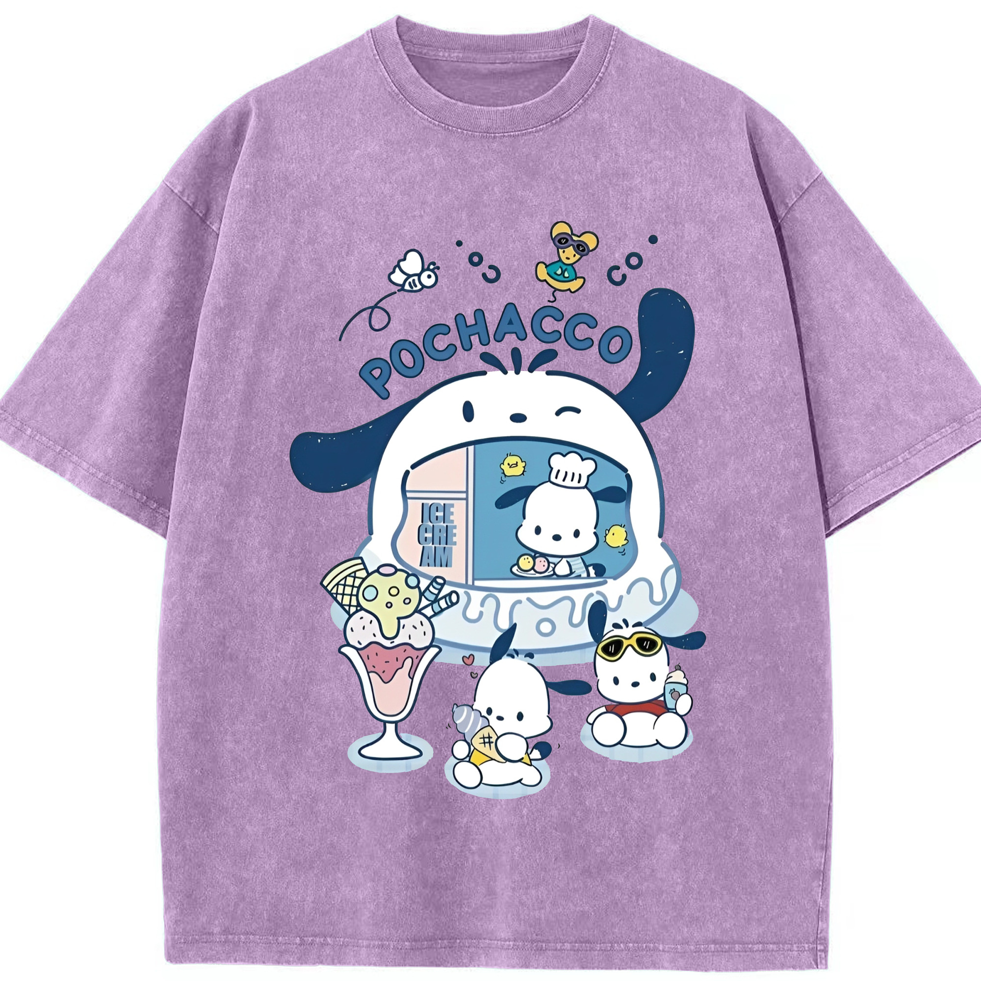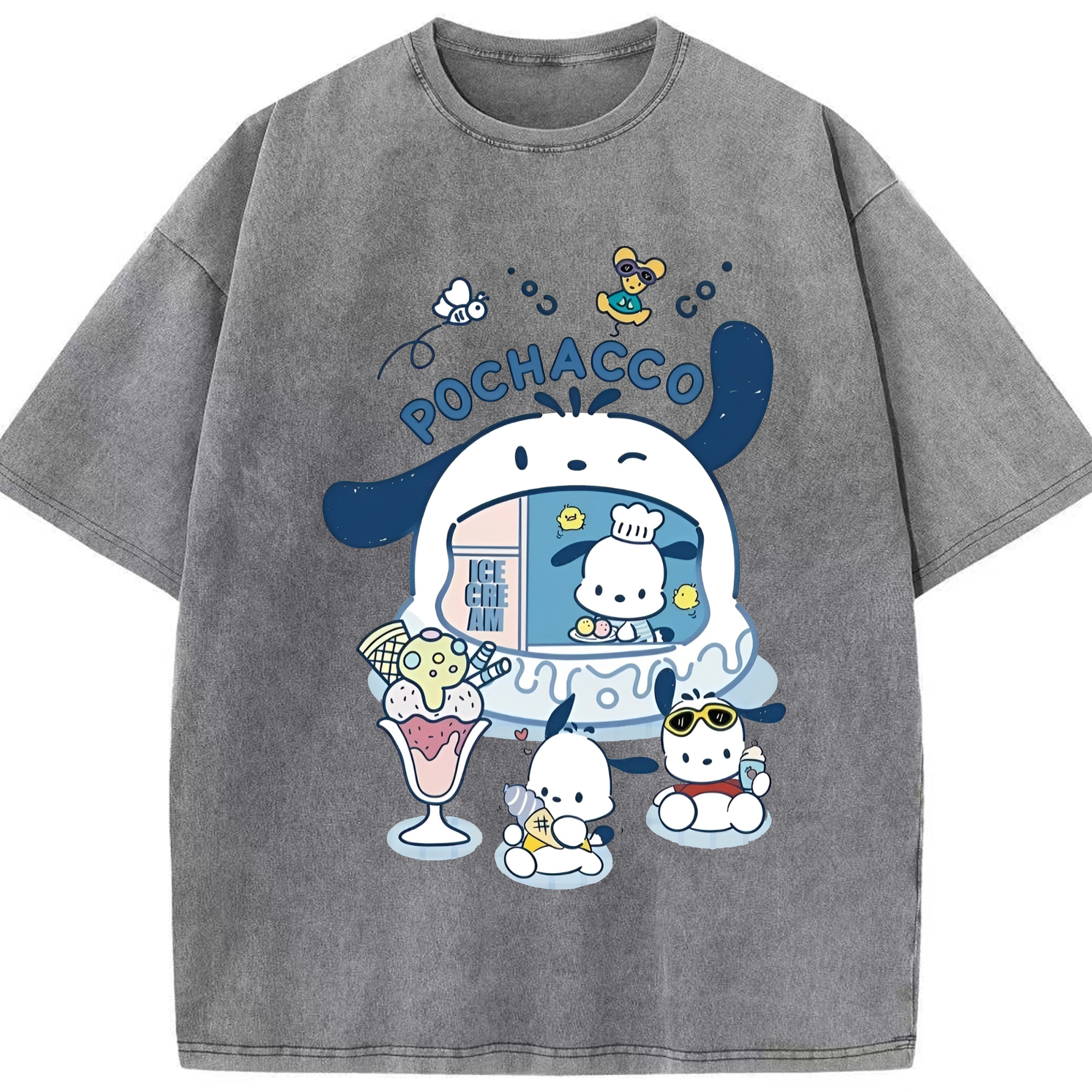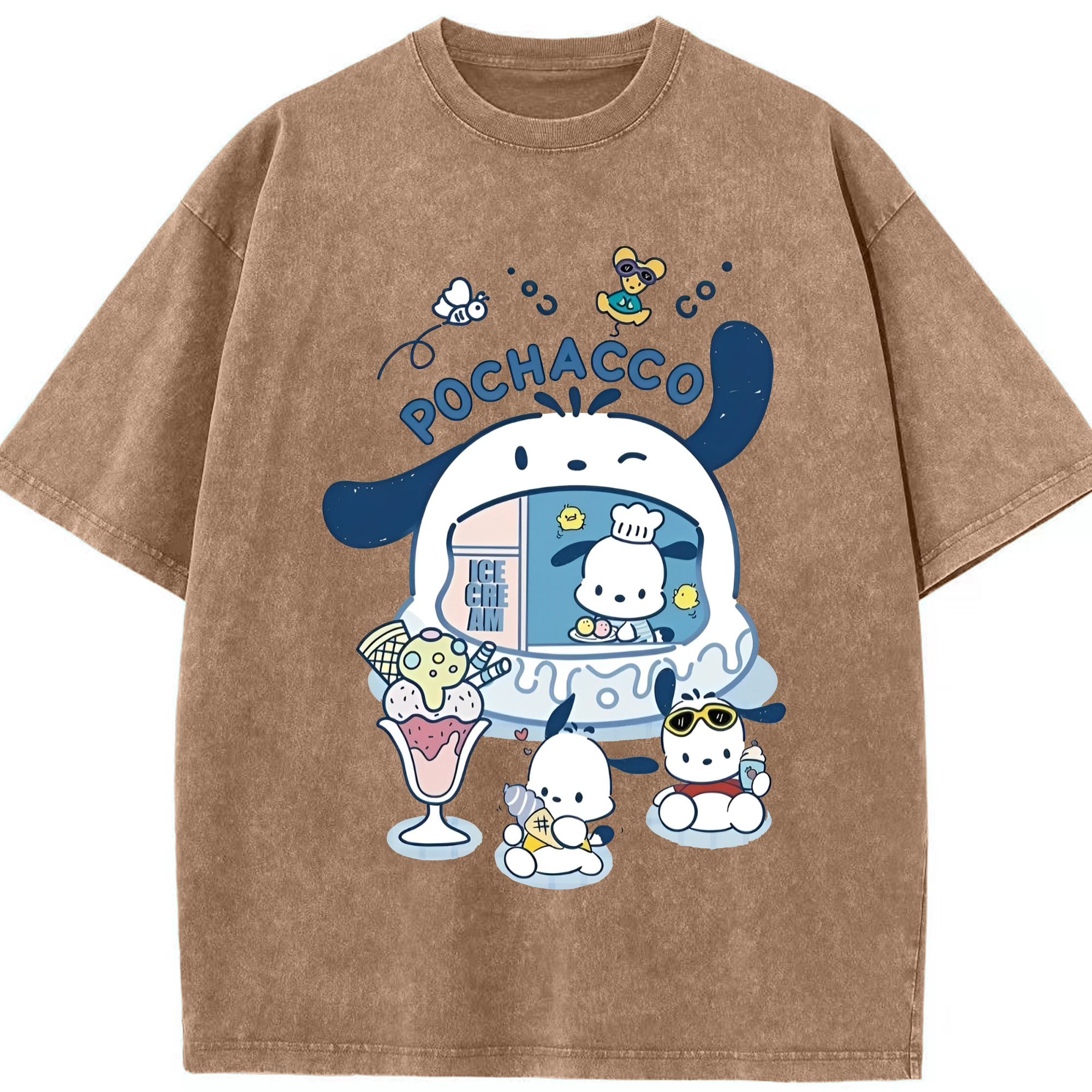 サンリオポチャッコ - 綿100% ヴィンテージ風 半袖Tシャツ ・ フロントプリント ・ 柔らか肌触り ・ 通気性 快適 ・ スポーツ カジュアル 外出用
