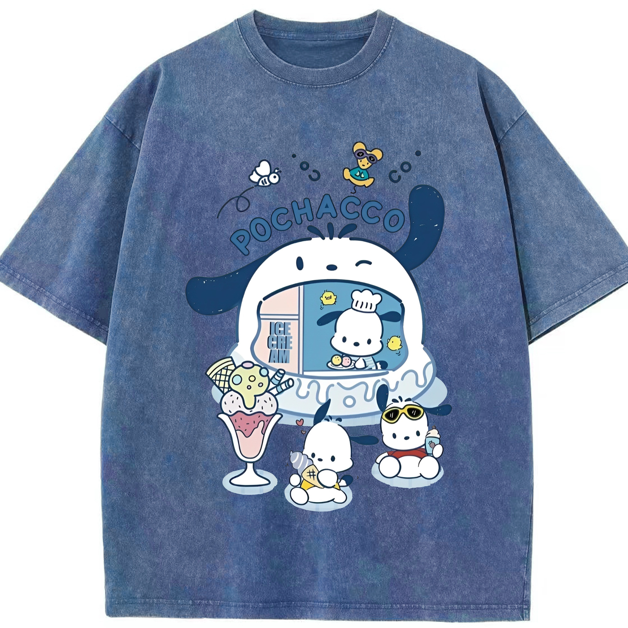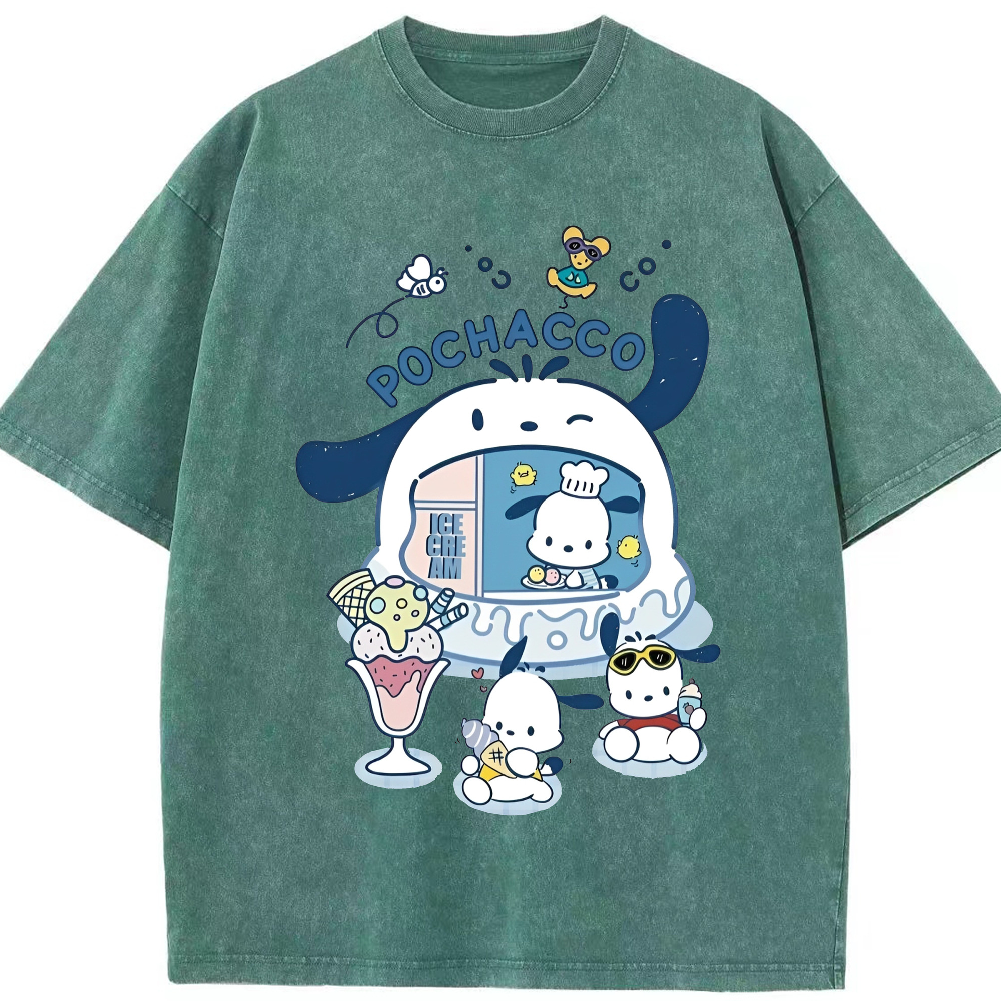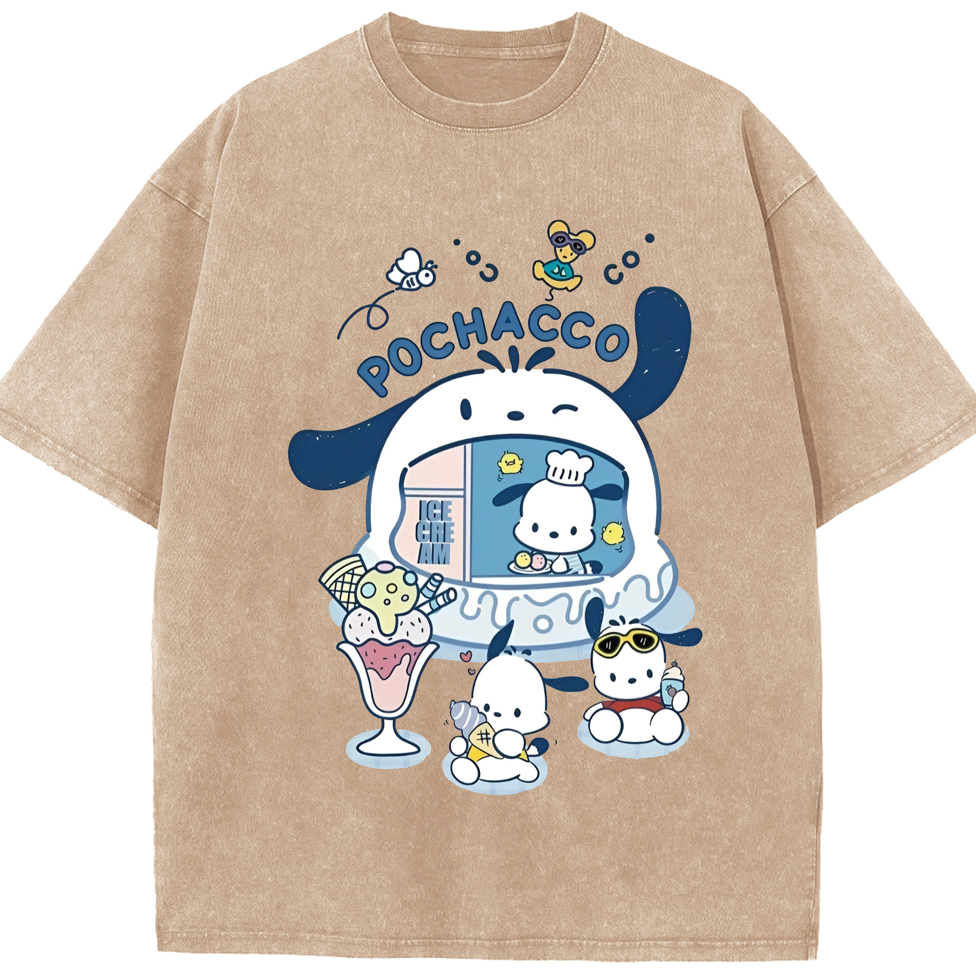 サンリオポチャッコ - 綿100% ヴィンテージ風 半袖Tシャツ ・ フロントプリント ・ 柔らか肌触り ・ 通気性 快適 ・ スポーツ カジュアル 外出用