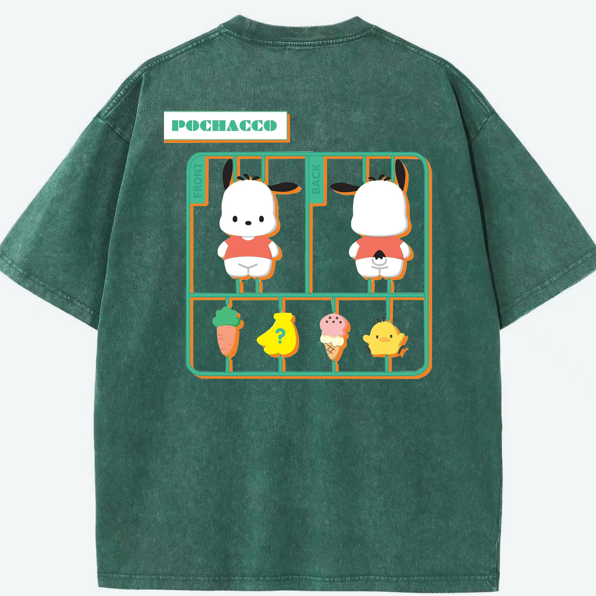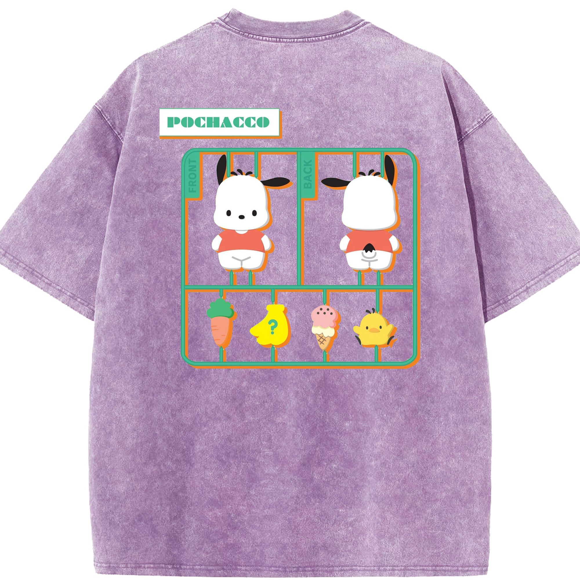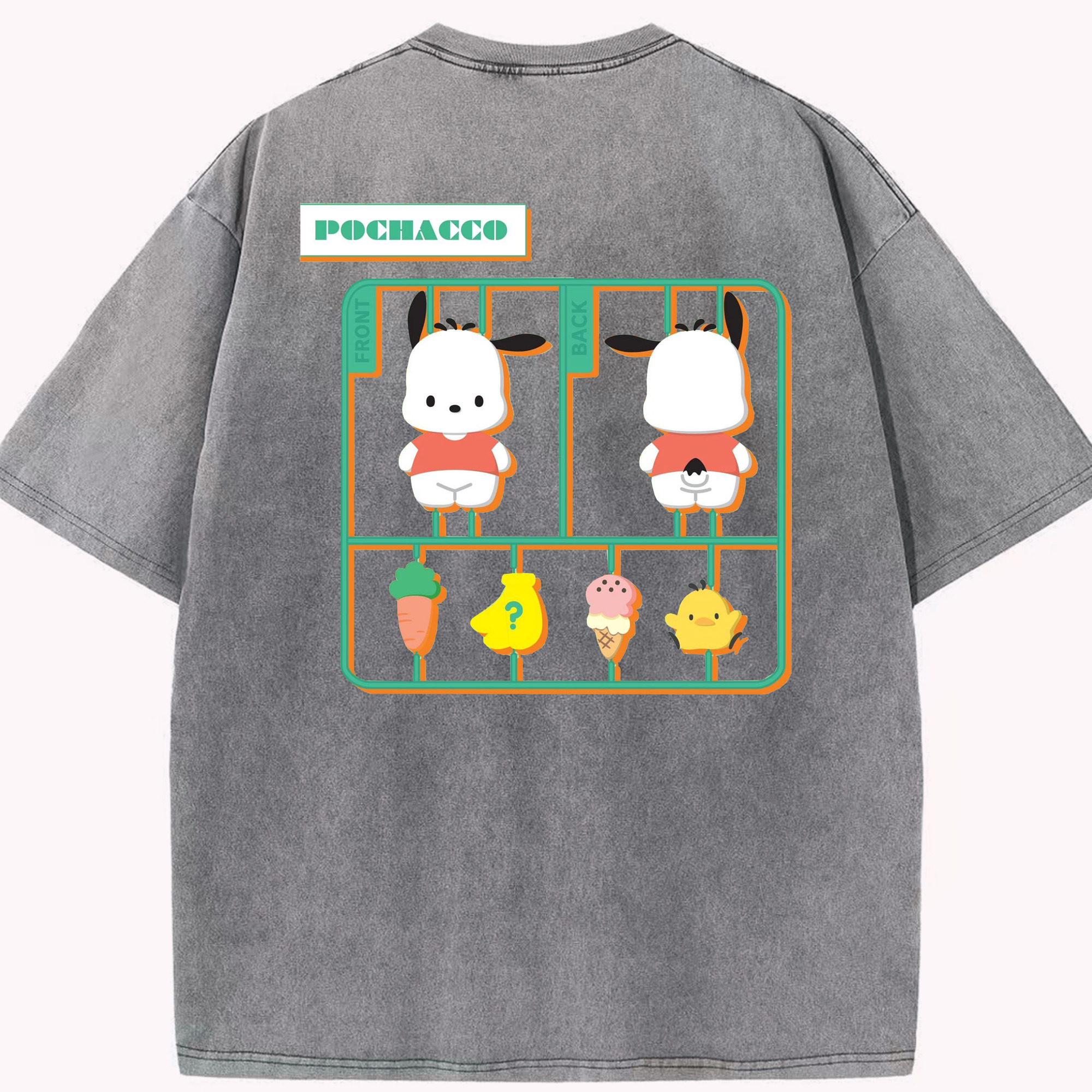 サンリオ&LABUBU ラブブ - 綿100% ヴィンテージ風 半袖Tシャツ ・ 背面プリント ・ 柔らか肌触り ・ 通気性 快適 ・ スポーツ カジュアル 外出用
