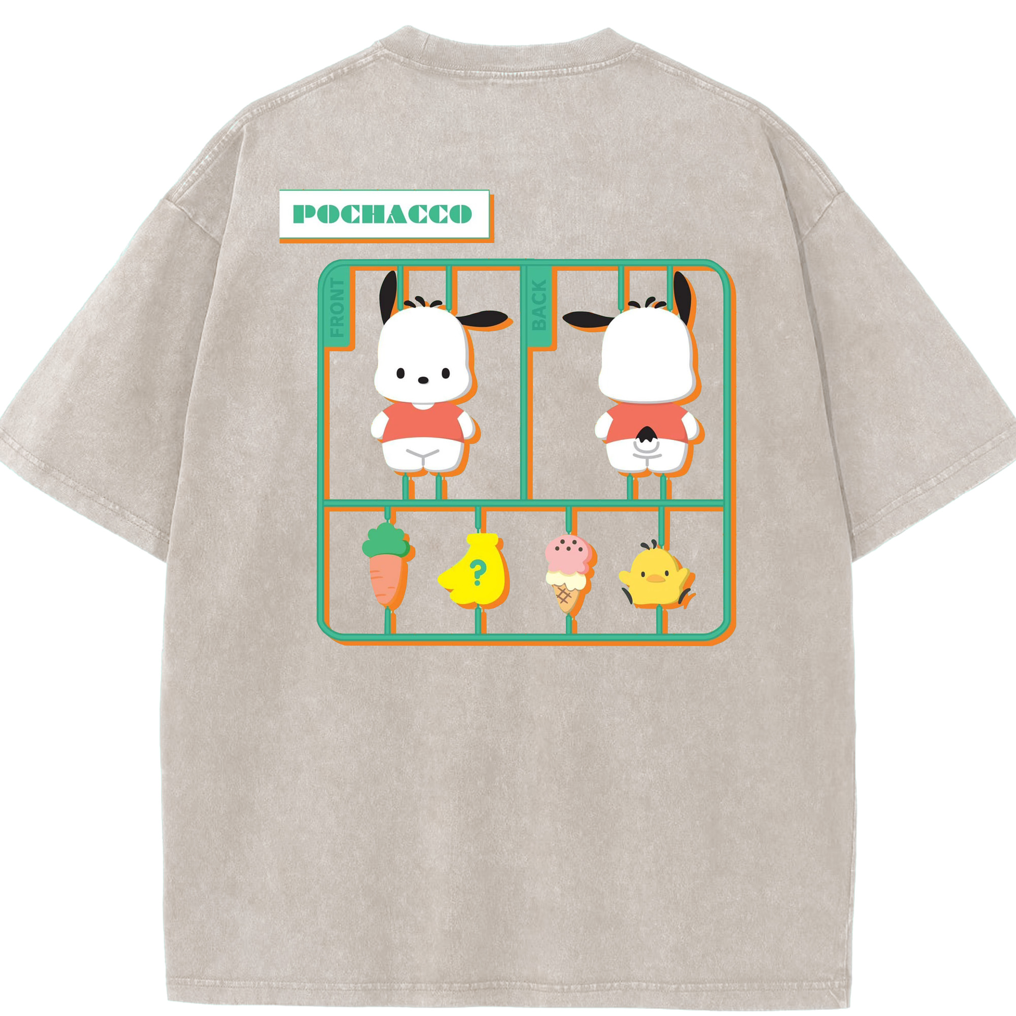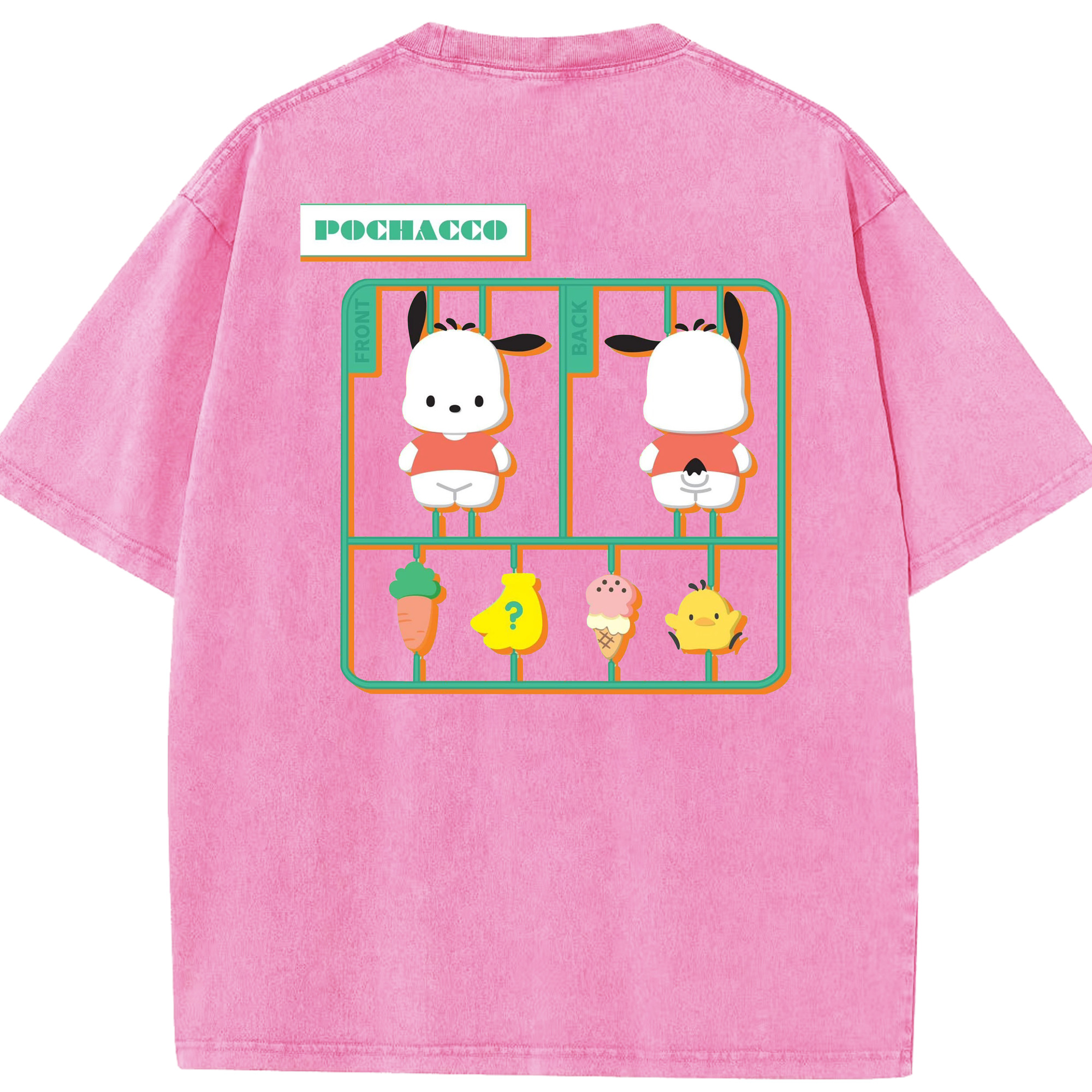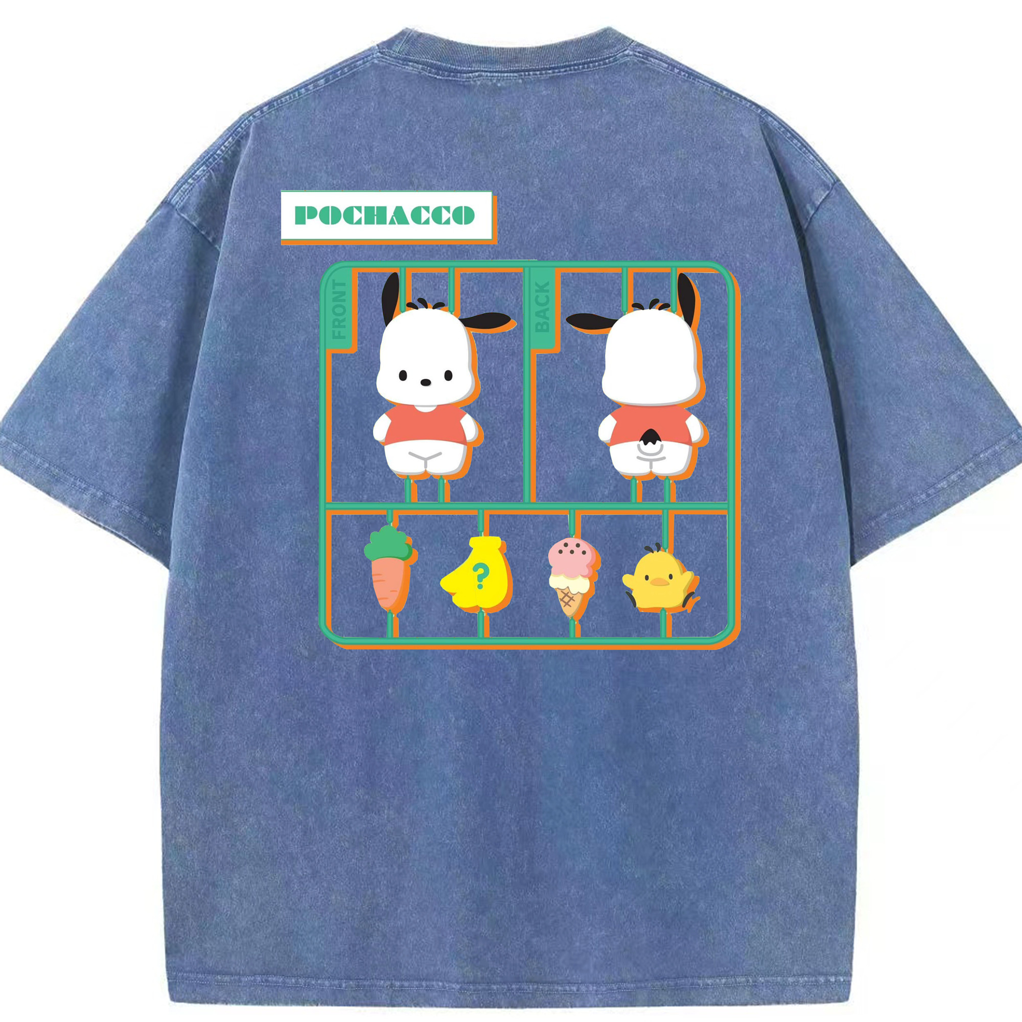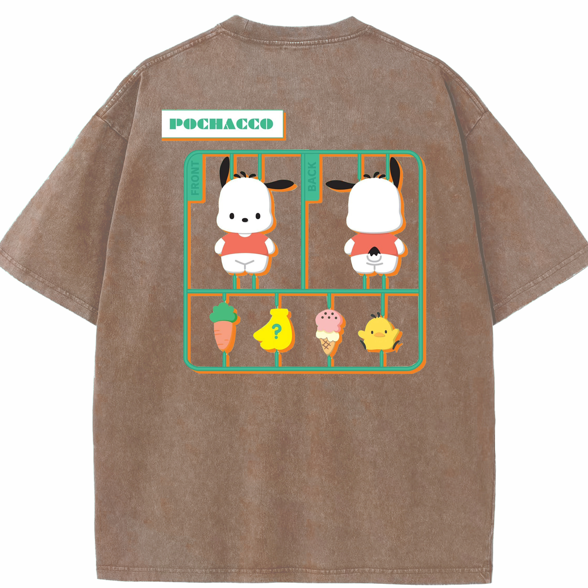 サンリオファミリー - 綿100% ヴィンテージ風 半袖Tシャツ ・ 背面プリント ・ 柔らか肌触り ・ 通気性 快適 ・ スポーツ カジュアル 外出用