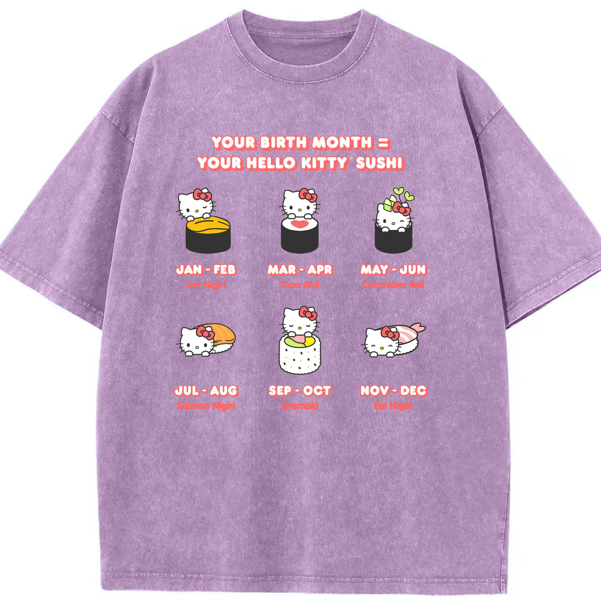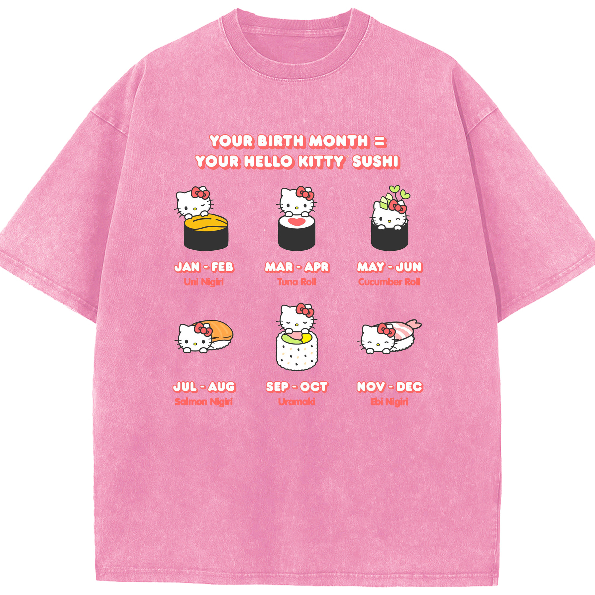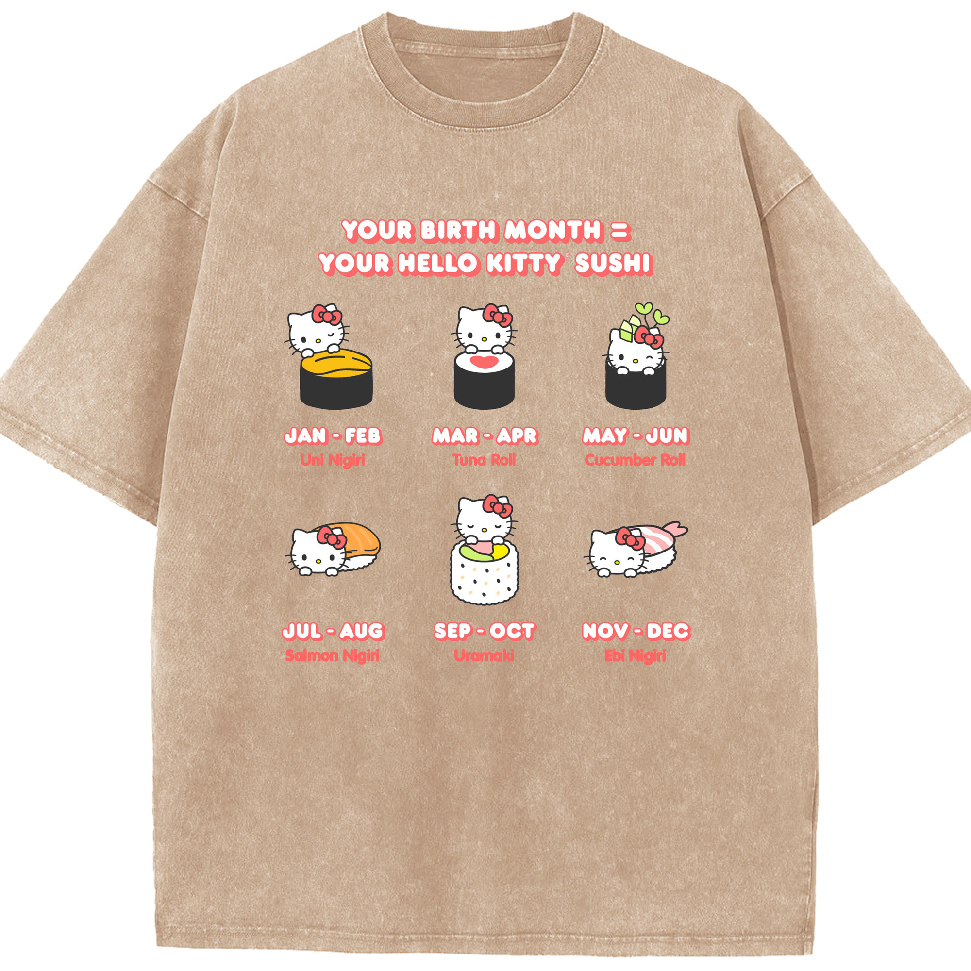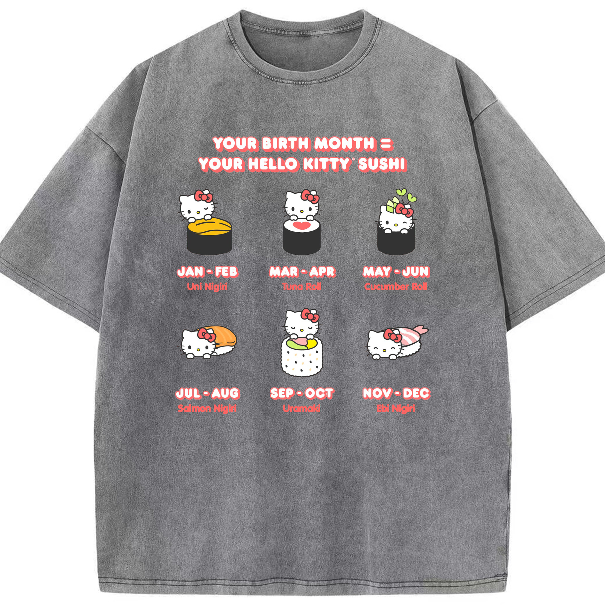お寿司になったハローキティ - 綿100% ヴィンテージ風 半袖Tシャツ ・ 背面プリント ・ 柔らか肌触り ・ 通気性 快適 ・ スポーツ カジュアル 外出用