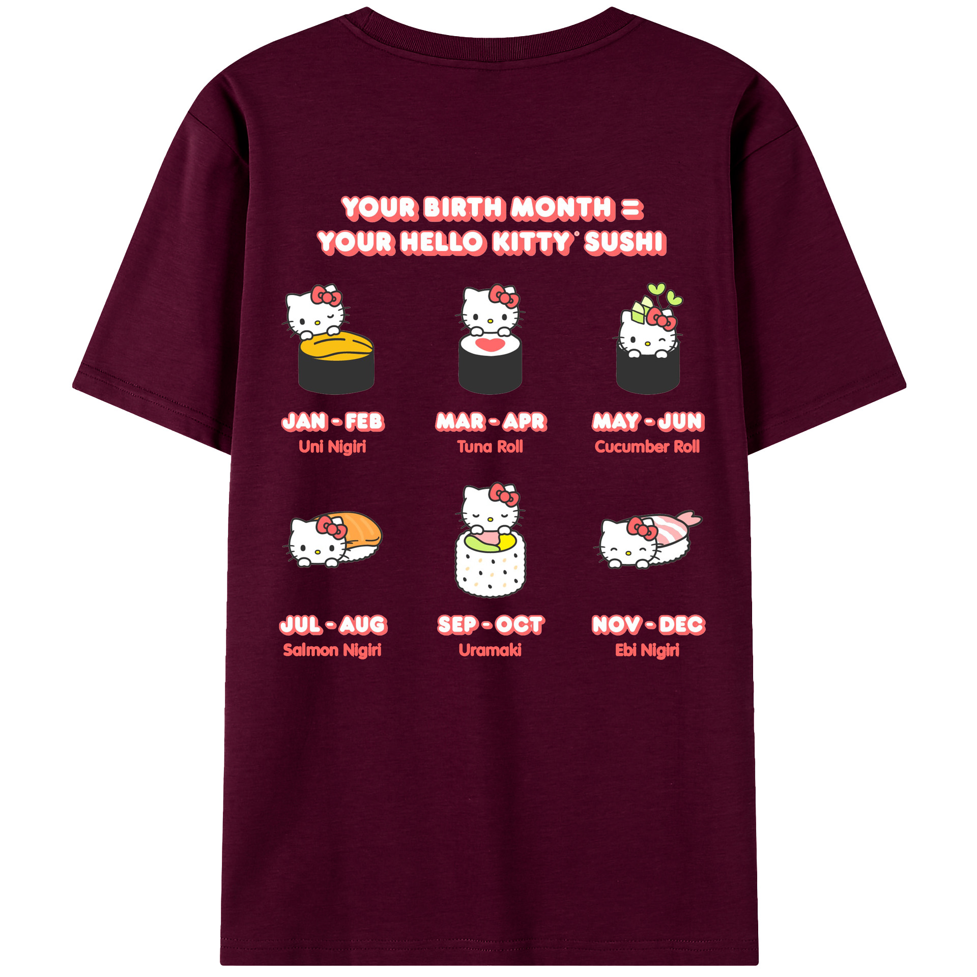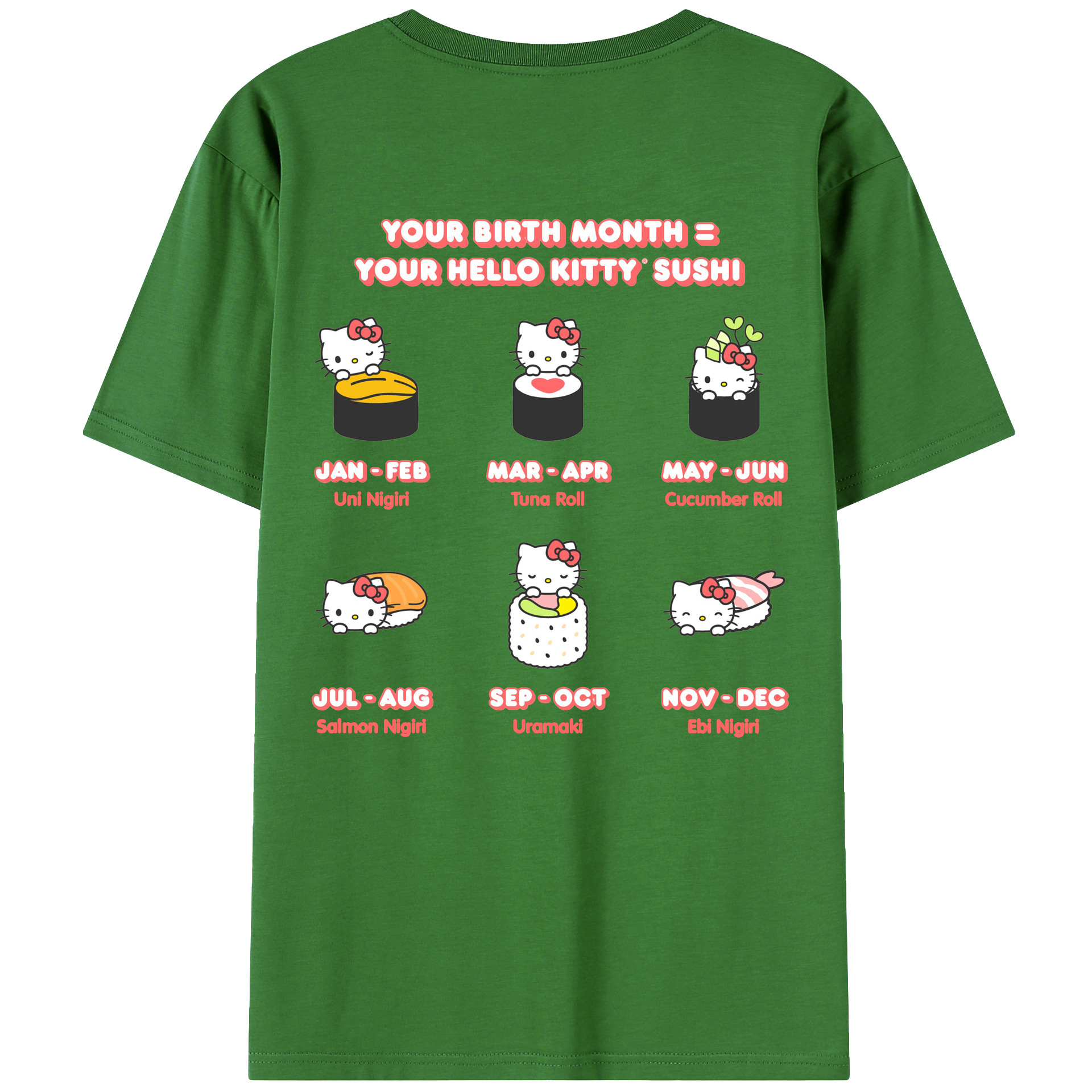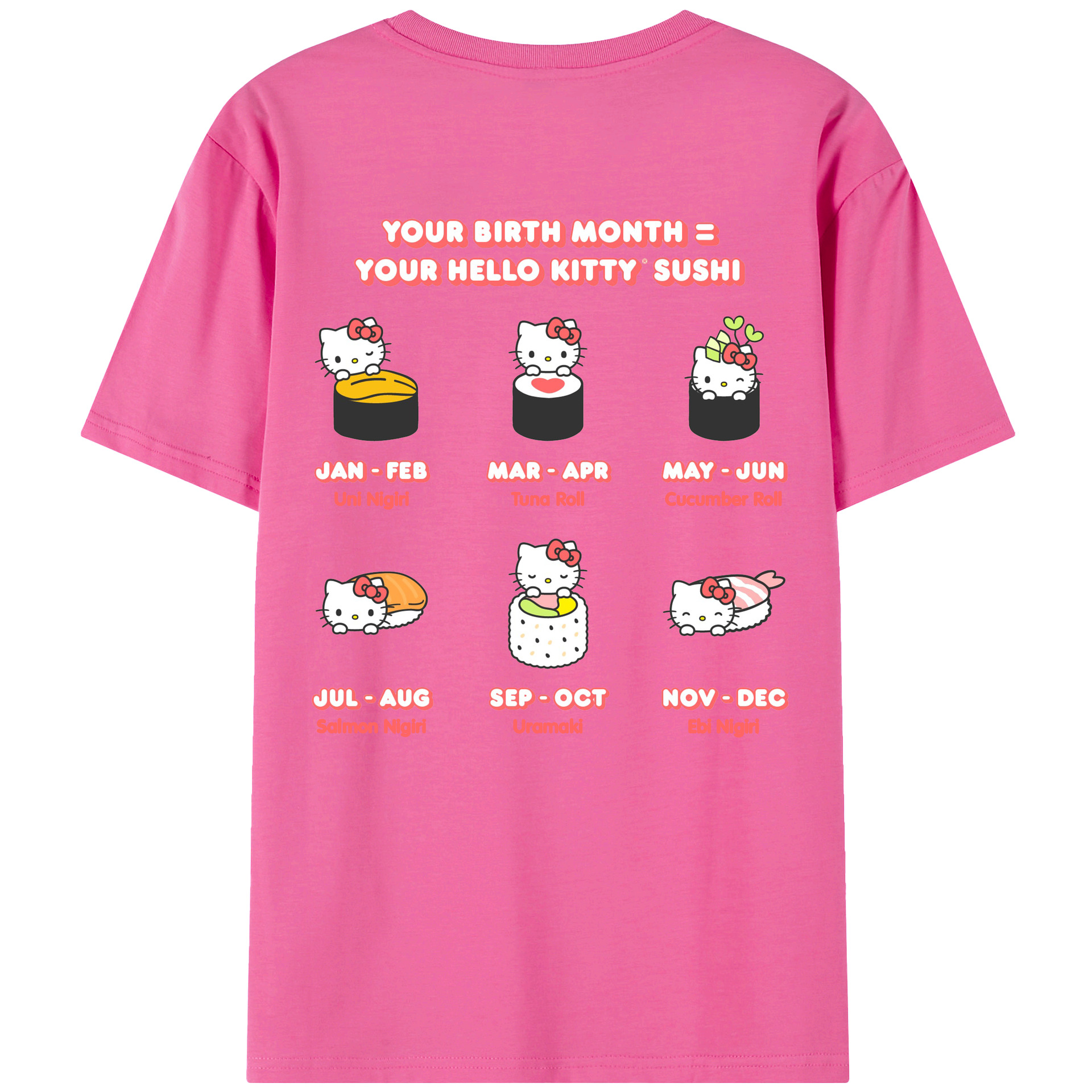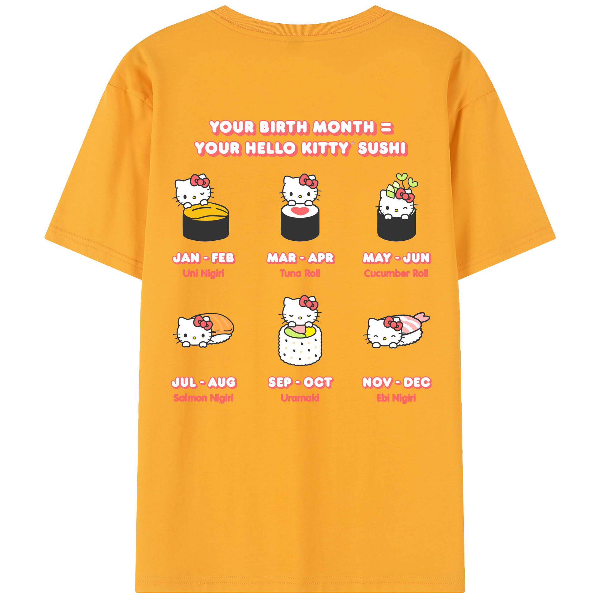 お寿司になったハローキティ - 綿100% ヴィンテージ風 半袖Tシャツ ・ フロントプリント ・ 柔らか肌触り ・ 通気性 快適 ・ スポーツ カジュアル 外出用