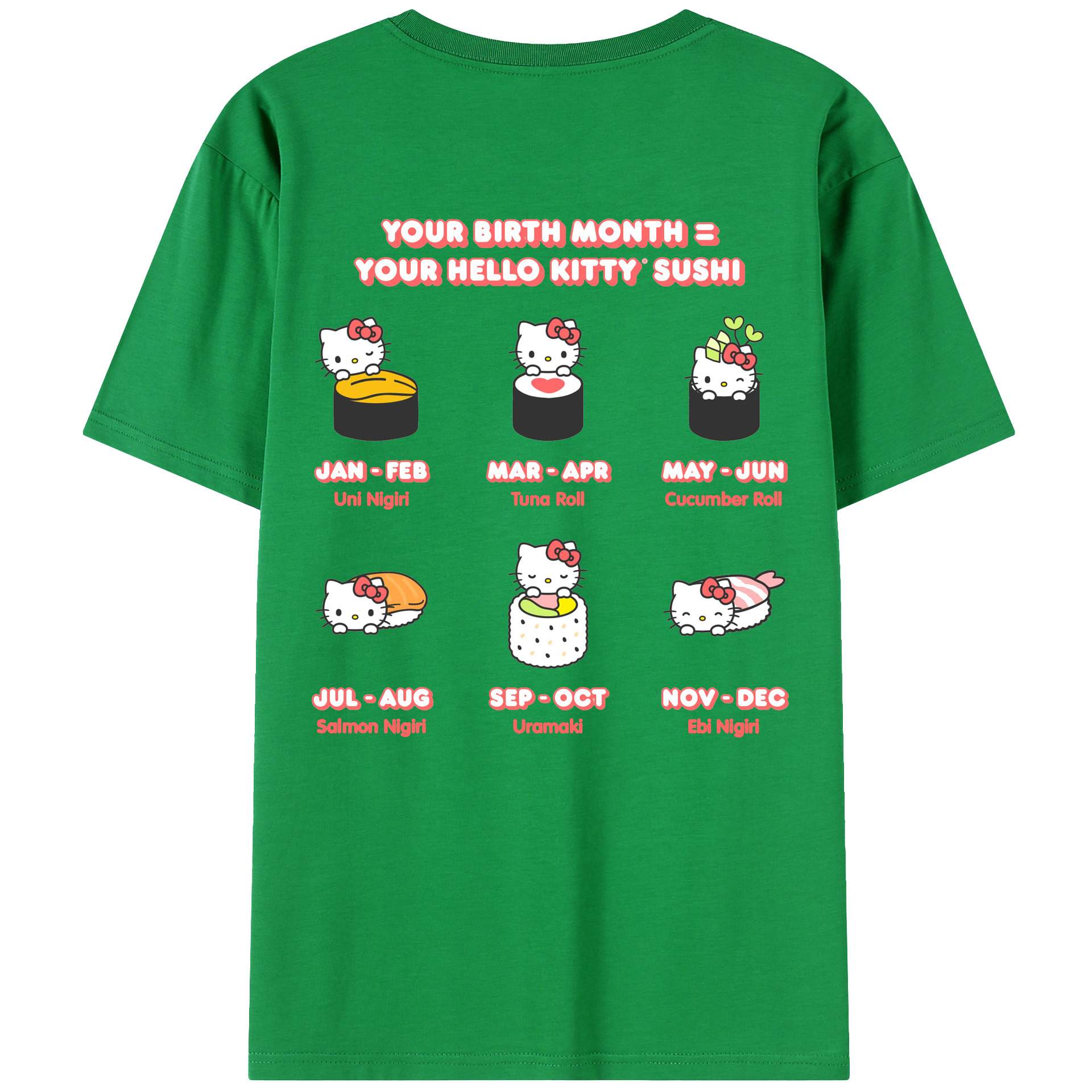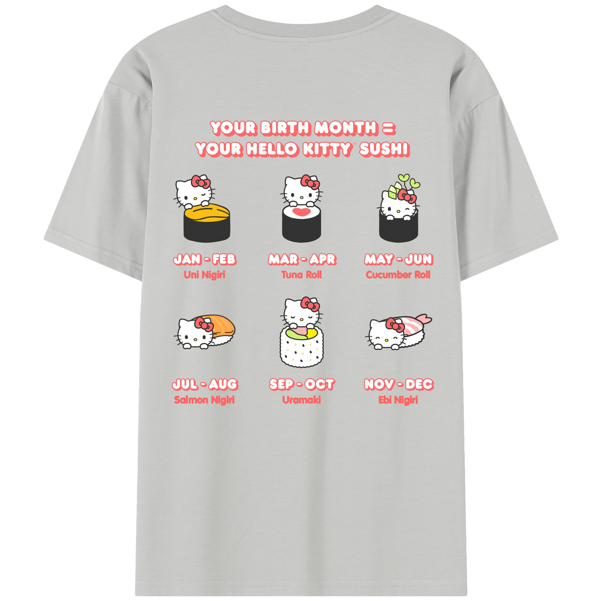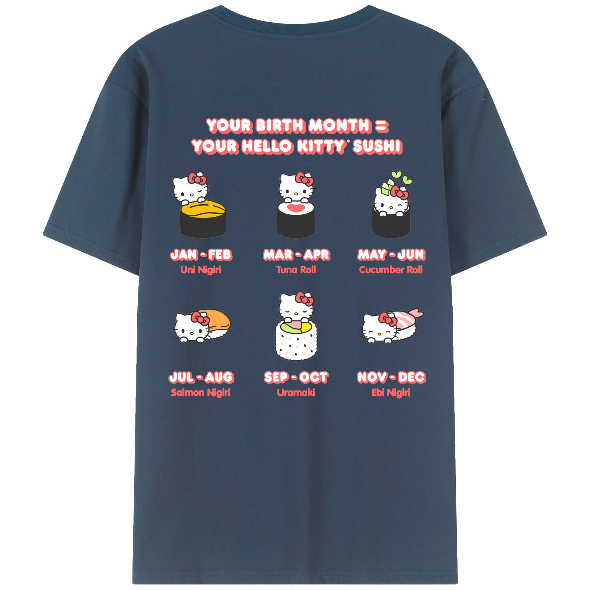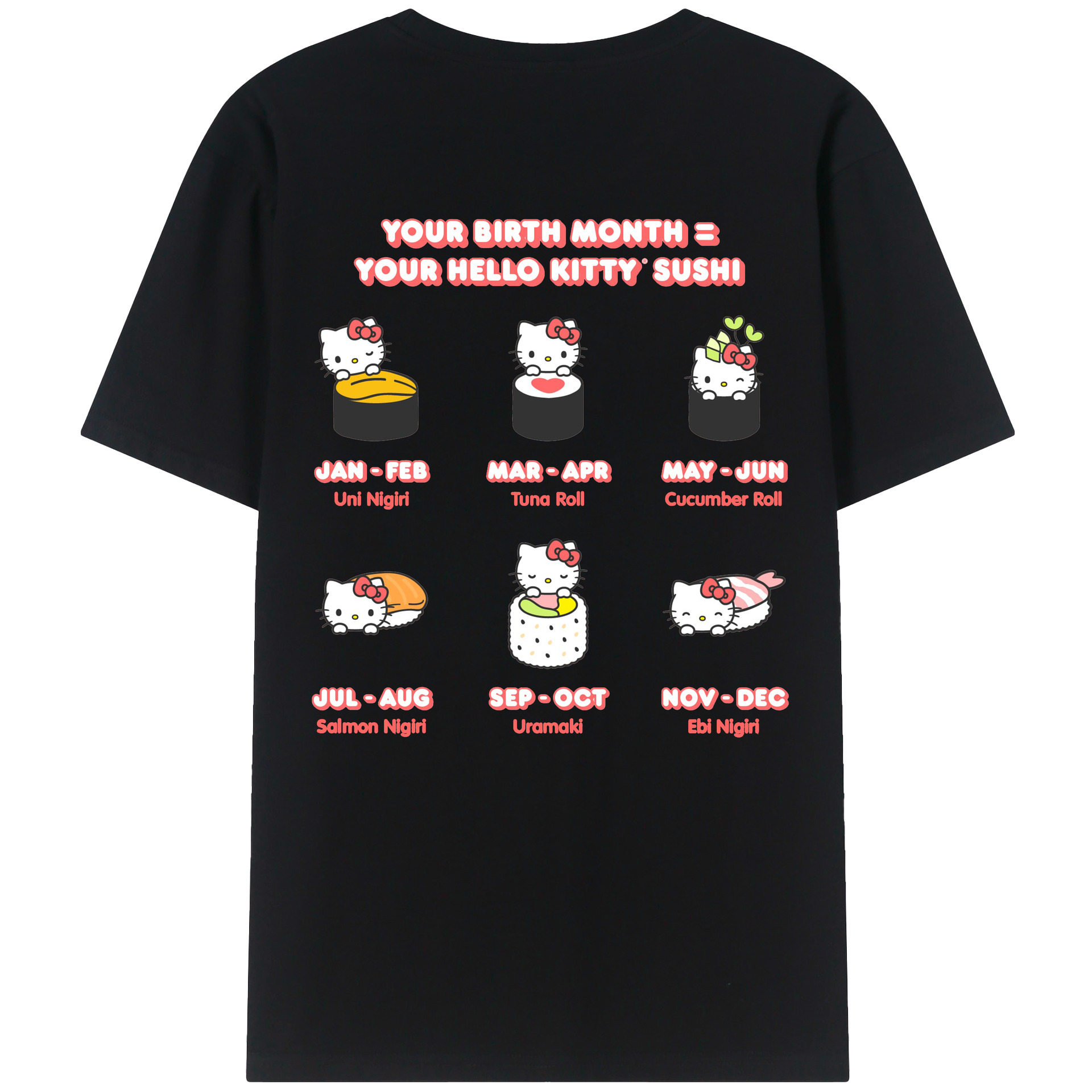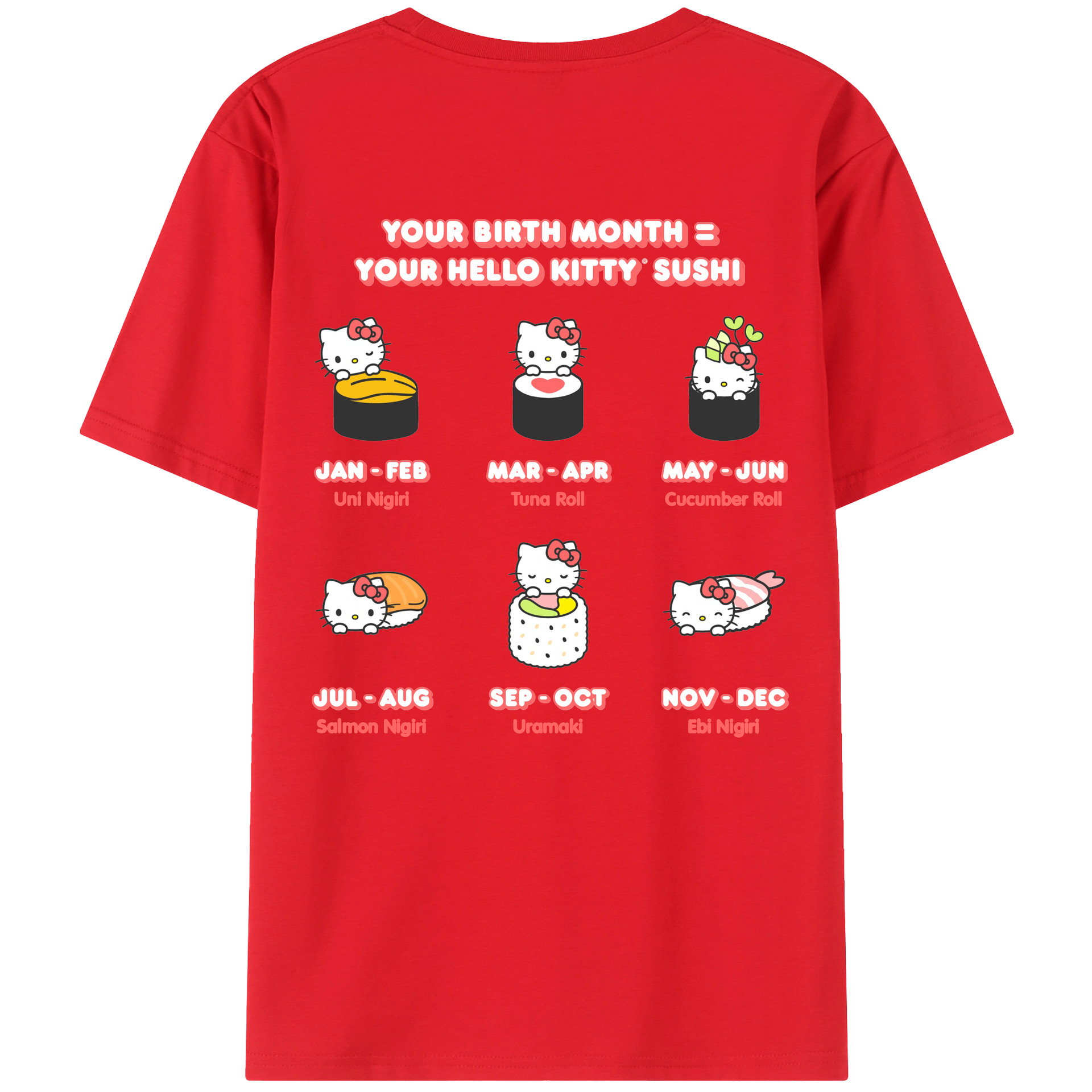 お寿司になったハローキティ - 綿100% ヴィンテージ風 半袖Tシャツ ・ 背面プリント ・ 柔らか肌触り ・ 通気性 快適 ・ スポーツ カジュアル 外出用