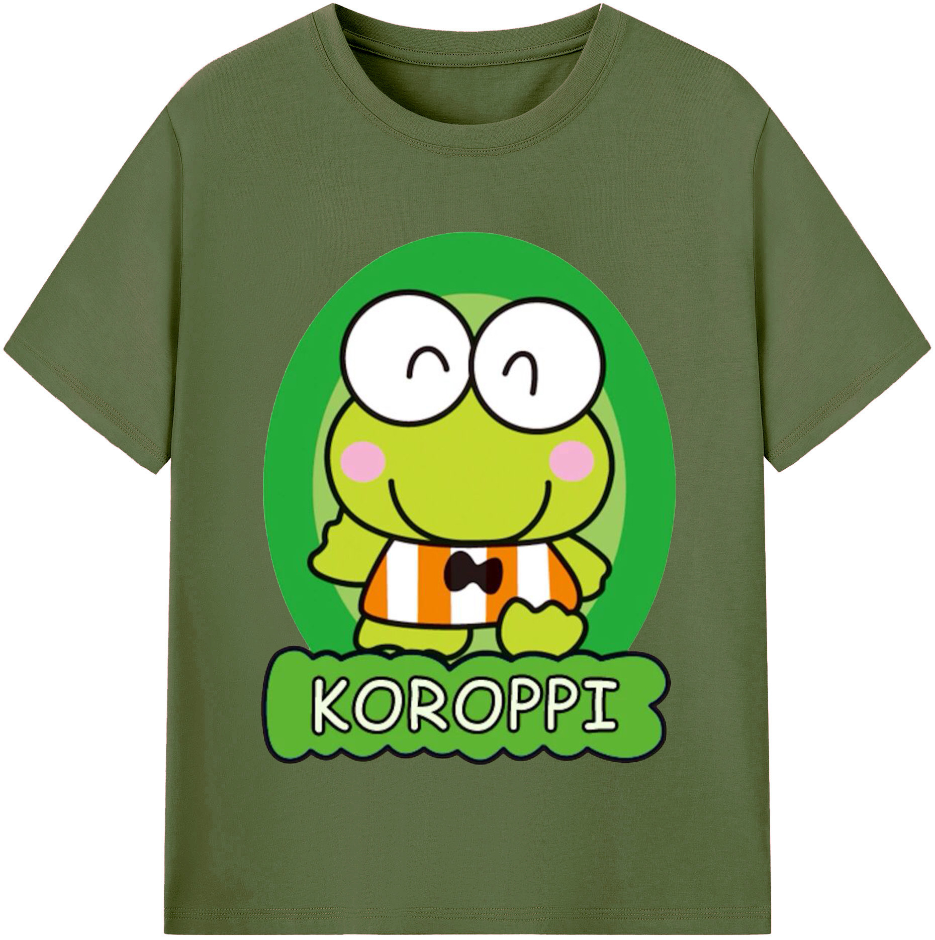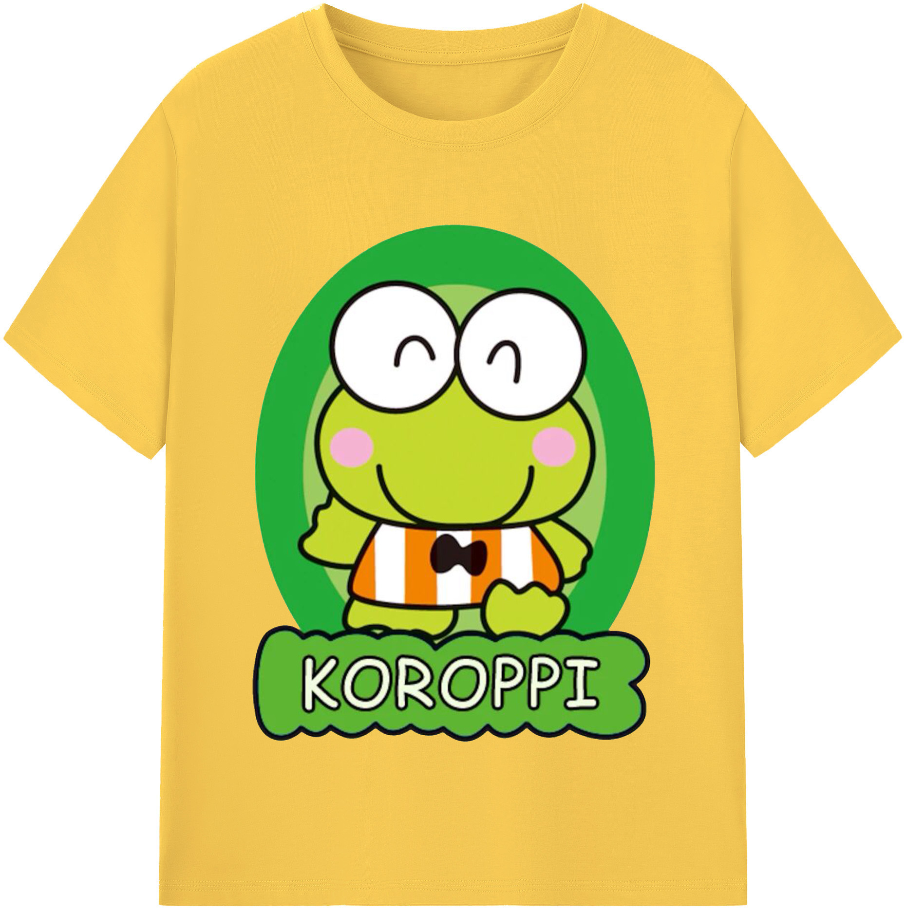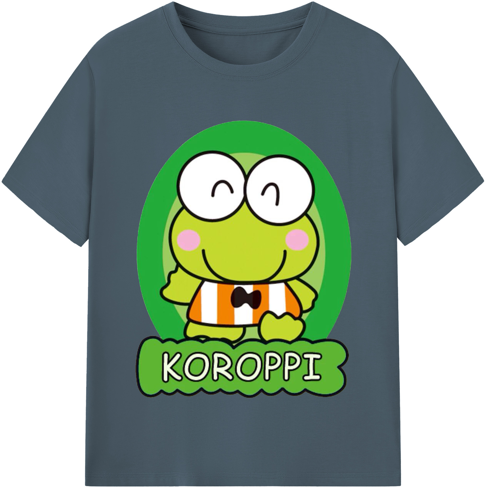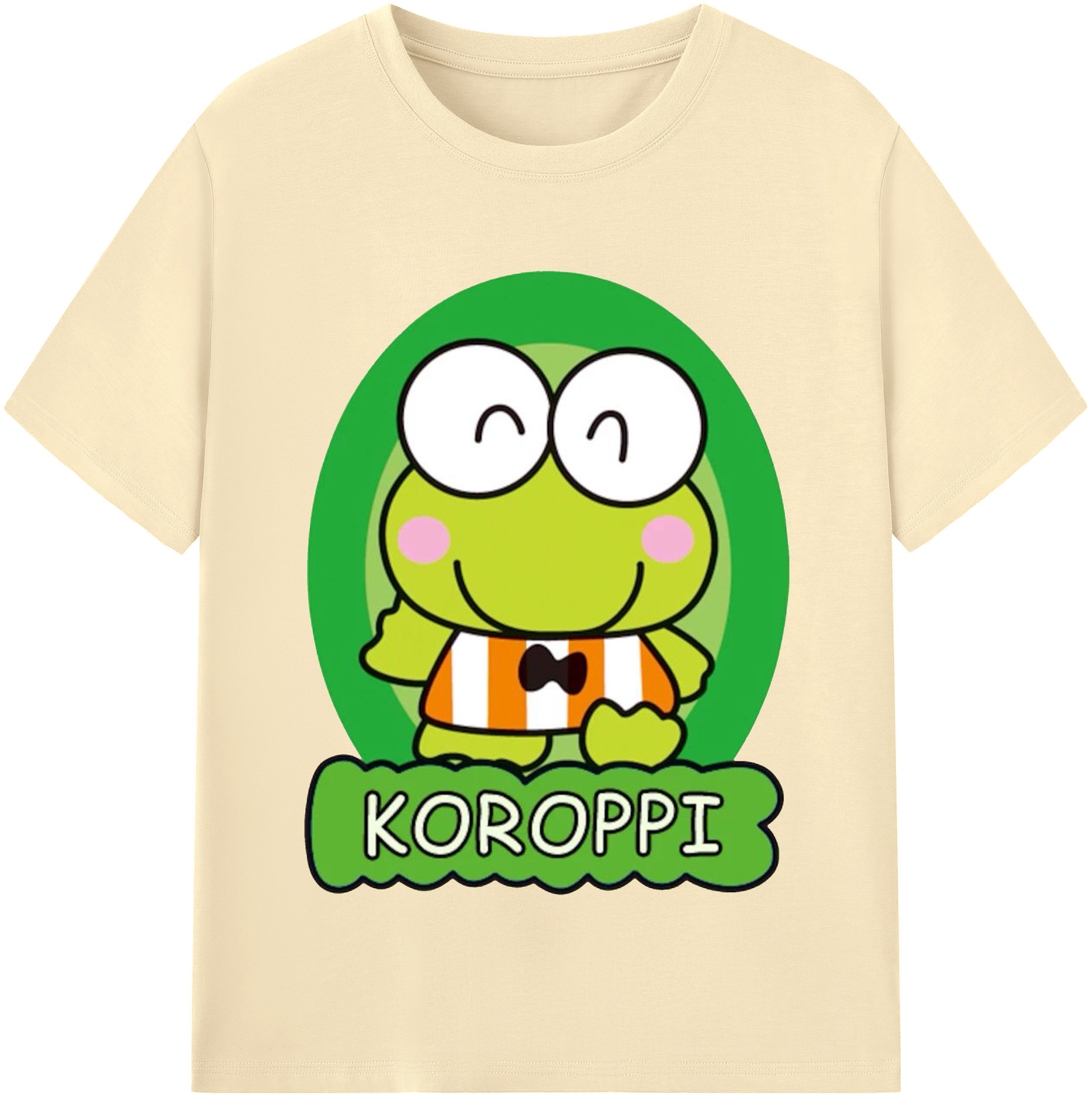 かわいいけろけろけろっぴ - 綿100% ヴィンテージ風 半袖Tシャツ ・ フロントプリント ・ 柔らか肌触り ・ 通気性 快適 ・ スポーツ カジュアル 外出用