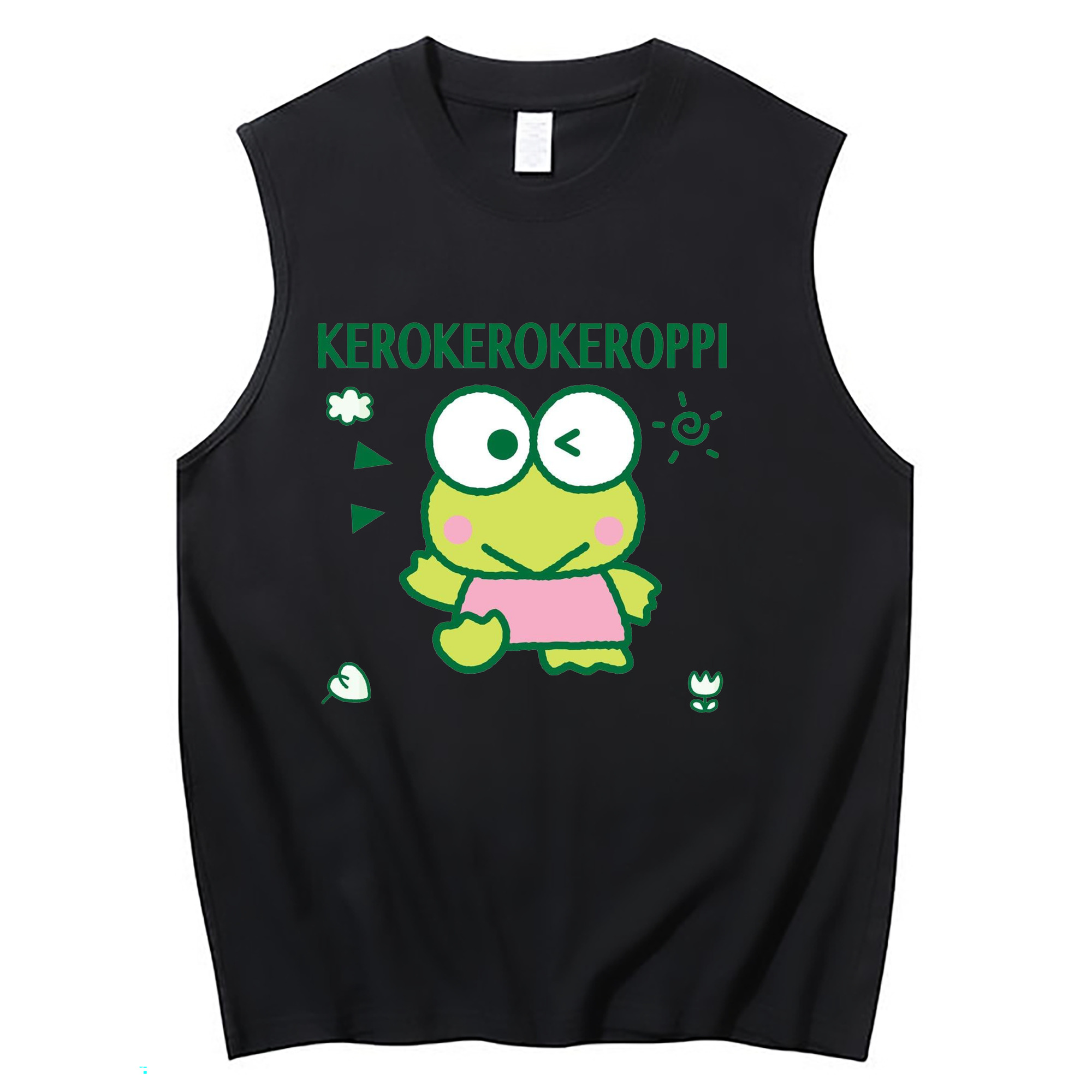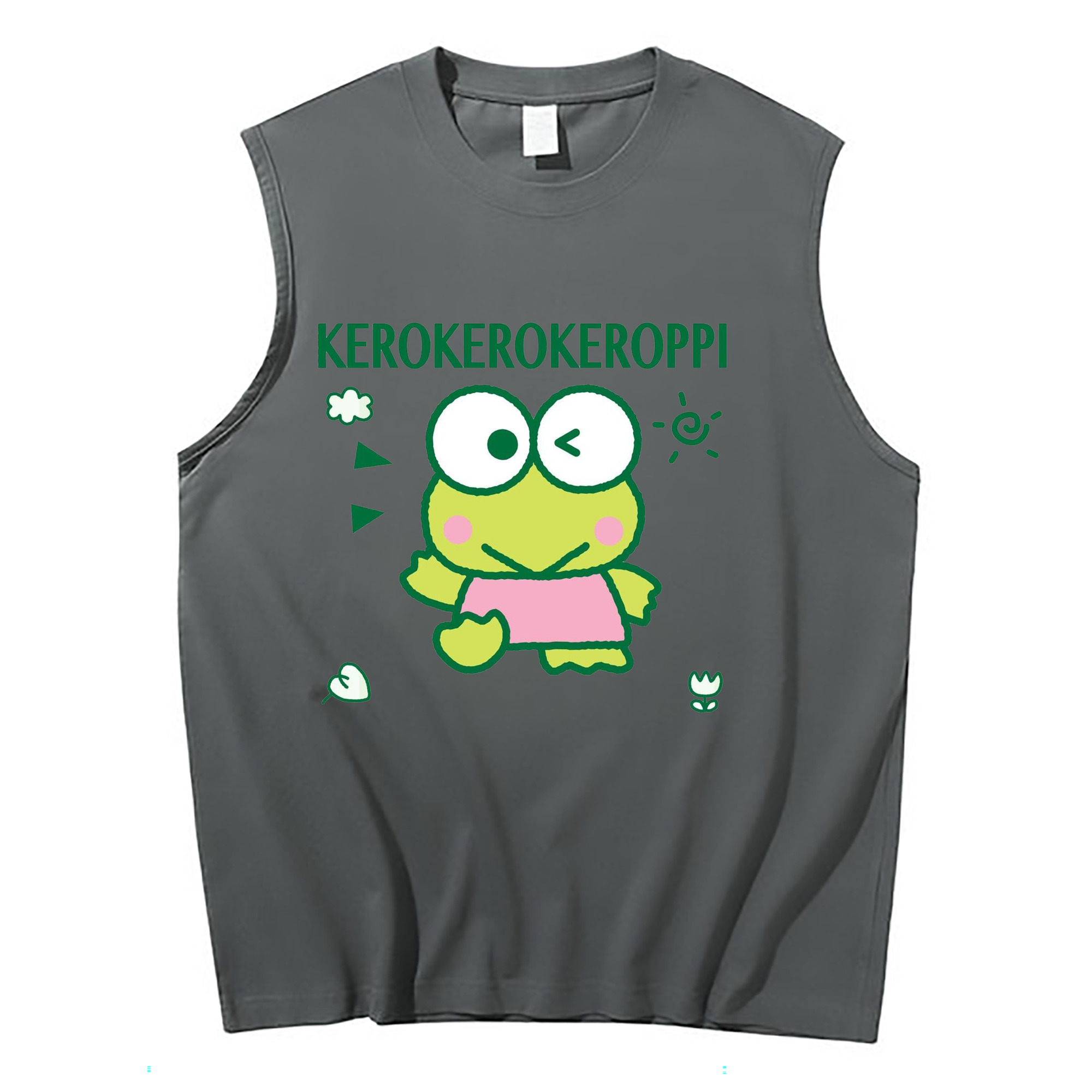 かわいいけろけろけろっぴ - コットン100% タンクトップ ・ フロントプリント ・ タイトフィット ・ 快適 通気性 ・ スポーツ カジュアル 散歩用