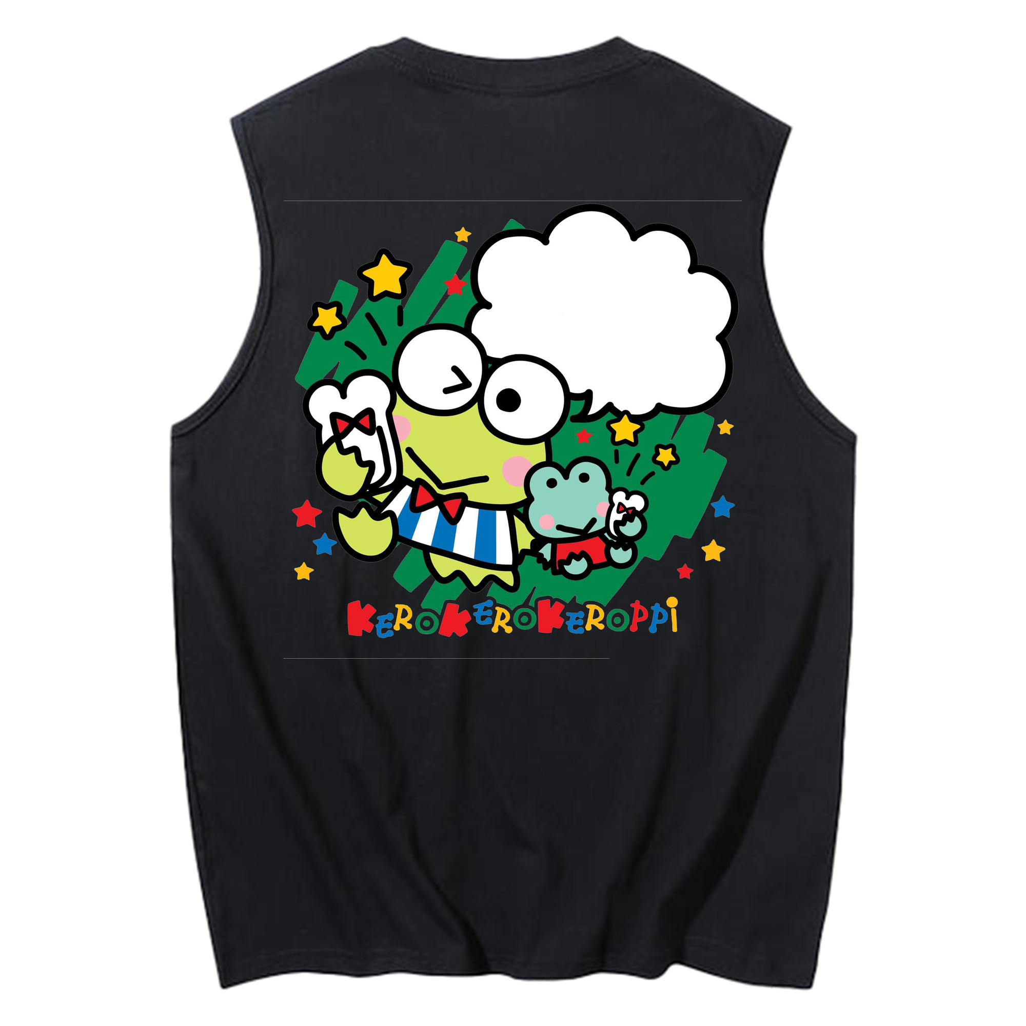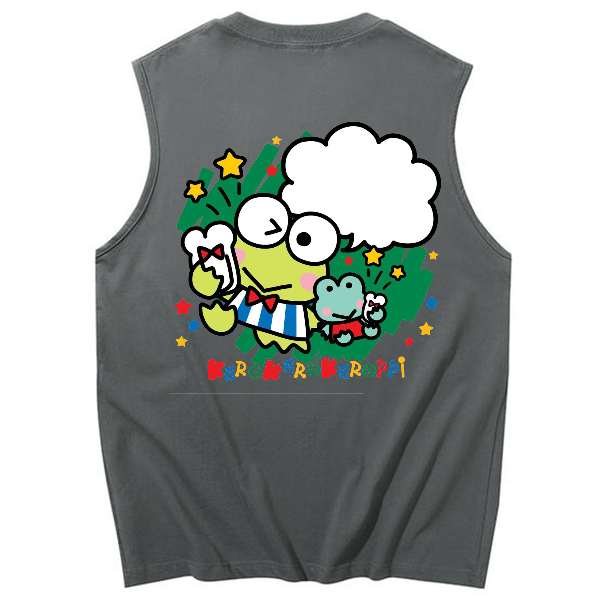 かわいいけろけろけろっぴ - コットン100% タンクトップ ・ 背面プリント ・ タイトシルエット ・ 快適 通気性 ・ スポーツ カジュアル 散歩用