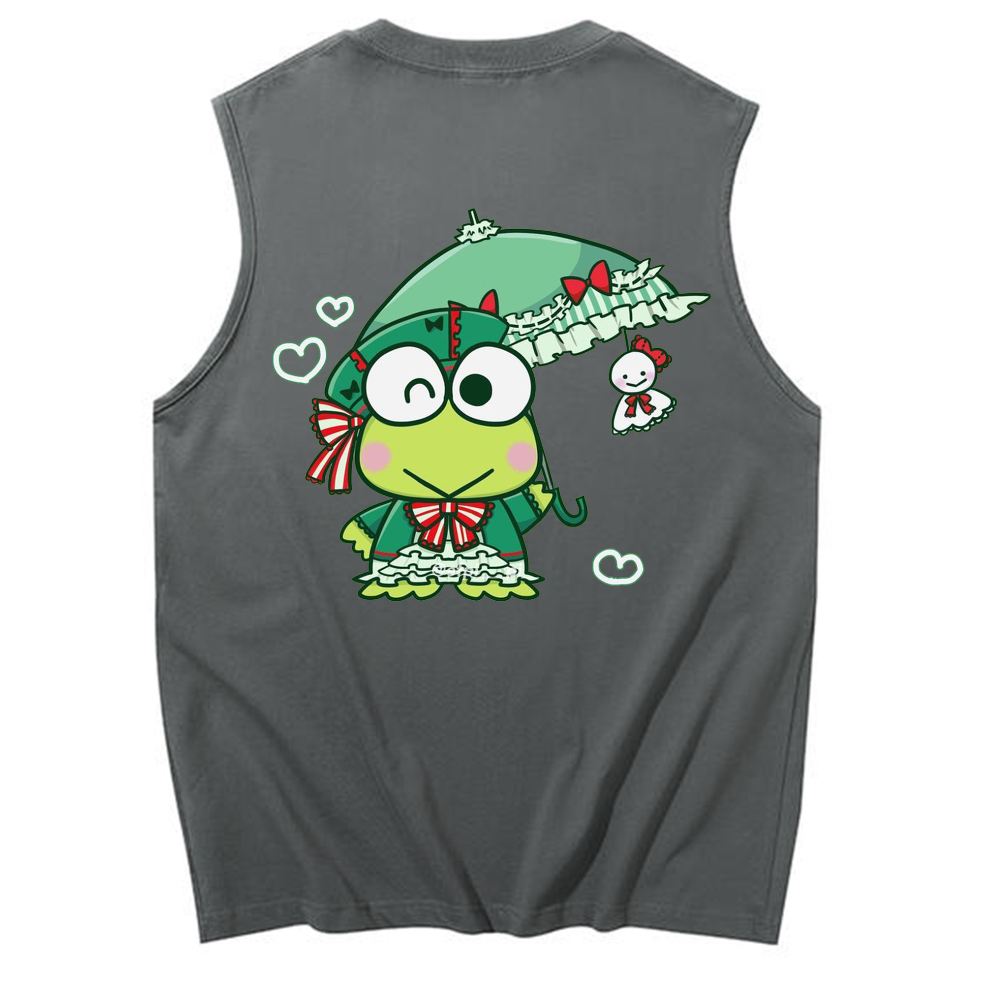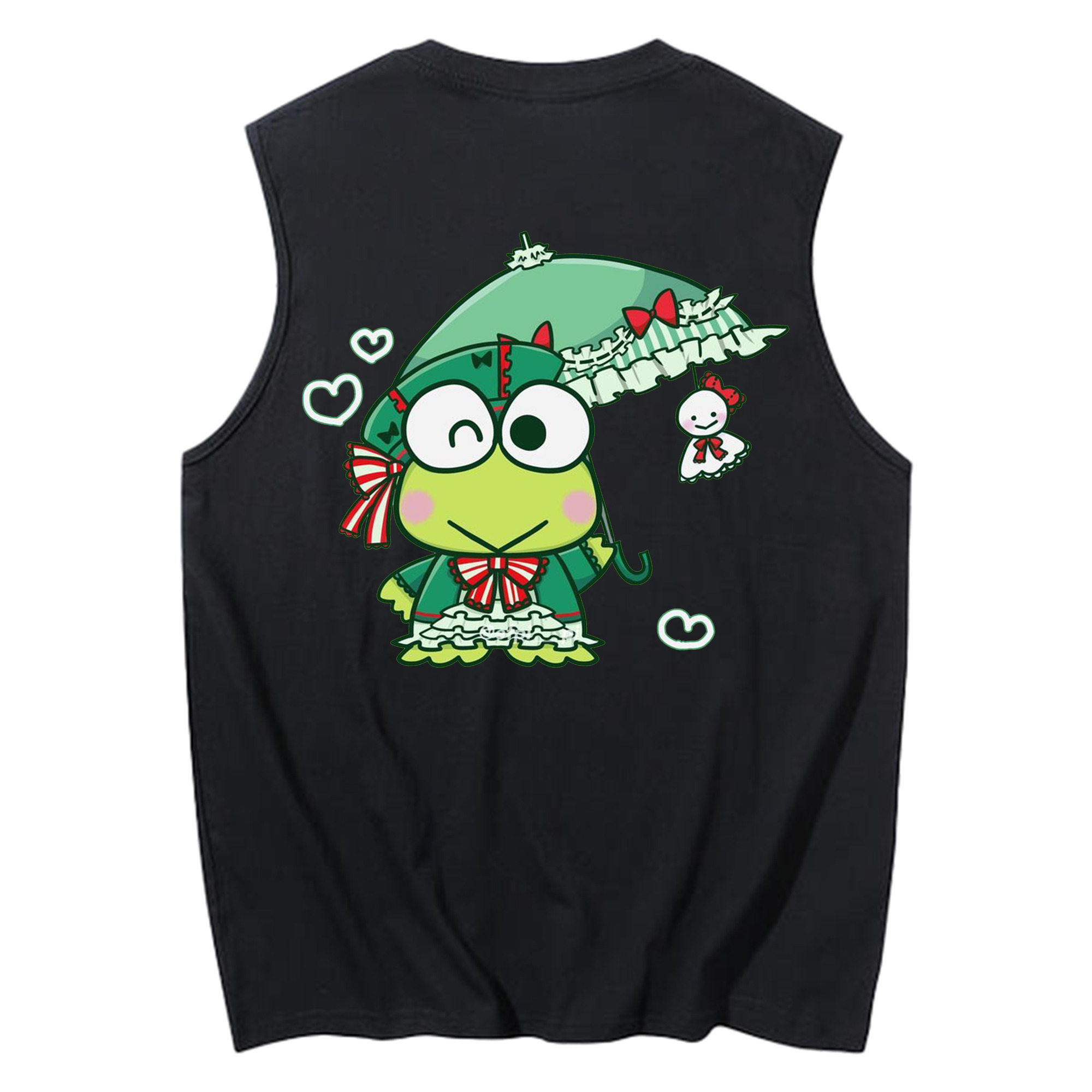 かわいいけろけろけろっぴ - コットン100% タンクトップ ・ 背面プリント ・ タイトシルエット ・ 快適 通気性 ・ スポーツ カジュアル 散歩用