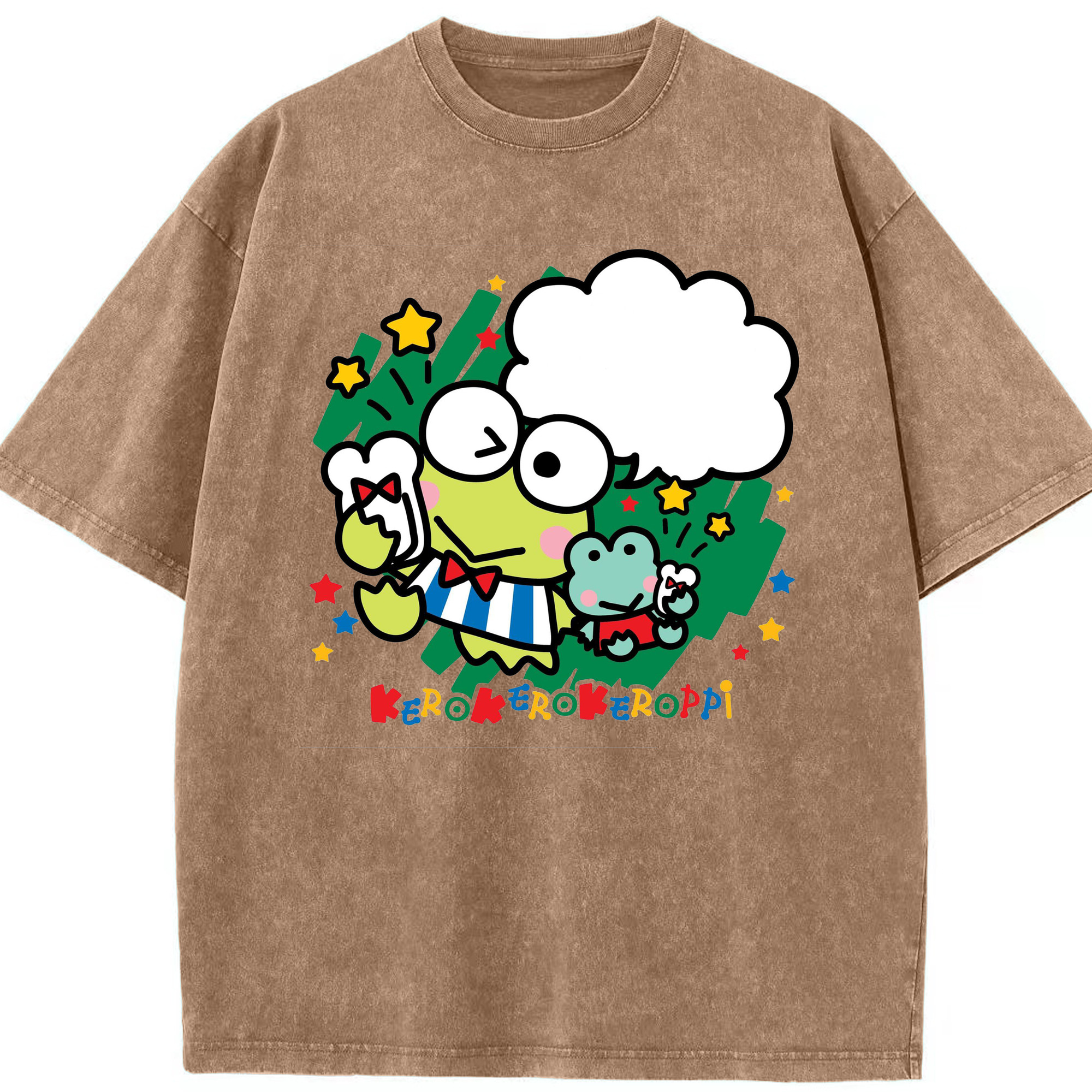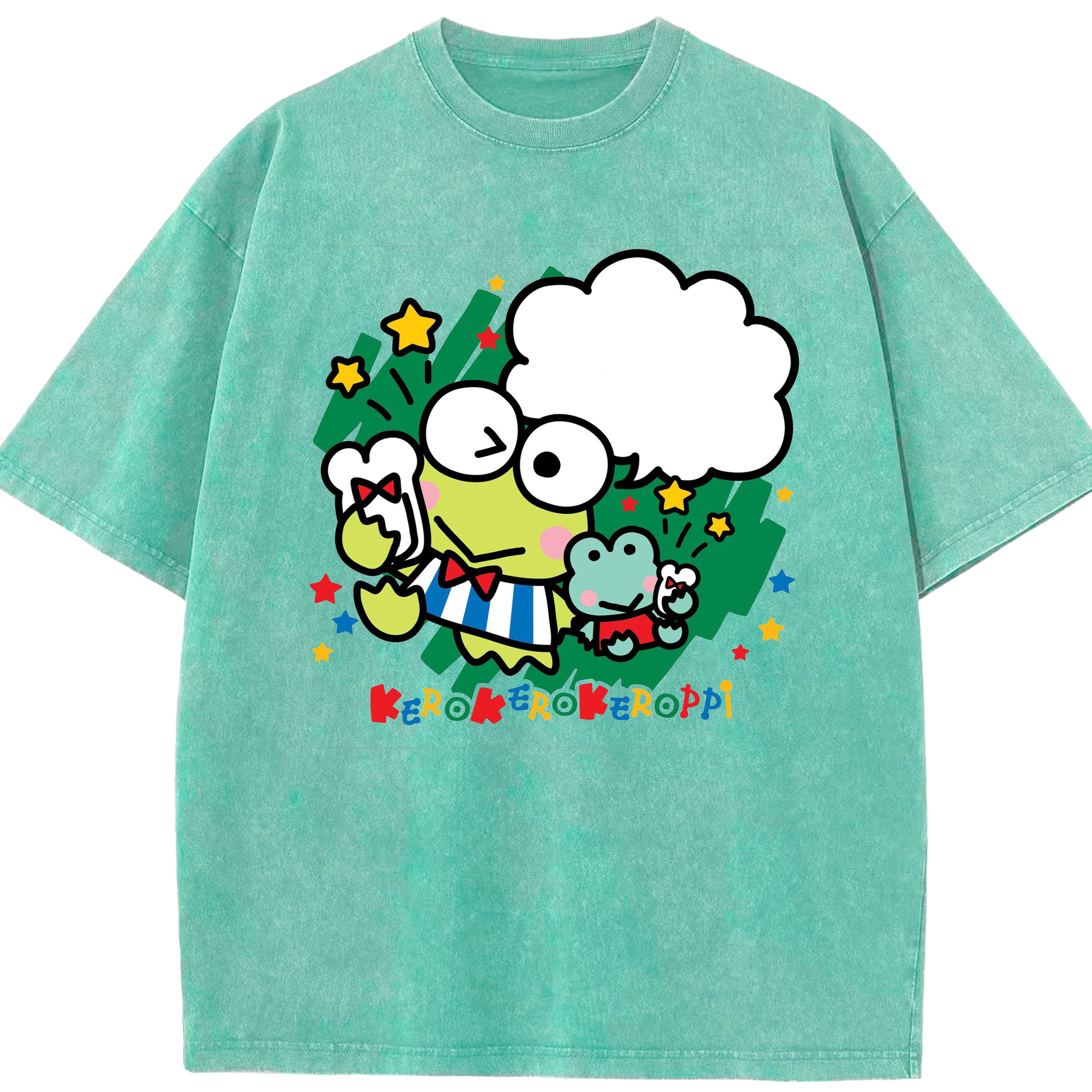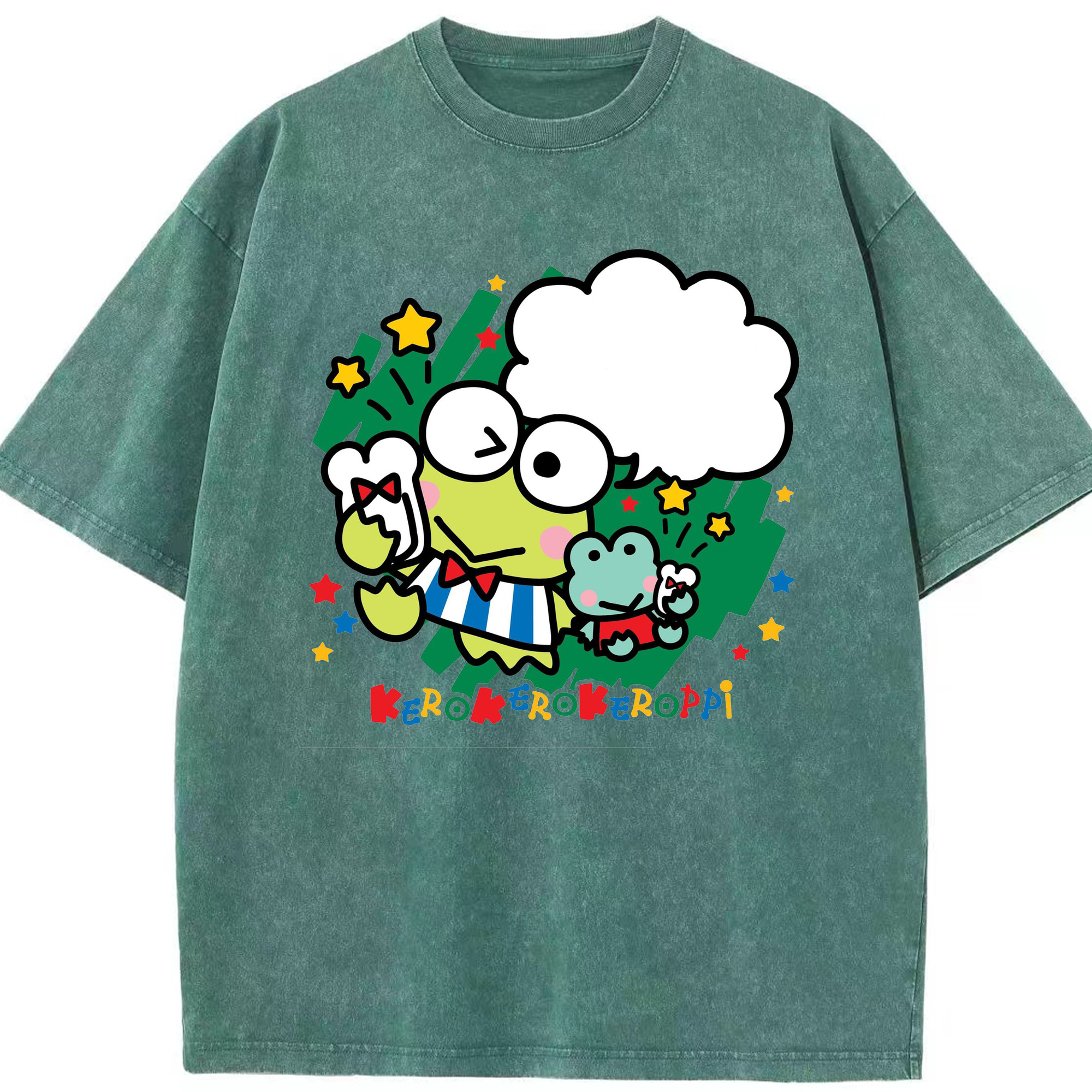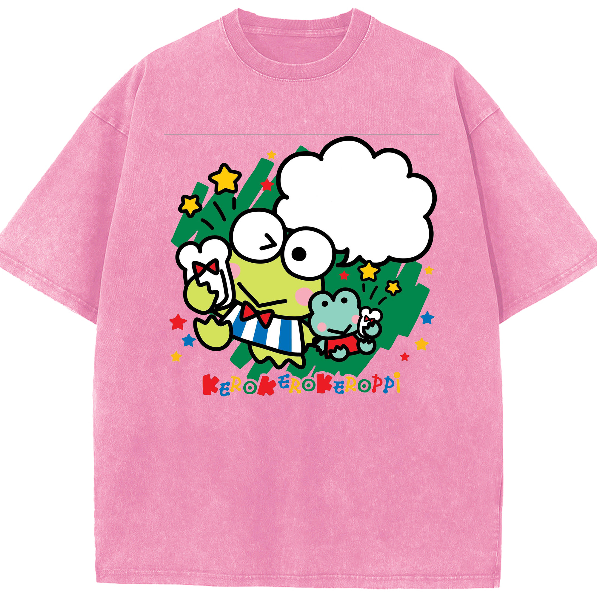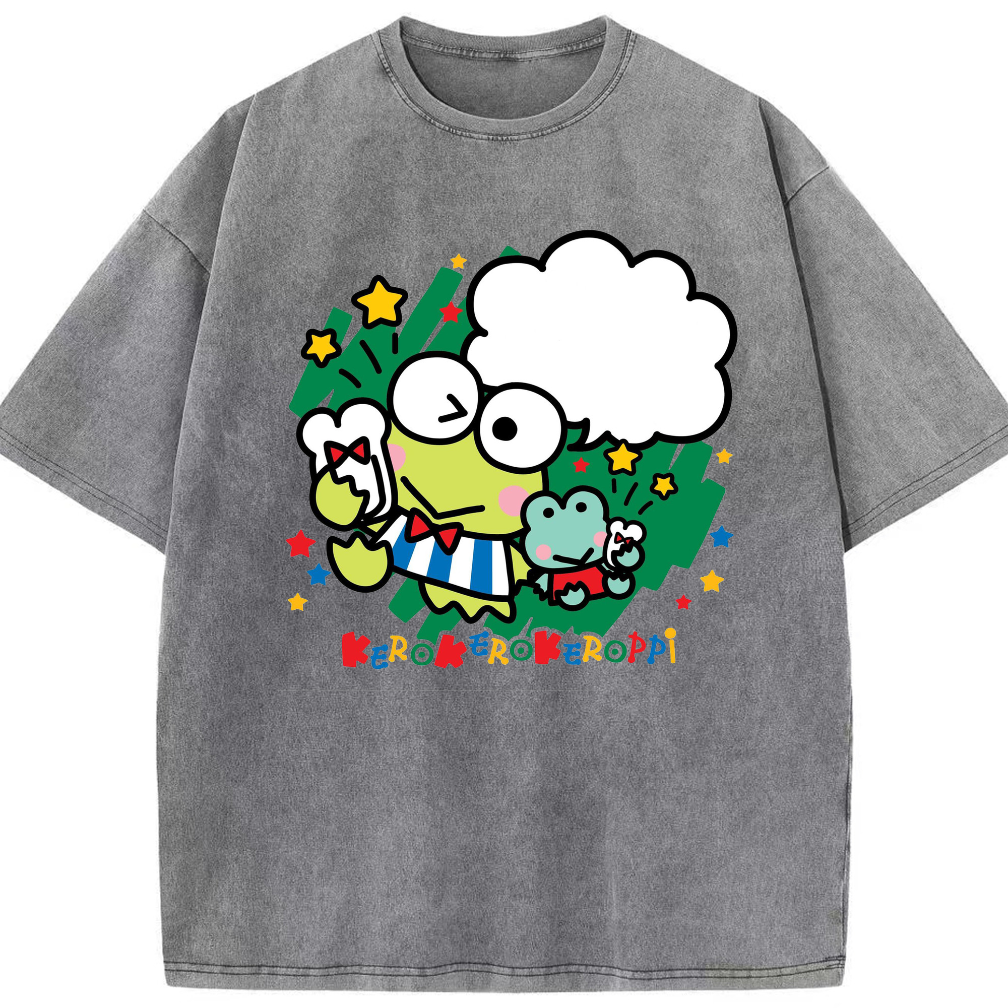 おもしろサンリオ - 綿100% ヴィンテージ風 半袖Tシャツ ・ フロントプリント ・ 柔らか肌触り ・ 通気性 快適 ・ スポーツ カジュアル 外出用