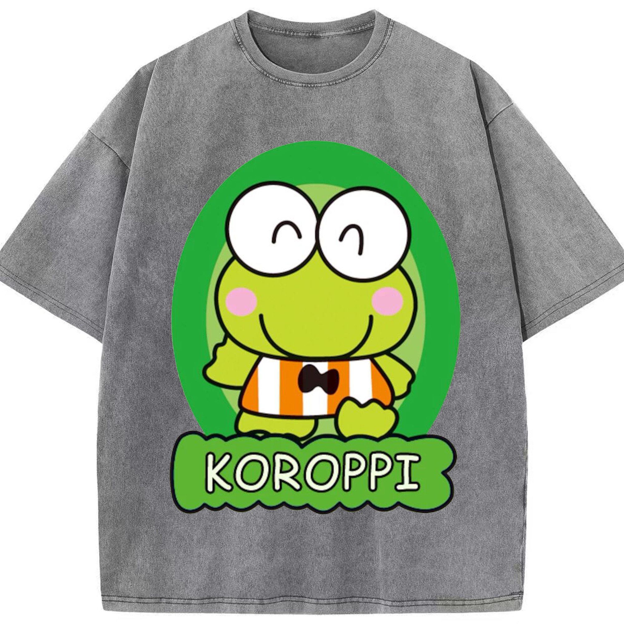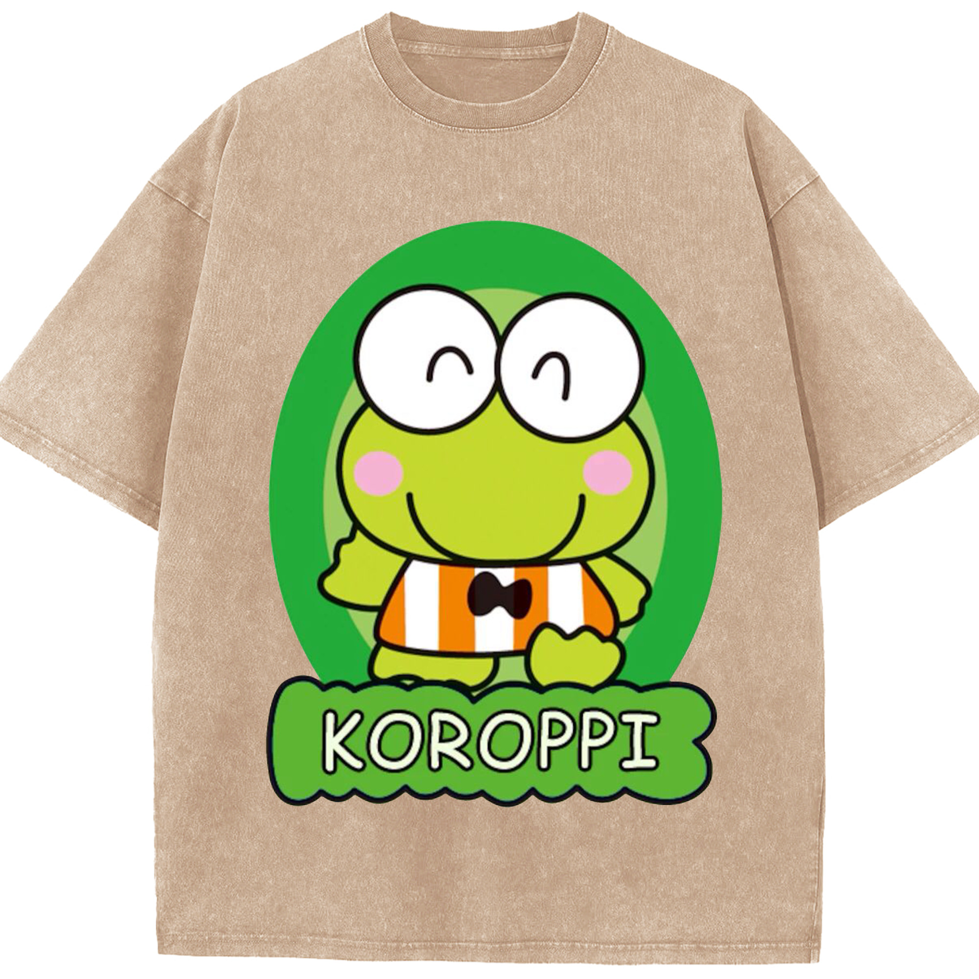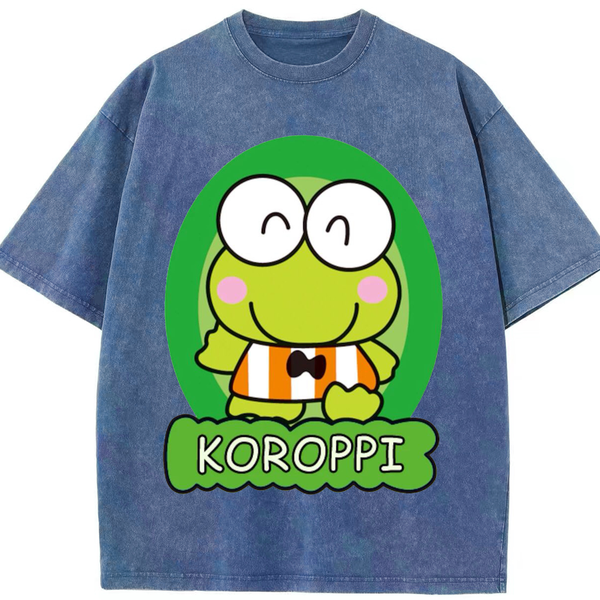 けろけろけろっぴ - 綿100% ヴィンテージ風 半袖Tシャツ ・ フロントプリント ・ 柔らか肌触り ・ 通気性 快適 ・ スポーツ カジュアル 外出用