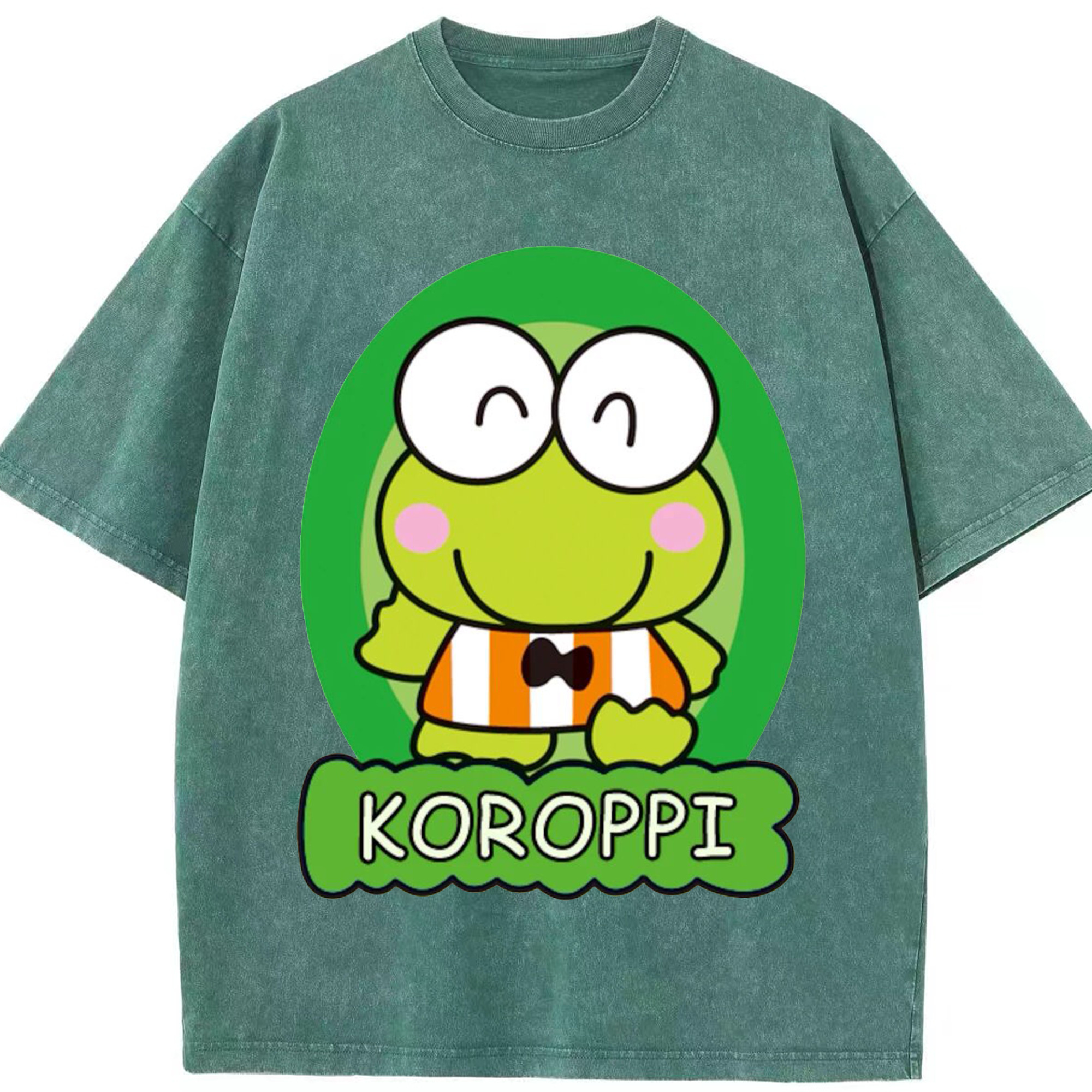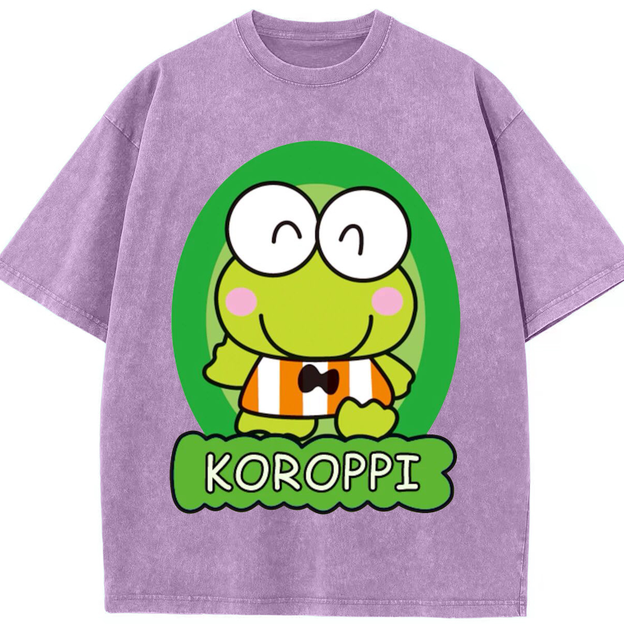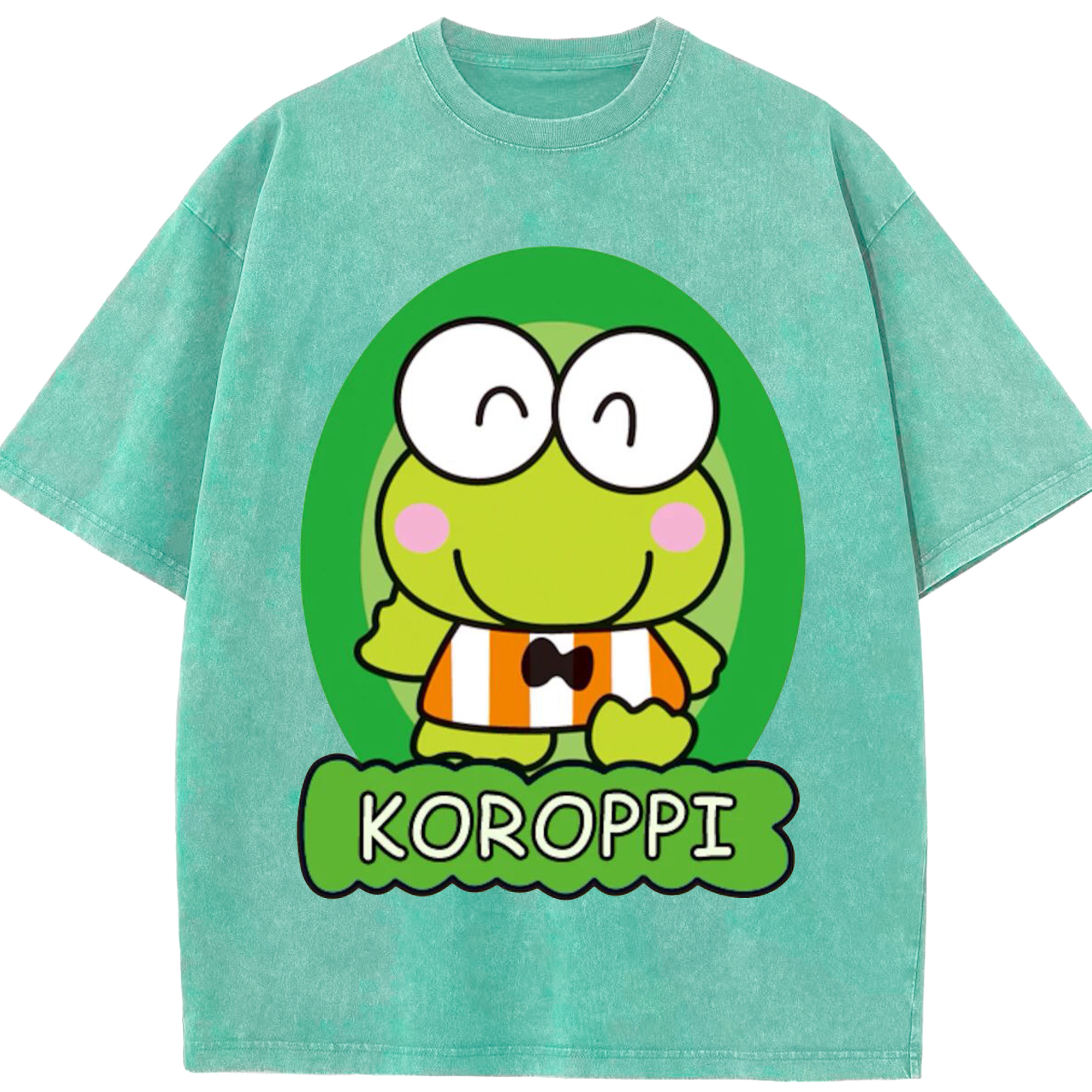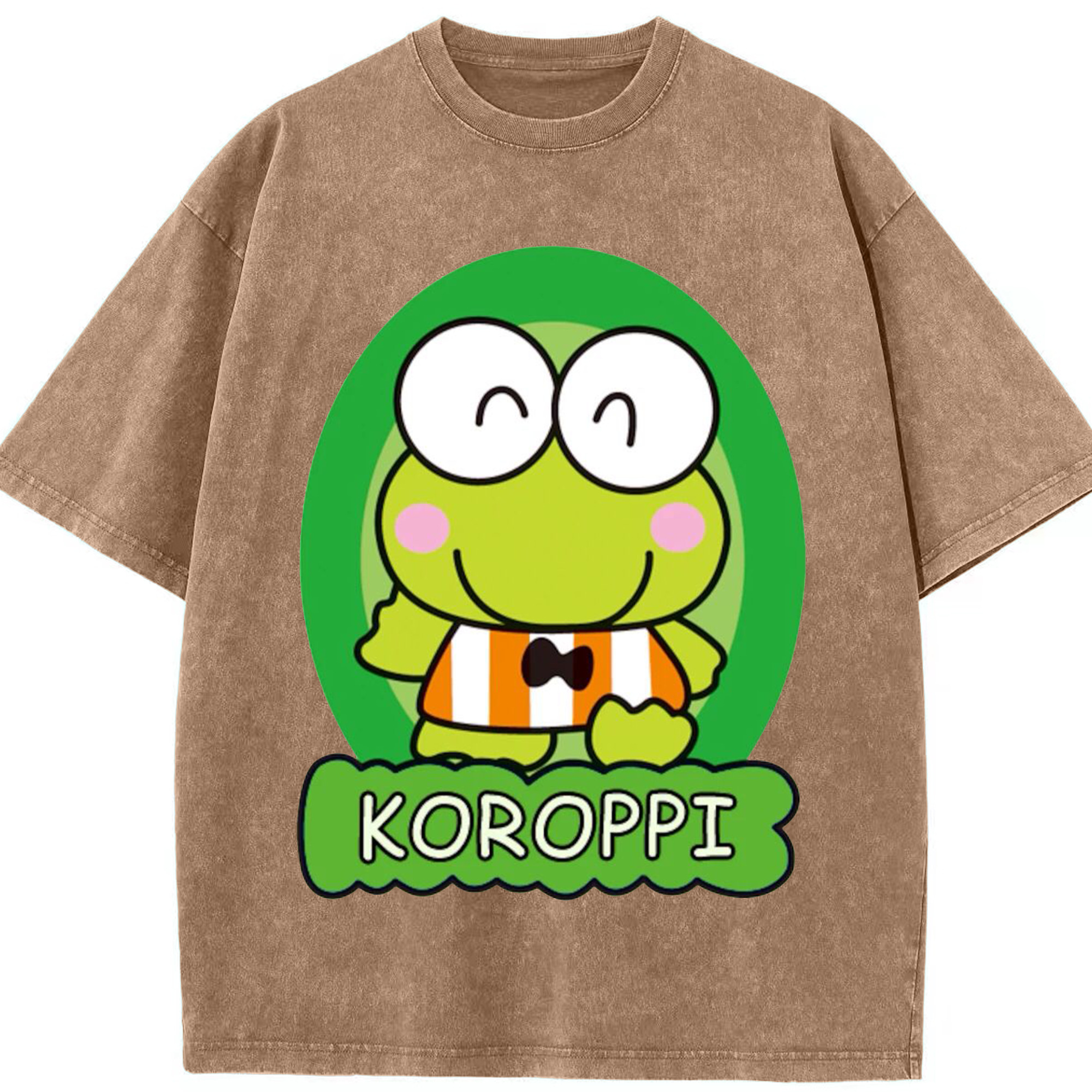 けろけろけろっぴ - 綿100% ヴィンテージ風 半袖Tシャツ ・ フロントプリント ・ 柔らか肌触り ・ 通気性 快適 ・ スポーツ カジュアル 外出用