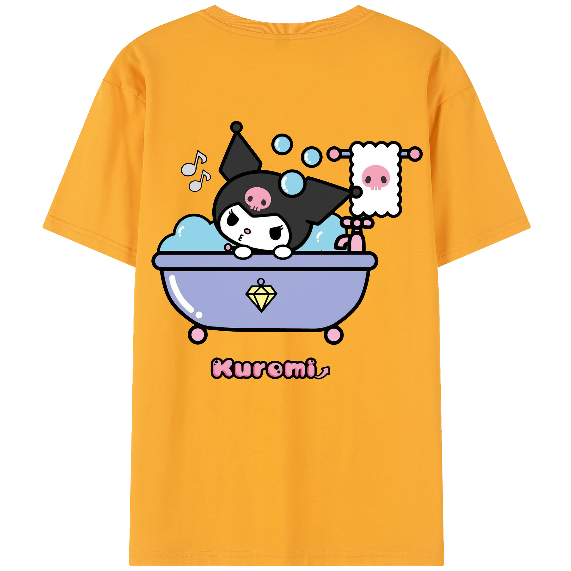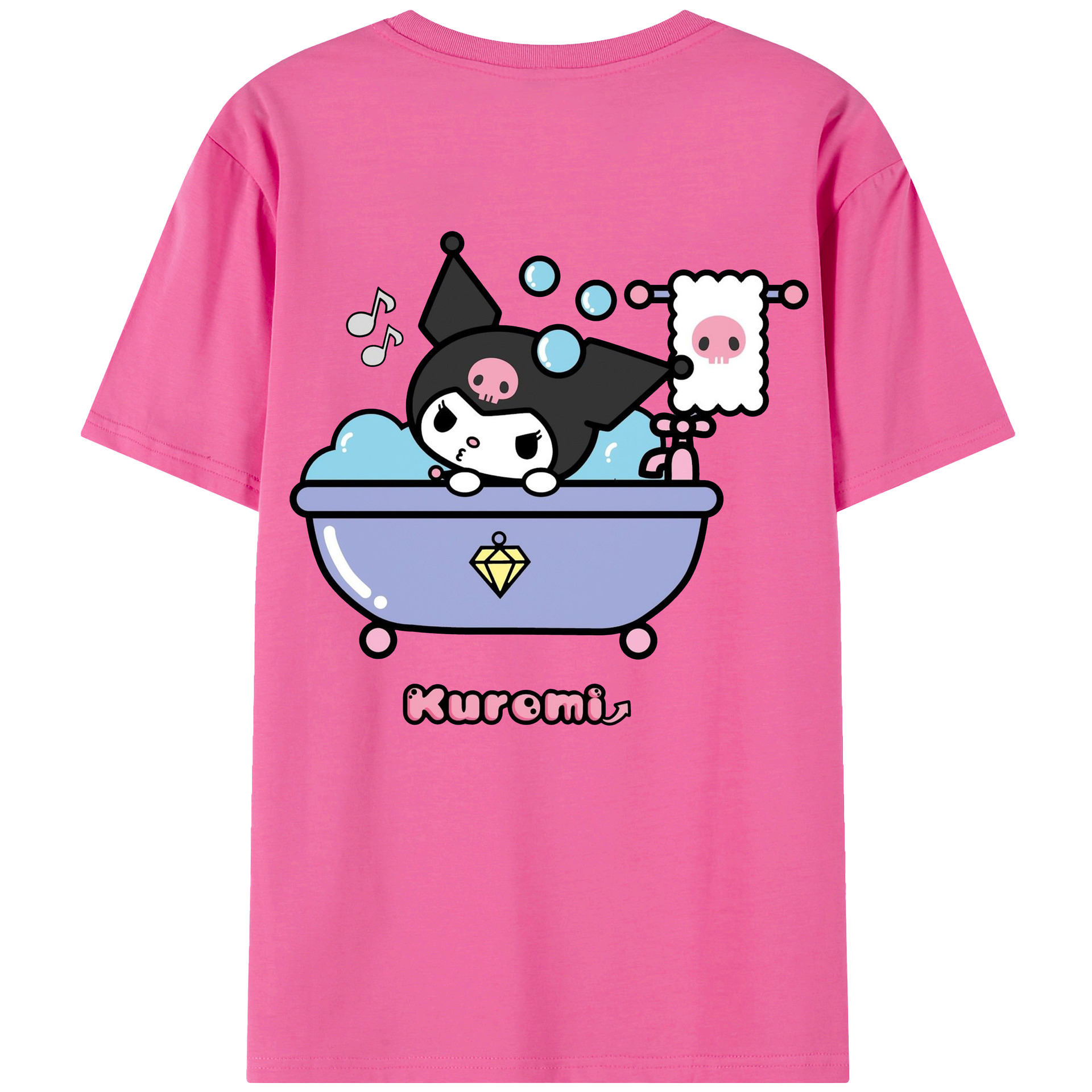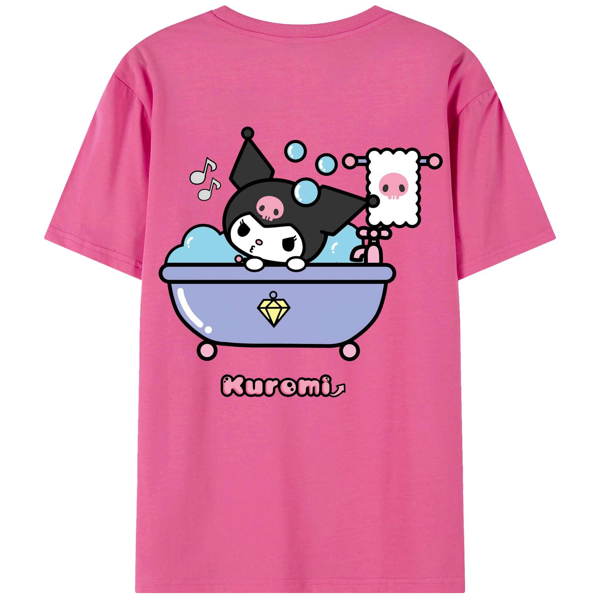 かわいいクロミ - レディース半袖Tシャツ ・ 綿100% ・ バックプリント ・ 強化クルーネック ・ 二重折り袖口 ・ 快適 通気性 ・ フィットネス カジュアル 旅行用
