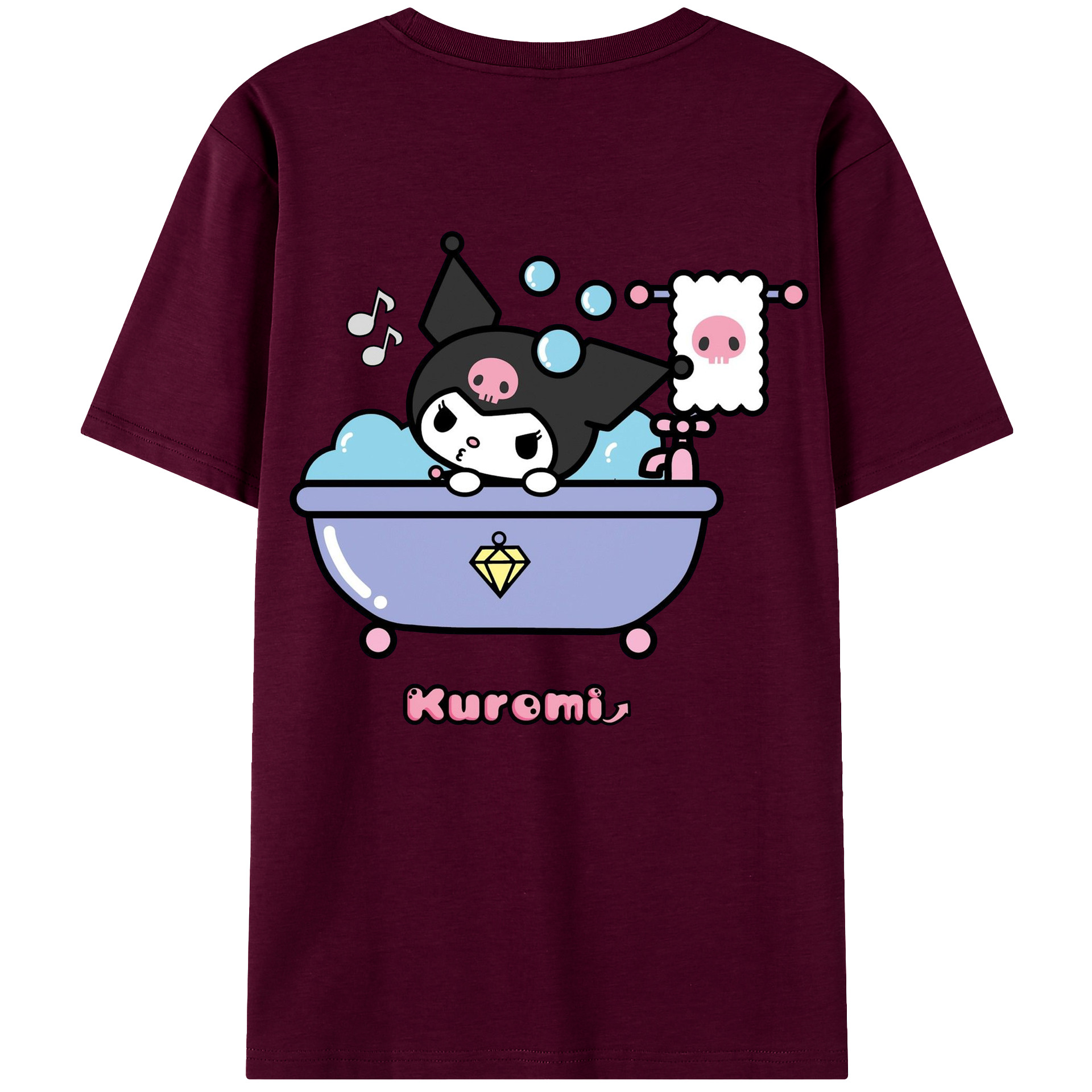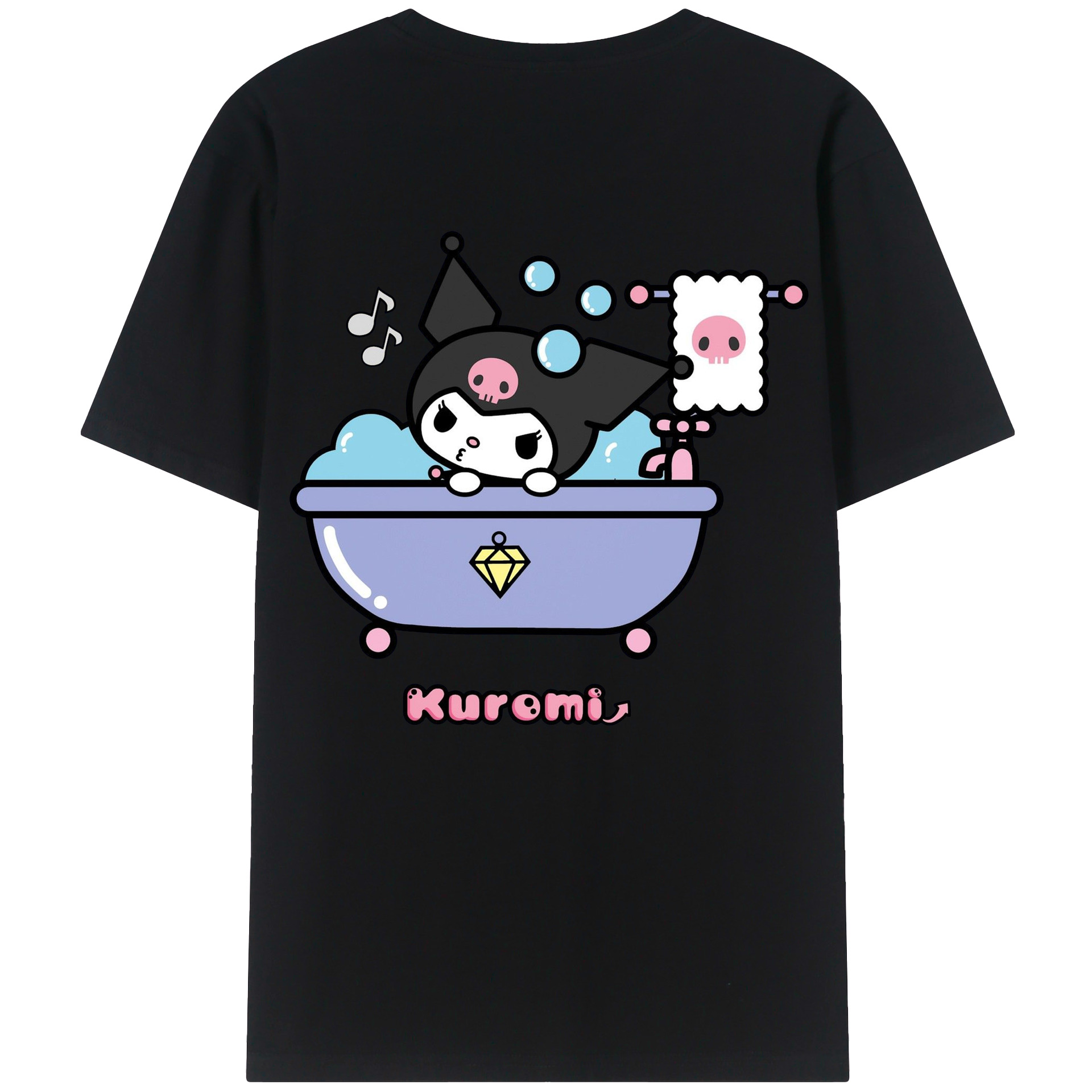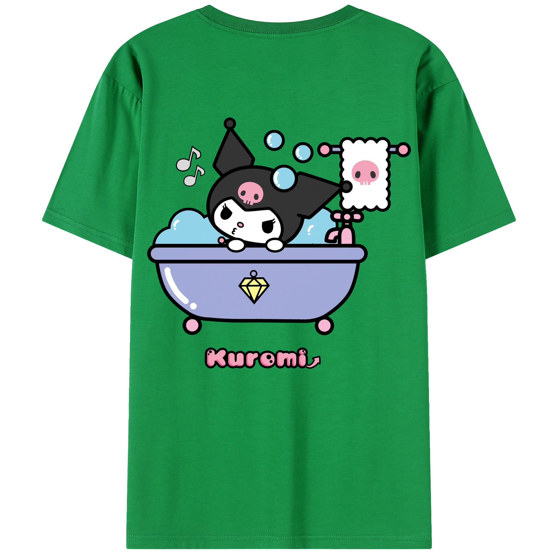 かわいいクロミ - レディース半袖Tシャツ ・ 綿100% ・ バックプリント ・ 強化クルーネック ・ 二重折り袖口 ・ 快適 通気性 ・ フィットネス カジュアル 旅行用