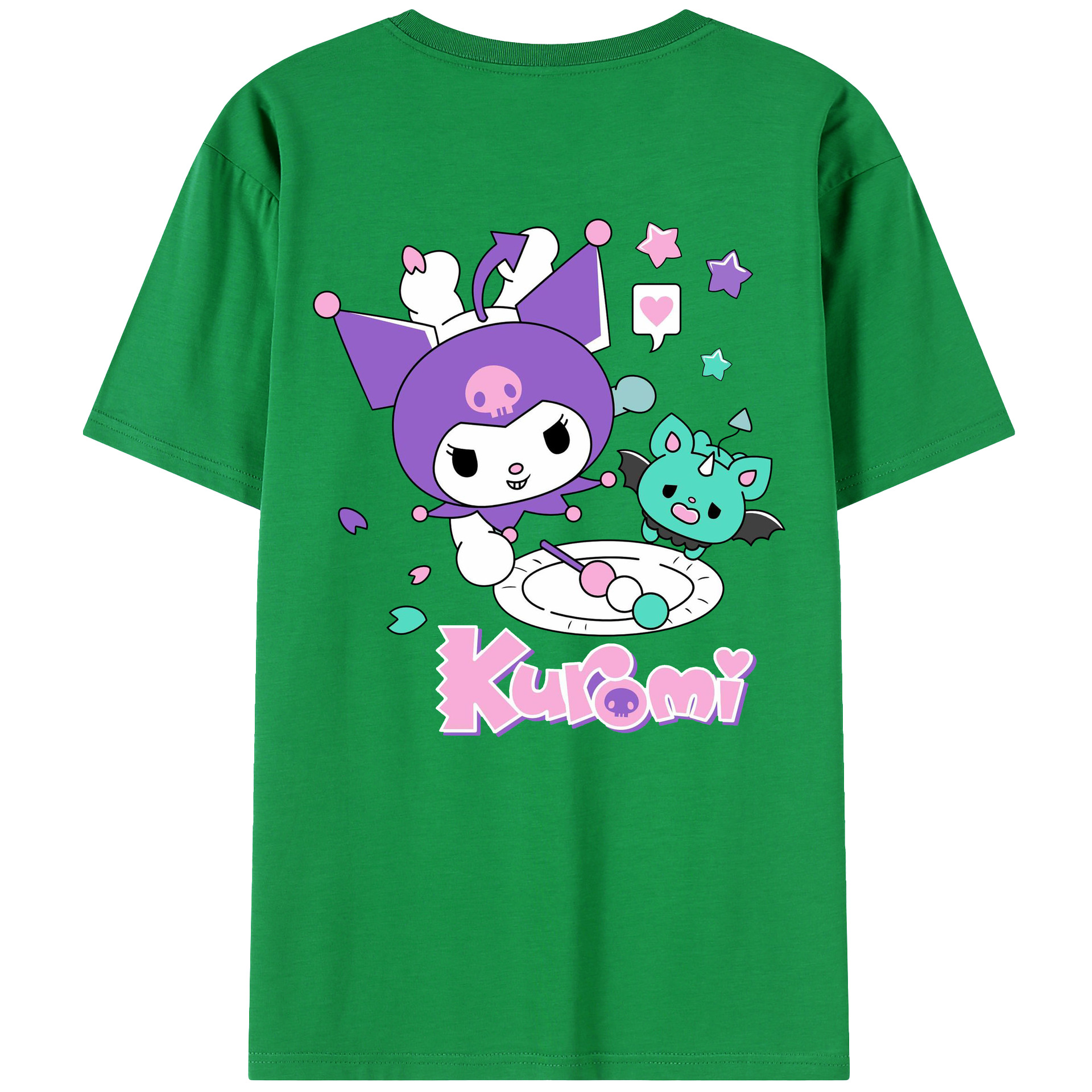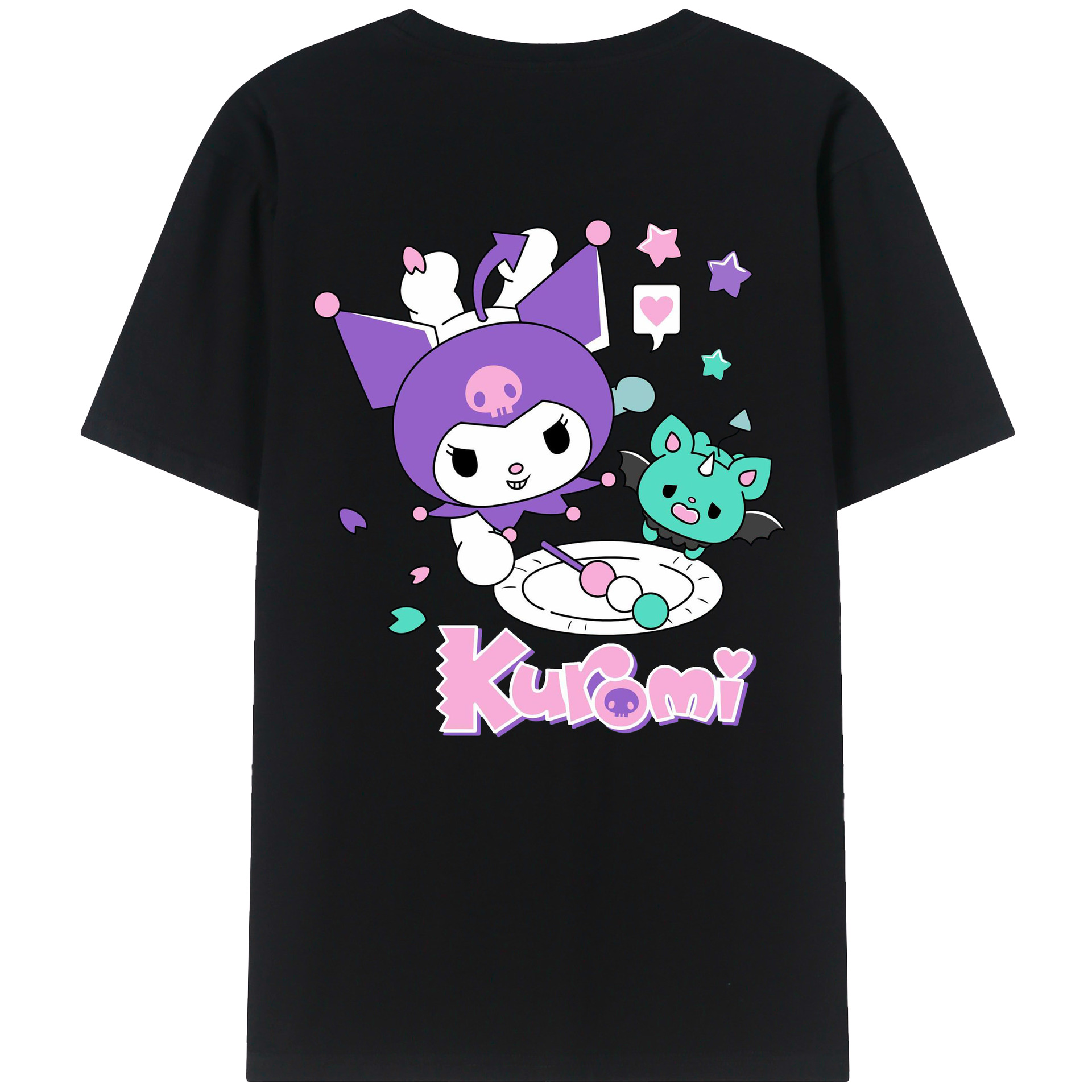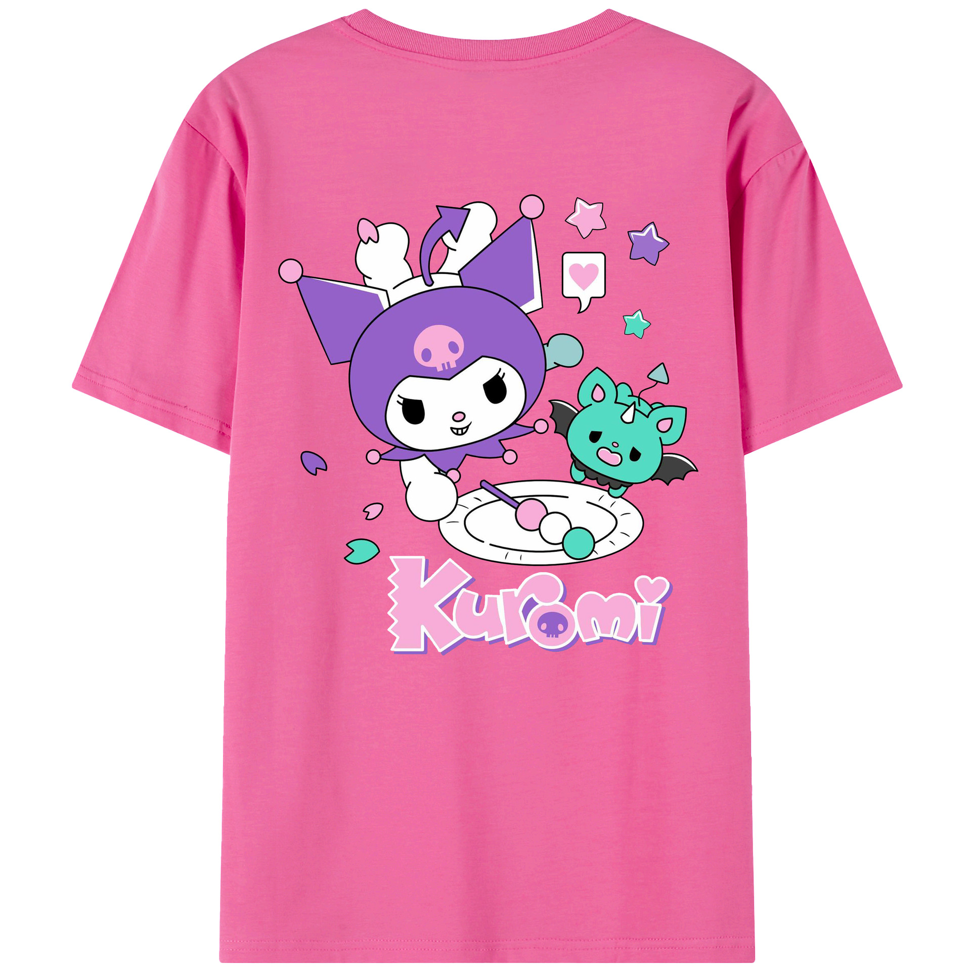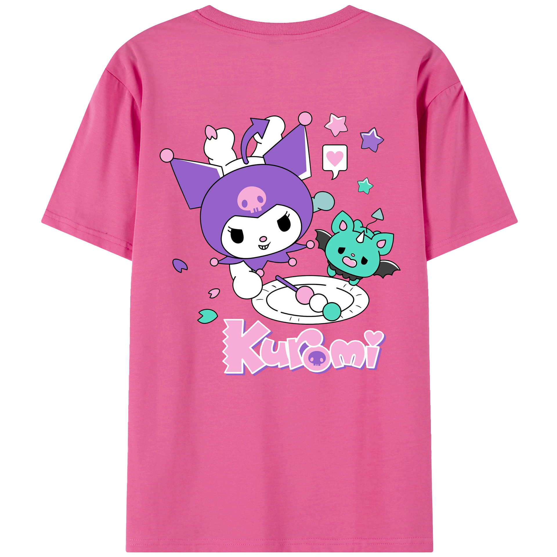 かわいいクロミ - レディース半袖Tシャツ ・ 綿100% ・ バックプリント ・ 強化クルーネック ・ 二重折り袖口 ・ 快適 通気性 ・ フィットネス カジュアル 旅行用