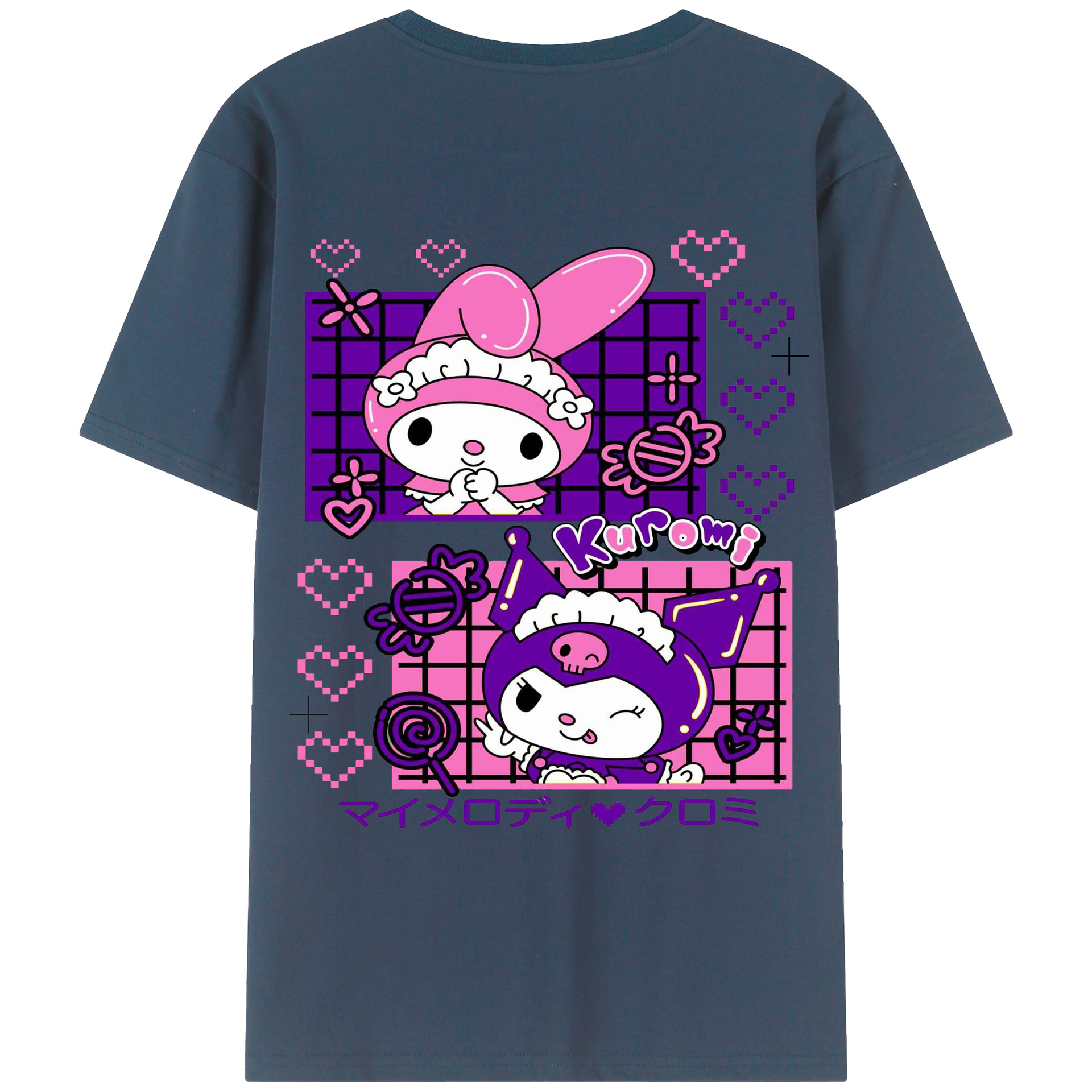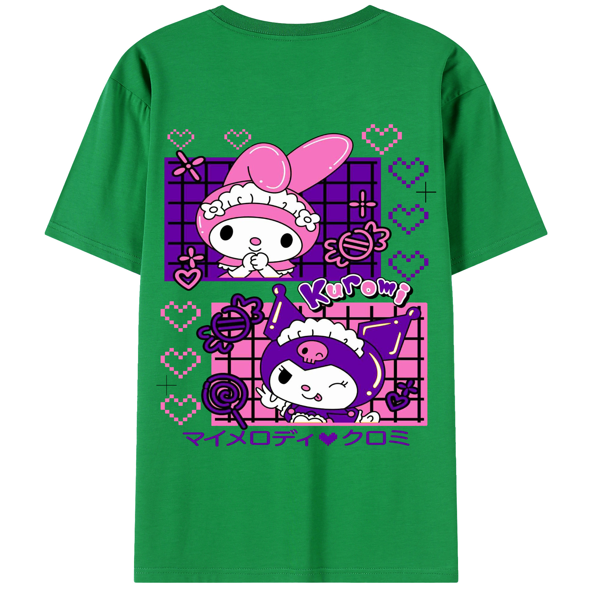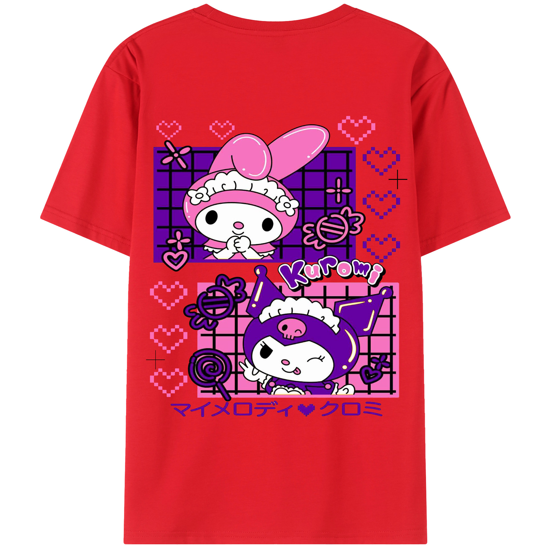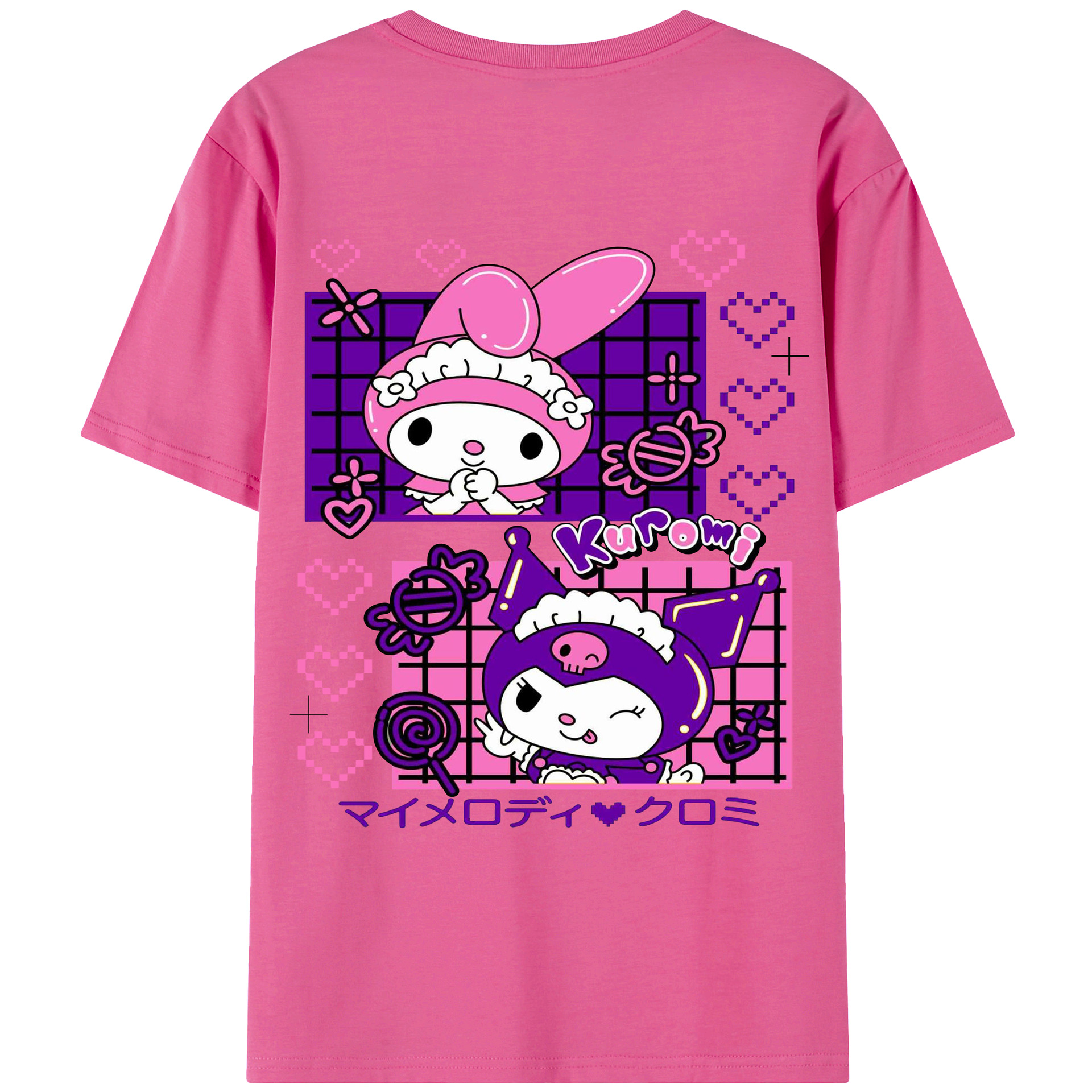 かわいいクロミ - レディース半袖Tシャツ ・ 綿100% ・ バックプリント ・ 強化クルーネック ・ 二重折り袖口 ・ 快適 通気性 ・ フィットネス カジュアル 旅行用