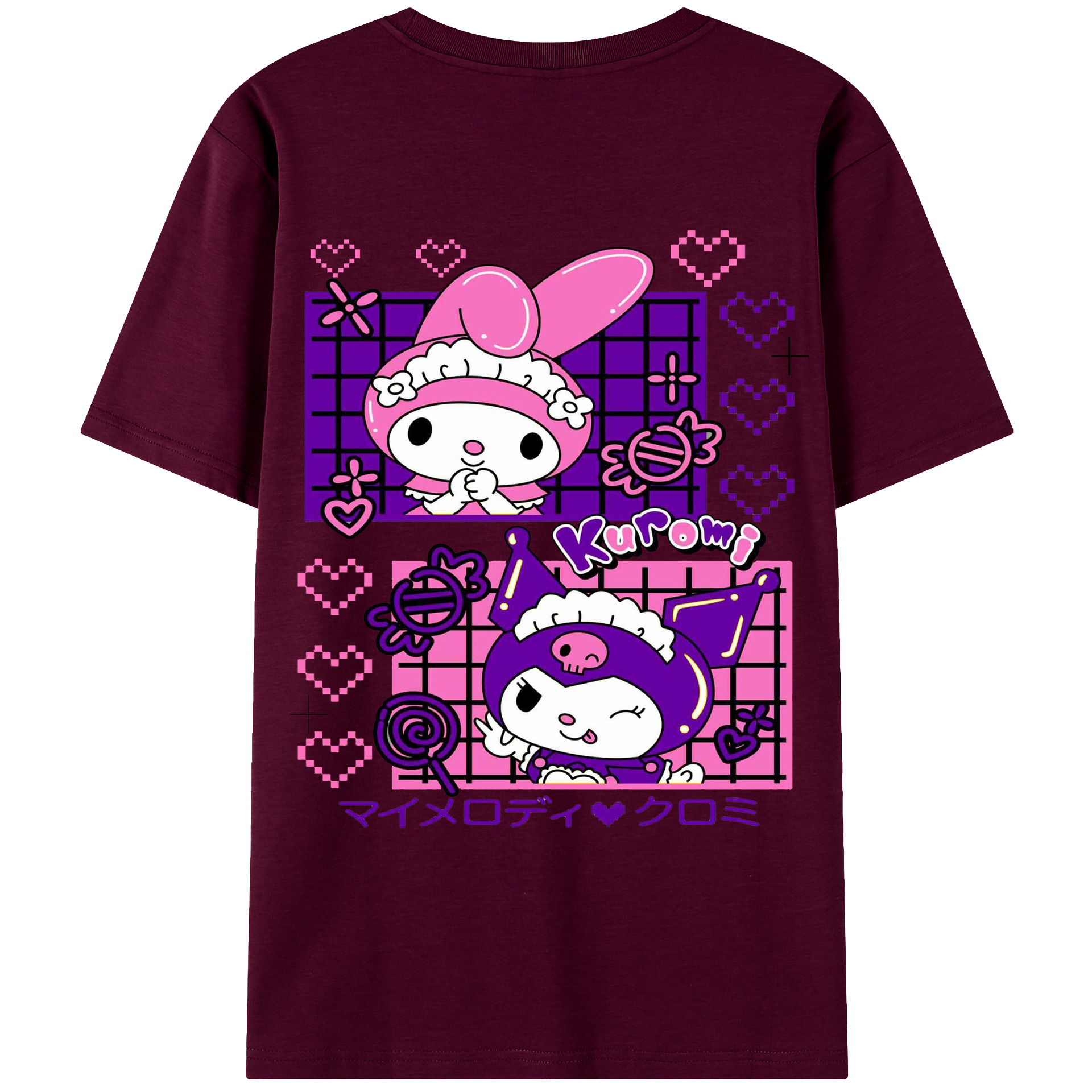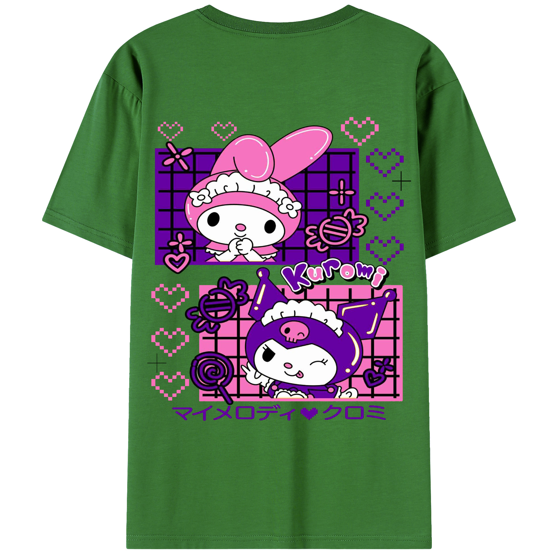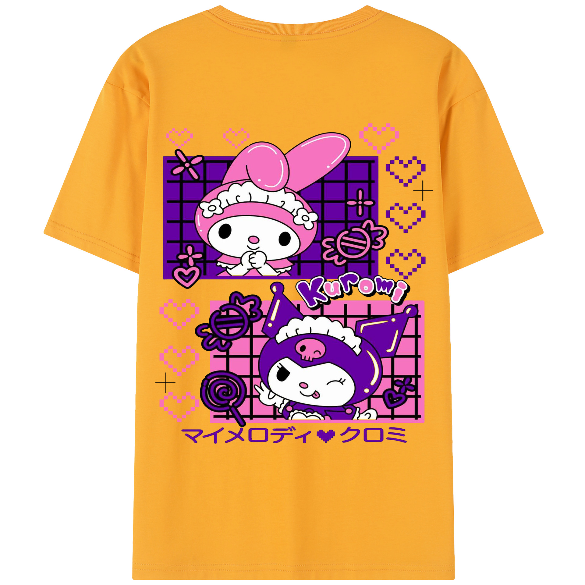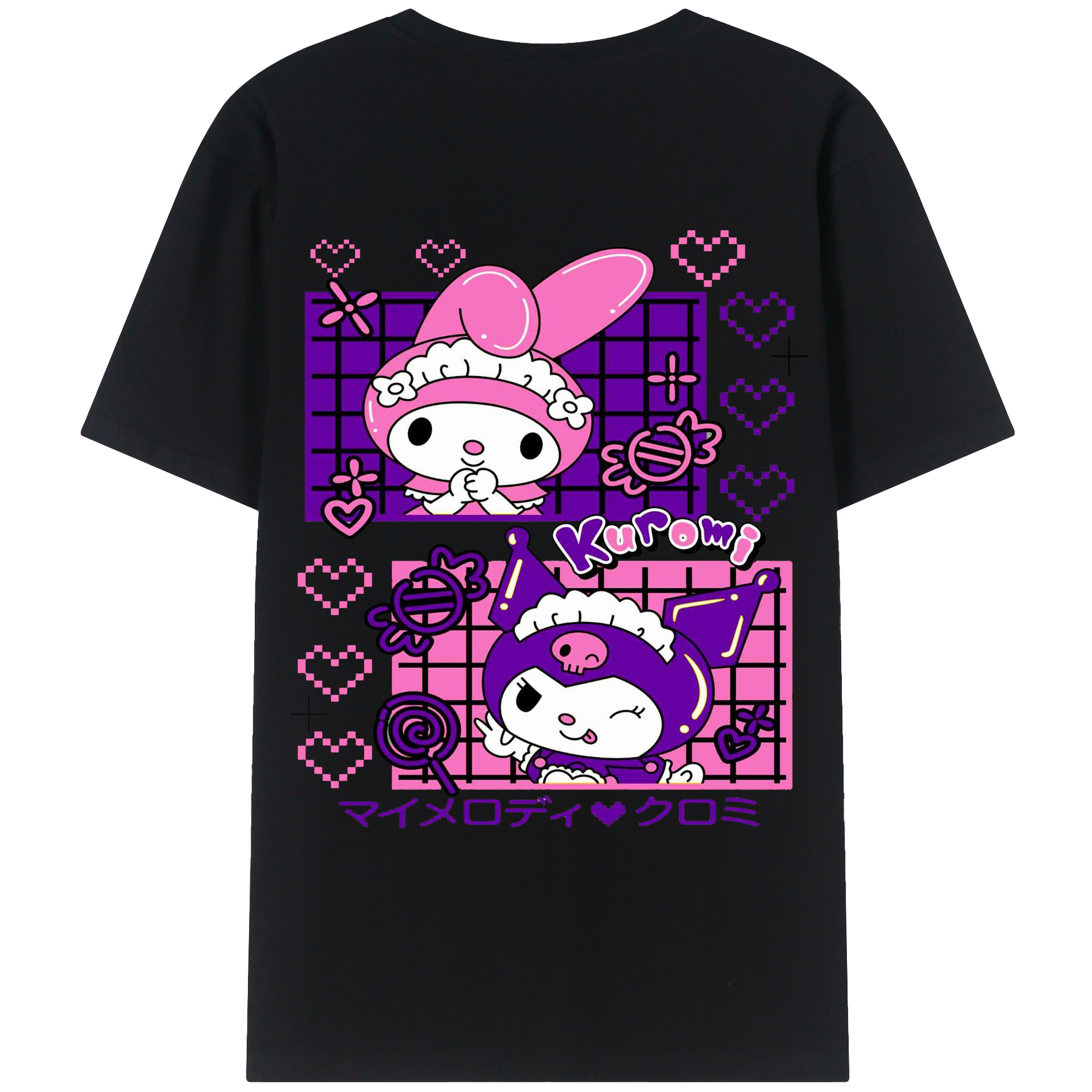 かわいいクロミ - レディース半袖Tシャツ ・ 綿100% ・ バックプリント ・ 強化クルーネック ・ 二重折り袖口 ・ 快適 通気性 ・ フィットネス カジュアル 旅行用