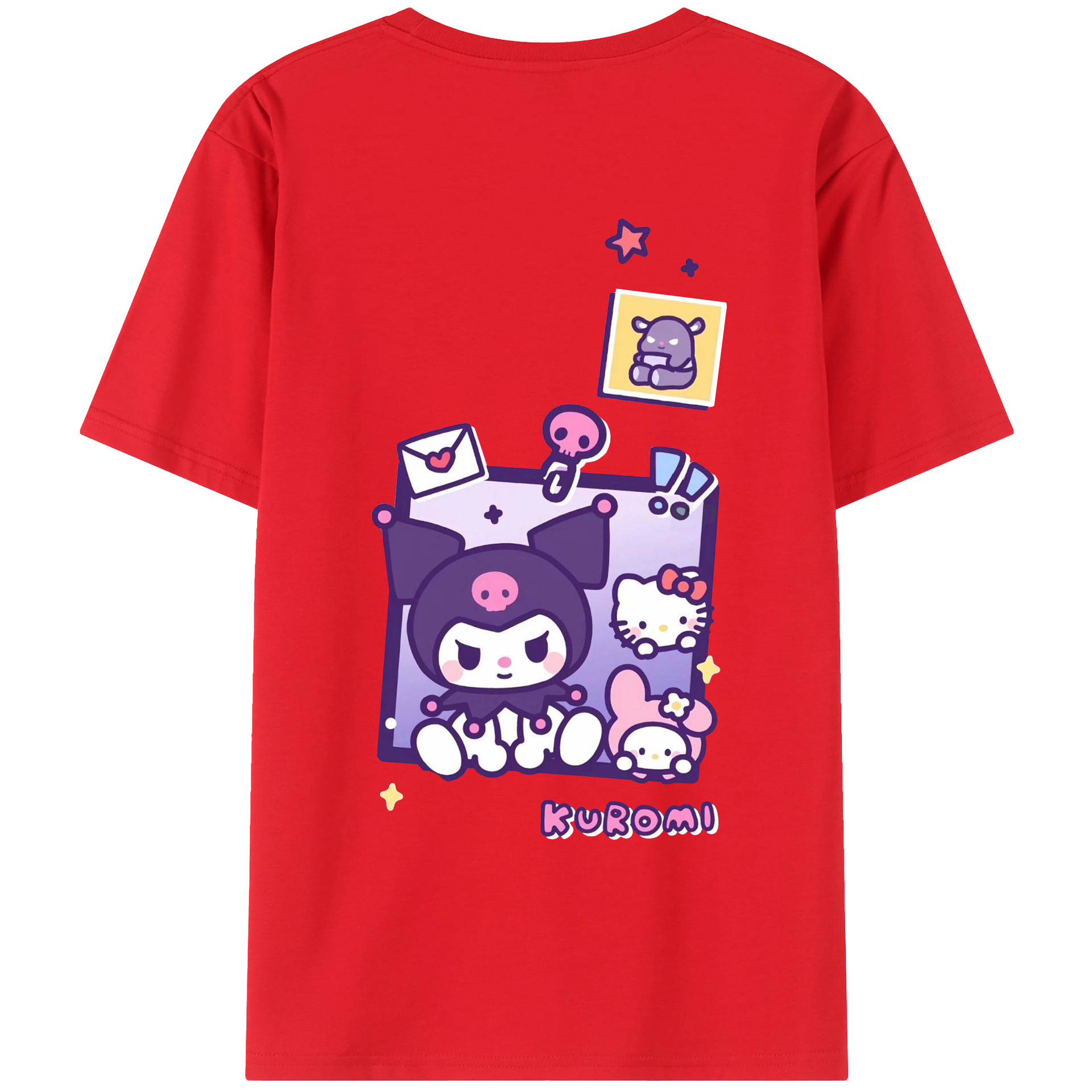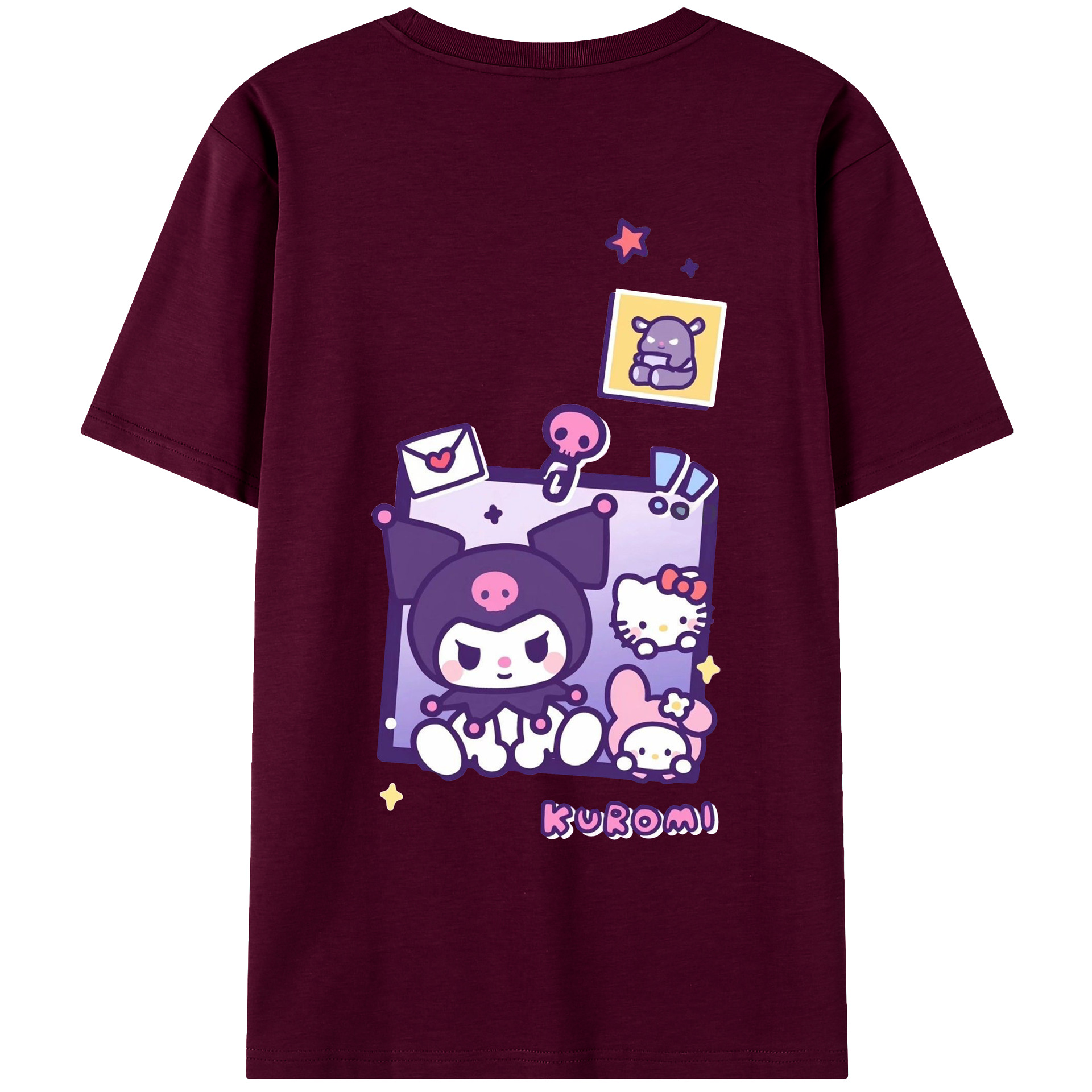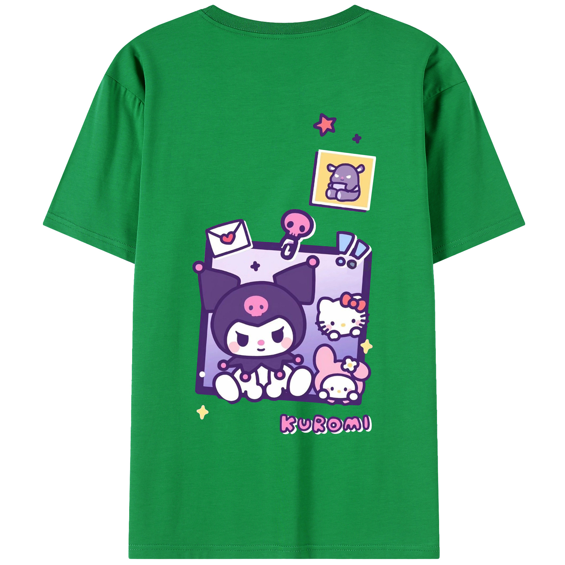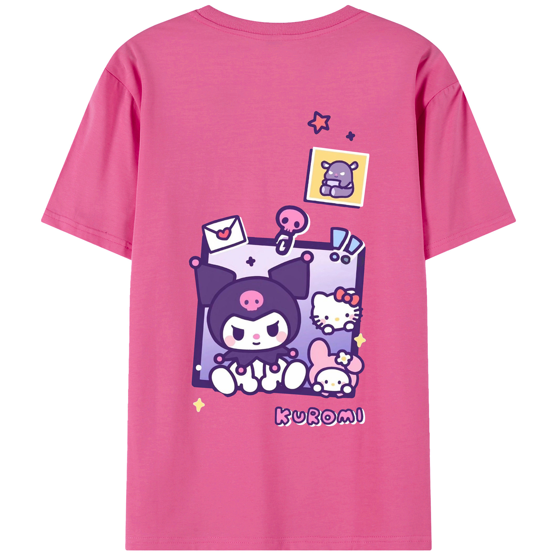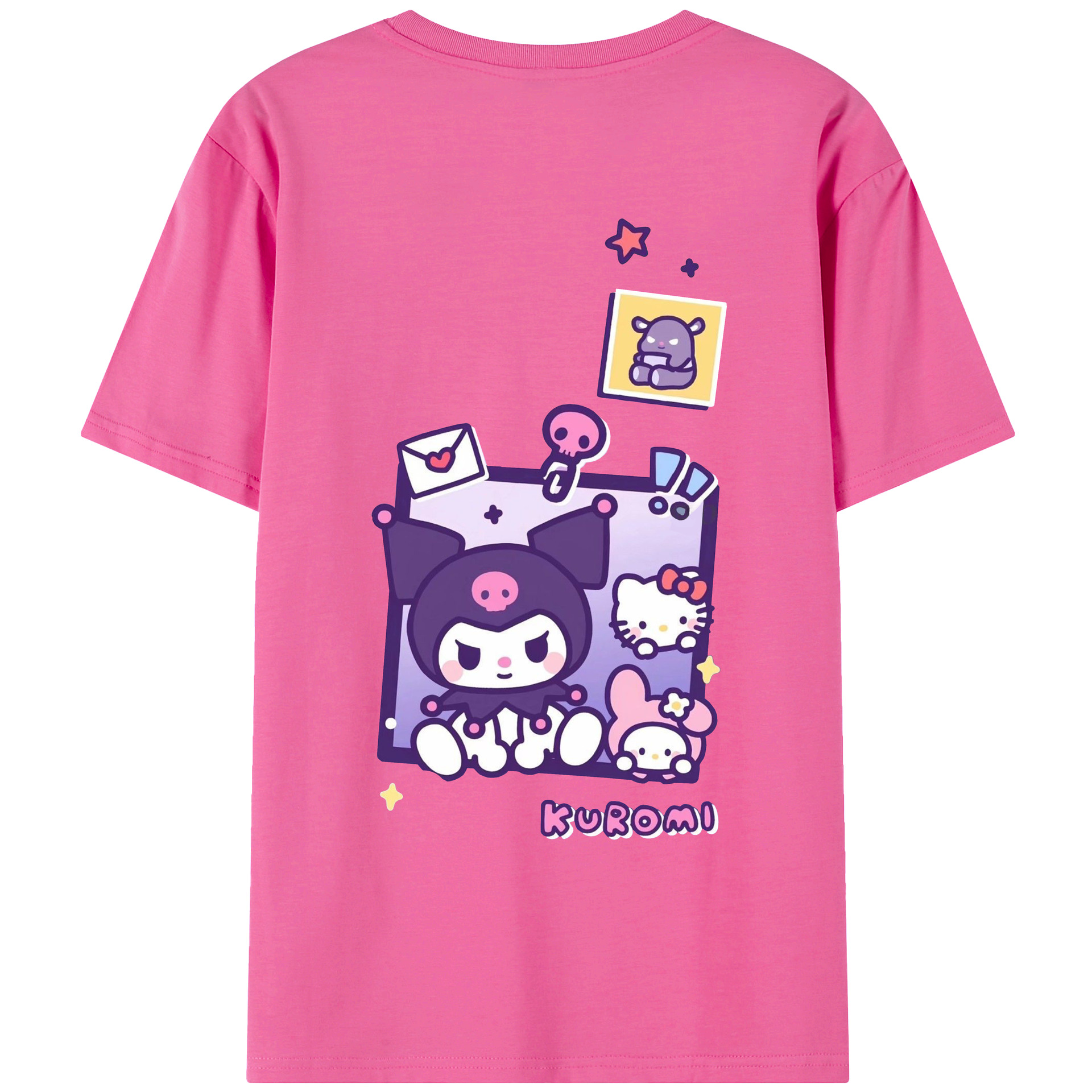 かわいいクロミ - レディース半袖Tシャツ ・ 綿100% ・ バックプリント ・ 強化クルーネック ・ 二重折り袖口 ・ 快適 通気性 ・ フィットネス カジュアル 旅行用