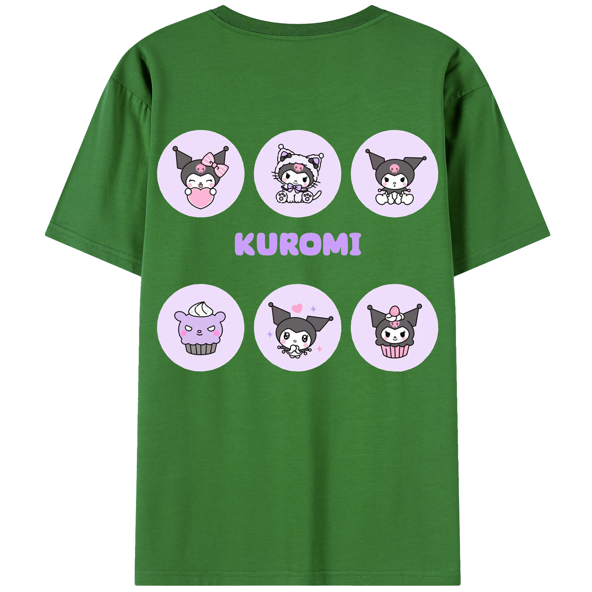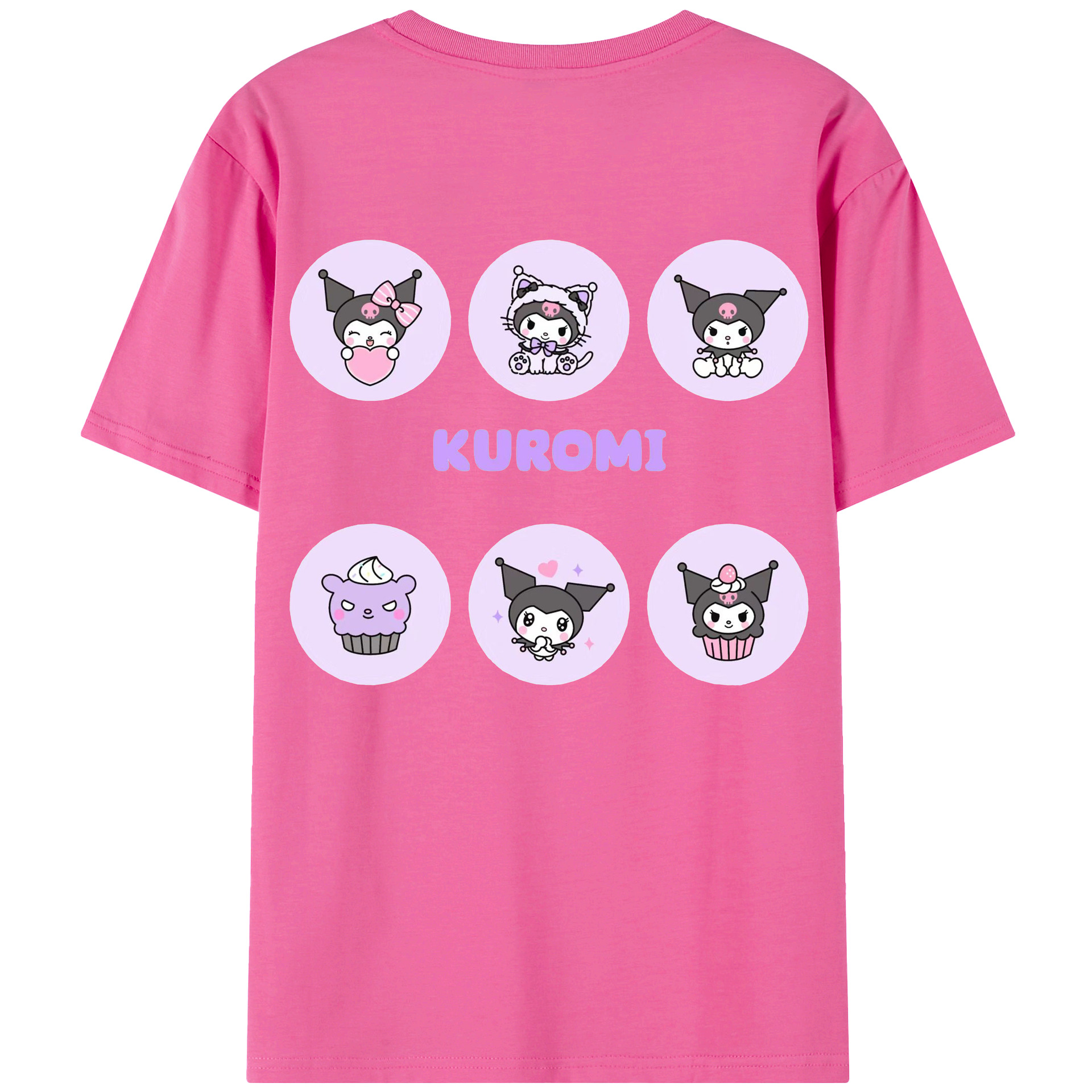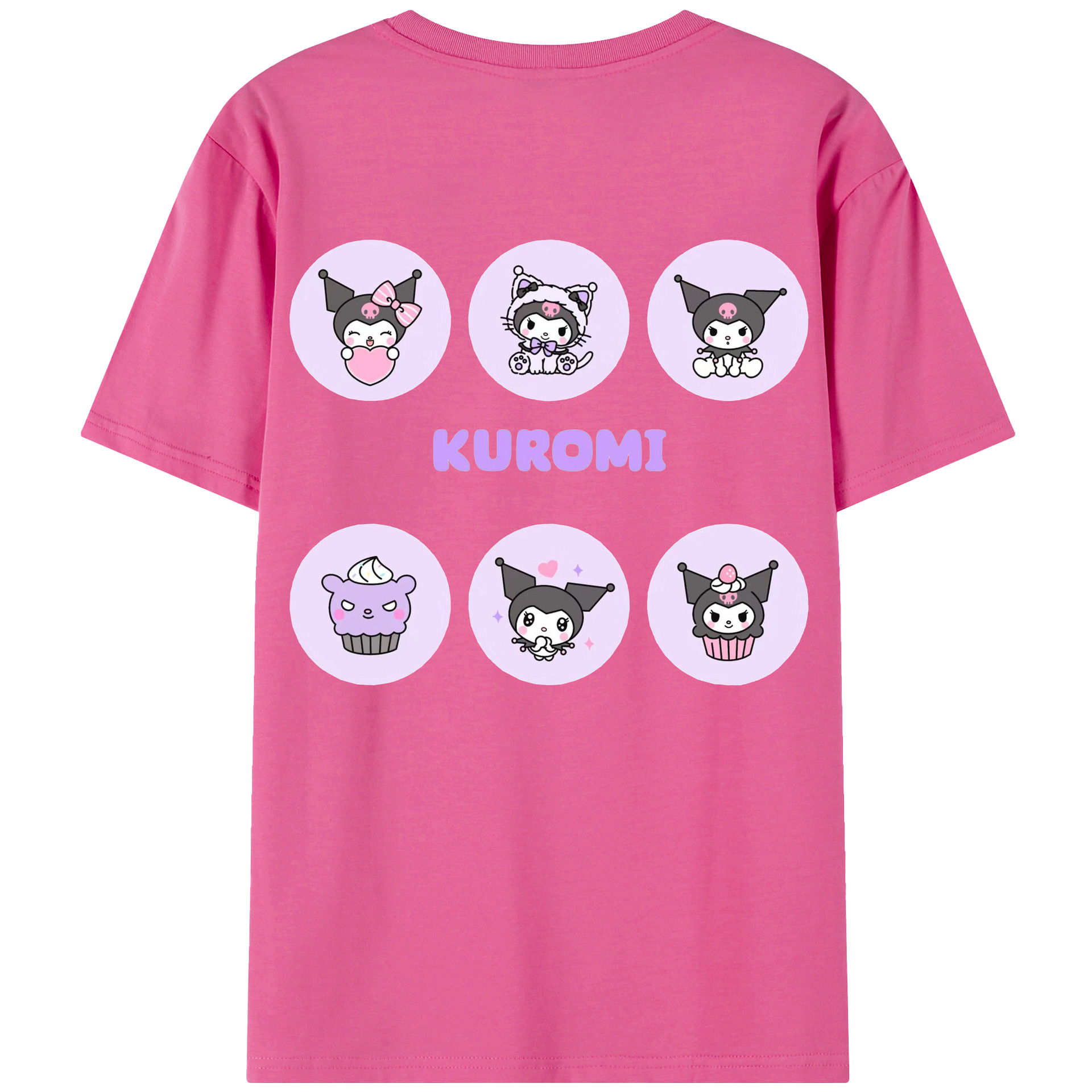 かわいいクロミ - レディース半袖Tシャツ ・ 綿100% ・ バックプリント ・ 強化クルーネック ・ 二重折り袖口 ・ 快適 通気性 ・ フィットネス カジュアル 旅行用