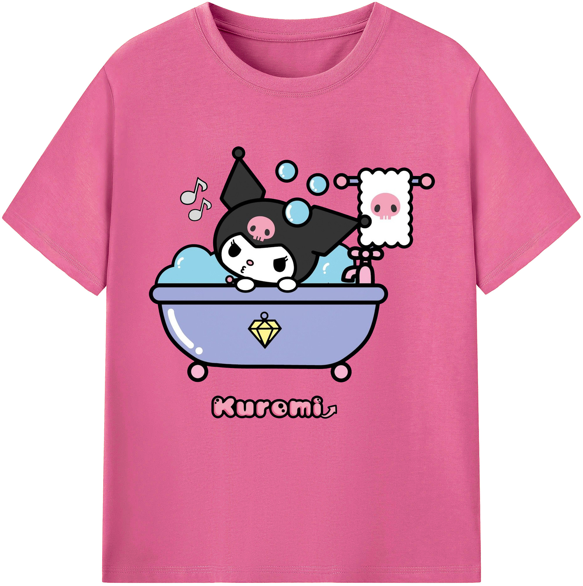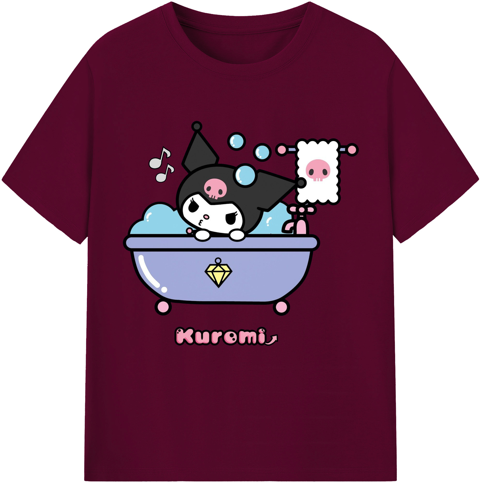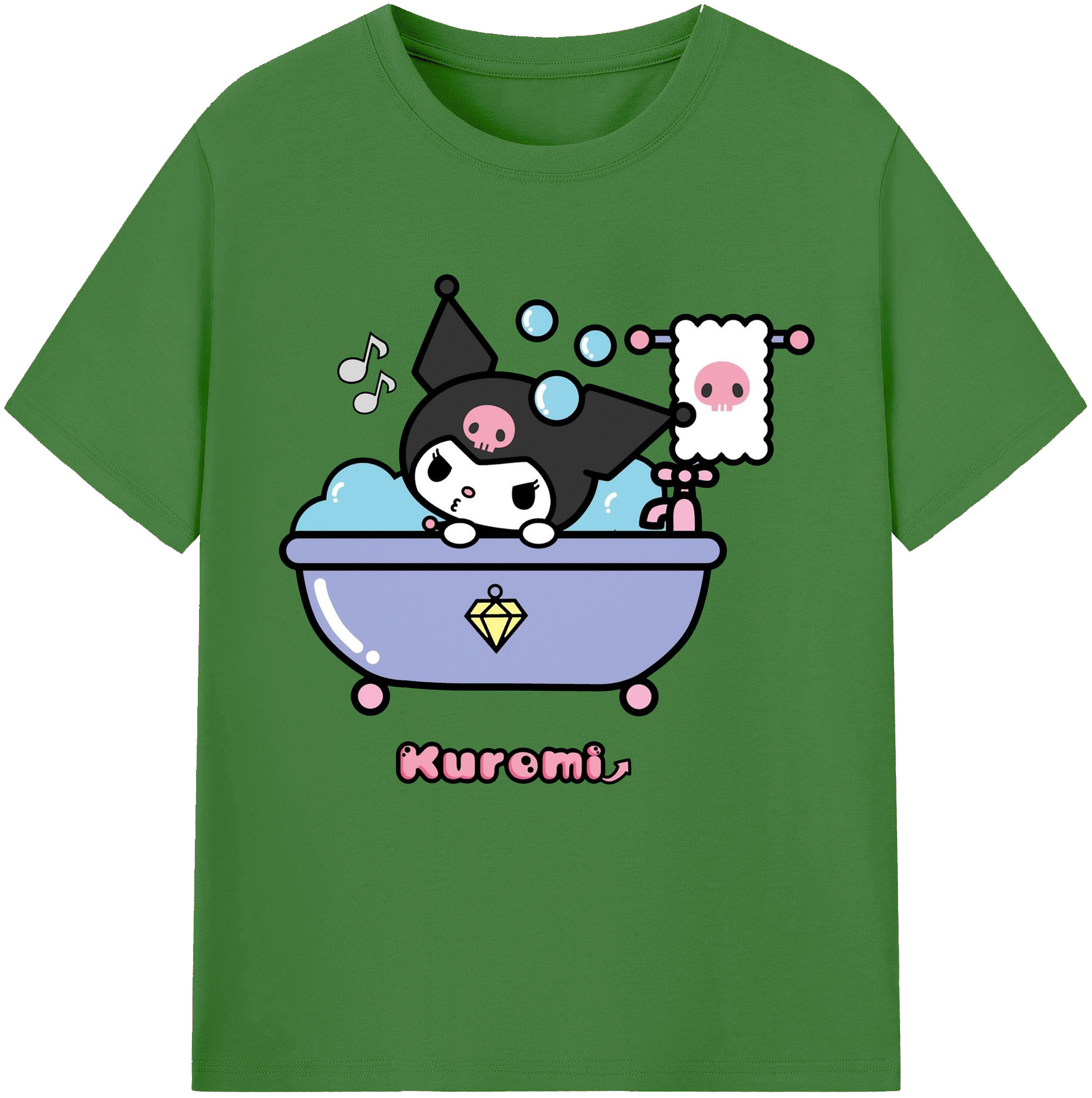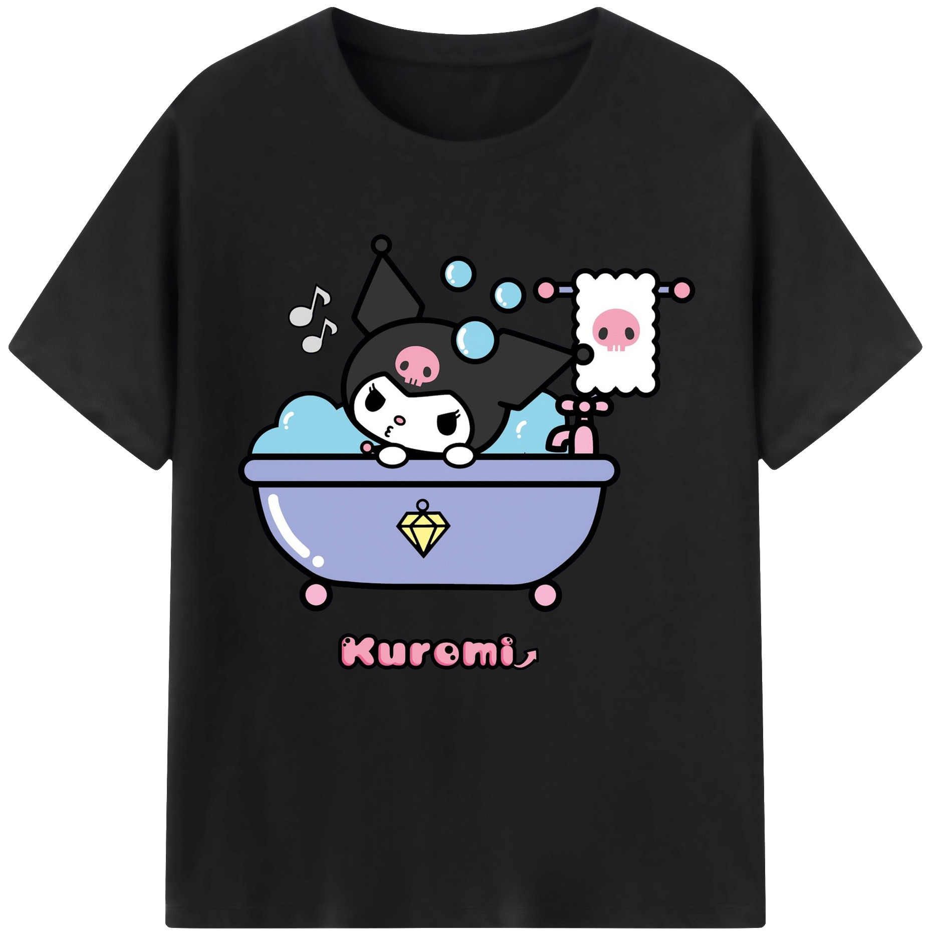 かわいいクロミ - レディースカジュアルプリントTシャツ ・ 綿100% ・ クルーネック ・ フロントプリント ・ 柔らかく快適 ・ フィットネス カジュアル 旅行用