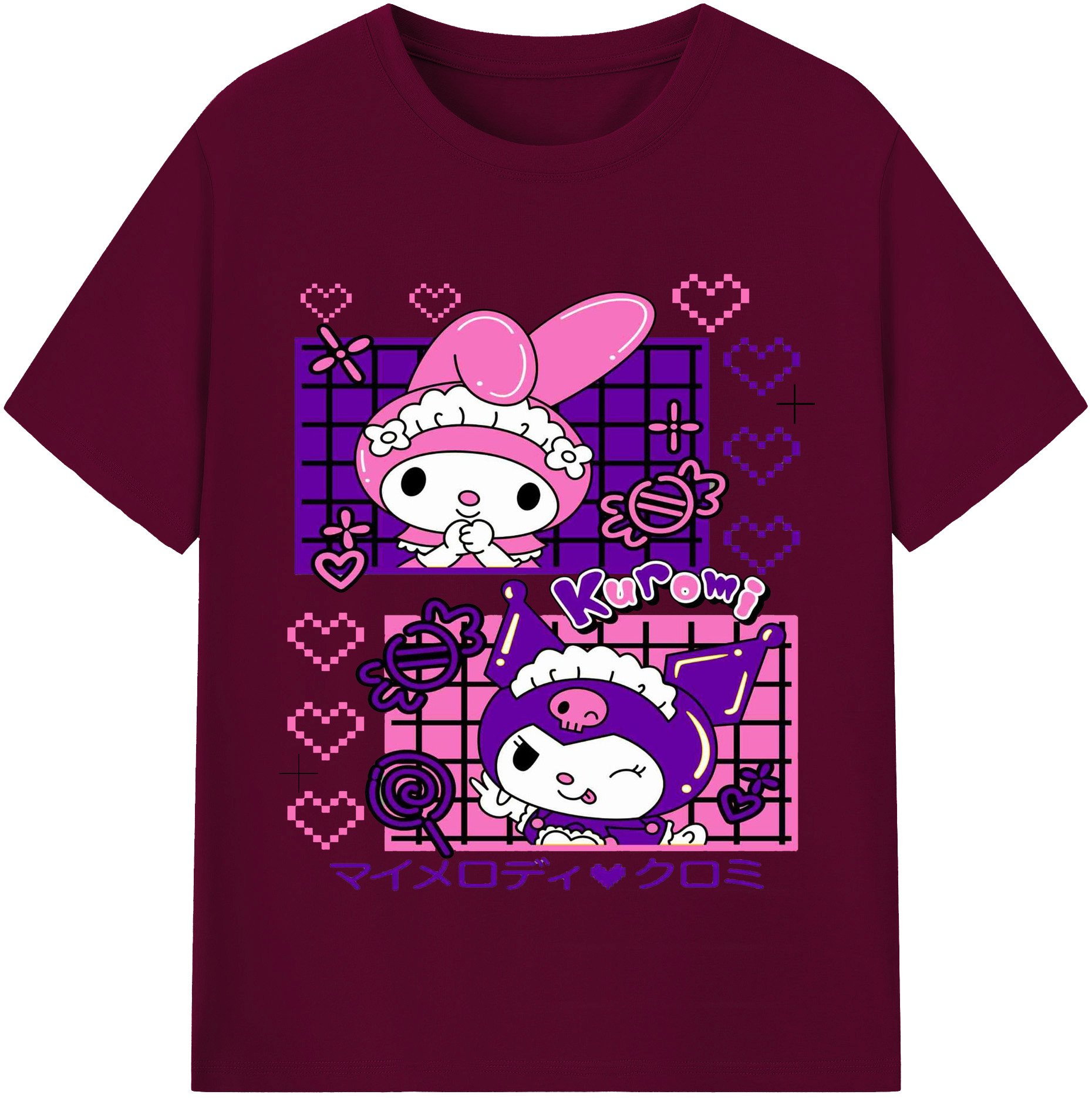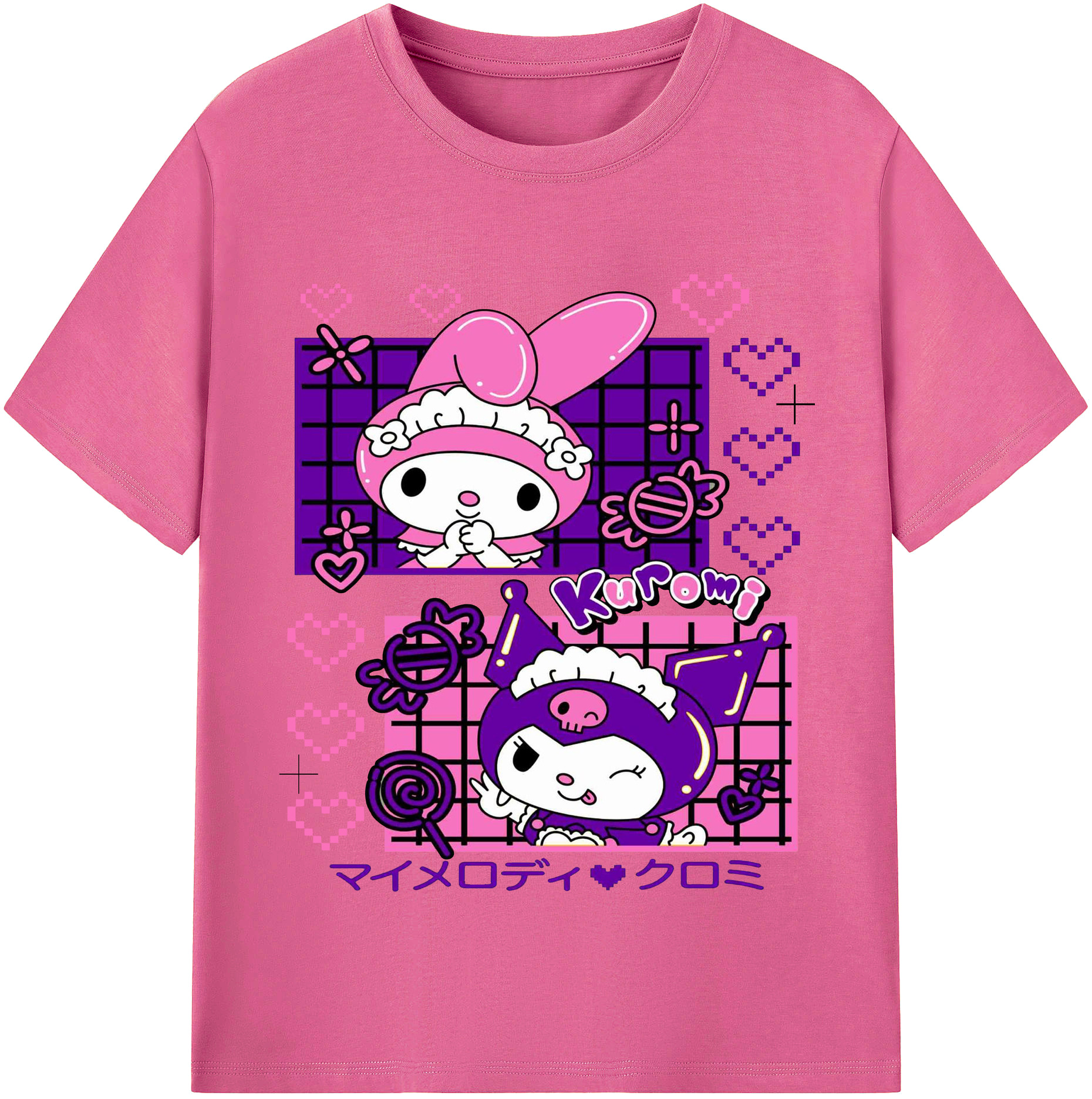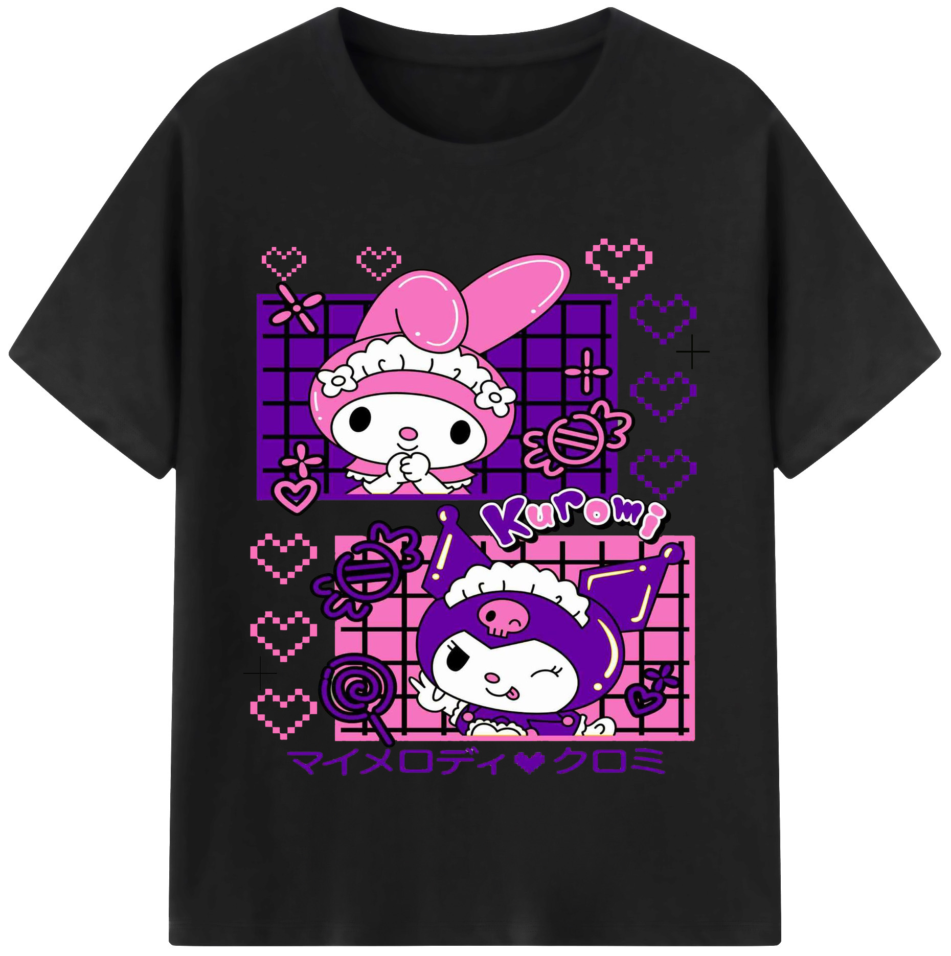 かわいいクロミ - レディースカジュアルプリントTシャツ ・ 綿100% ・ クルーネック ・ フロントプリント ・ 柔らかく快適 ・ フィットネス カジュアル 旅行用