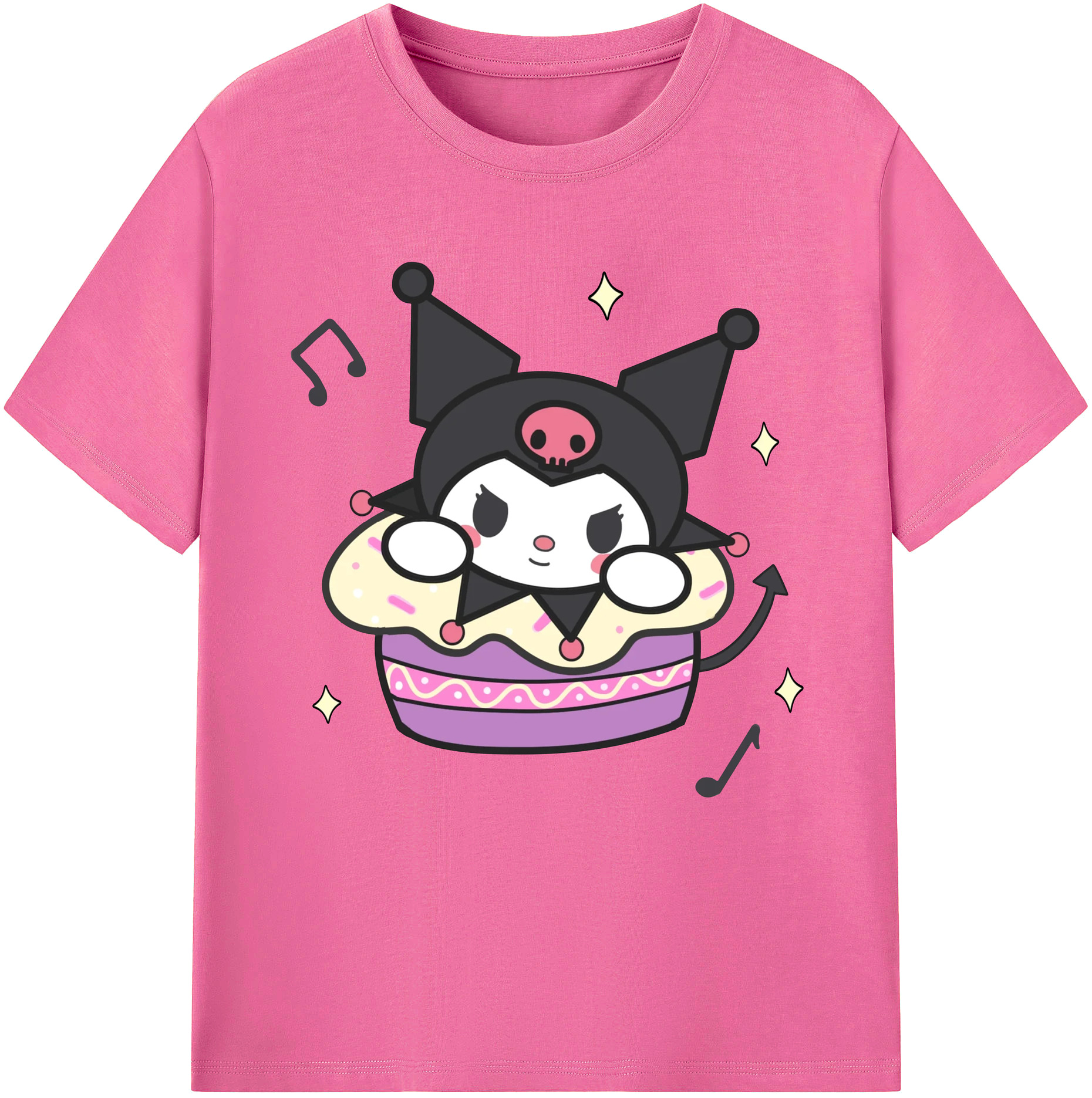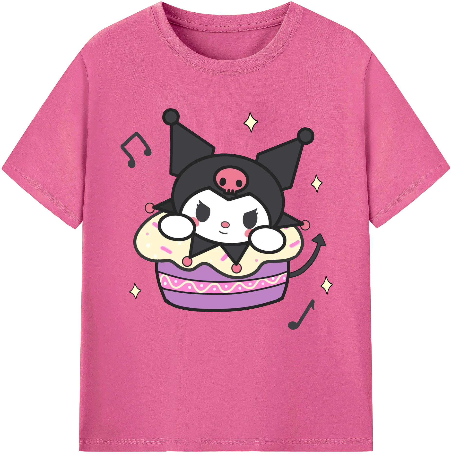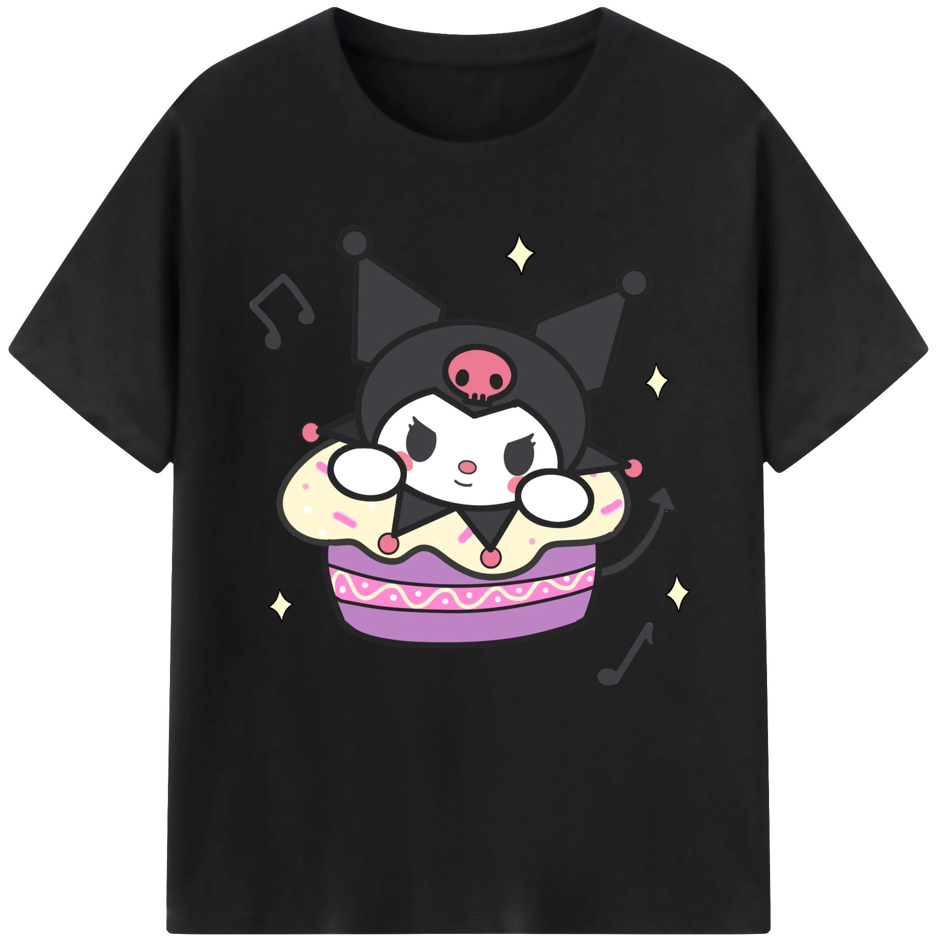 かわいいクロミ - レディースカジュアルプリントTシャツ ・ 綿100% ・ クルーネック ・ フロントプリント ・ 柔らかく快適 ・ フィットネス カジュアル 旅行用
