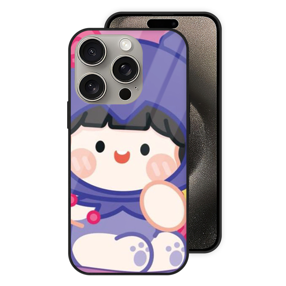 かわいいクロミ - IPhone15Pro対応 ・ スマホケース ・ 背面ガラス ・ TPU+強化ガラス ・ 耐衝撃 ・ 黄変防止 ・ ワイヤレス充電対応 ・ 3D立体ボタン