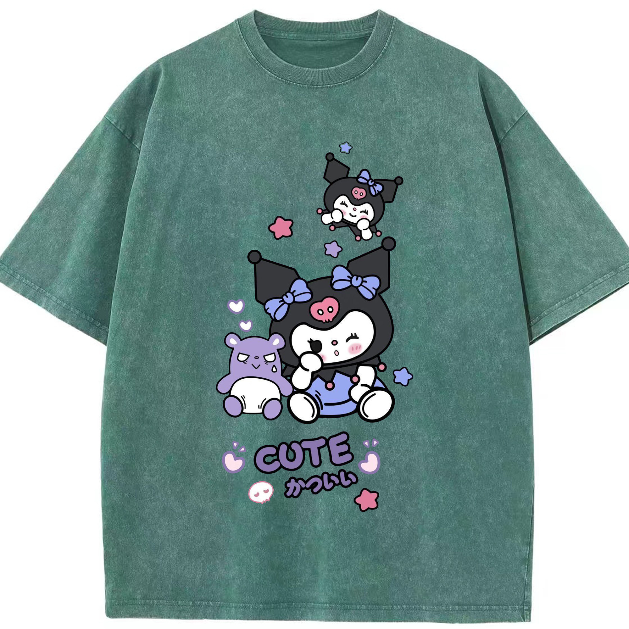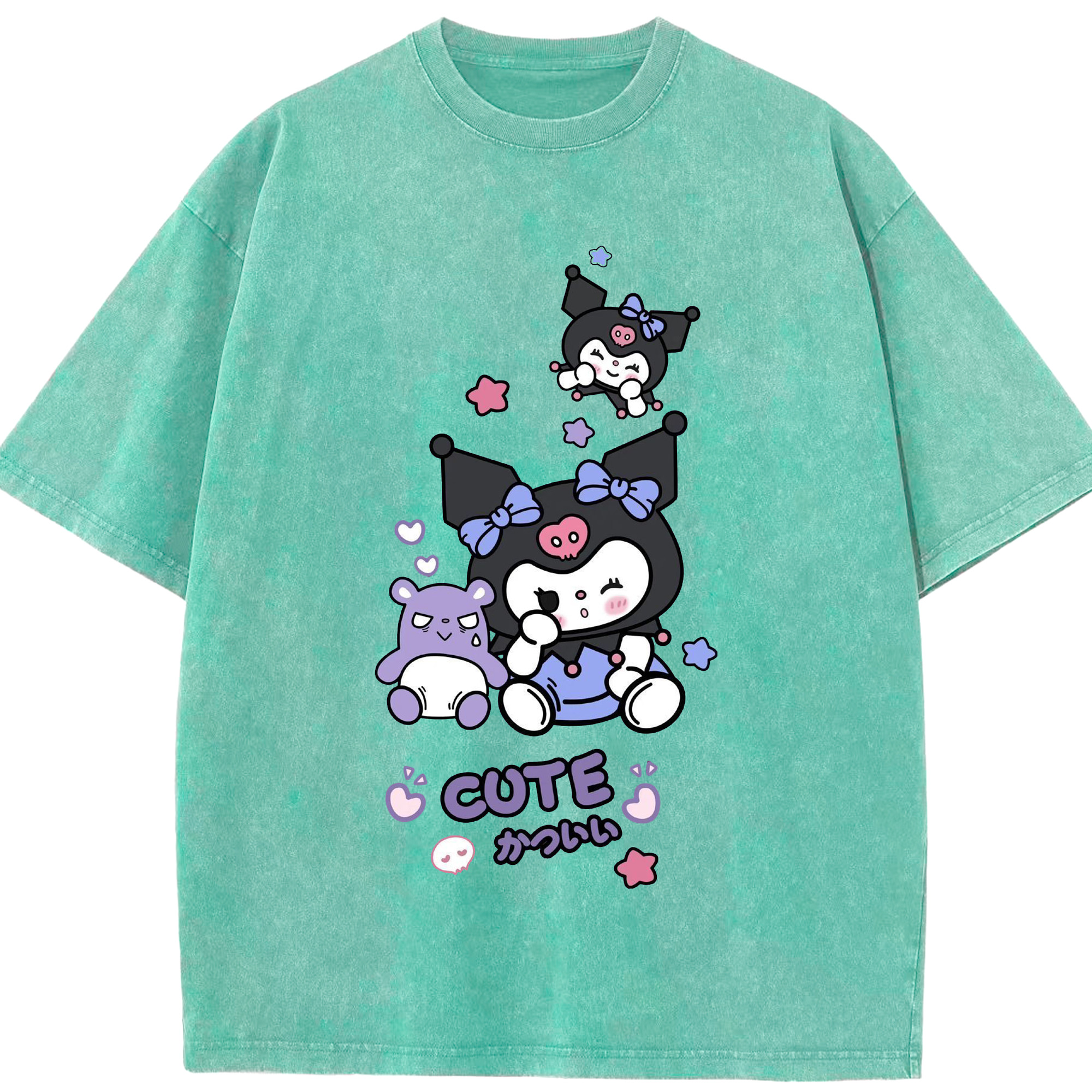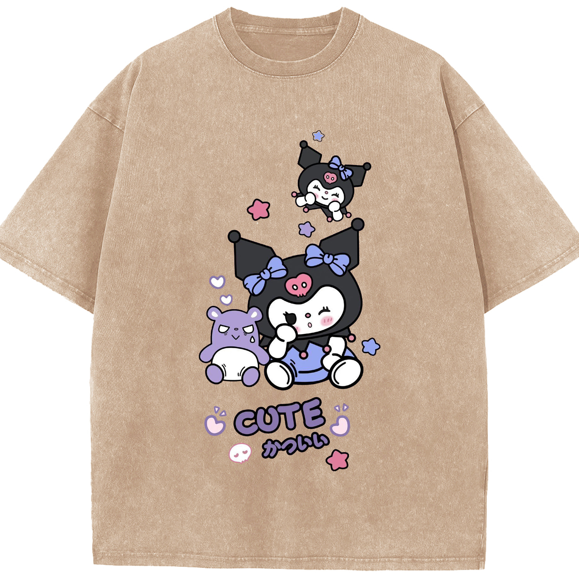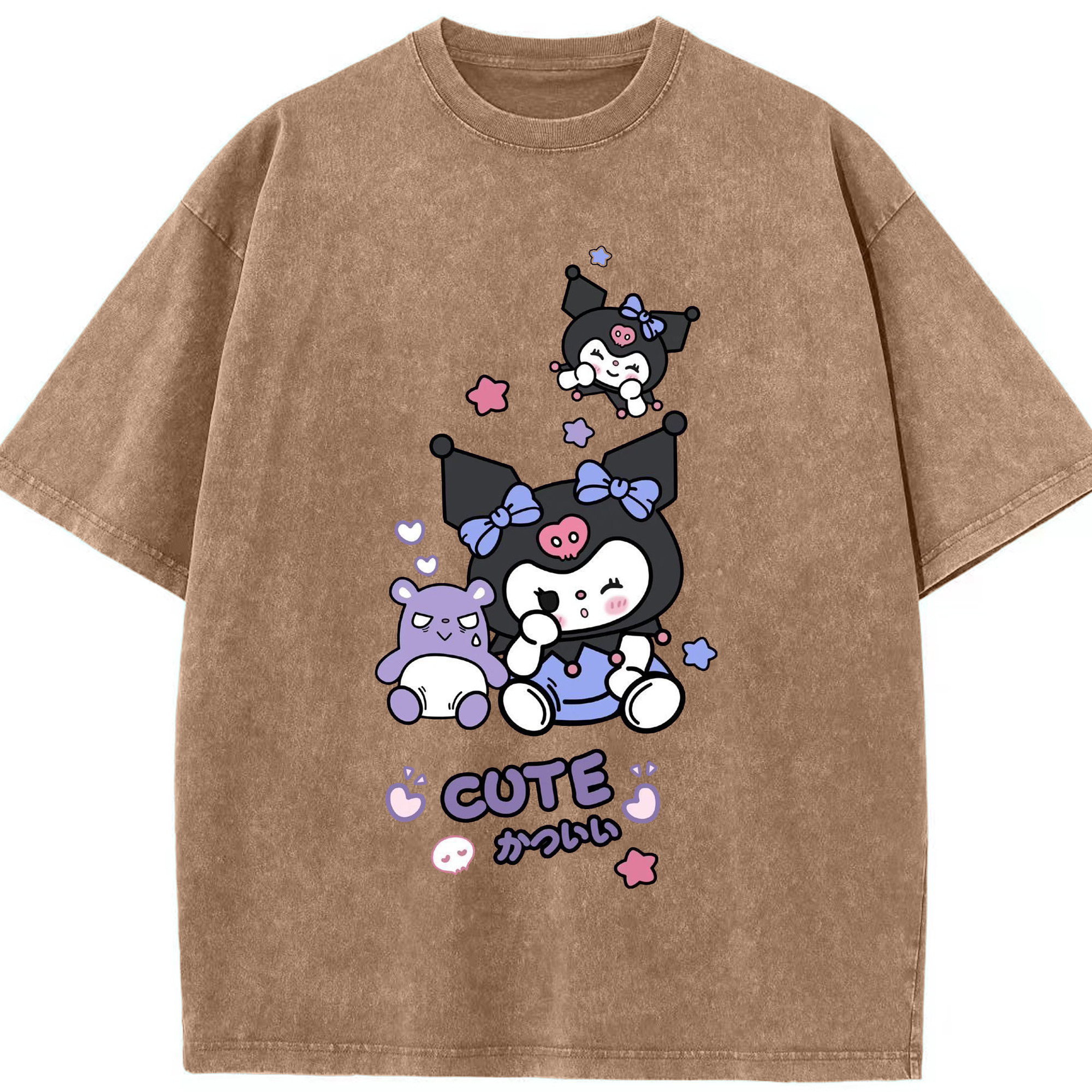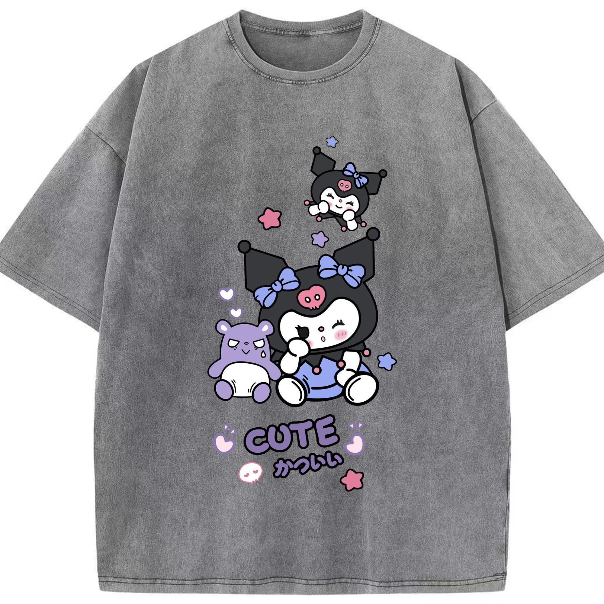 かわいいクロミ - 綿100% ヴィンテージ風 半袖Tシャツ ・ フロントプリント ・ 柔らか肌触り ・ 通気性 快適 ・ スポーツ カジュアル 外出用