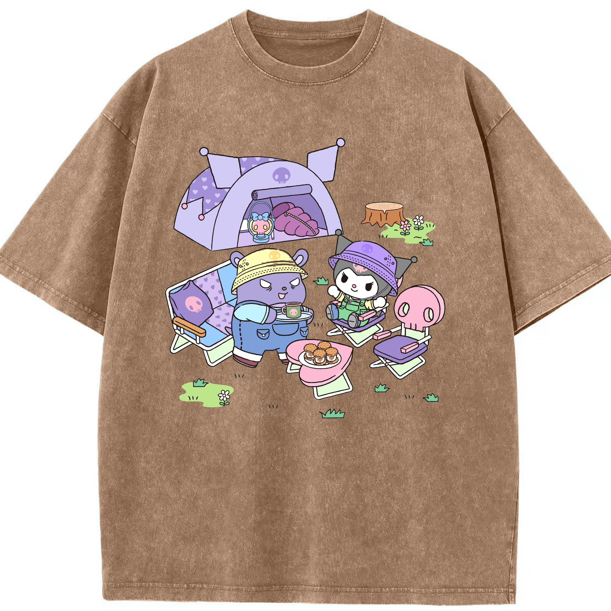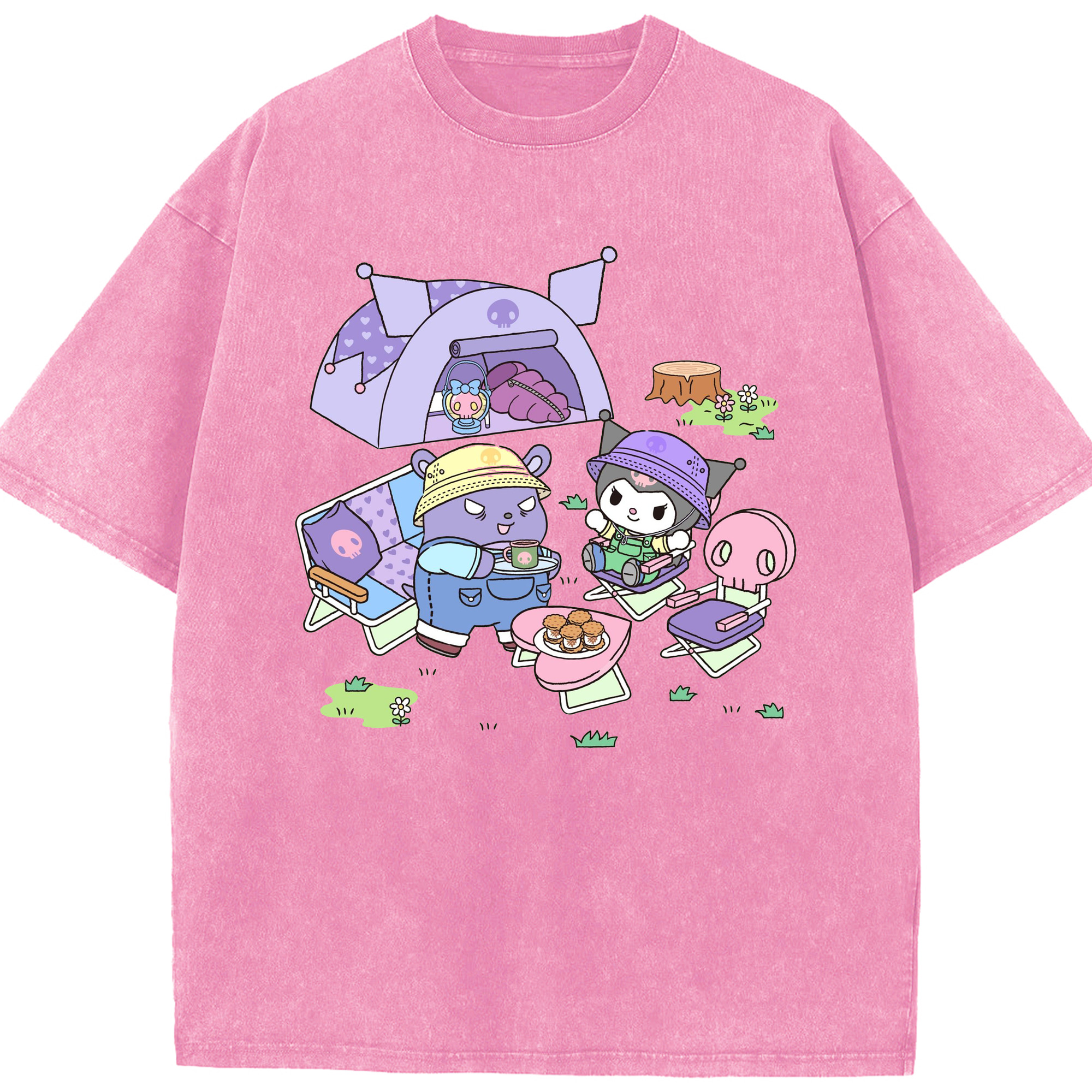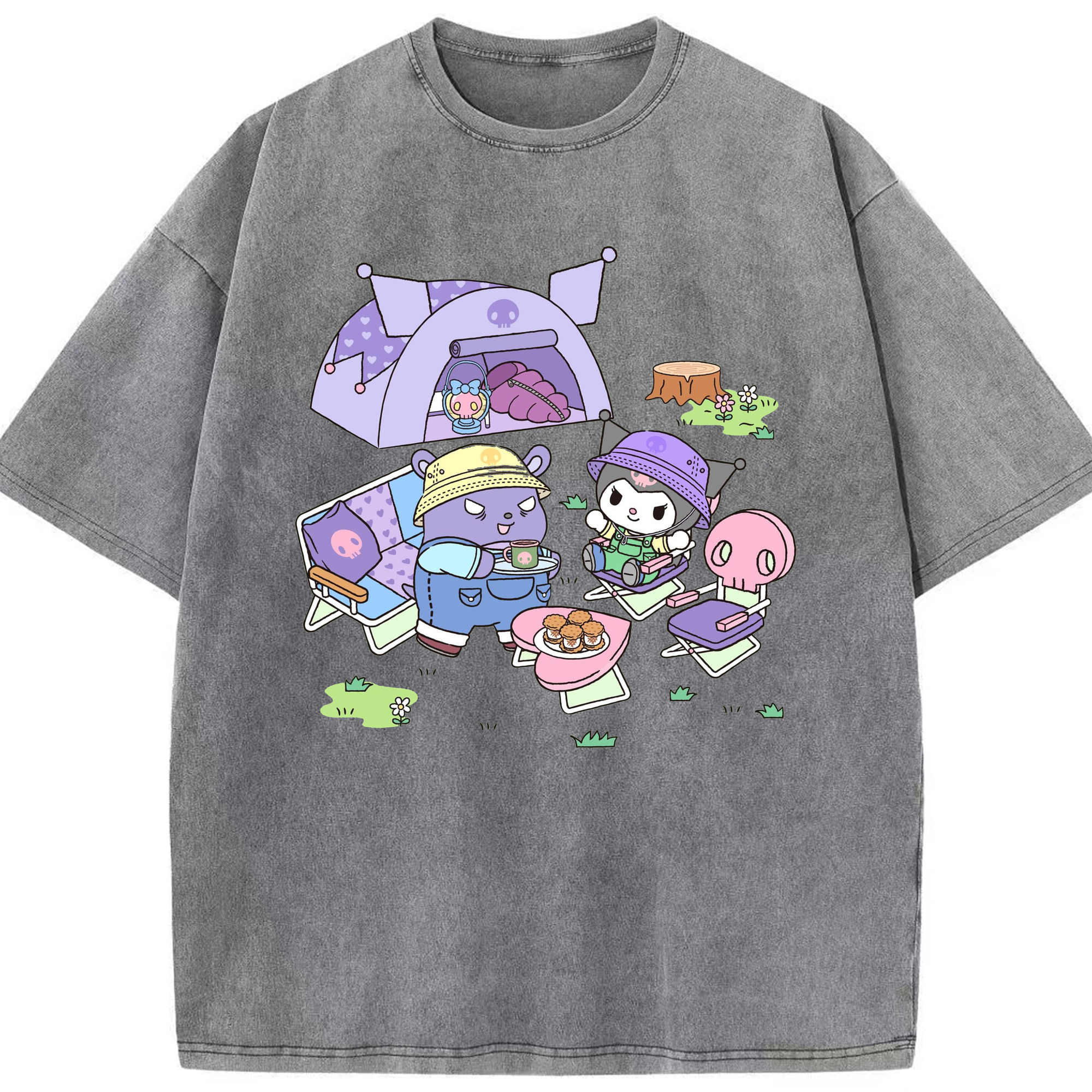かわいいクロミ - 綿100% ヴィンテージ風 半袖Tシャツ ・ 背面プリント ・ 柔らか肌触り ・ 通気性 快適 ・ スポーツ カジュアル 外出用