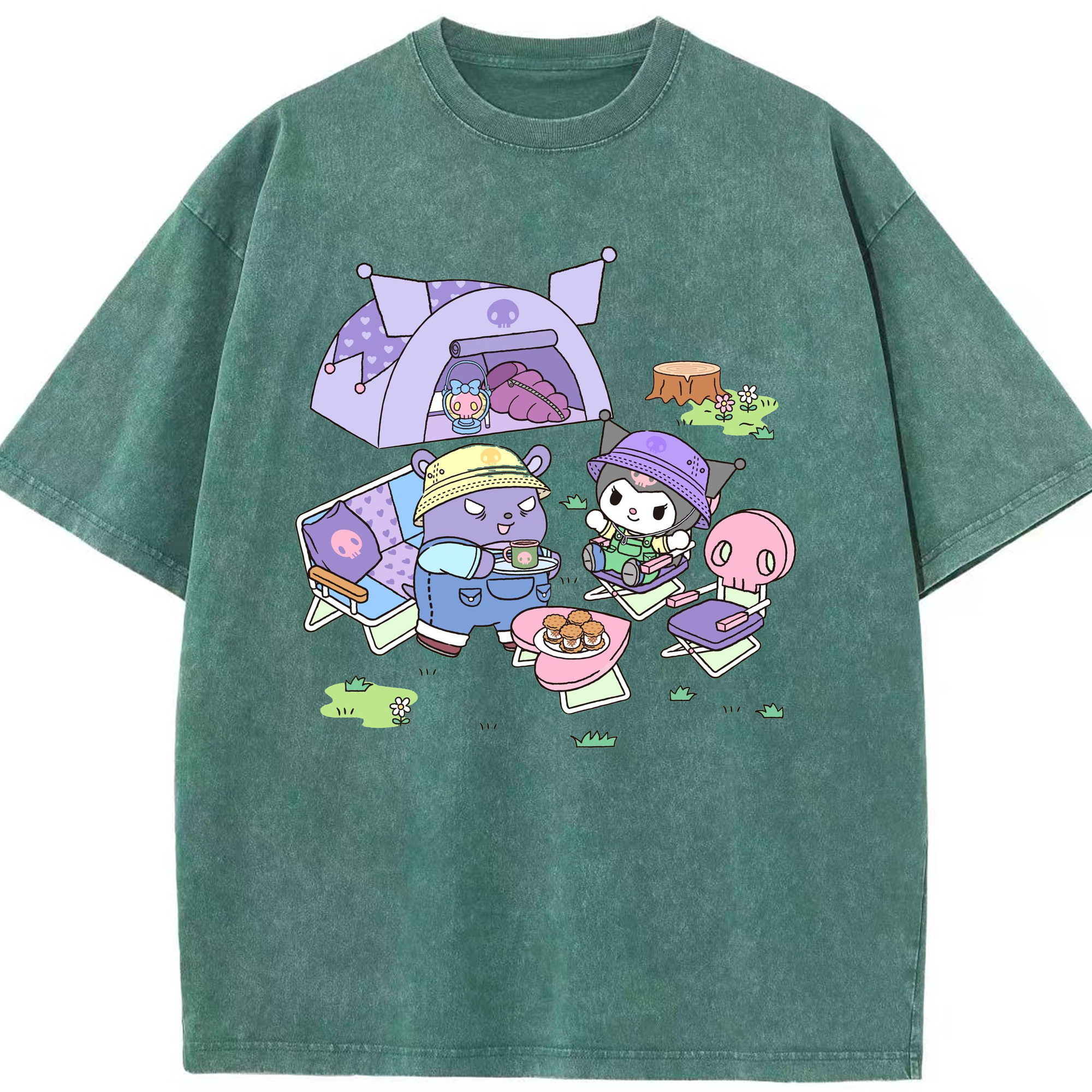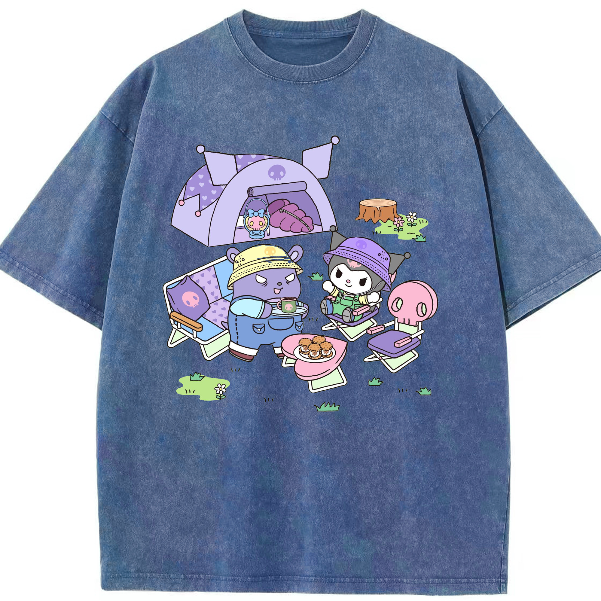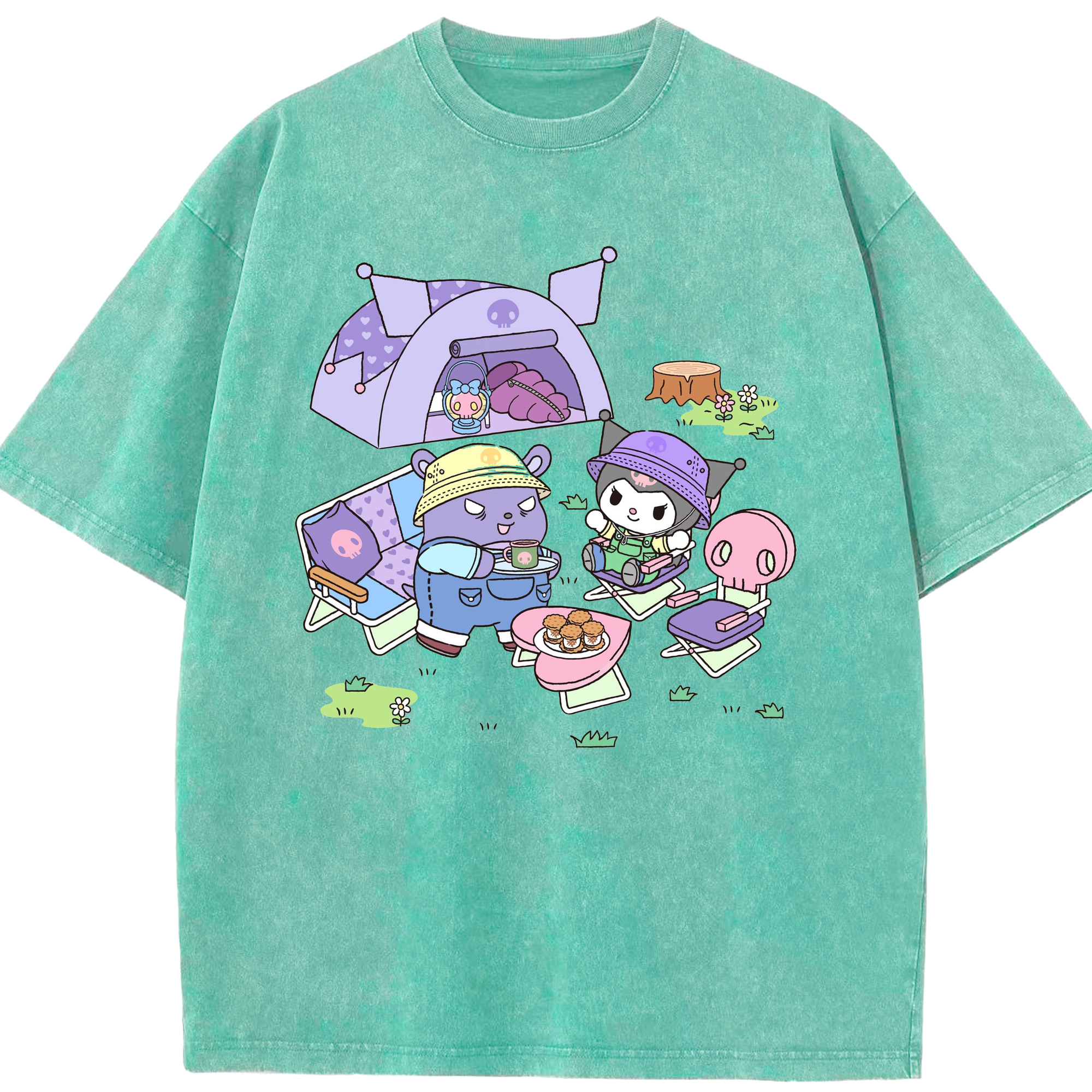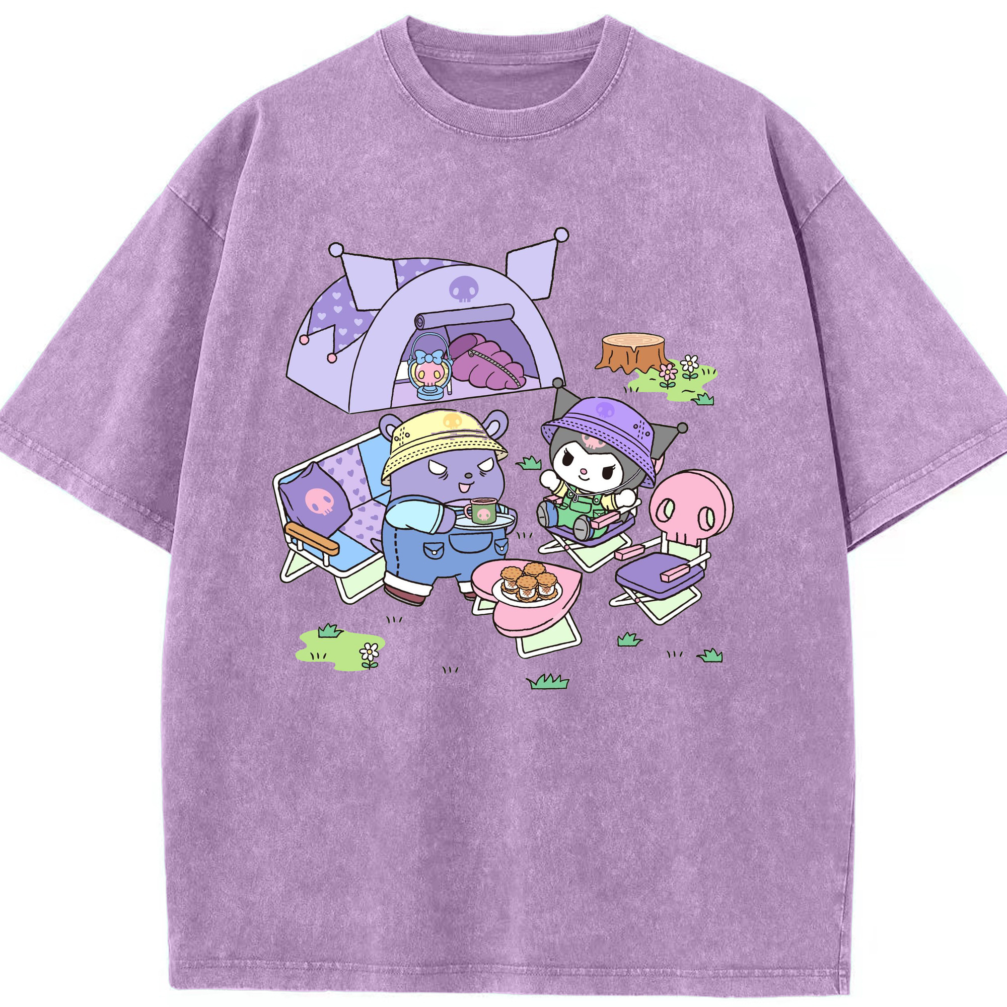 かわいいクロミ - 綿100% ヴィンテージ風 半袖Tシャツ ・ 背面プリント ・ 柔らか肌触り ・ 通気性 快適 ・ スポーツ カジュアル 外出用