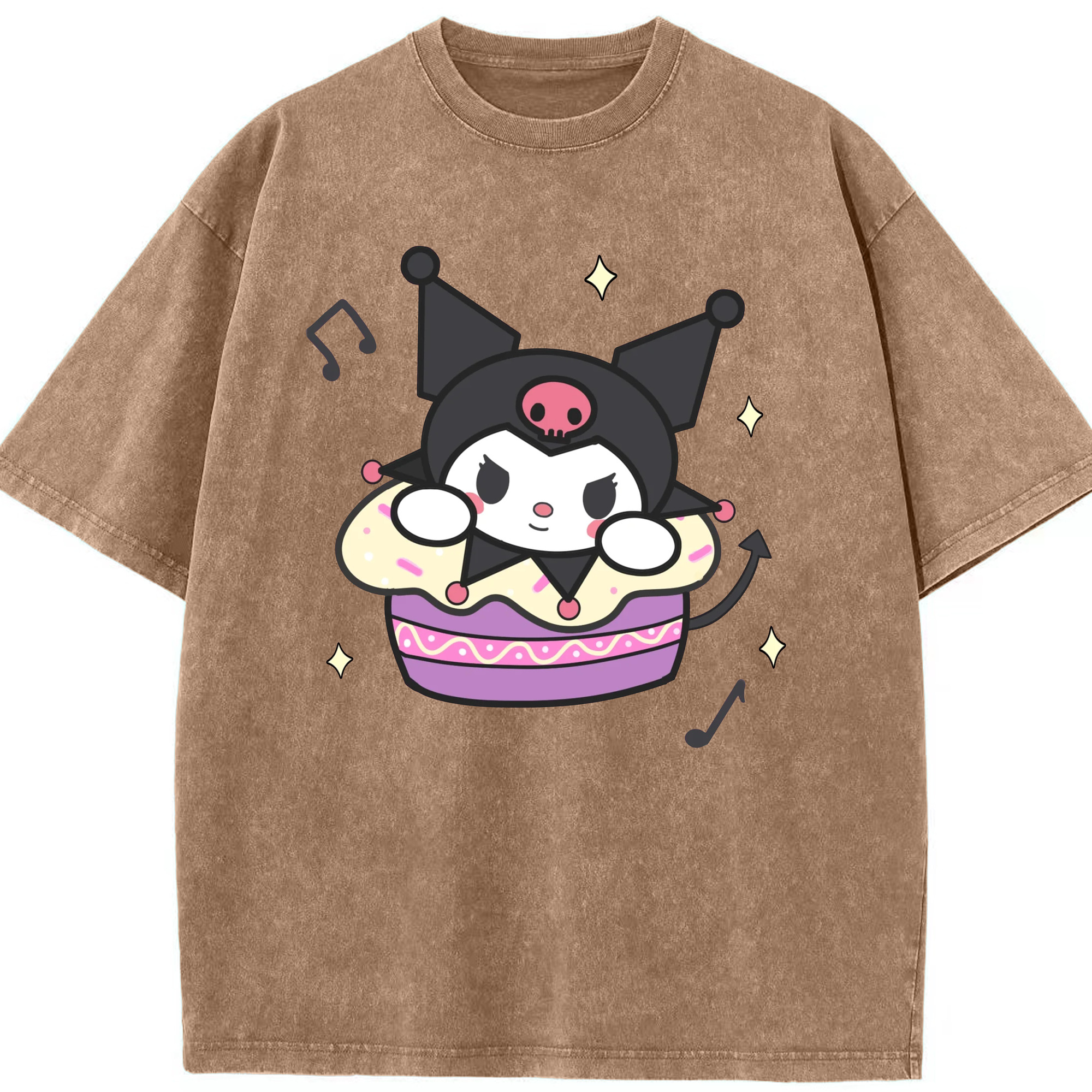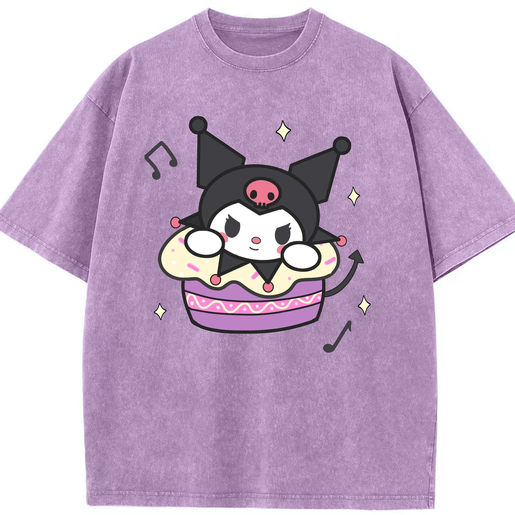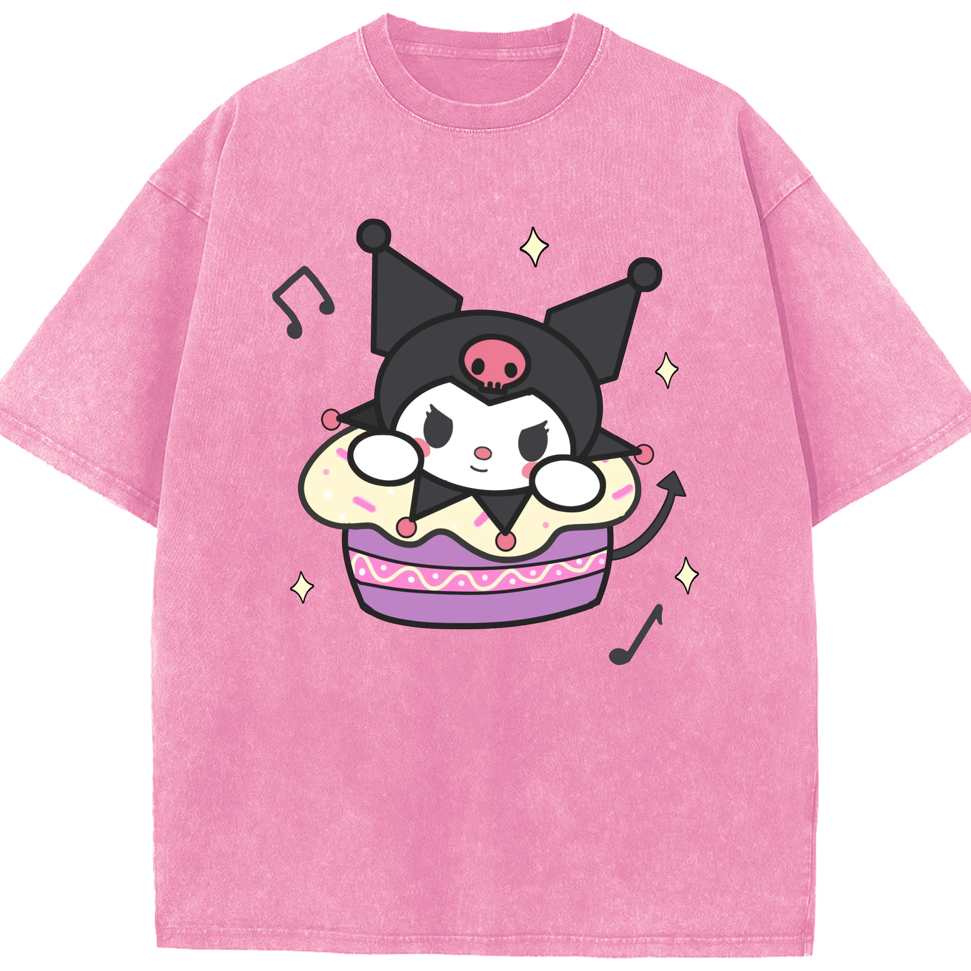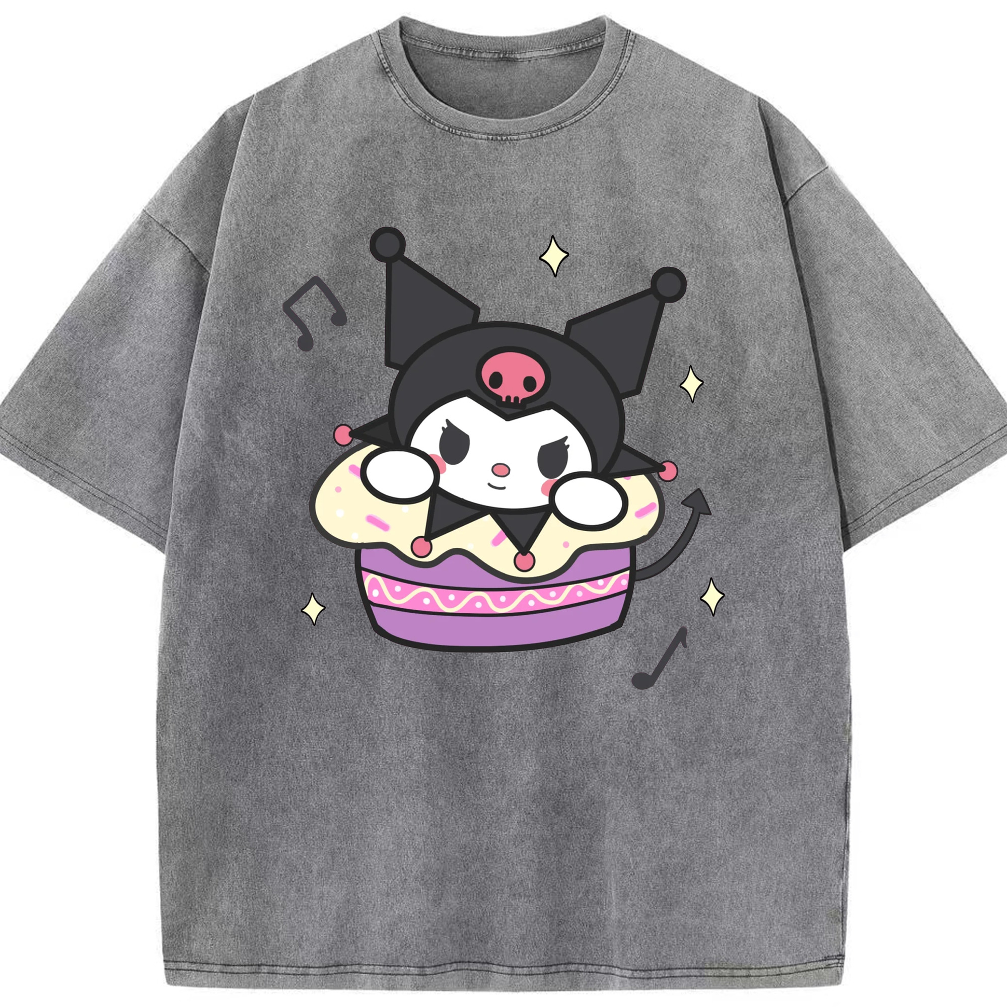かわいいクロミ - 綿100% ヴィンテージ風 半袖Tシャツ ・ 背面プリント ・ 柔らか肌触り ・ 通気性 快適 ・ スポーツ カジュアル 外出用